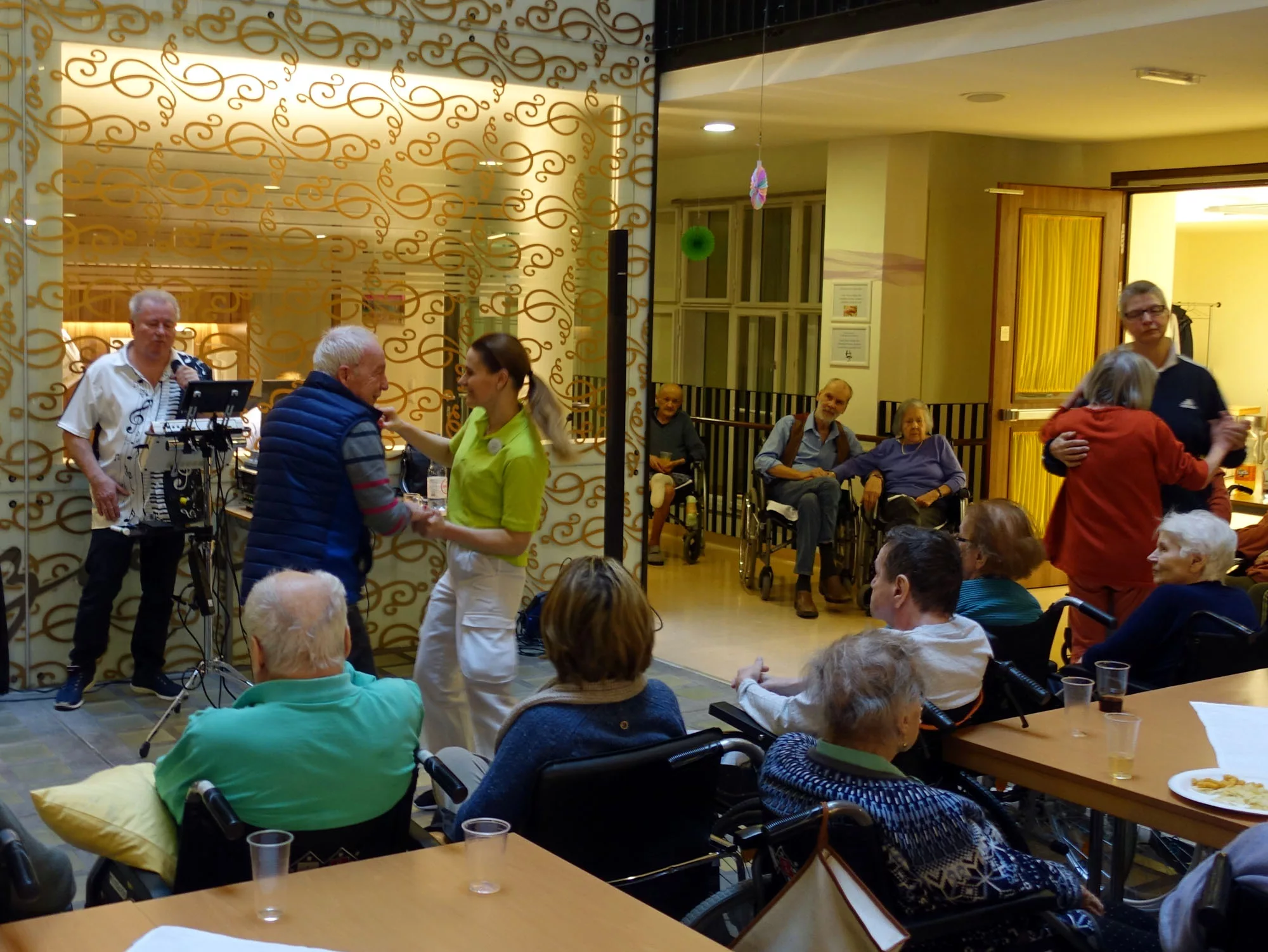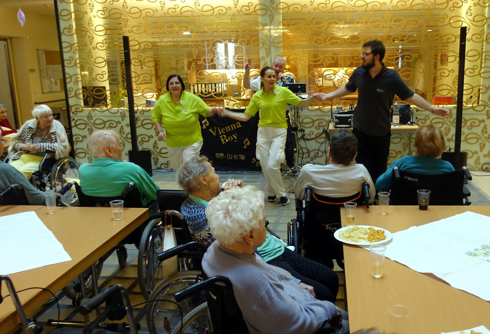 Wunschkonzert mit Erwin Im „Wie daham…“ Seniorenschlössl Brigittenau wurde wieder groß aufgespielt. Erwin, alias Vienna Boy, erfüllte den SeniorInnen musikalische Wünsche. Sogar das eine oder andere Tänzchen wurde dabei gewagt.