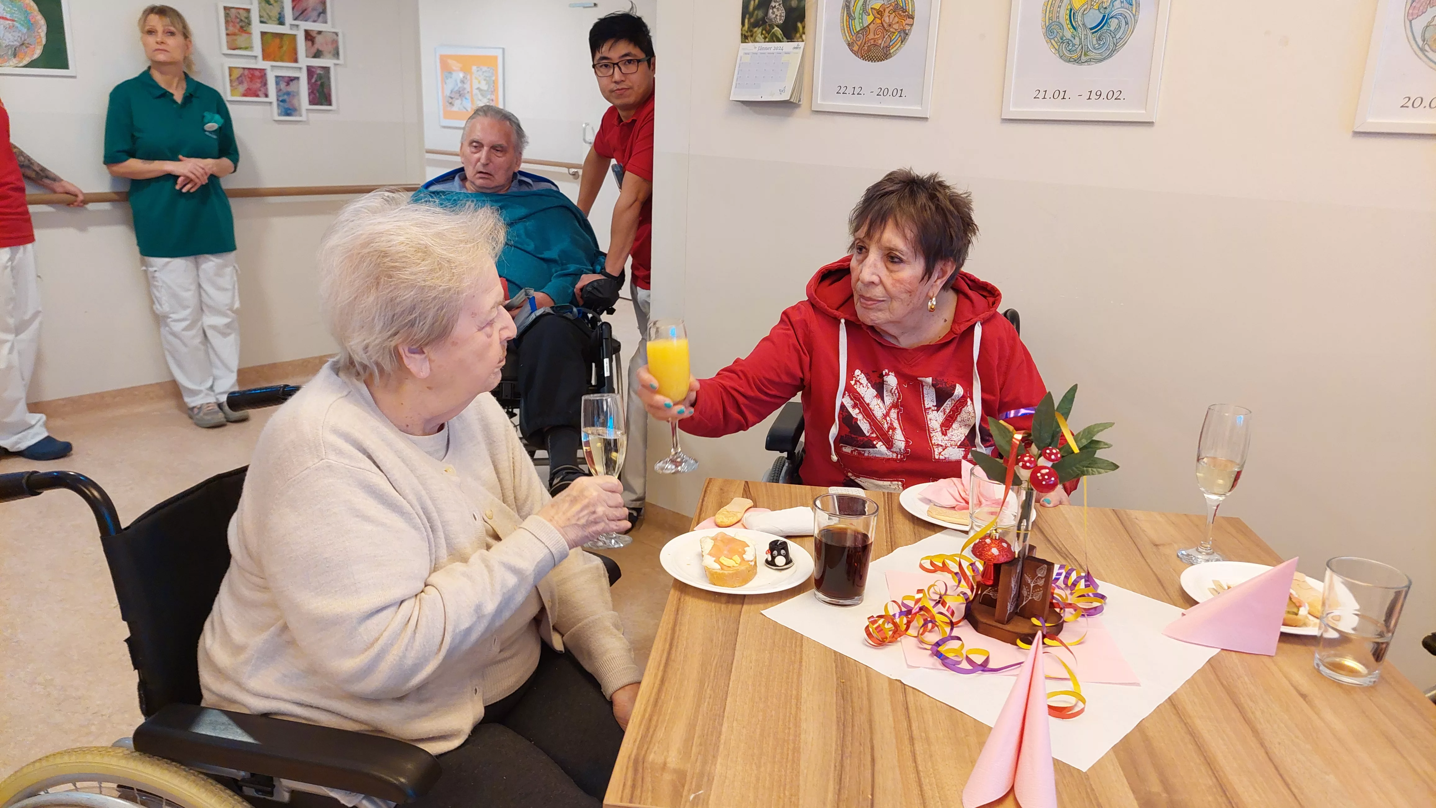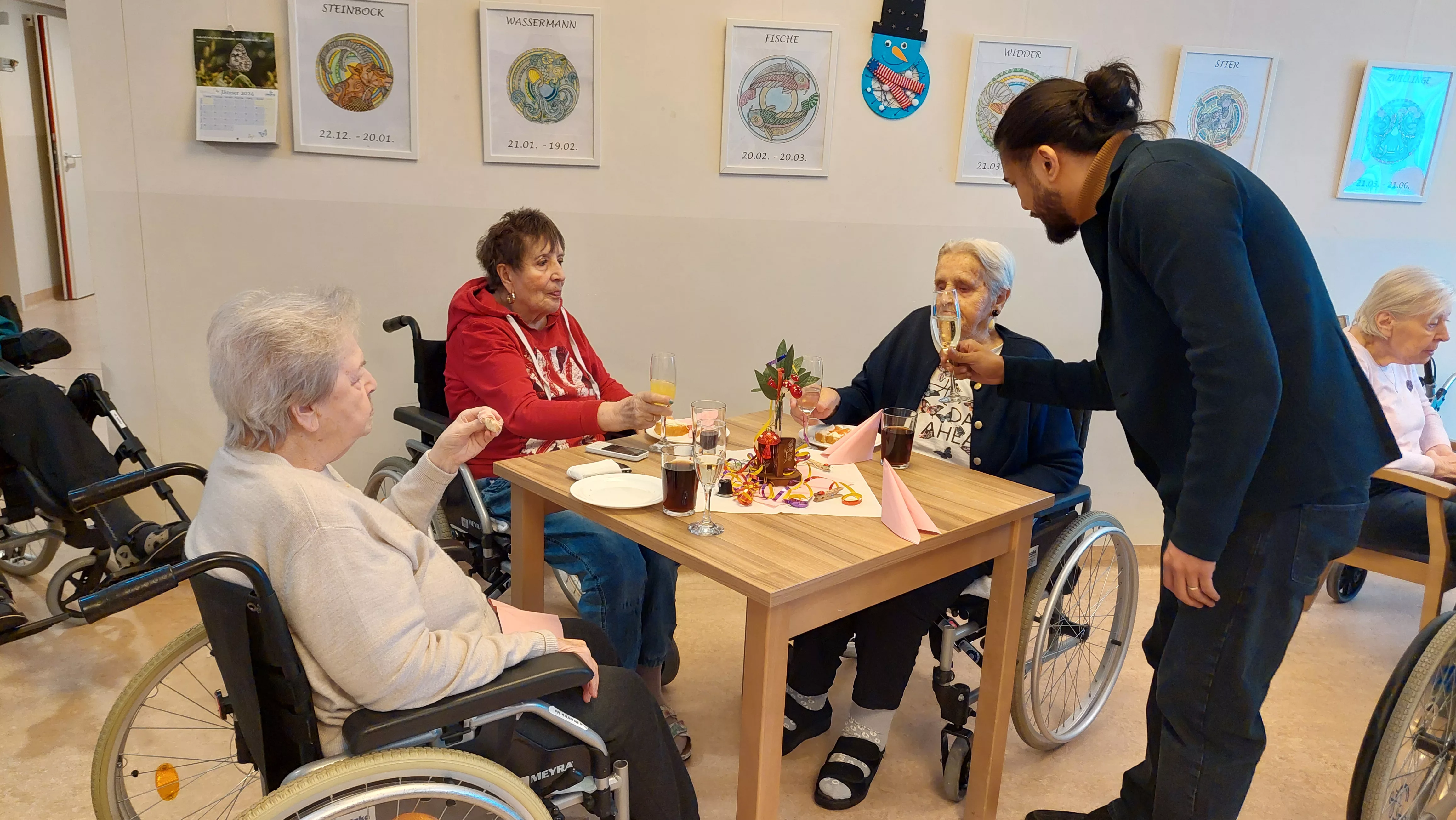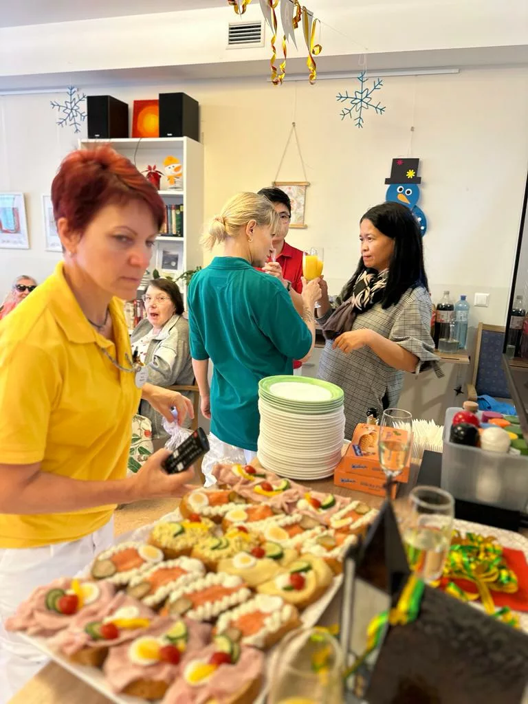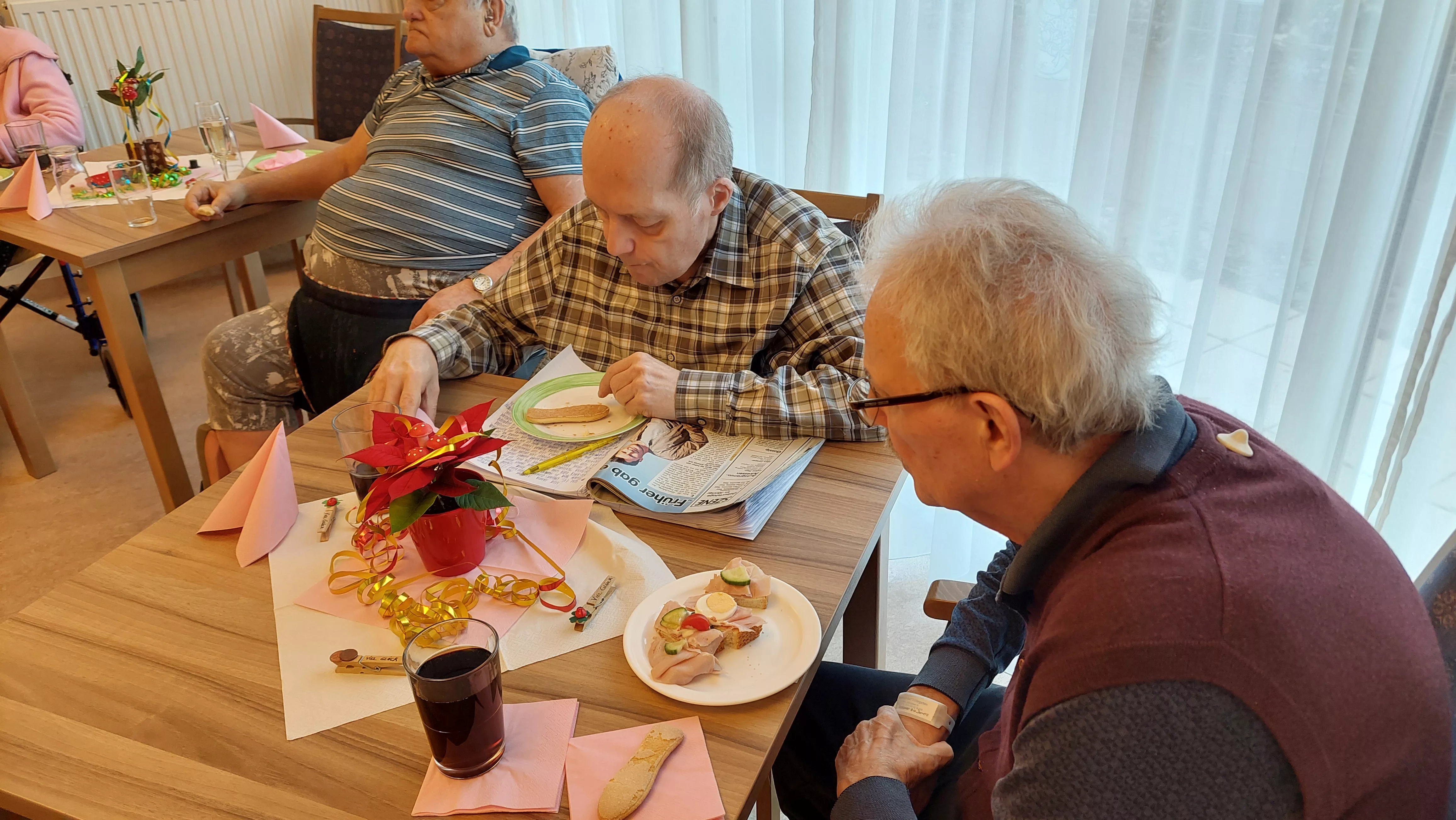 Das neue Jahr wurde empfangen Es wurde in einer gemütlichen Runde mit Sekt und Häppchen gefeiert, um das vergangene Jahr zu würdigen und das neue Jahr einzuläuten.