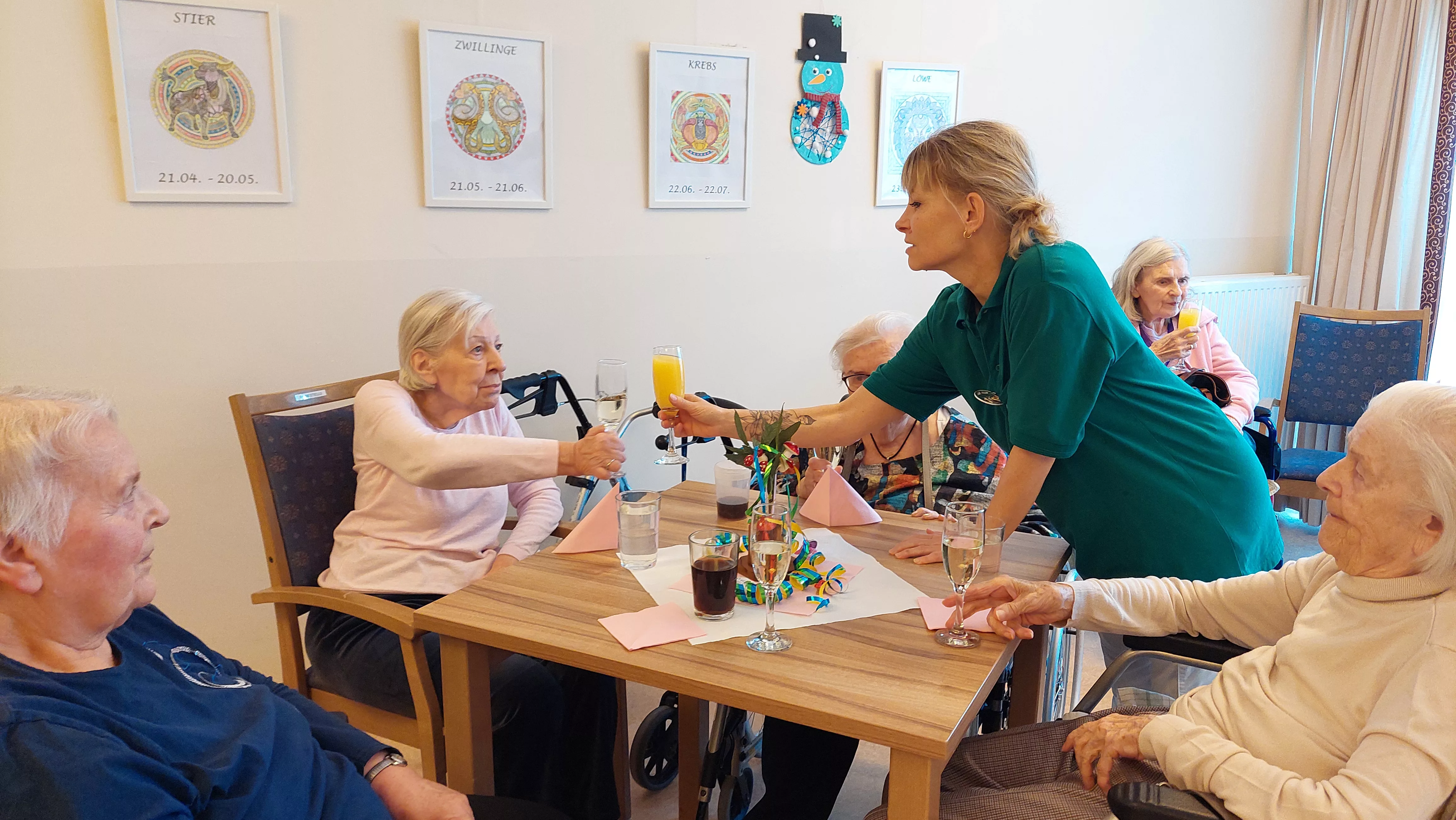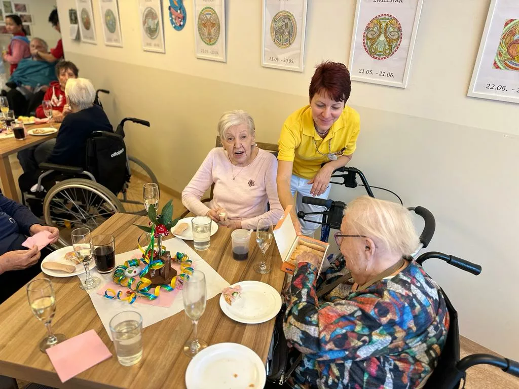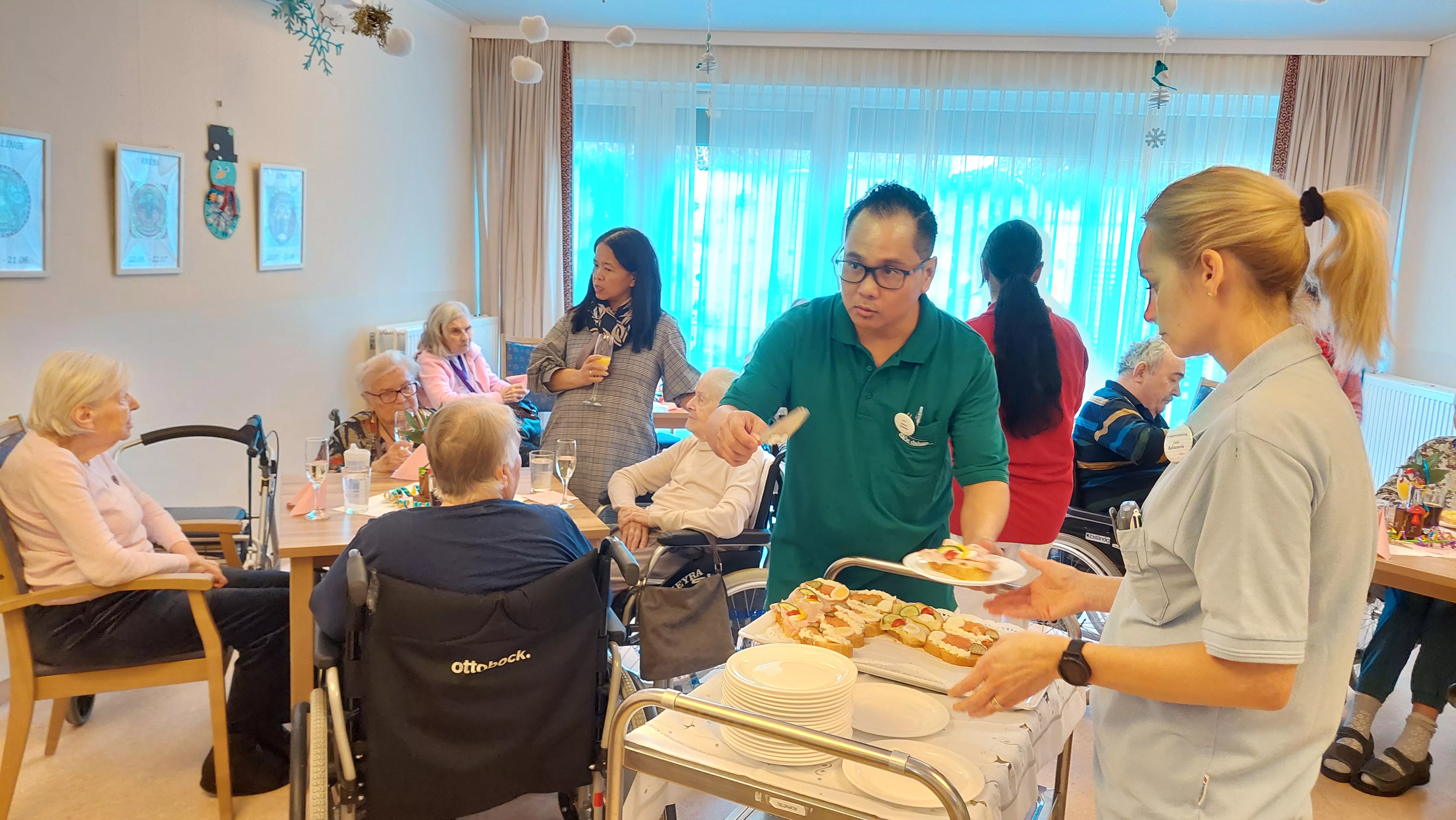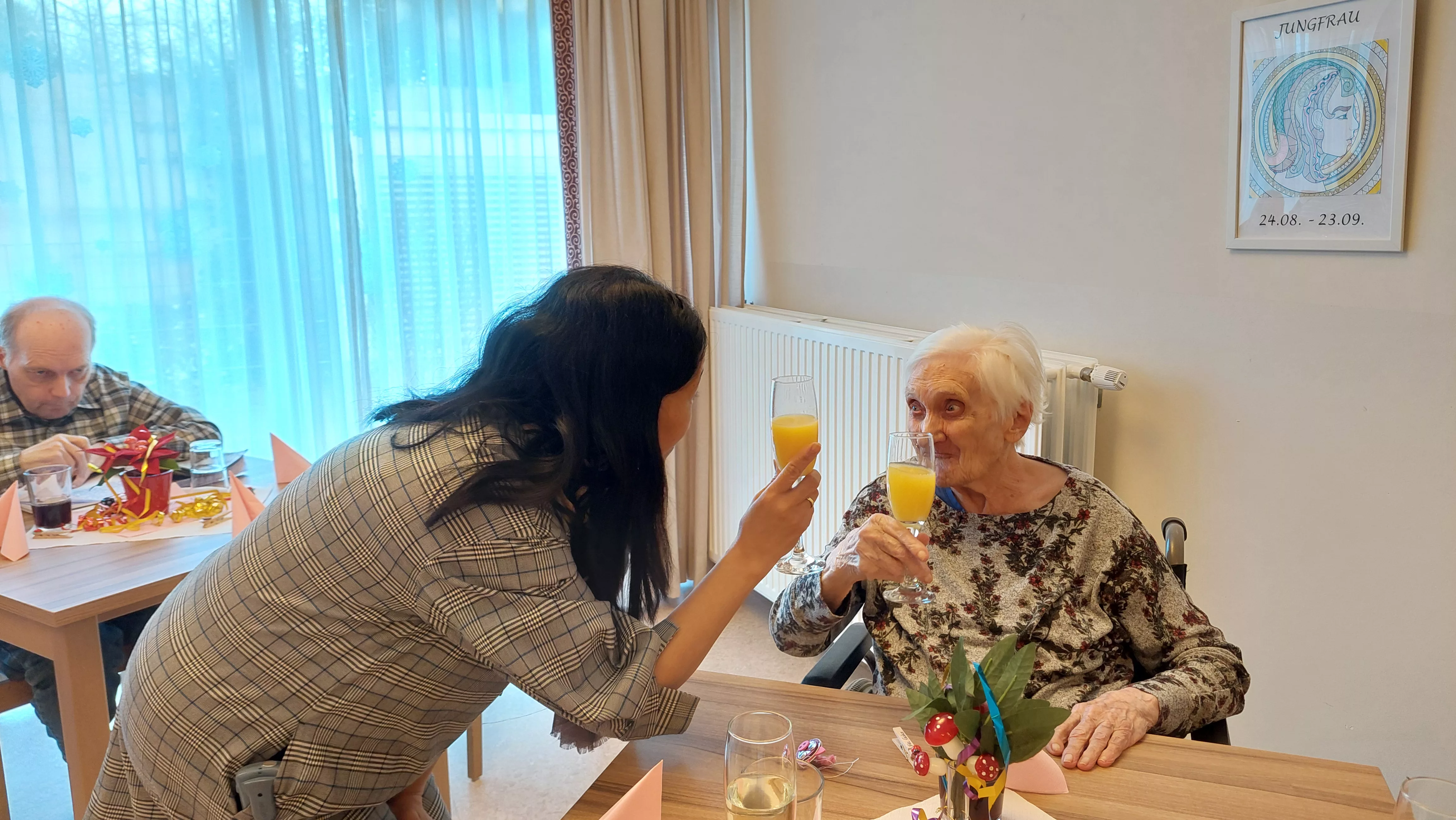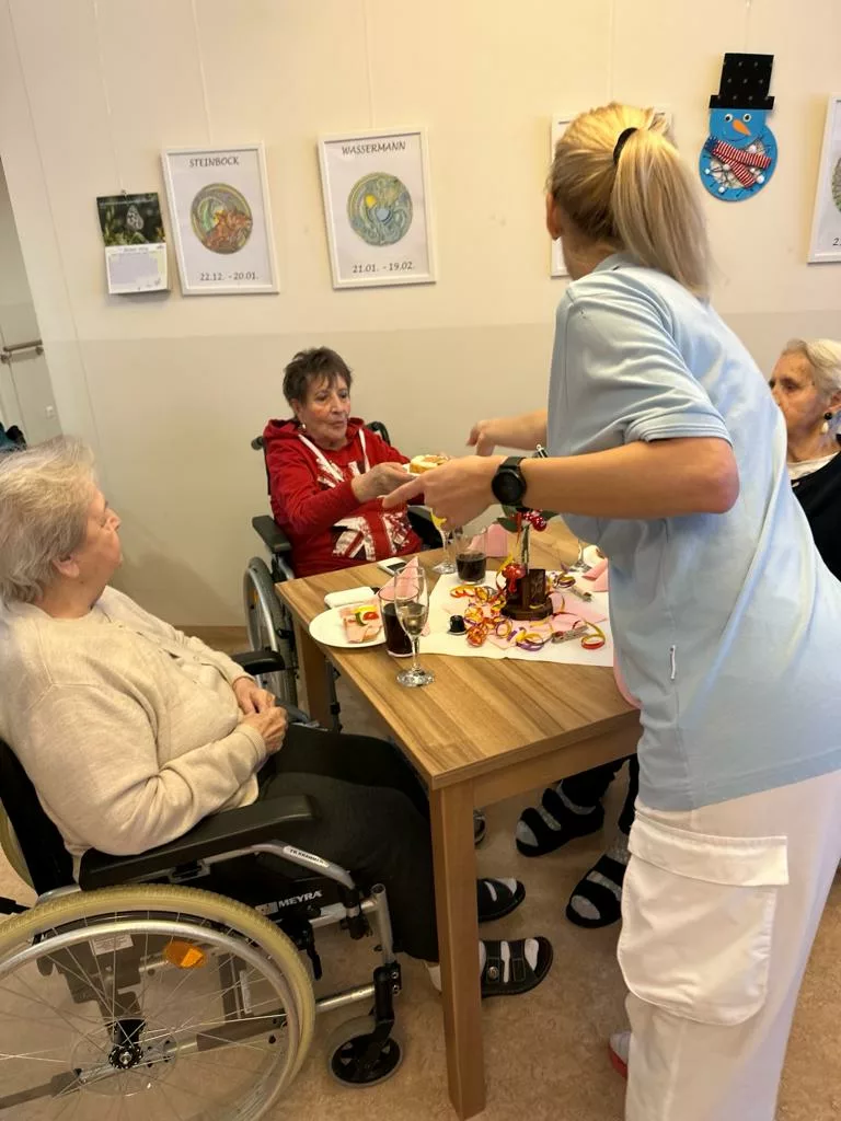 Das neue Jahr wurde empfangen Es wurde in einer gemütlichen Runde mit Sekt und Häppchen gefeiert, um das vergangene Jahr zu würdigen und das neue Jahr einzuläuten.