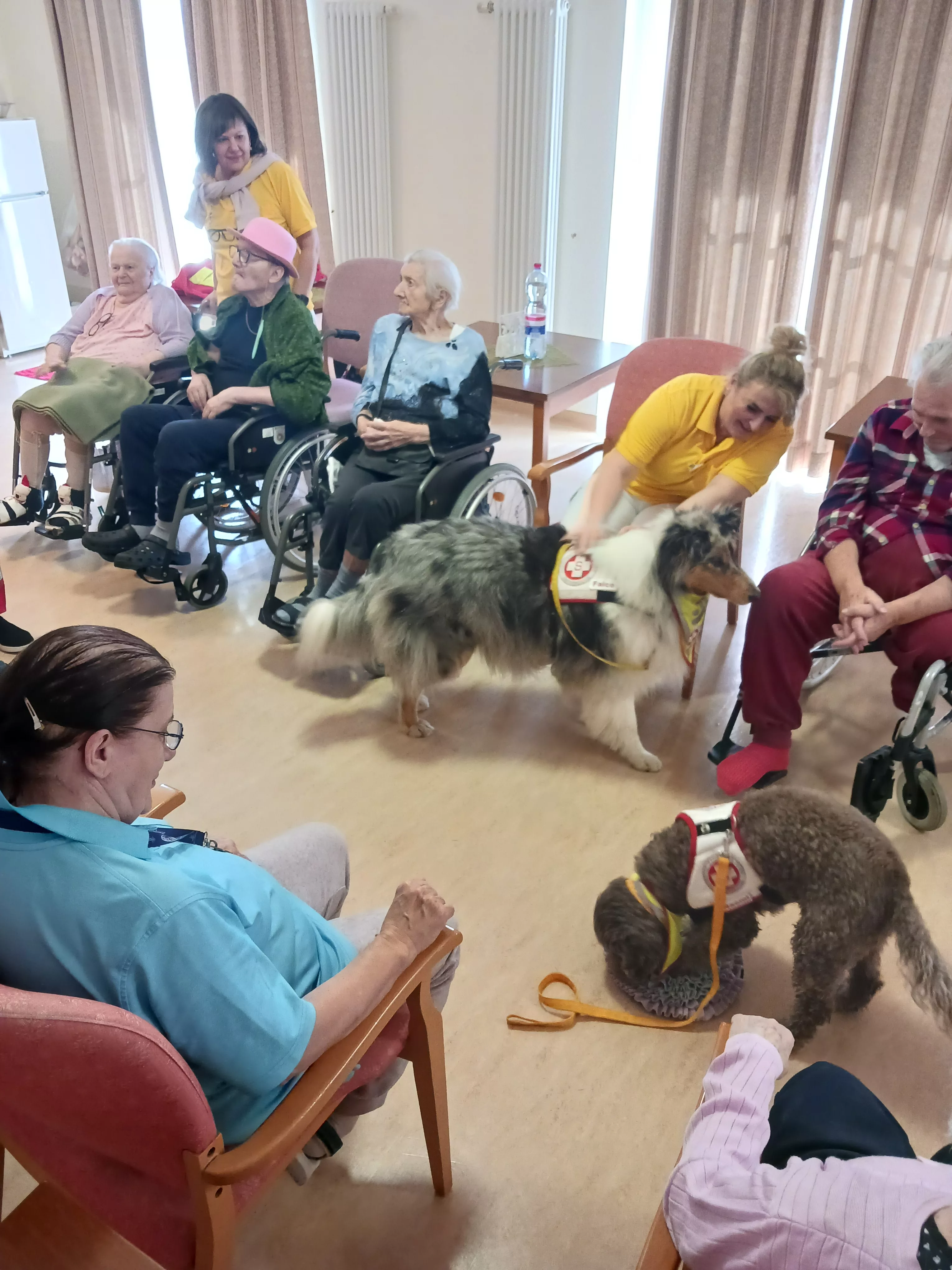 Besuch der Therapiehunde Auch heuer kommen und die fleißigen Therapiehunde vom Samariterbund wieder besuchen und erfreuen die Gemüter von allen Bewohnern und Bewohnerinnen.
