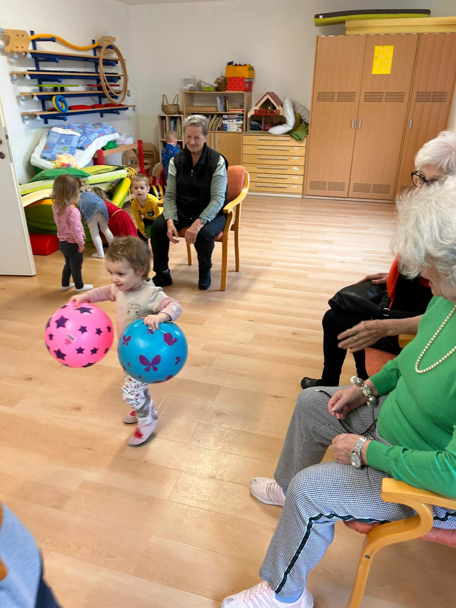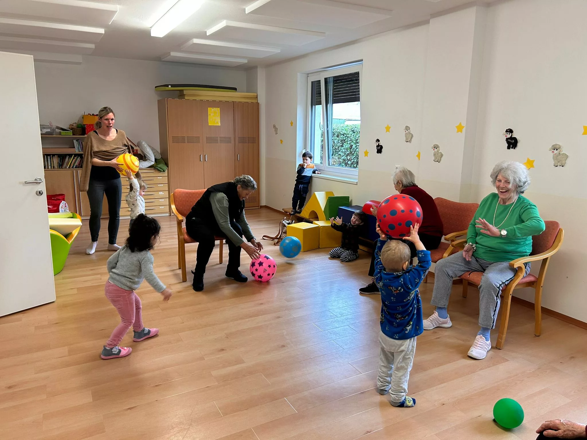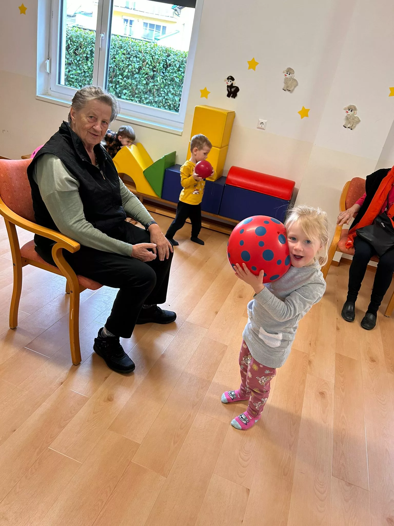 Die Kinder der Kindertagesstätte Abracadabra und die Bewohner und Bewohnerinnen des „Wie daham…“ Generationenparks Welzenegg hatten heute wieder einen super lustigen Vormittag.
