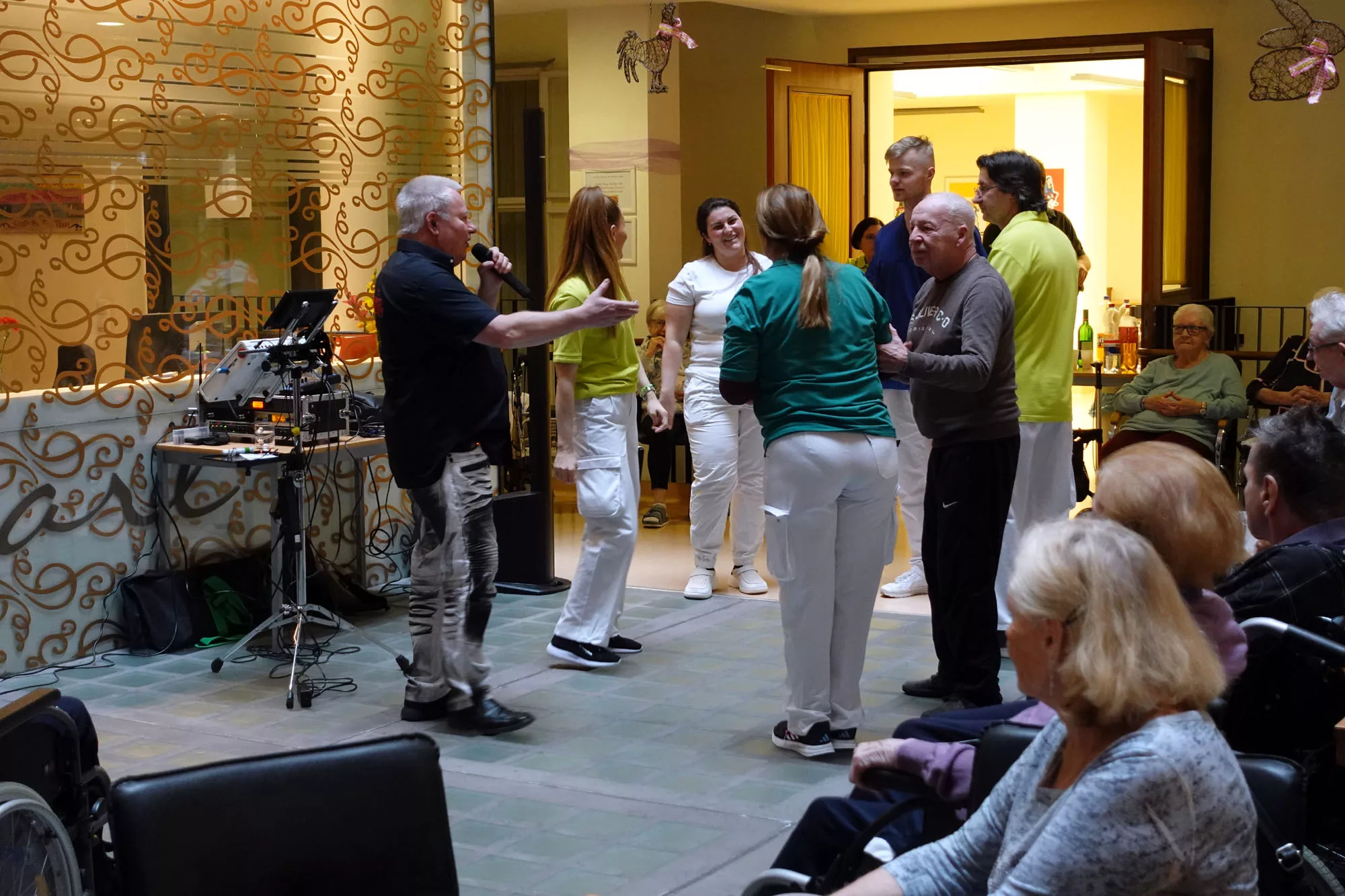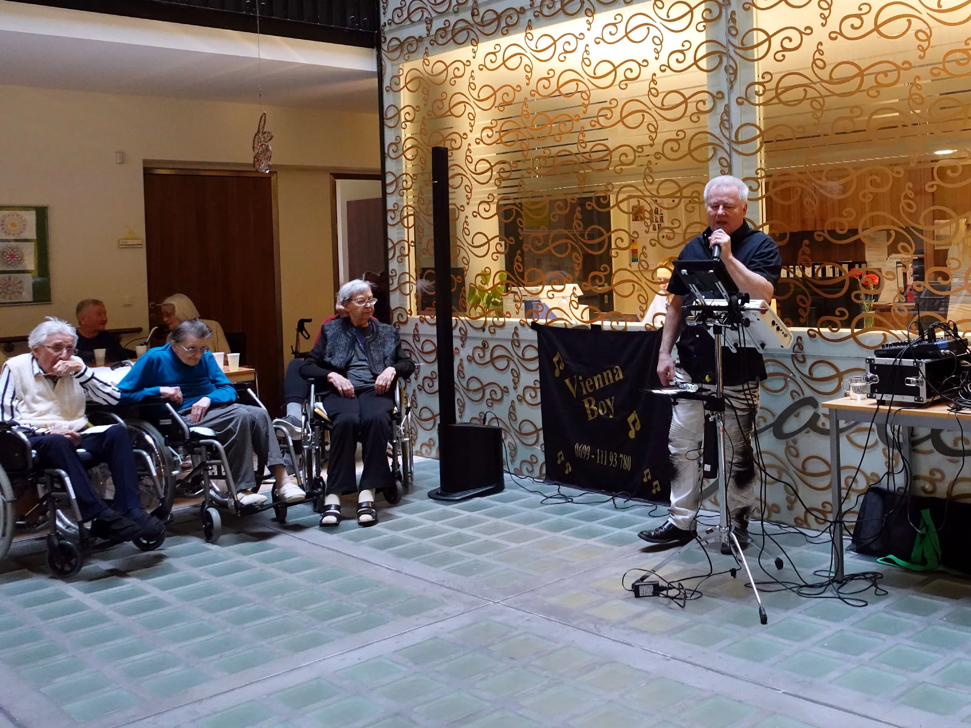 Sie wünschen – Erwin spielt. Ein Dauergast im „Wie daham,…“ Seniorenschlössl Brigittenau ist Entertainer Erwin, alias „Viennaboy“, der die SeniorInnen mit Schlagern, Hits und Evergreens untehält. Sehr gerne geht er auf die Wünsche nach Musikstücken der BewohnerInnen ein.