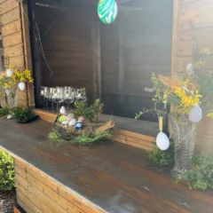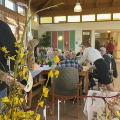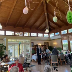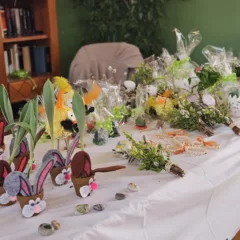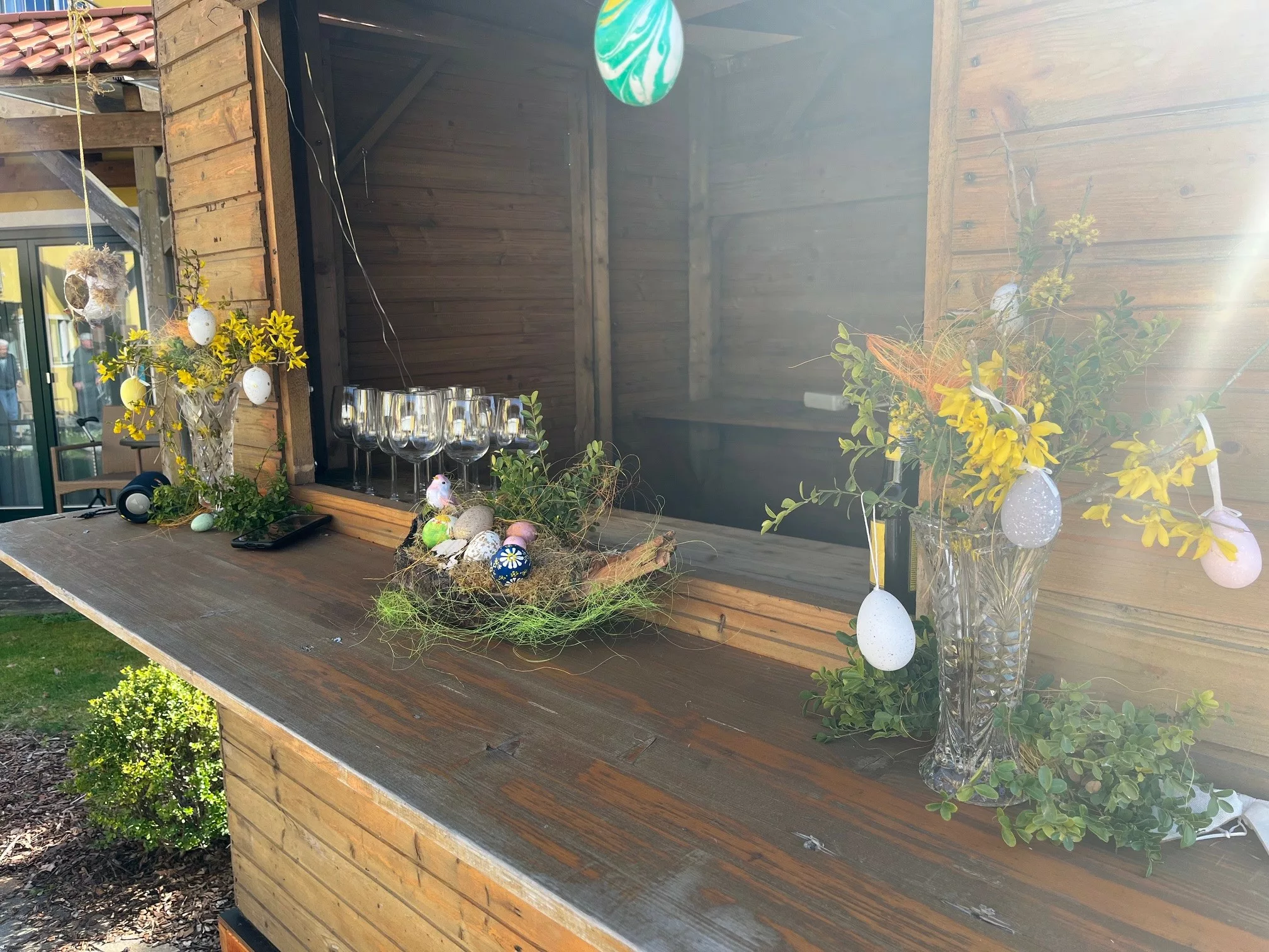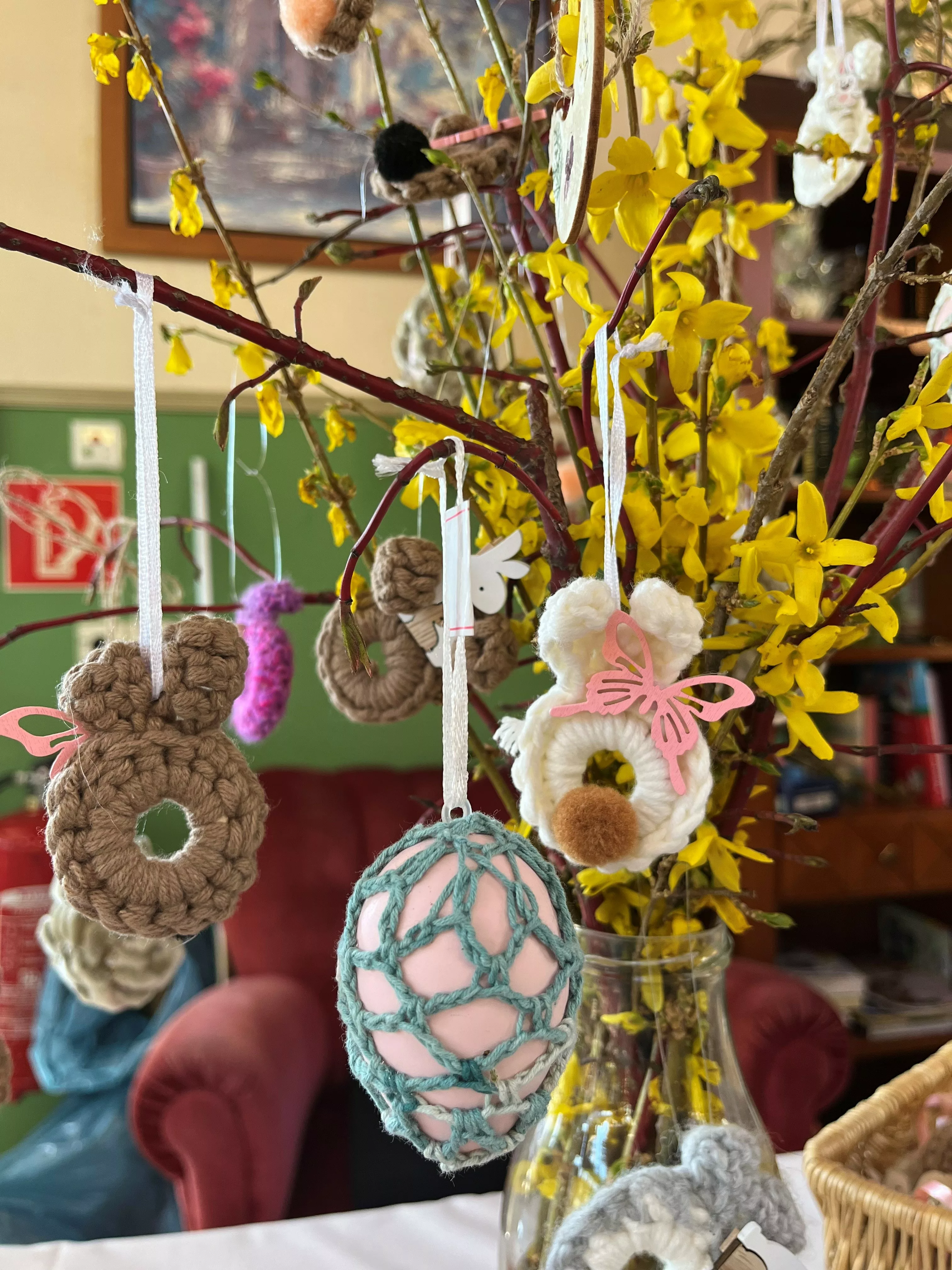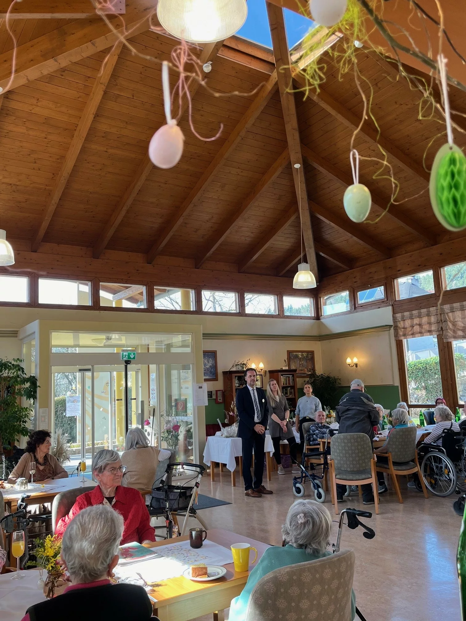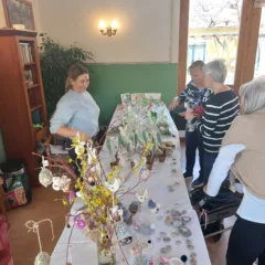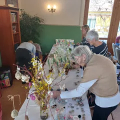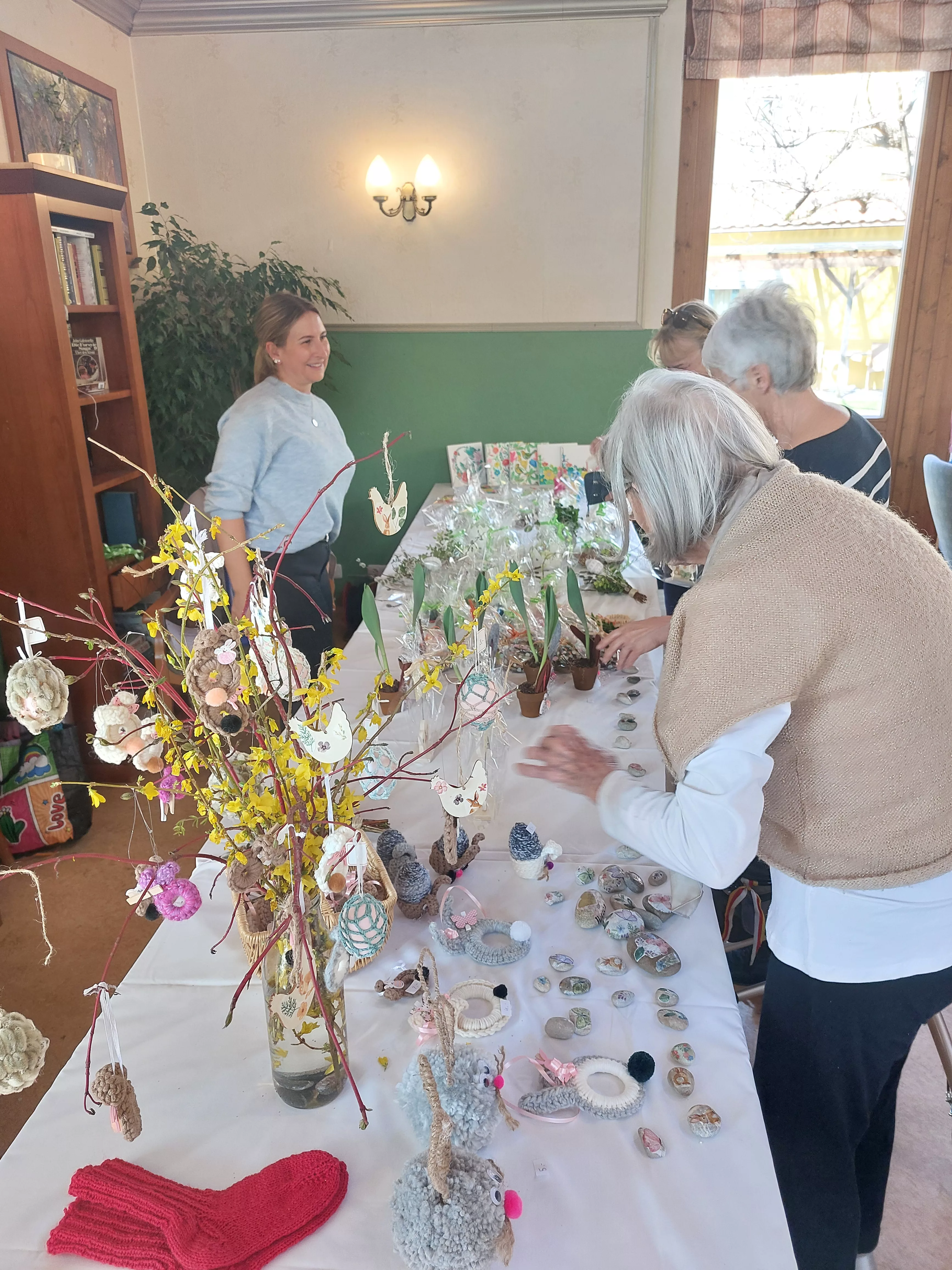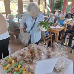 Es gab nicht nur, wie in den Jahren zuvor, einen gewöhnlichen Verkaufsstand, an dem Bewohnerinnen und Bewohner, sowie Angehörige und auch wir Mitarbeiter von den Senioren selbstgebastelte Osterdekorationen ergattern konnten.