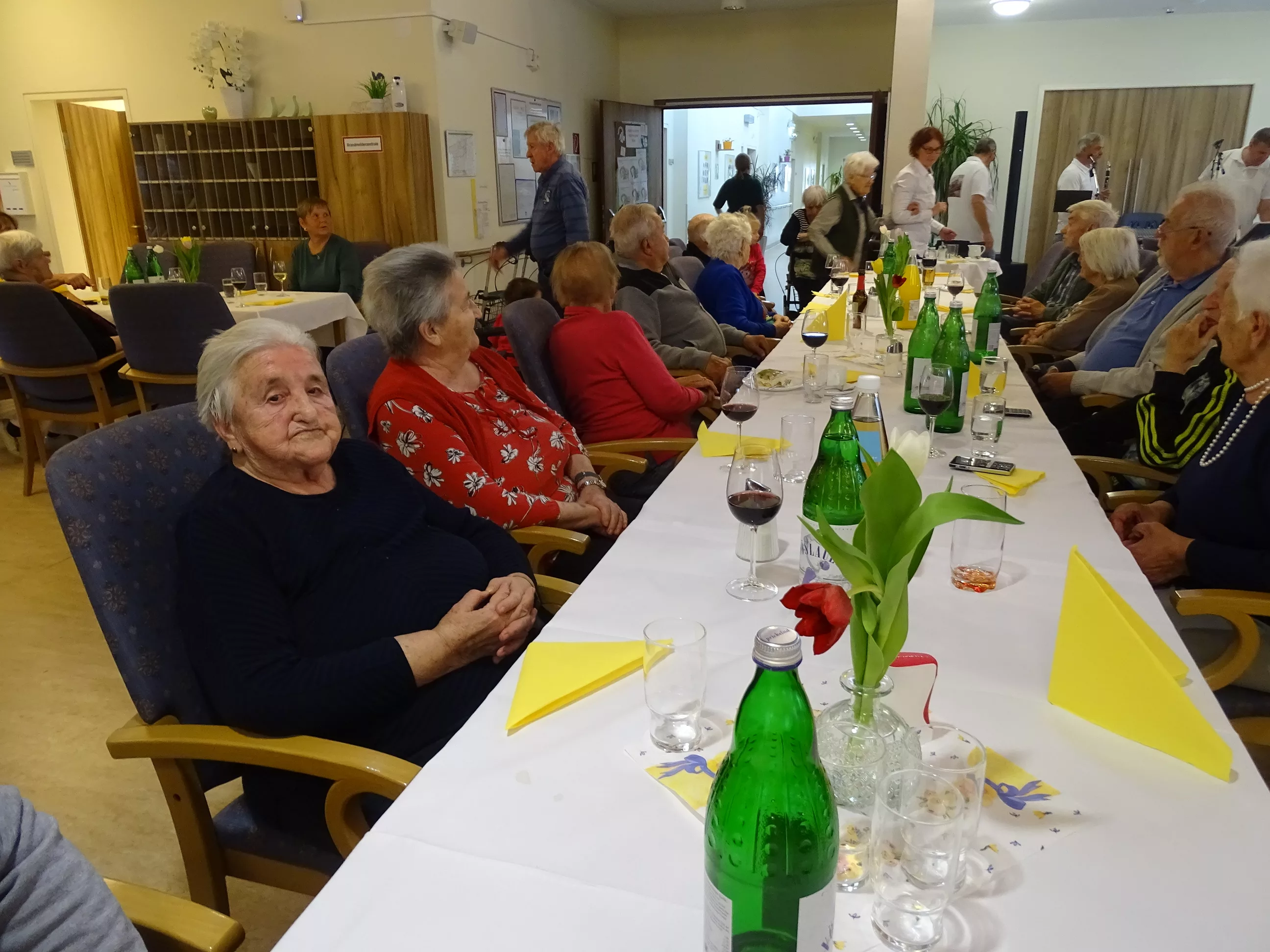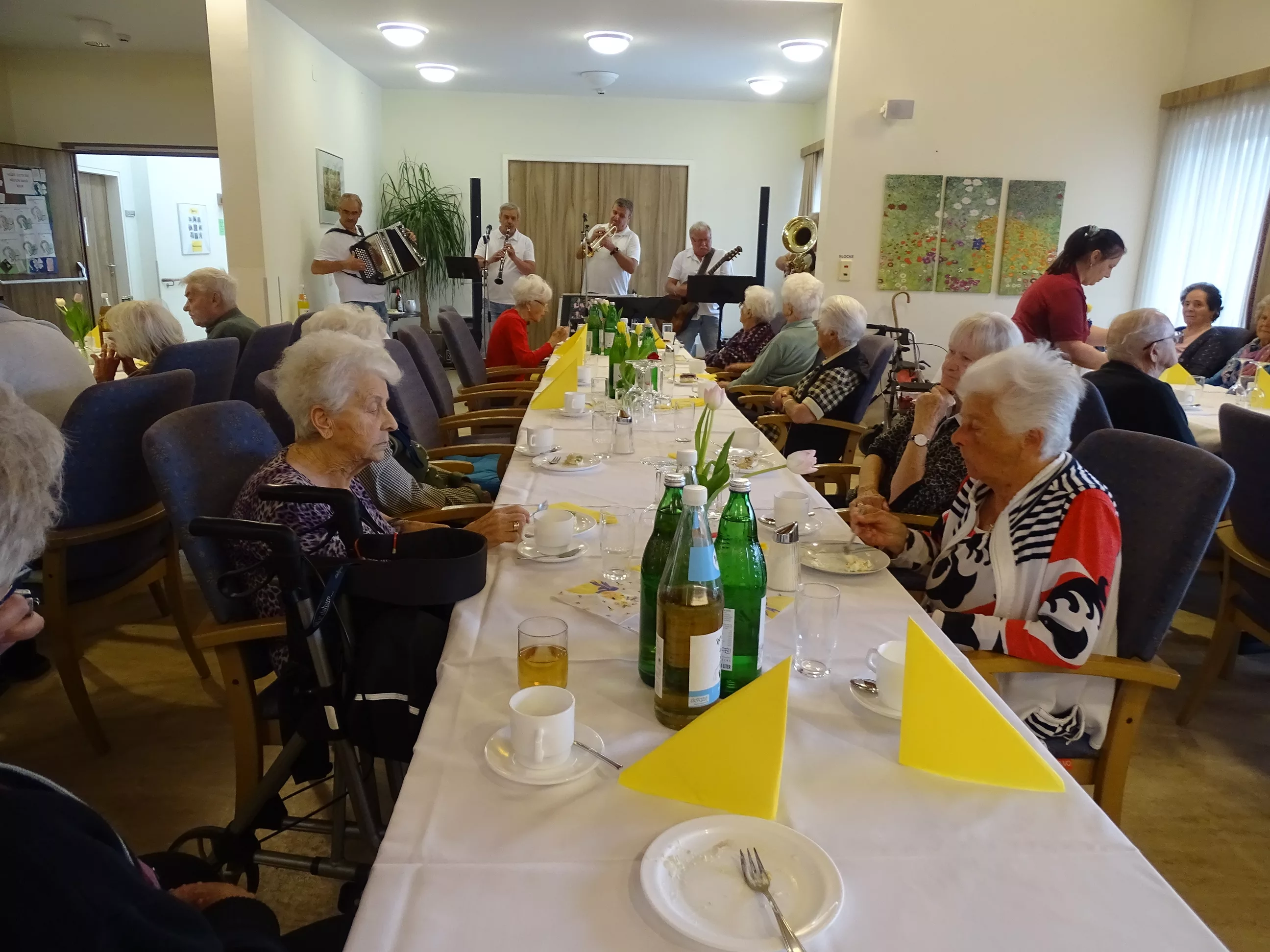 Am 16. April 2024 nach dem Motto „der April macht was er will…“ brachten wir den Frühling in unser Haus! Draußen fiel Schnee auf unsere aufgblühten Bäume, aber im Haus feierten wir den Frühling! Die „Breitenegger“ brachten mit ihren Liedern uns alle in Frühlingsstimmung. Wir klatschten, sangen und feierten mit einem Gläschen Wein oder Bier, einem wunderbar schmeckenden Kuchen und einem köstlichen Jägerwecken. Es war eine tolle Stimmung, die nach einer Wiederholung verlangt!