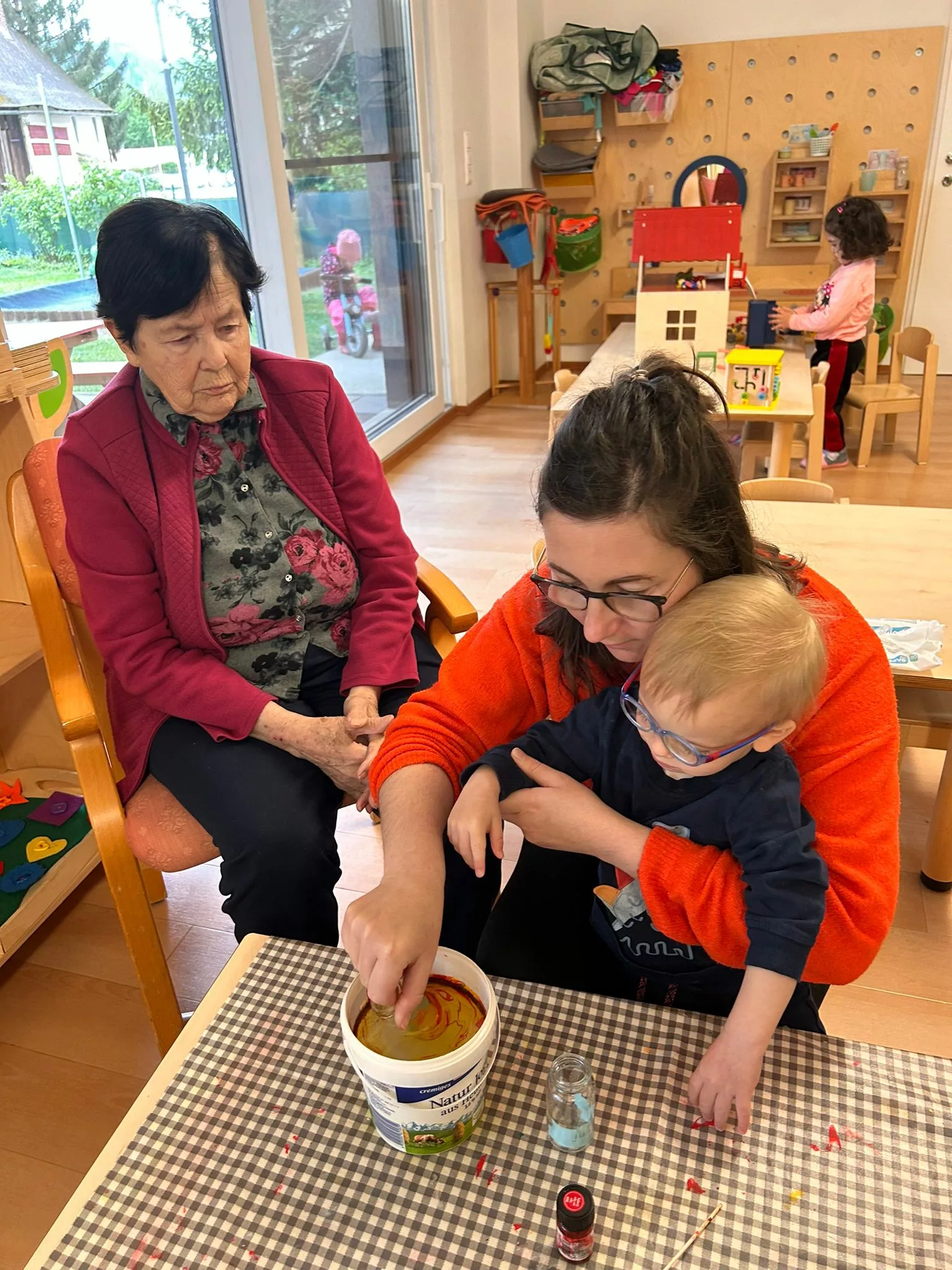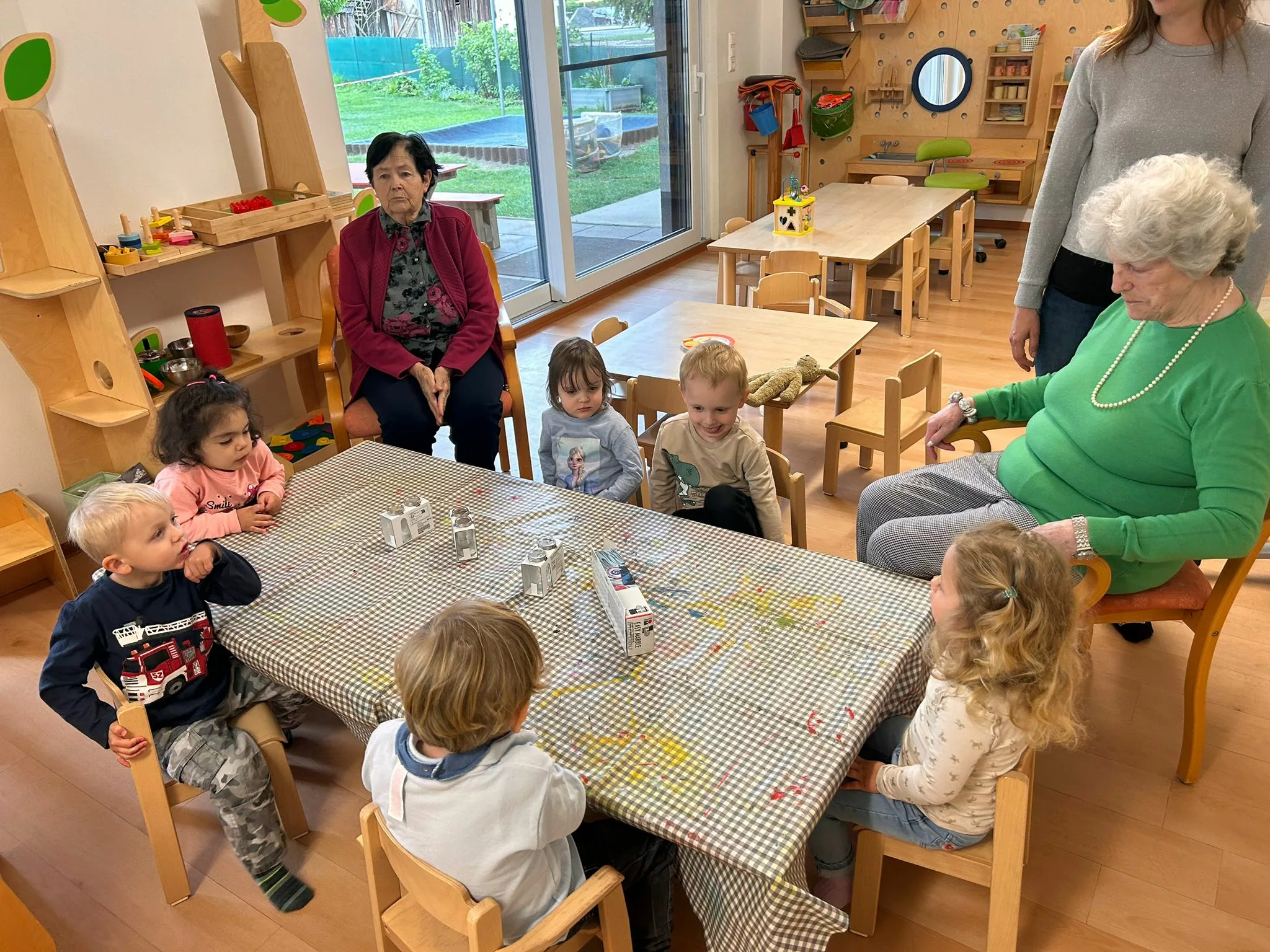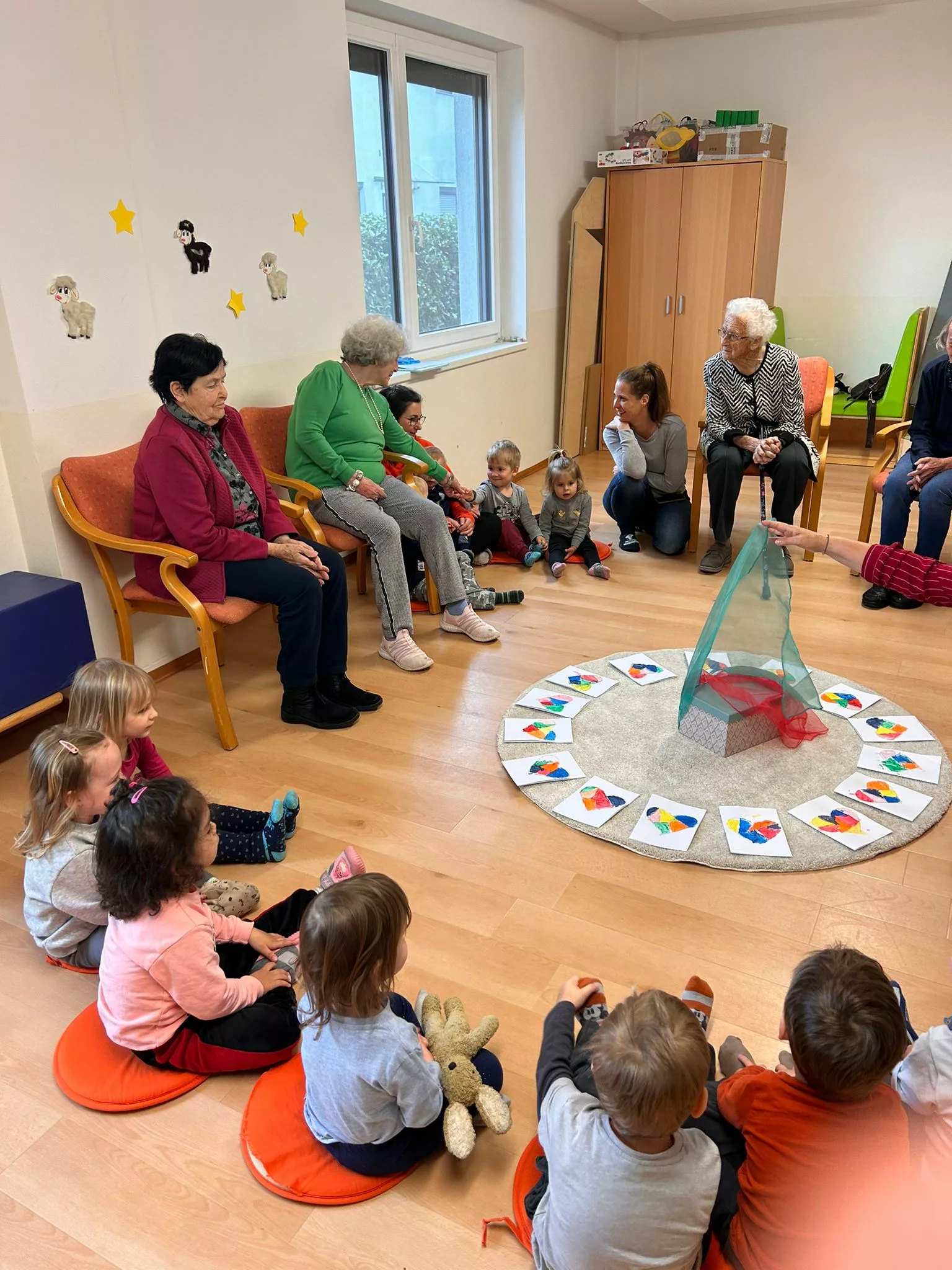 Die Kinder der Kindertagesstätte Abracadabra und die Bewohner und Bewohnerinnen des „Wie daham…“ Generationenparks Welzenegg haben heute für den Muttertag Geschenke gebastelt.