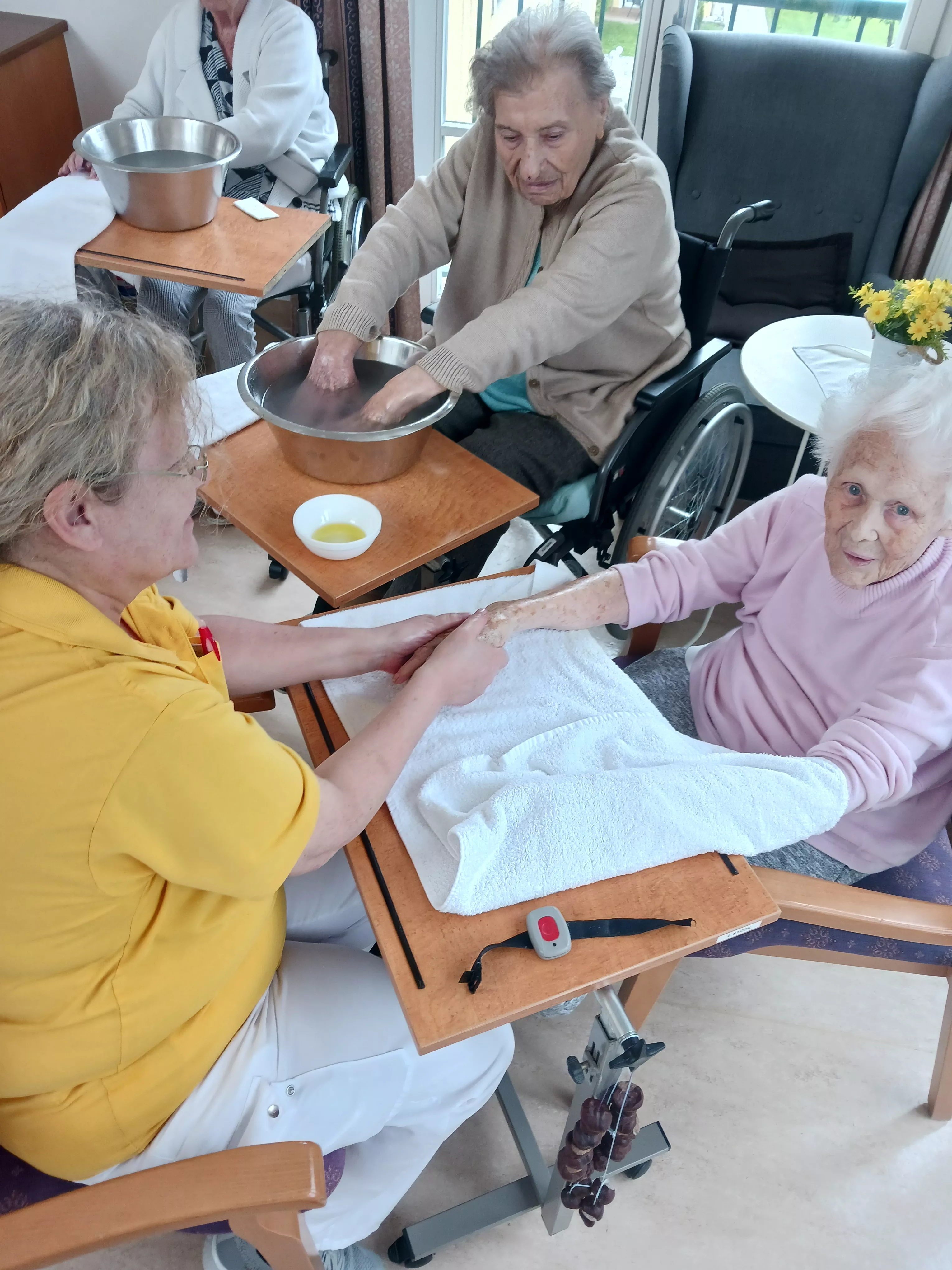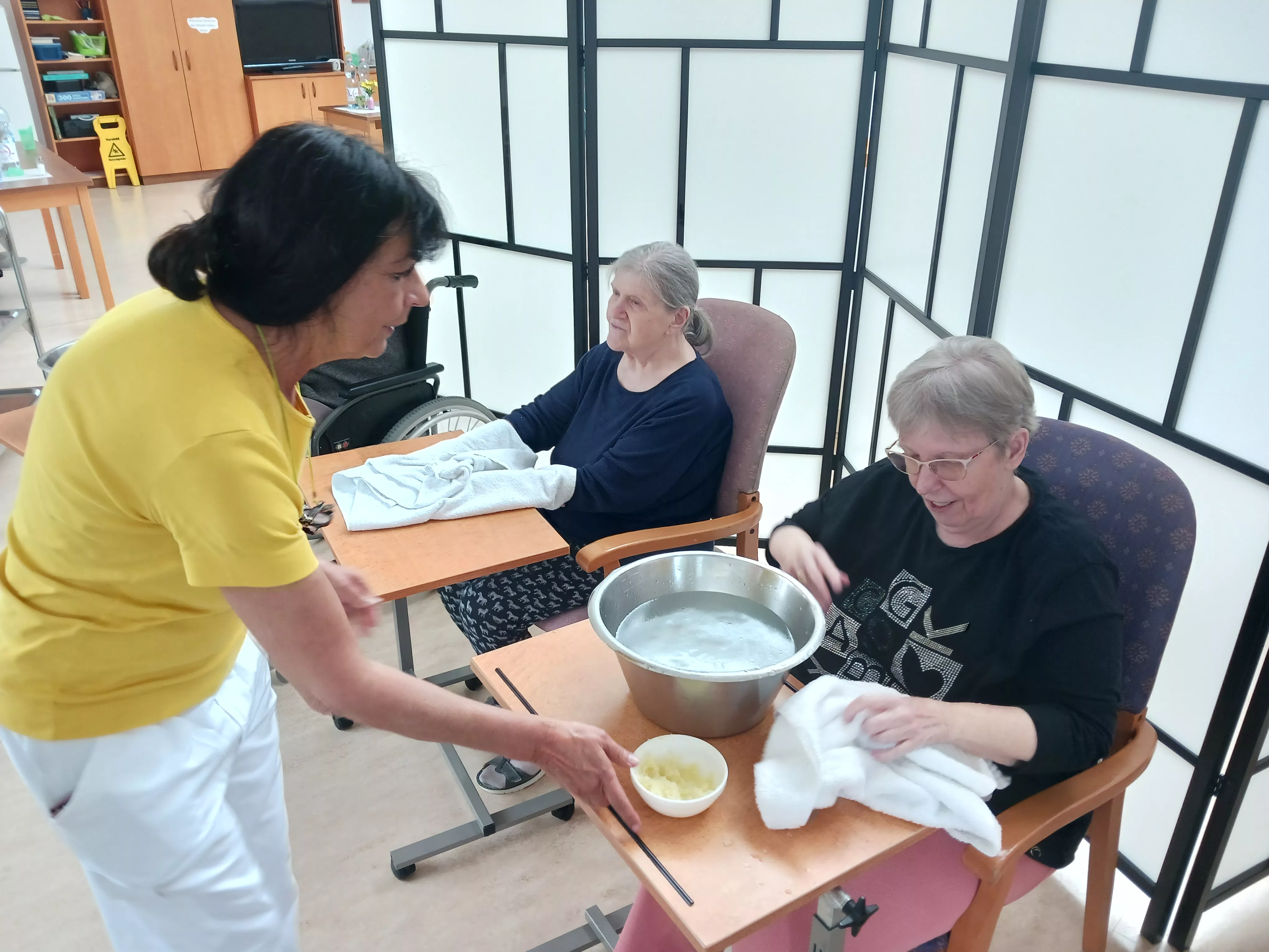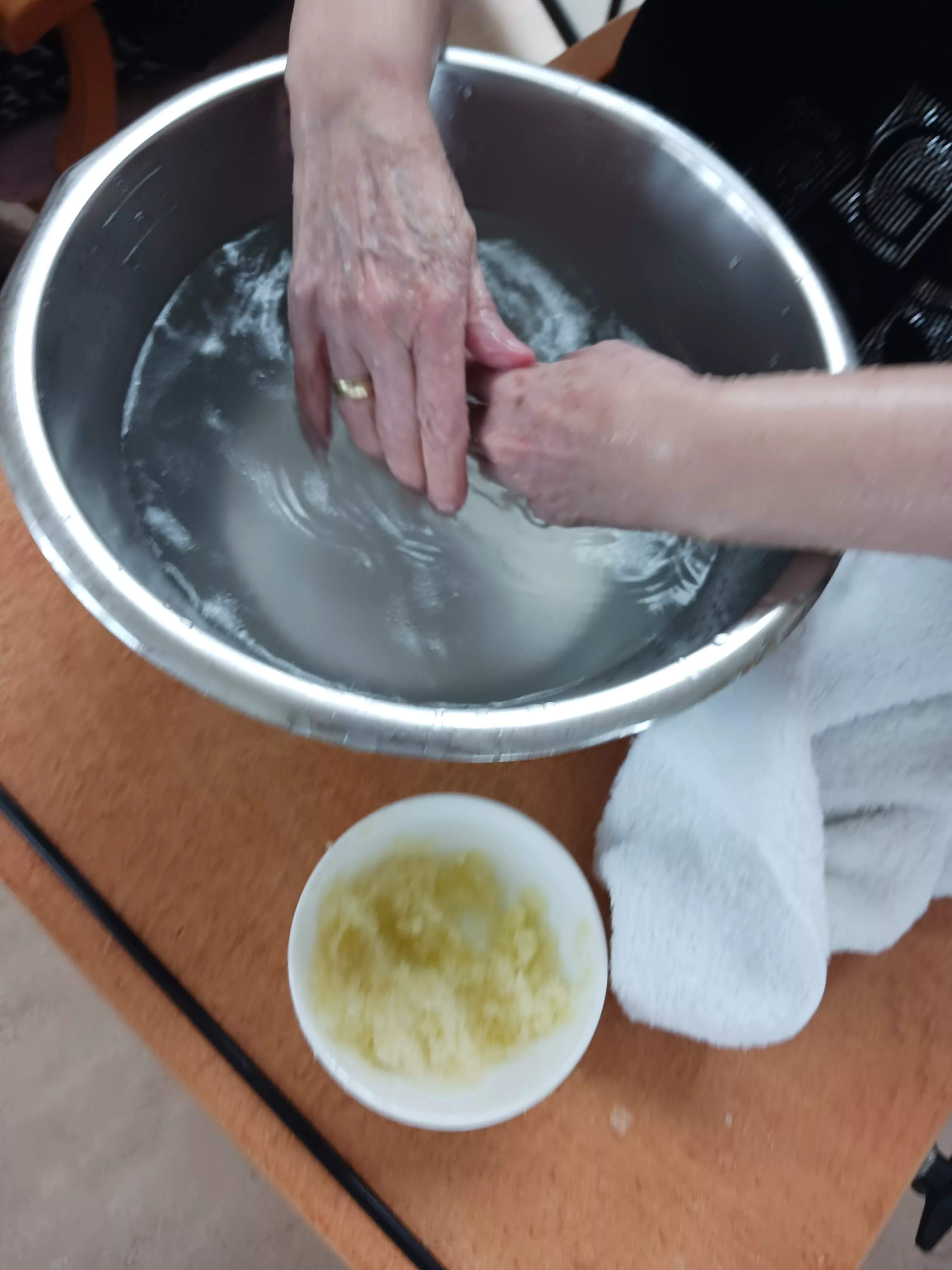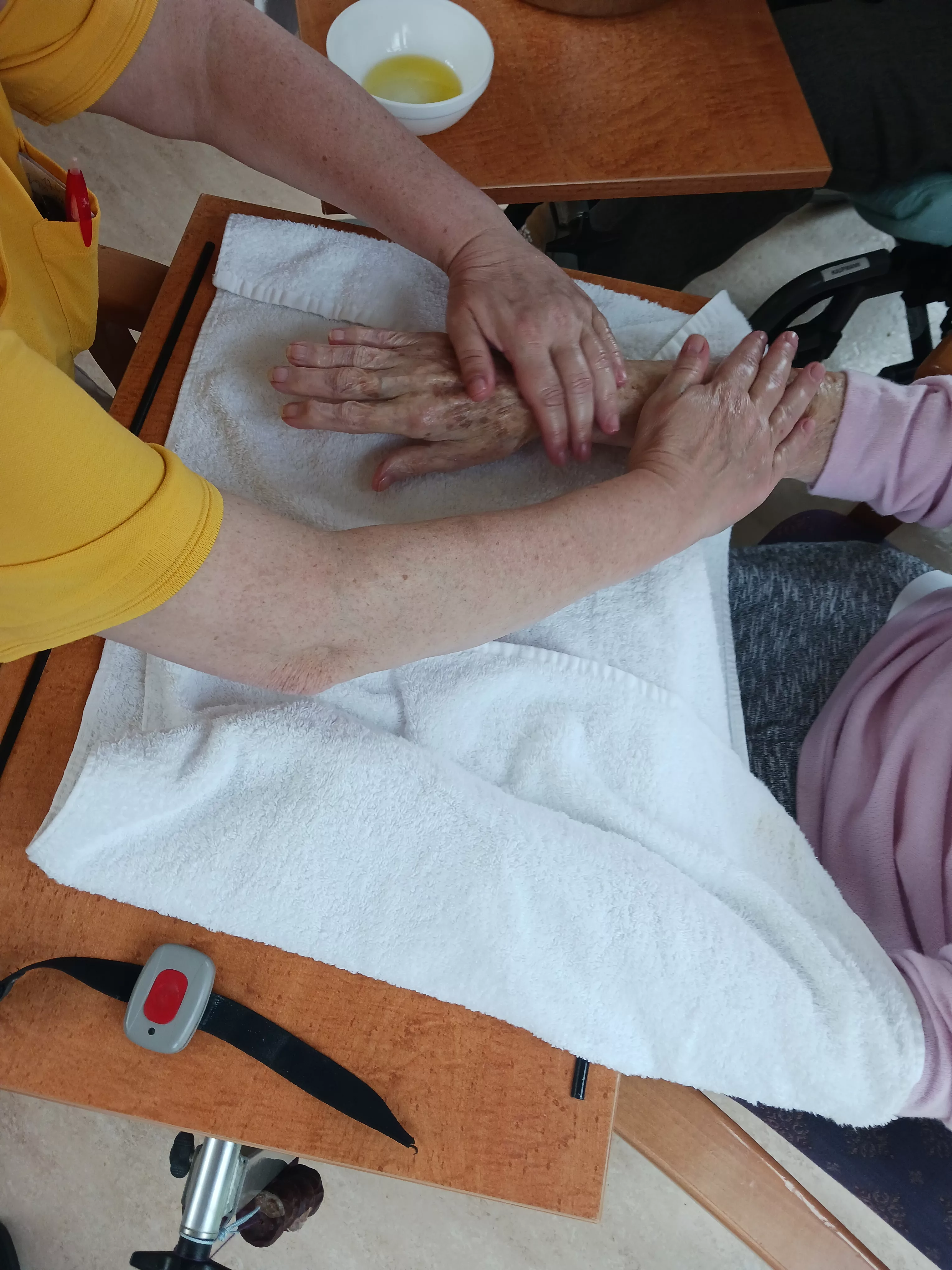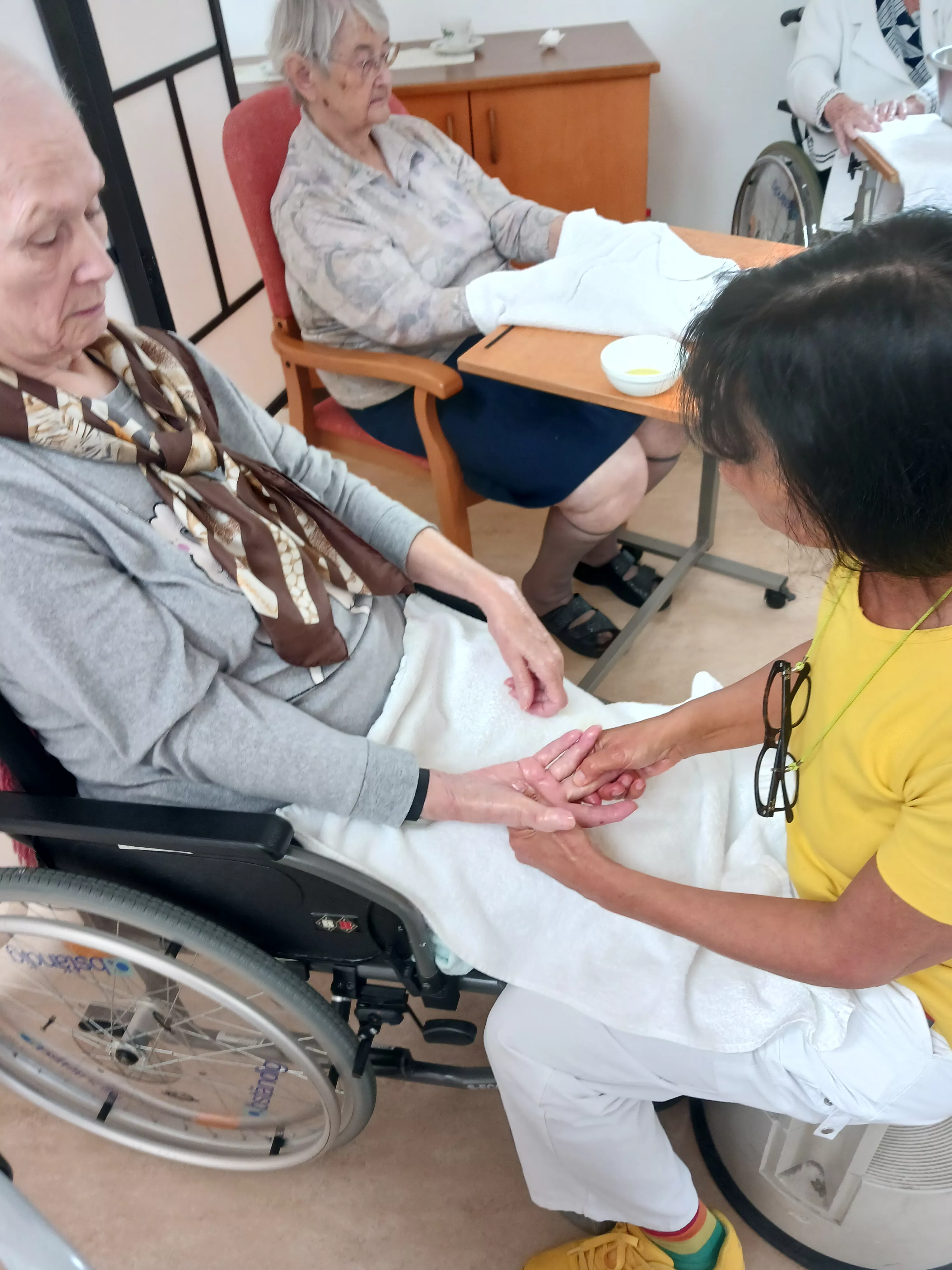 Im zweiten Teil unserer Verwöhnserie ging es vor allem um die Hände, so wurden diese heute gründlich gereinigt und gepeelt, eingeölt und gepflegt und auch gleich mit einer kleinen Massage etwas gelockert. Wer wollte konnte sich am Ende auch noch eine Nagellack auftragen lassen.