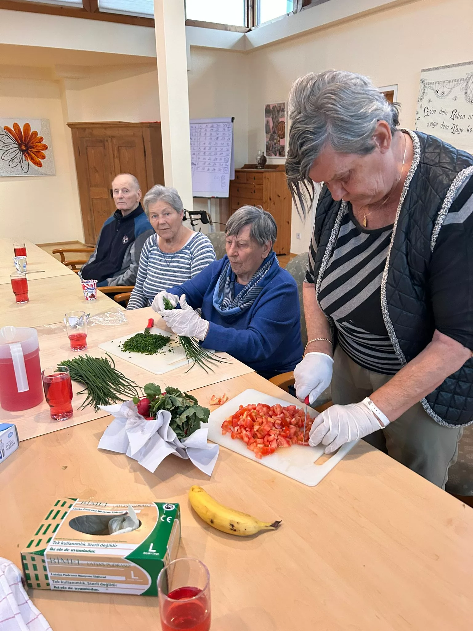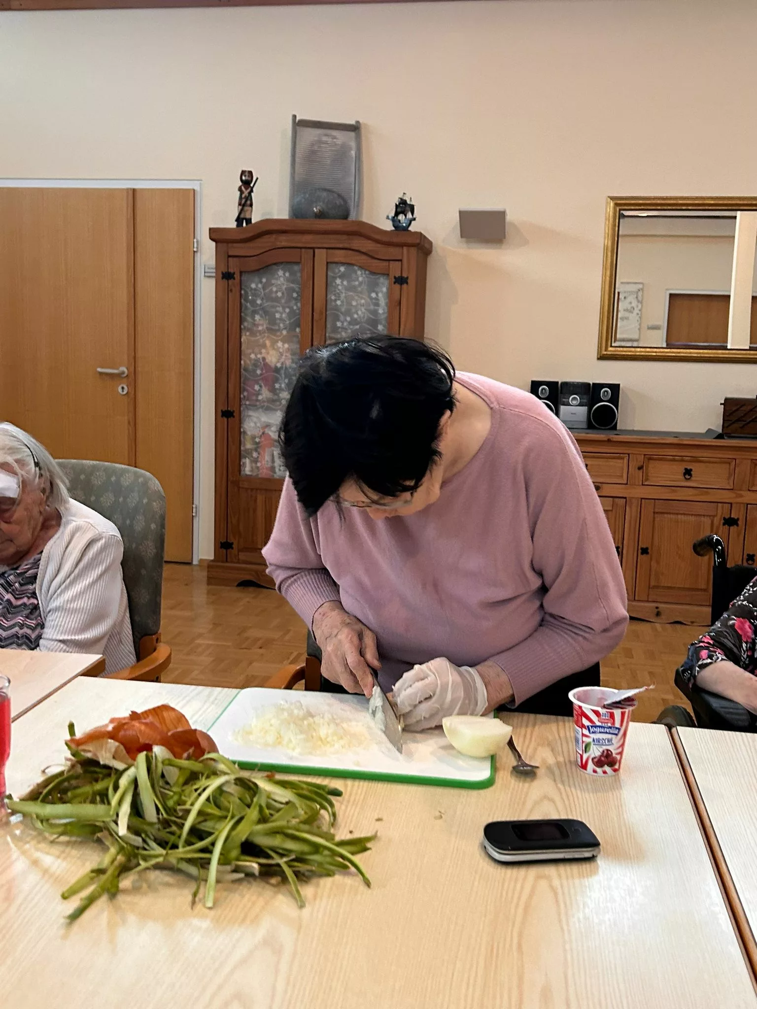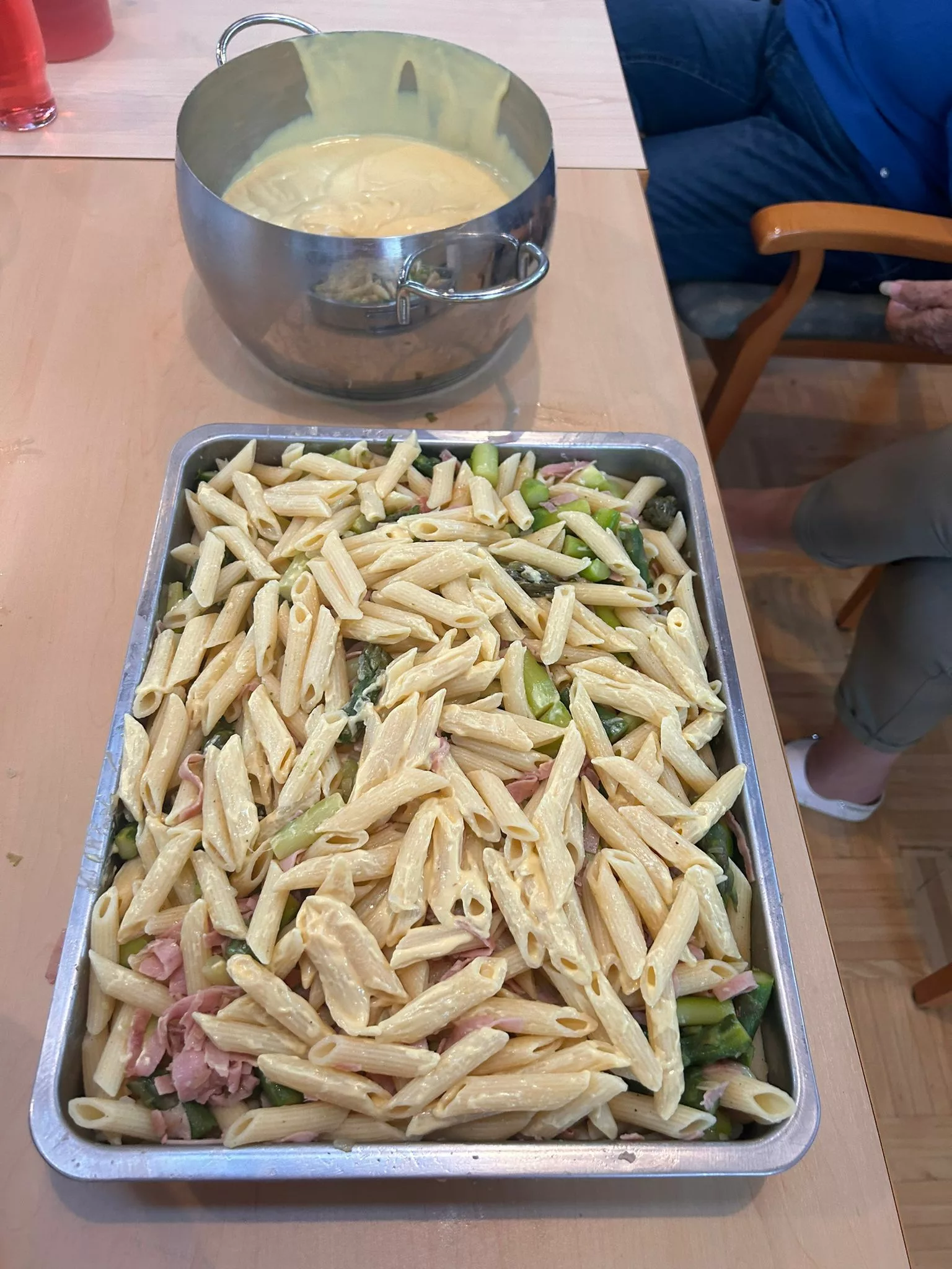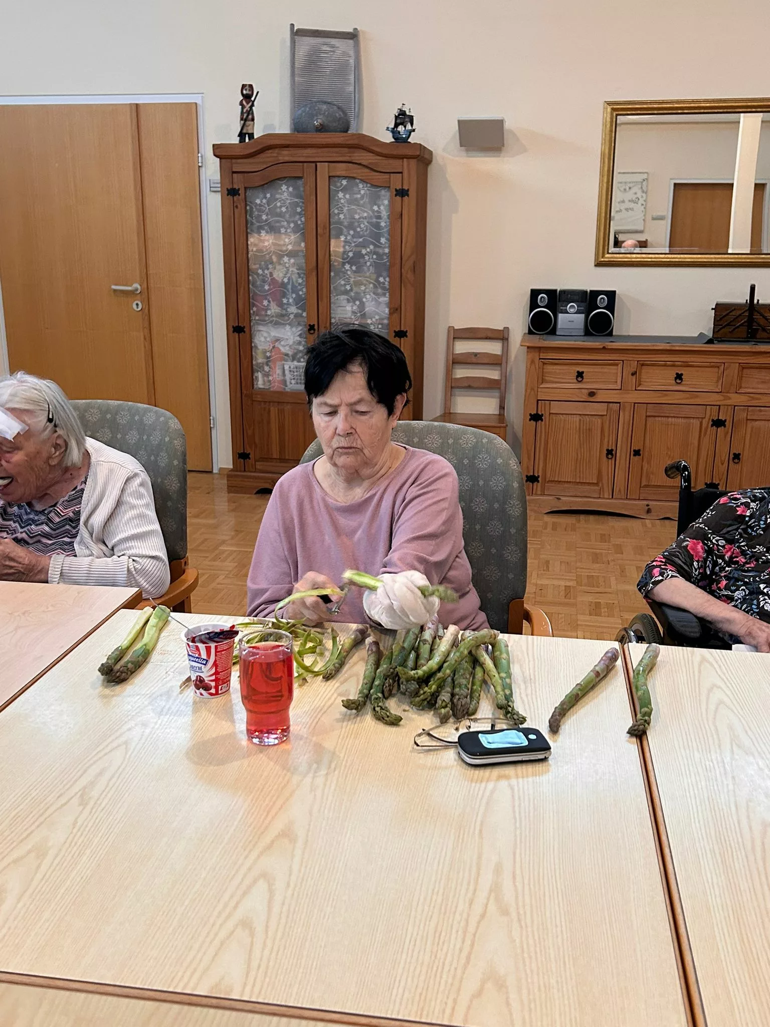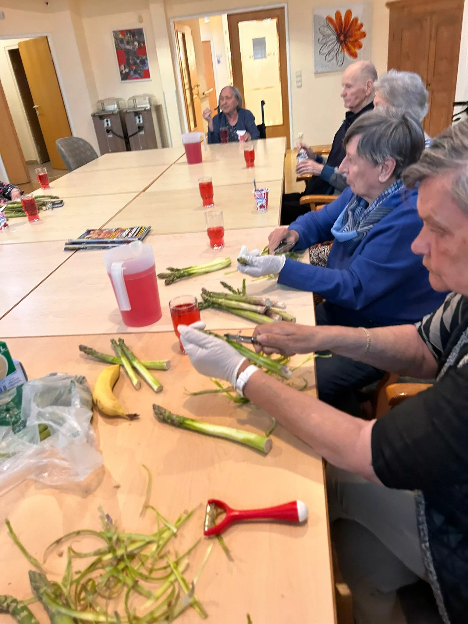 Auf Wunsch der Bewohner gab es bei uns Spargelauflauf mit Schinken und Sauce Hollandaise. Ein paar wenige haben das erste Mal Spargel gegessen und es schmeckte ihnen ausgezeichnet.