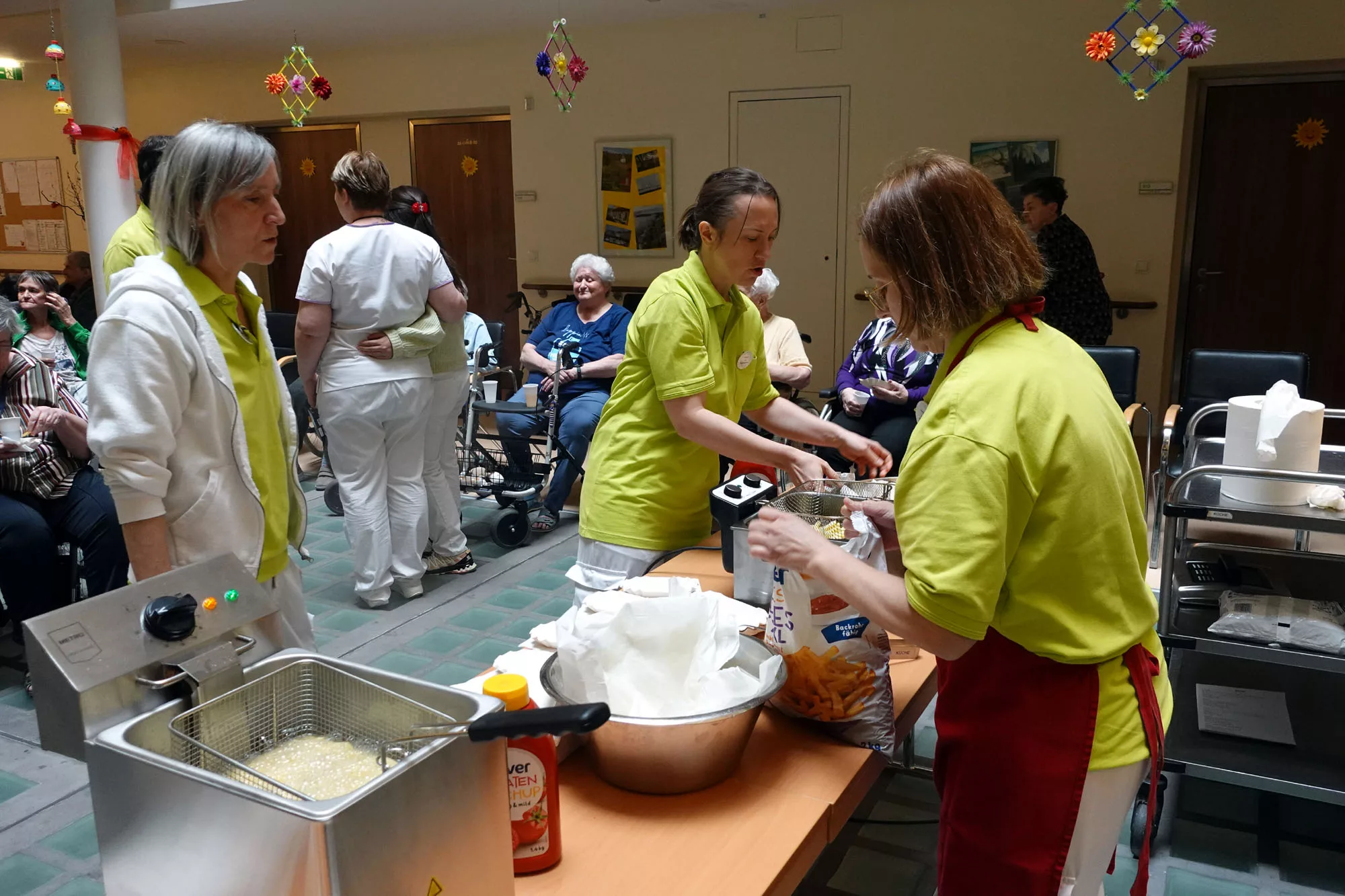 schmackhafte Pommes frites Heute durften sich die BewohnerInnen über die beliebten Pommes freuen, die ihnen vom Animationsteam hin und wieder frisch zubereitet werden.
