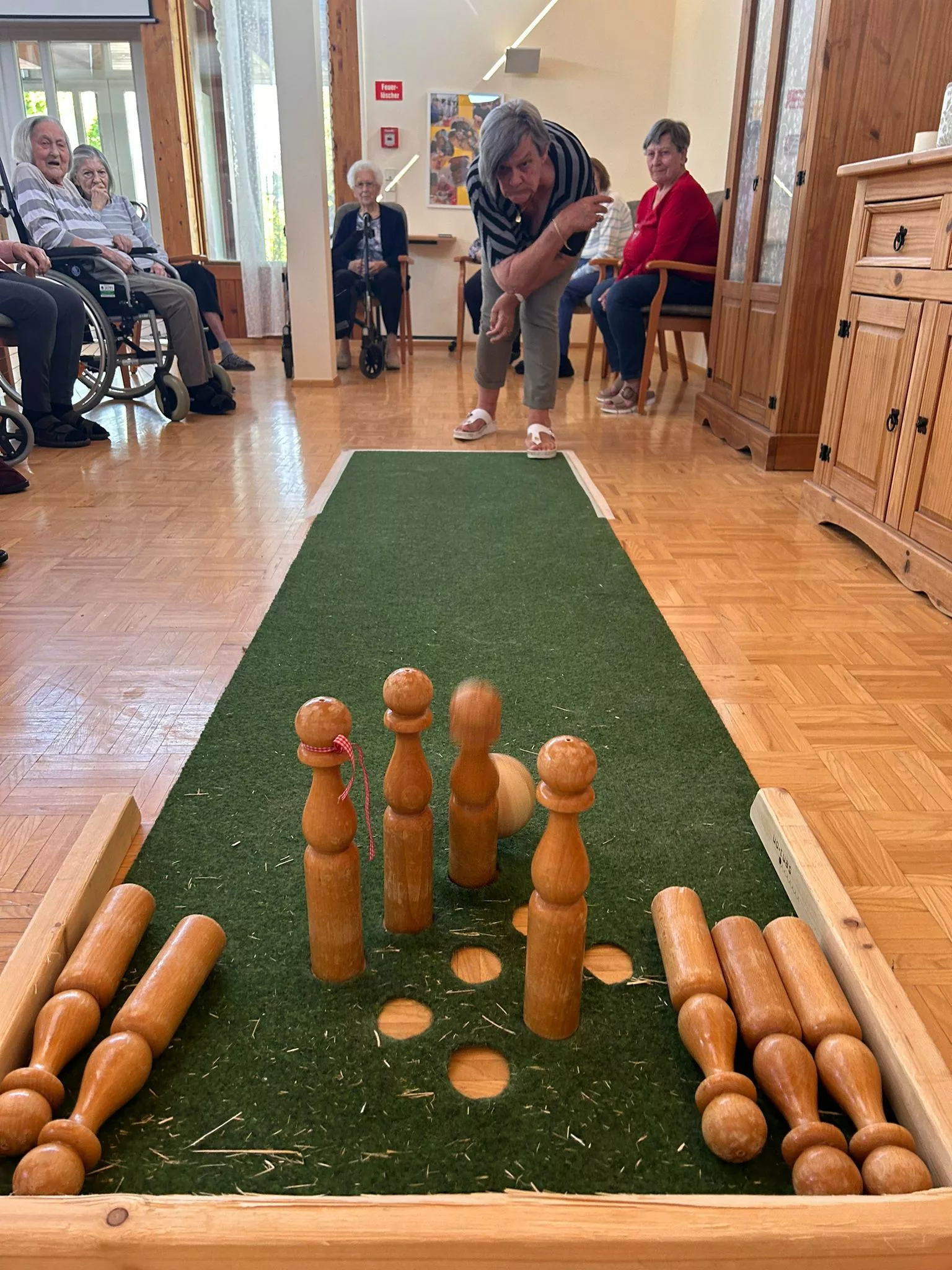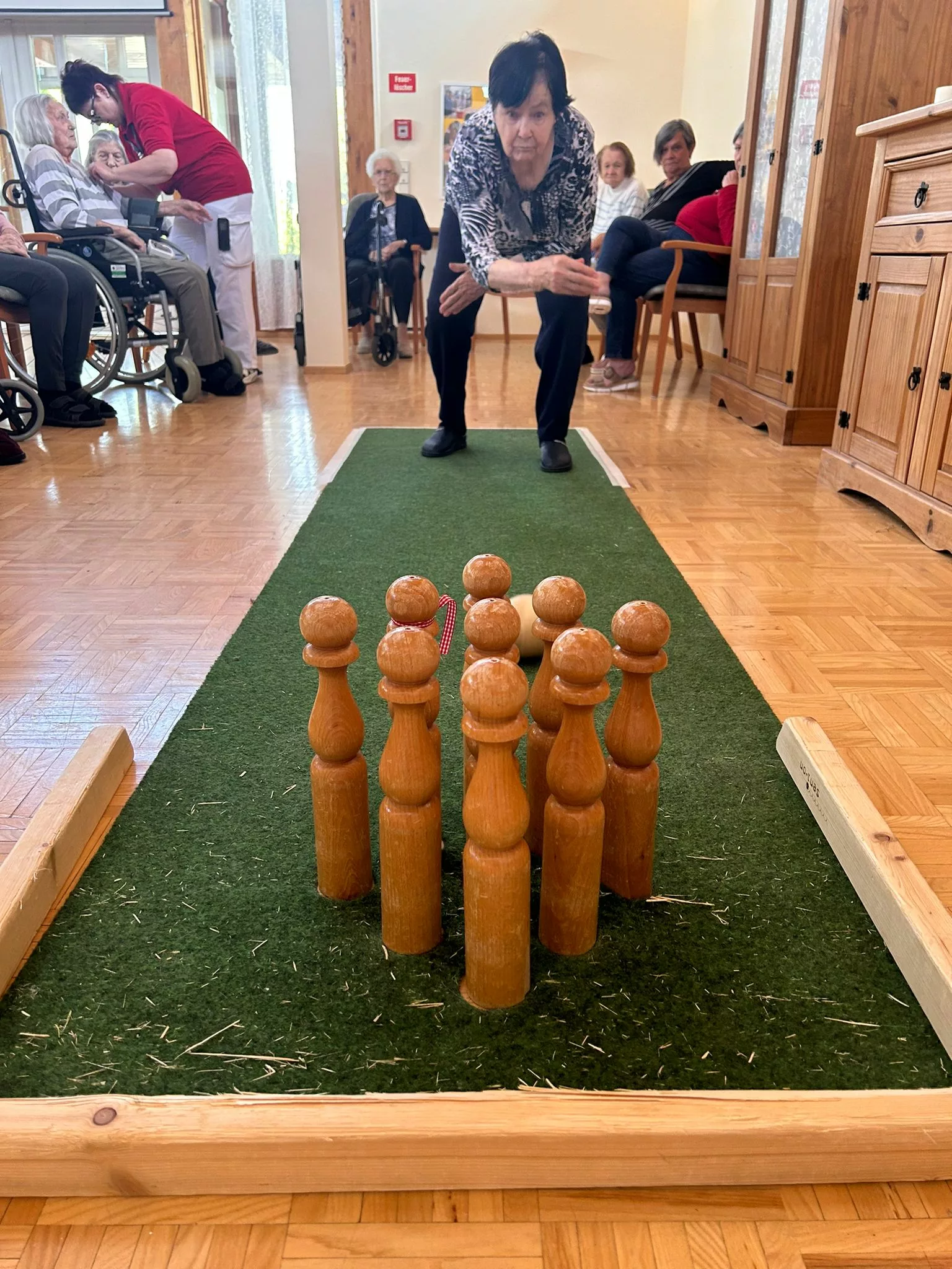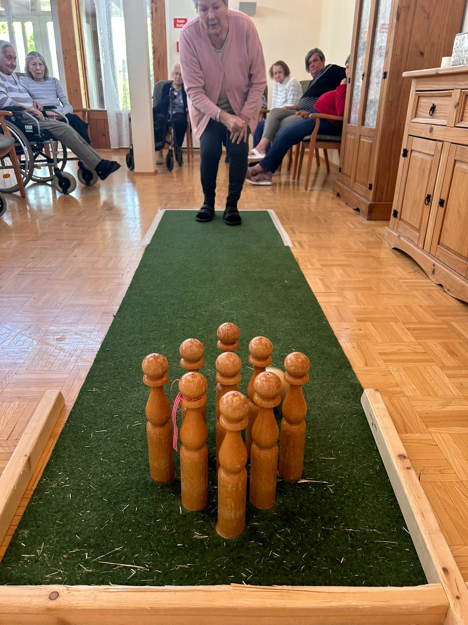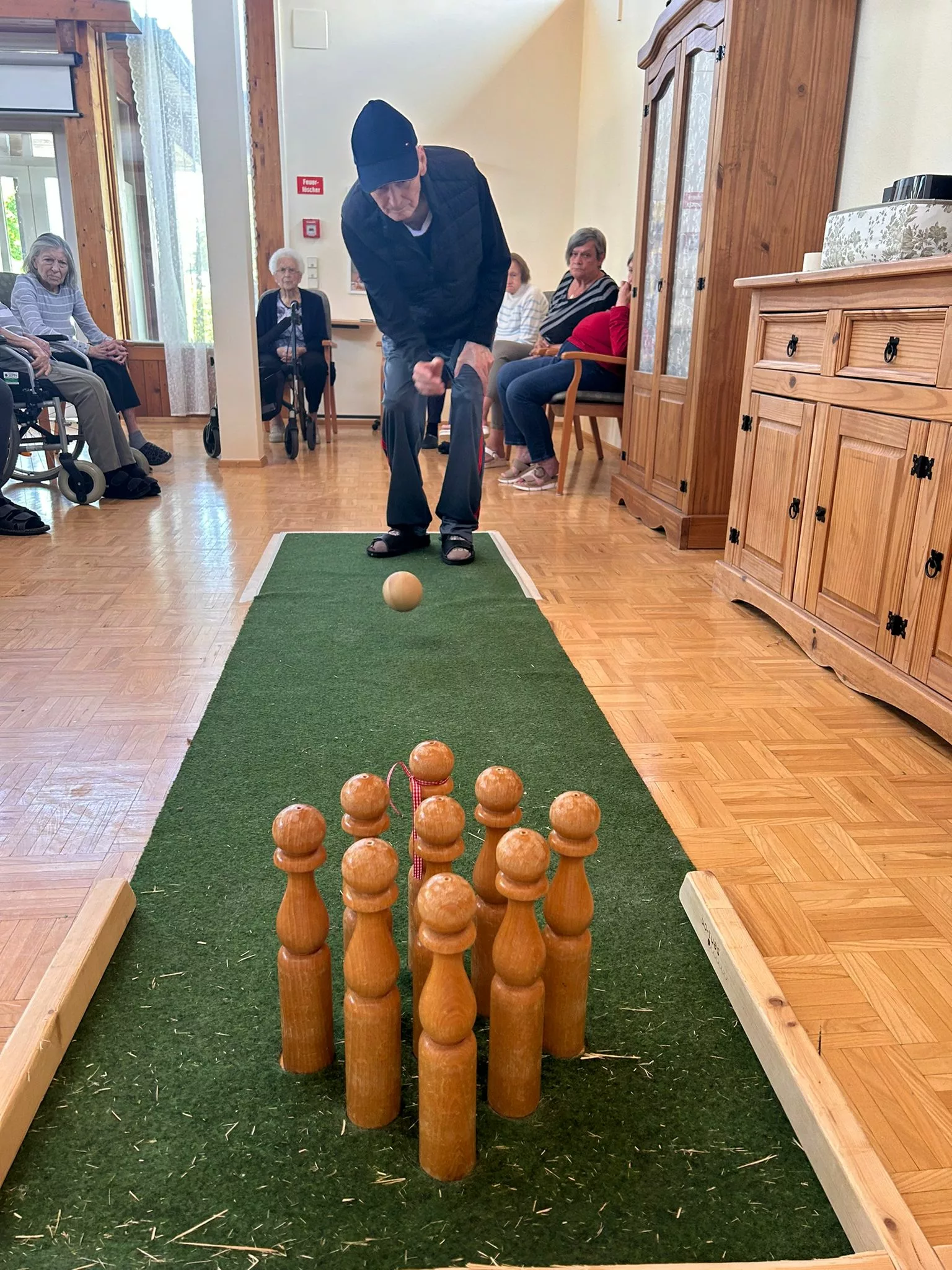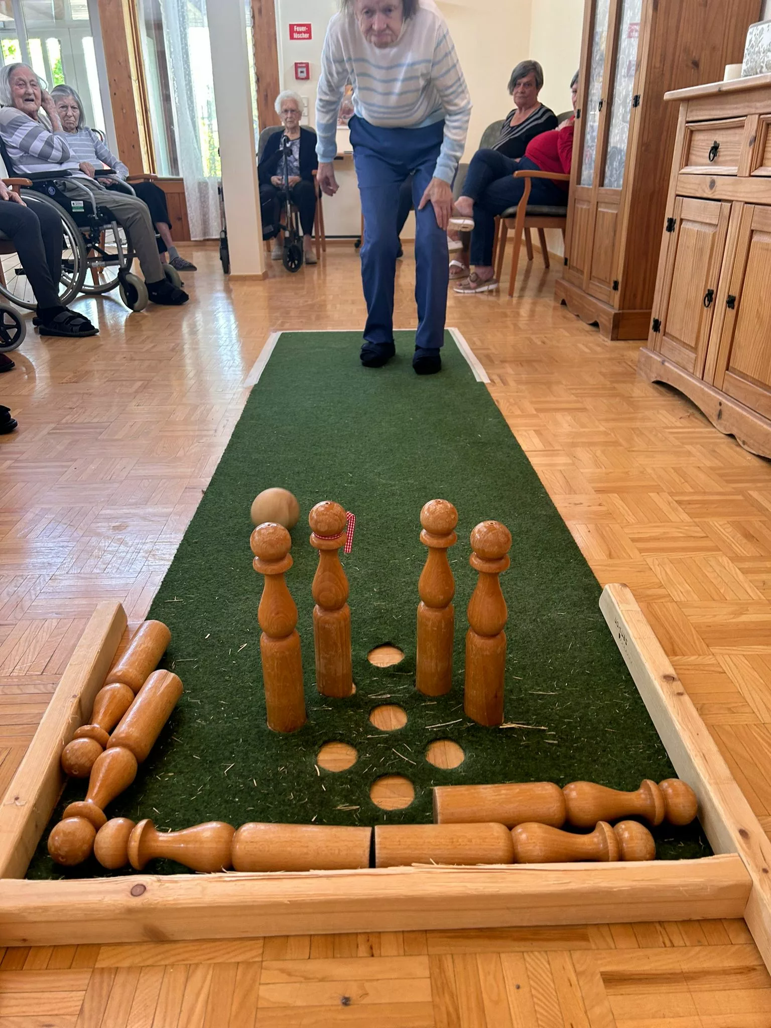 Heute haben wir unsere BewohnerInnen von Haus Sonnenblume zum wöchentlichen Kegeln angetroffen.