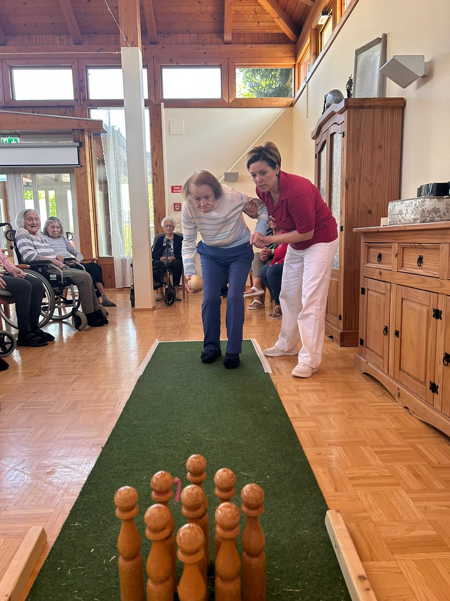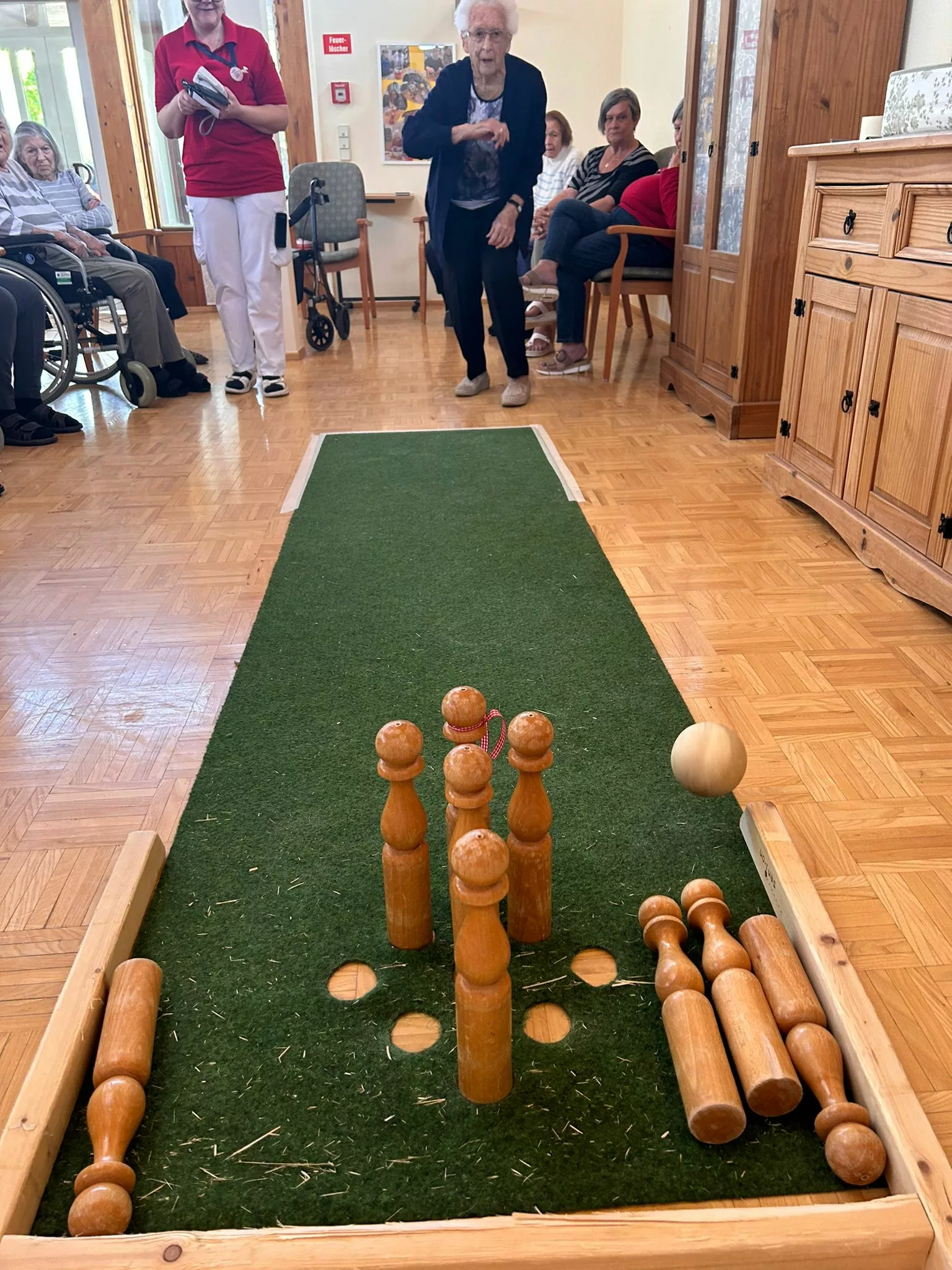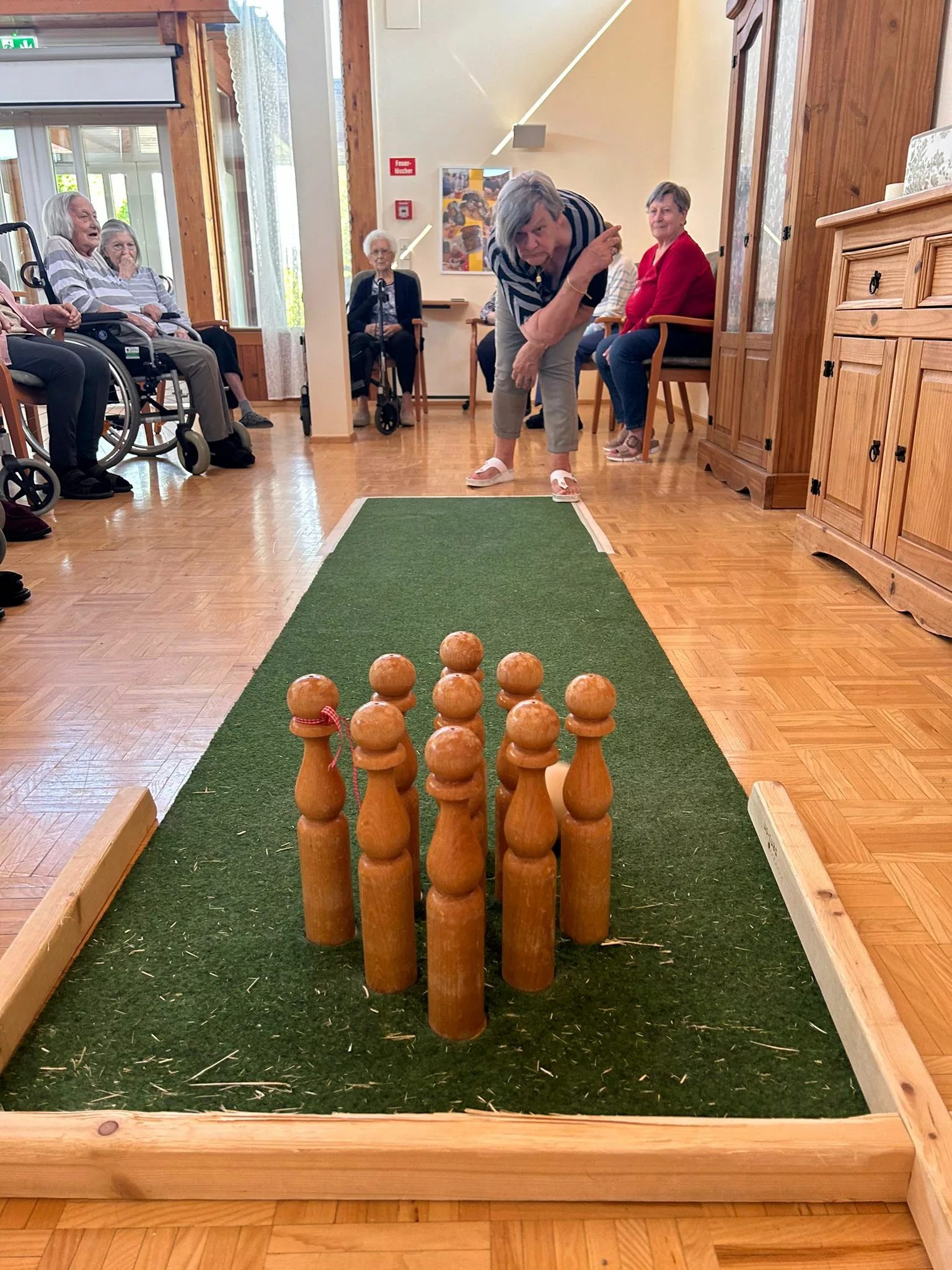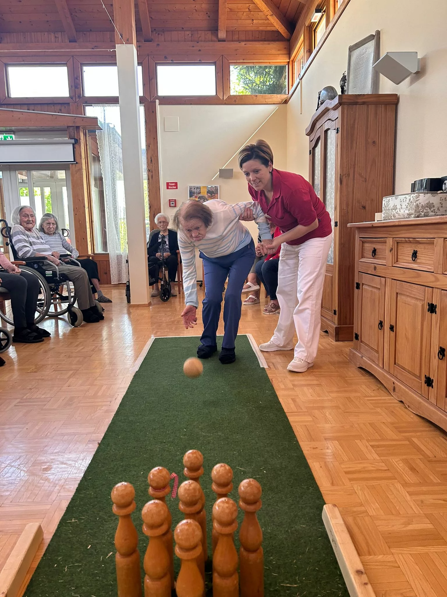 Heute haben wir unsere BewohnerInnen von Haus Sonnenblume zum wöchentlichen Kegeln angetroffen.