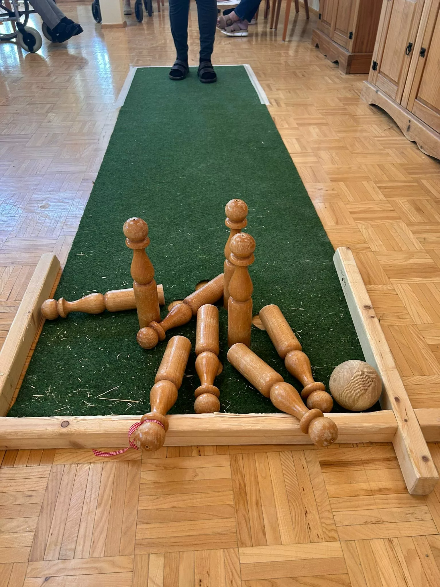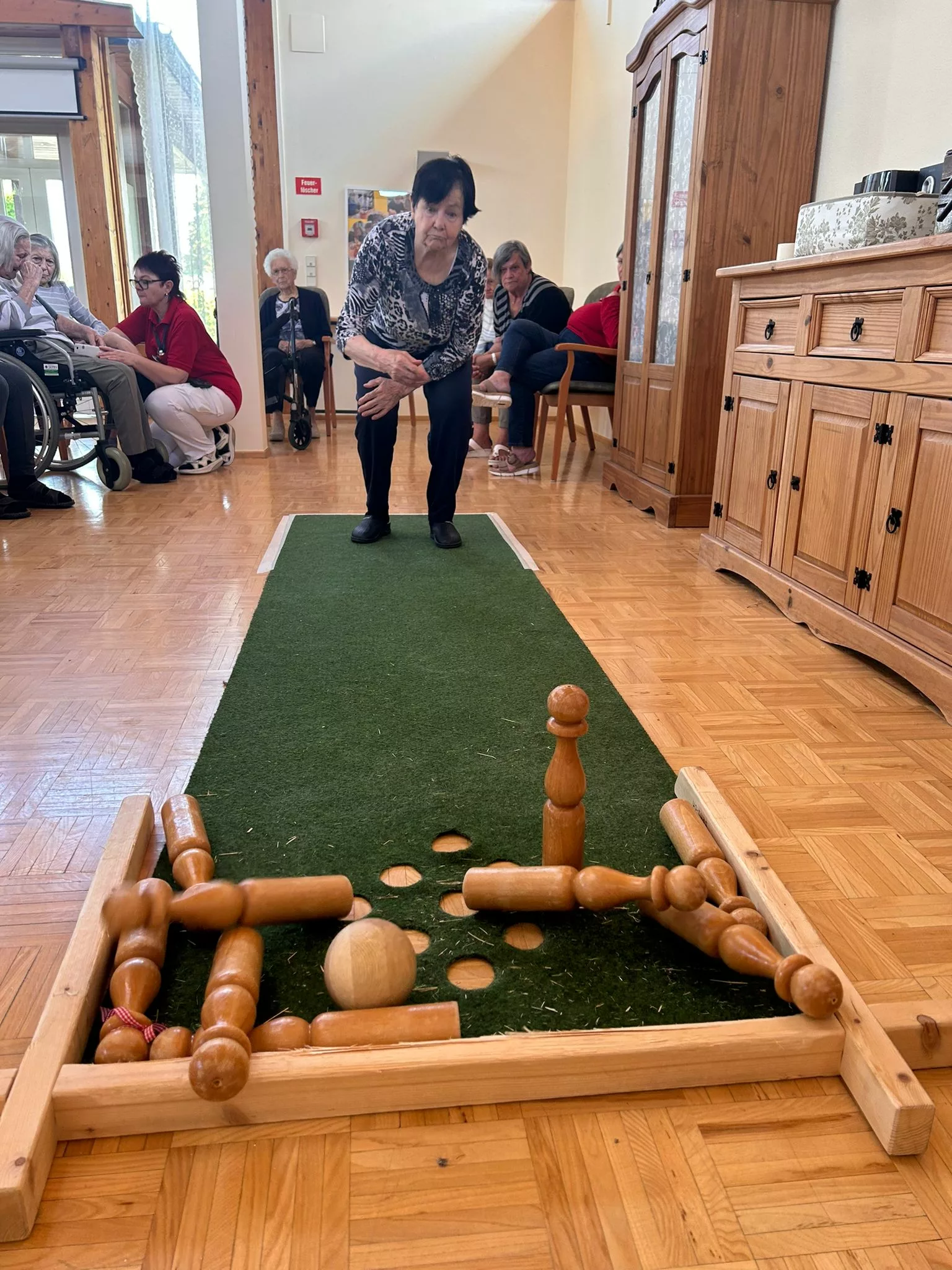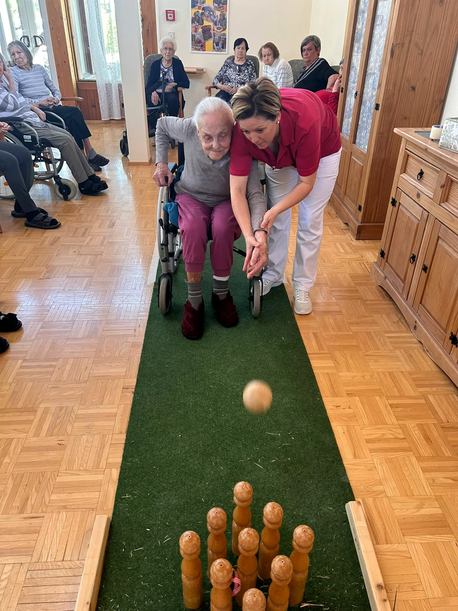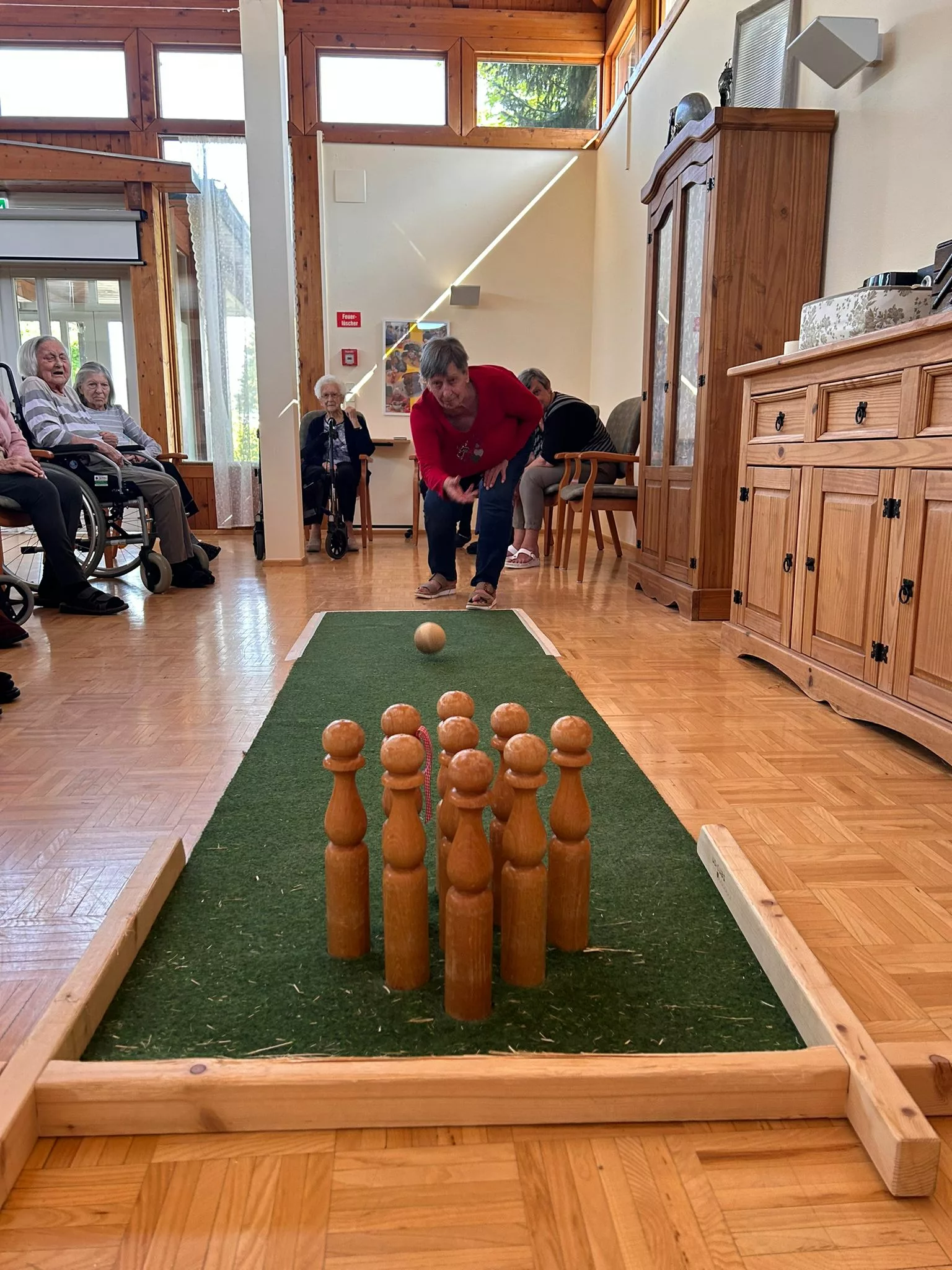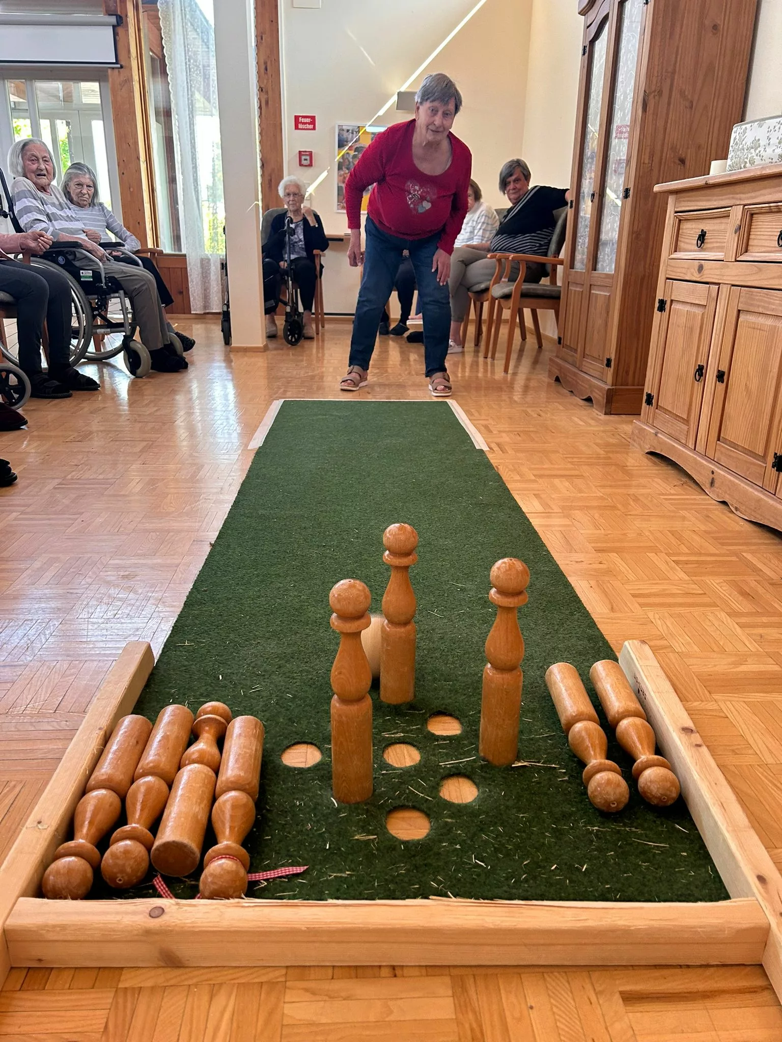 Heute haben wir unsere BewohnerInnen von Haus Sonnenblume zum wöchentlichen Kegeln angetroffen.