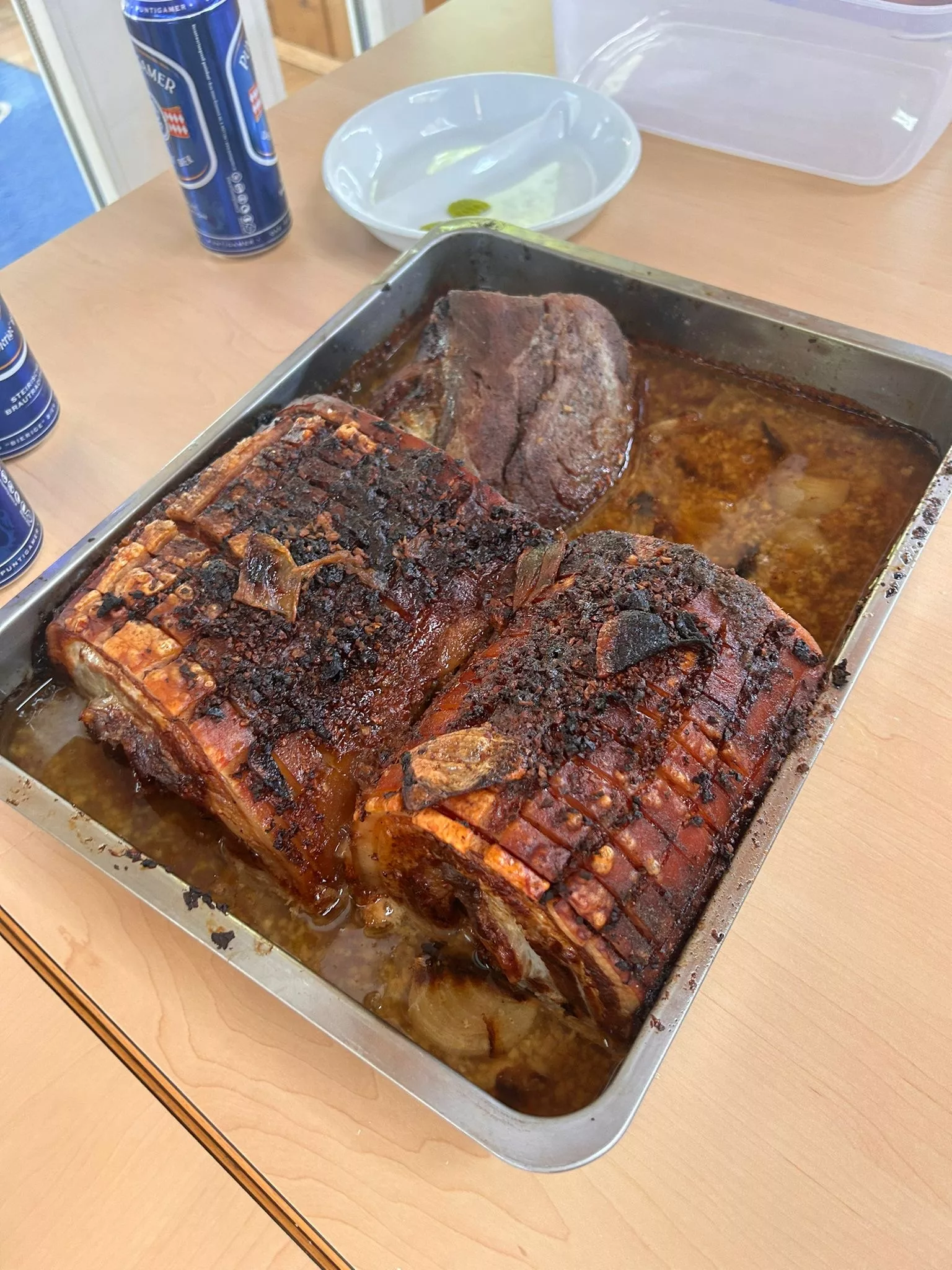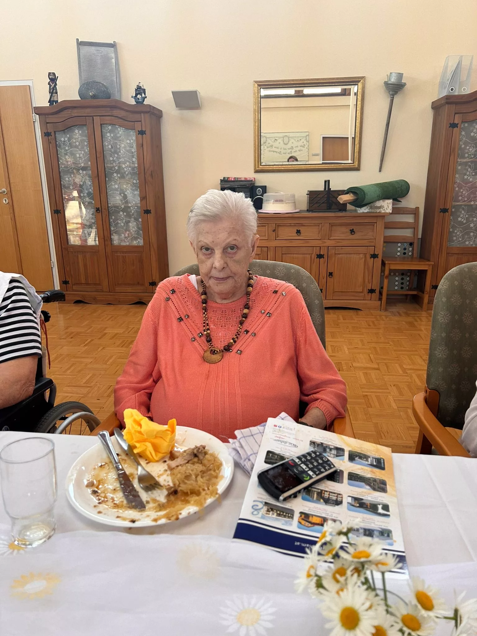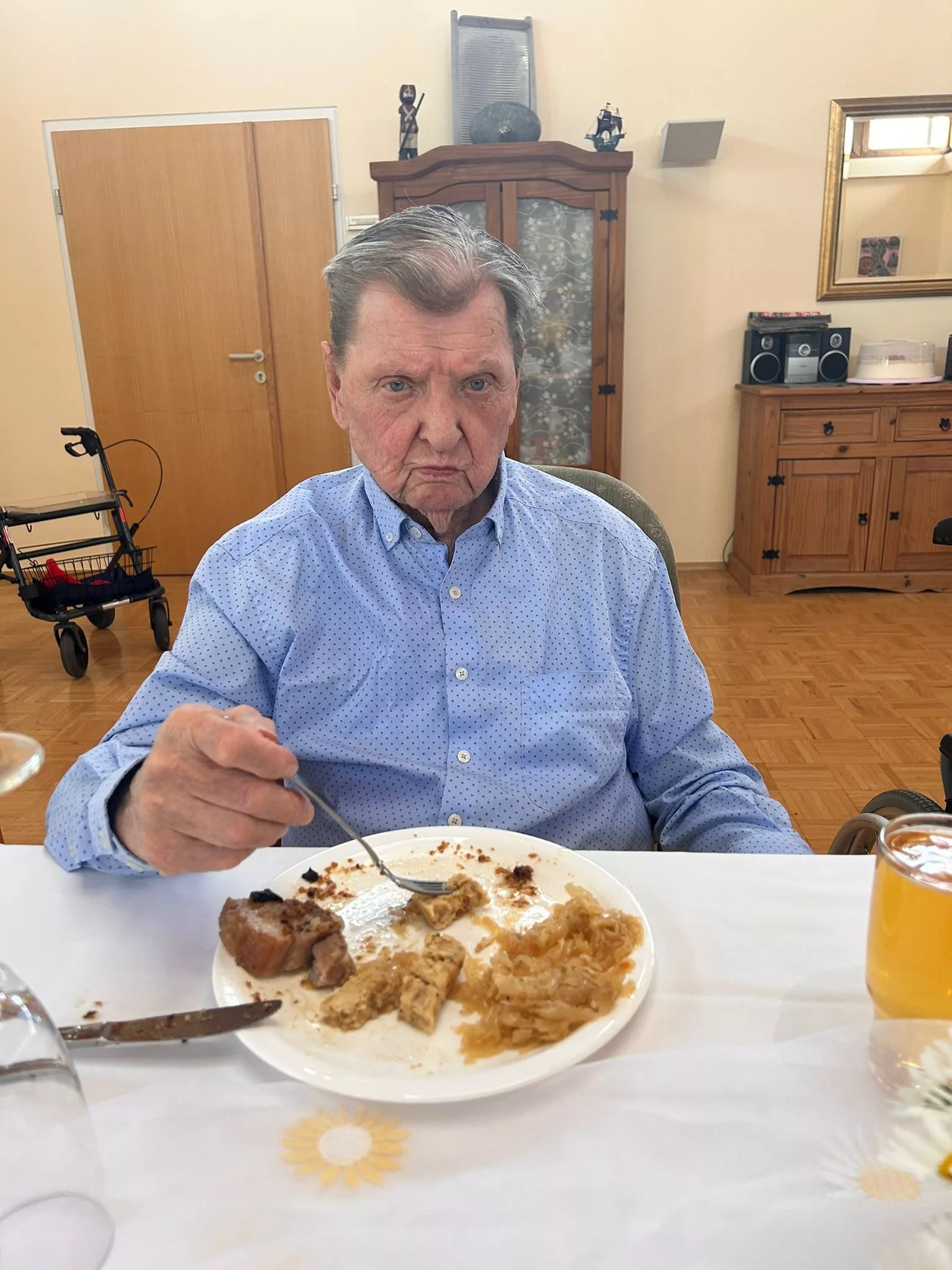 Es gab Schweinsbraten mit Sauerkraut und Serviettenknödel und als Dessert Topfentorte mit Kaffee.