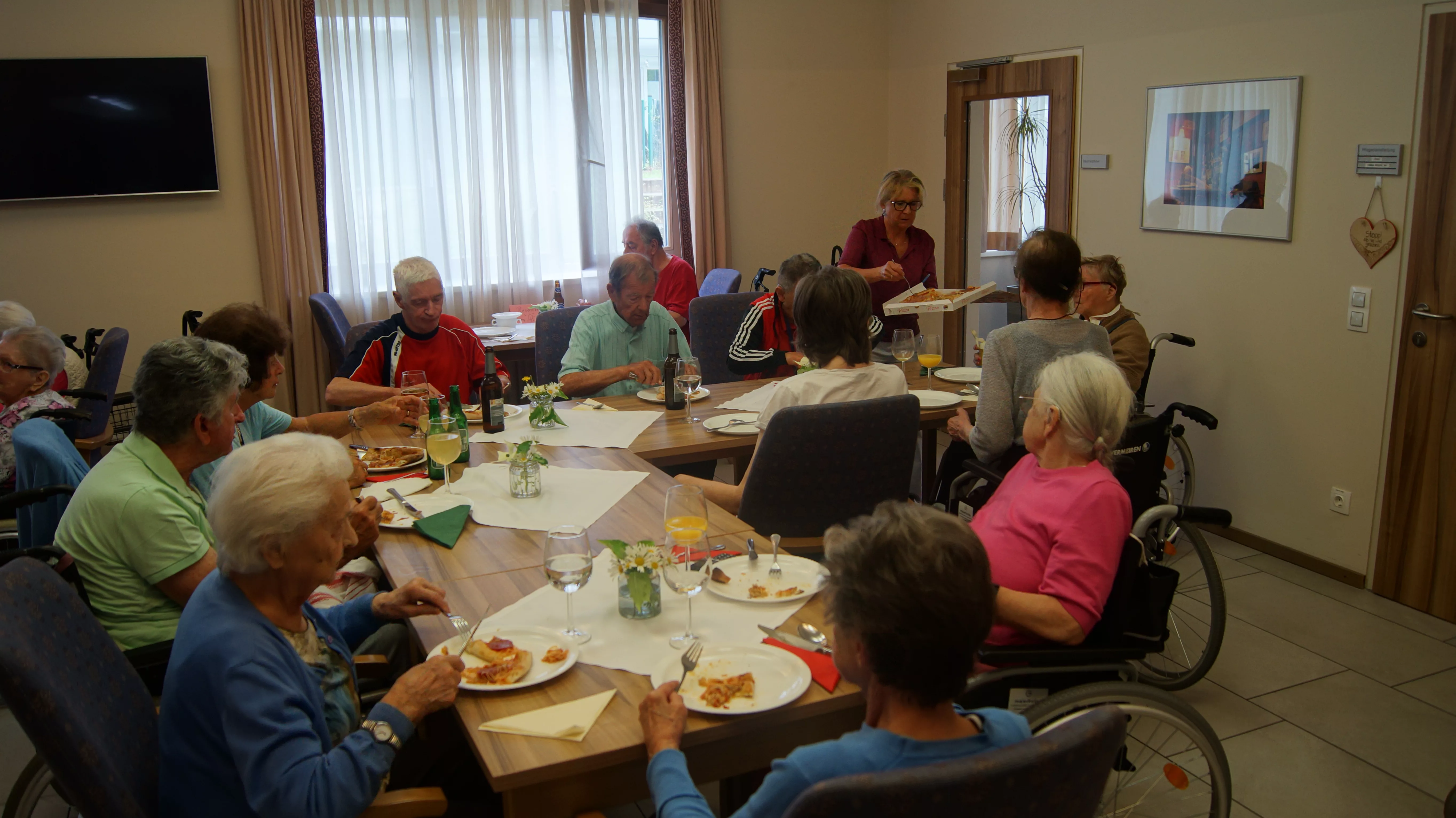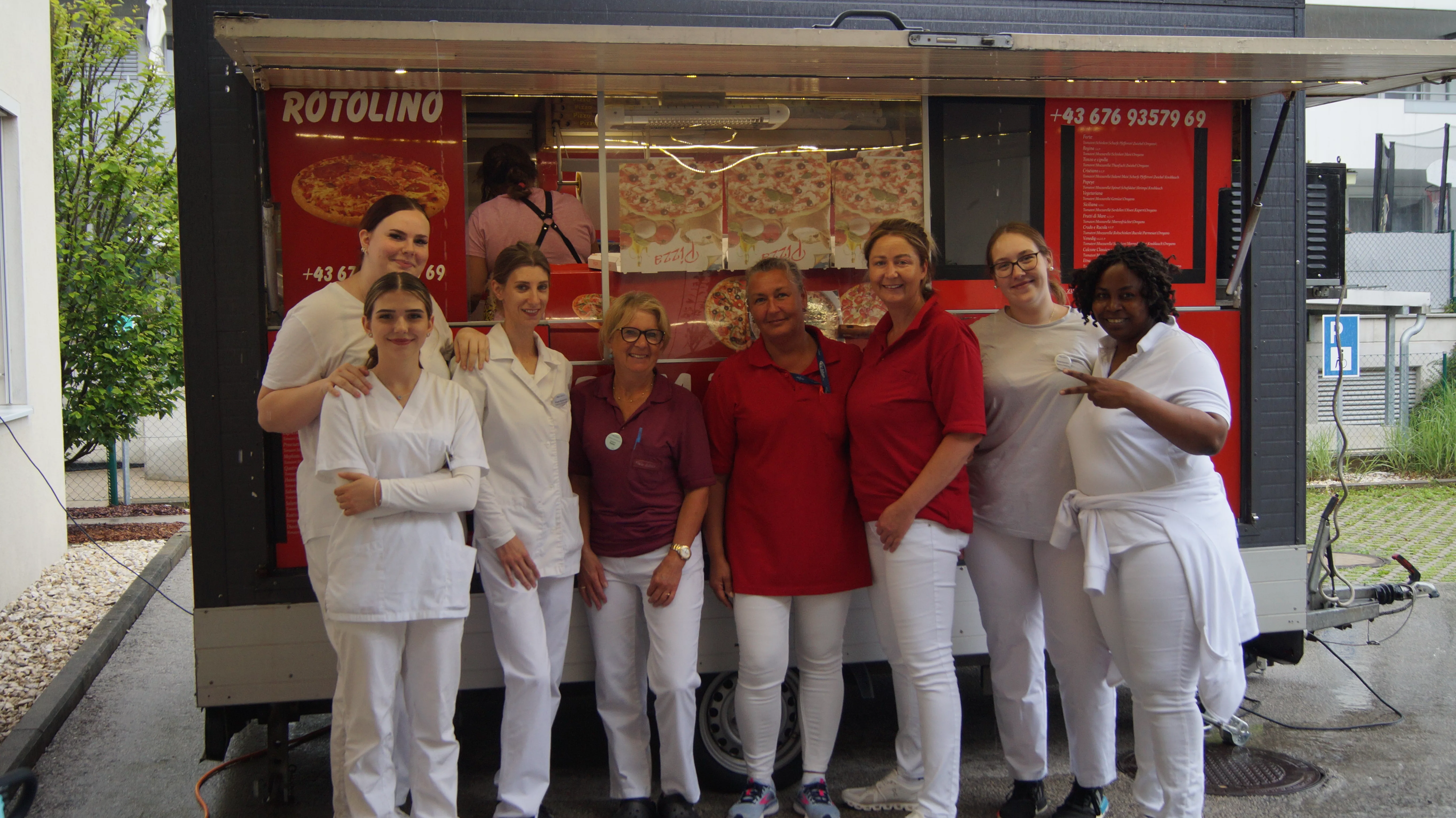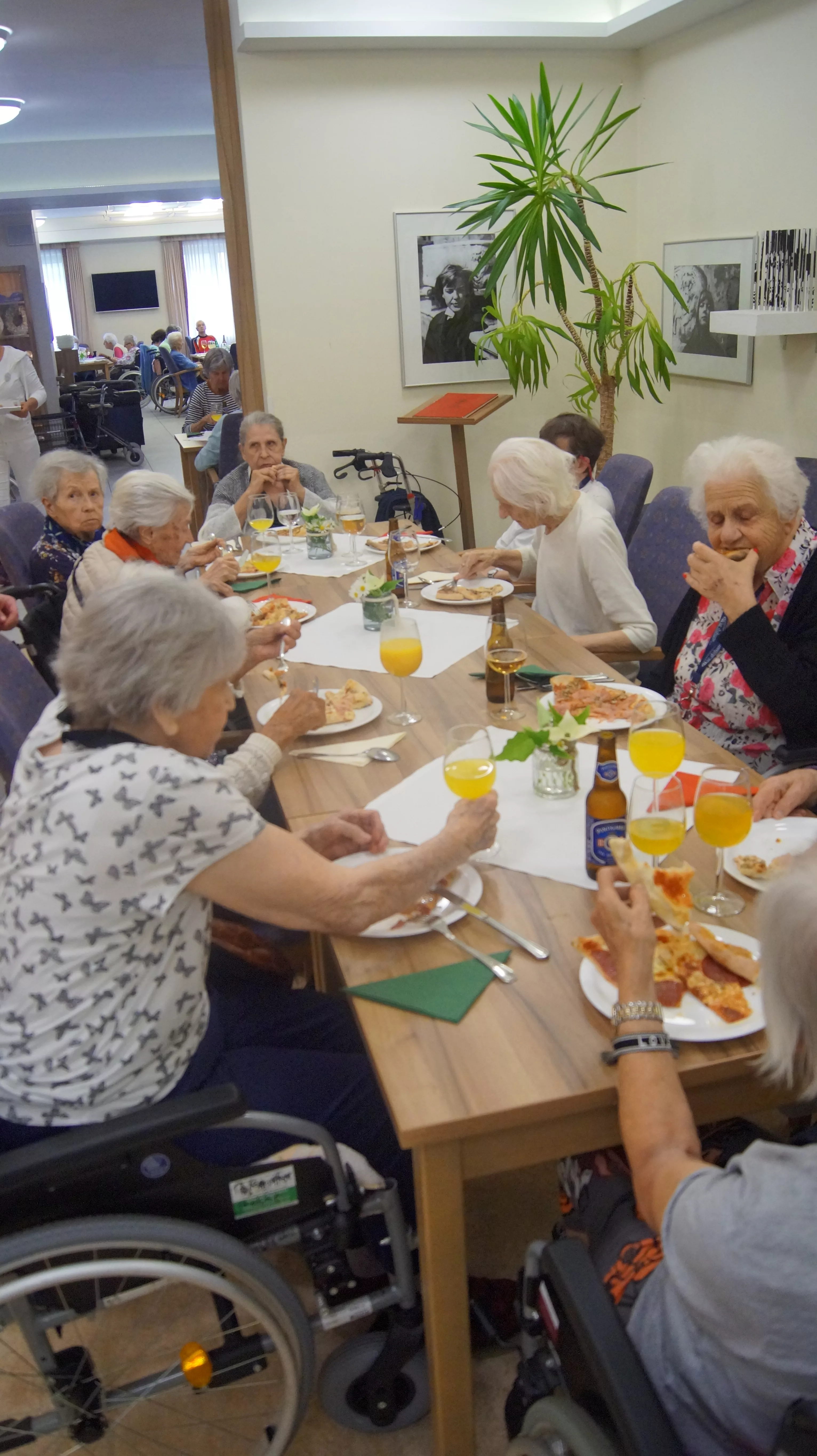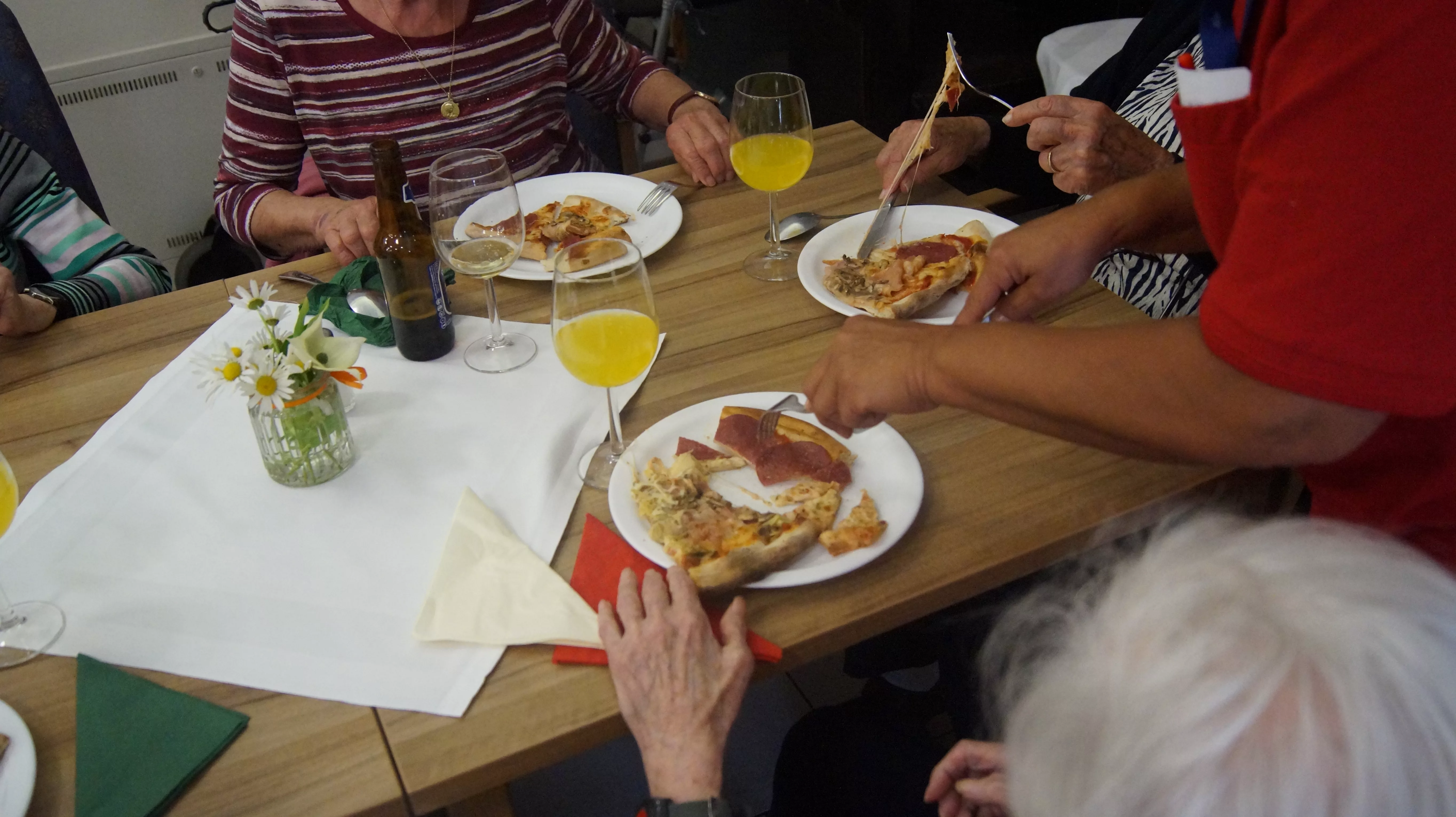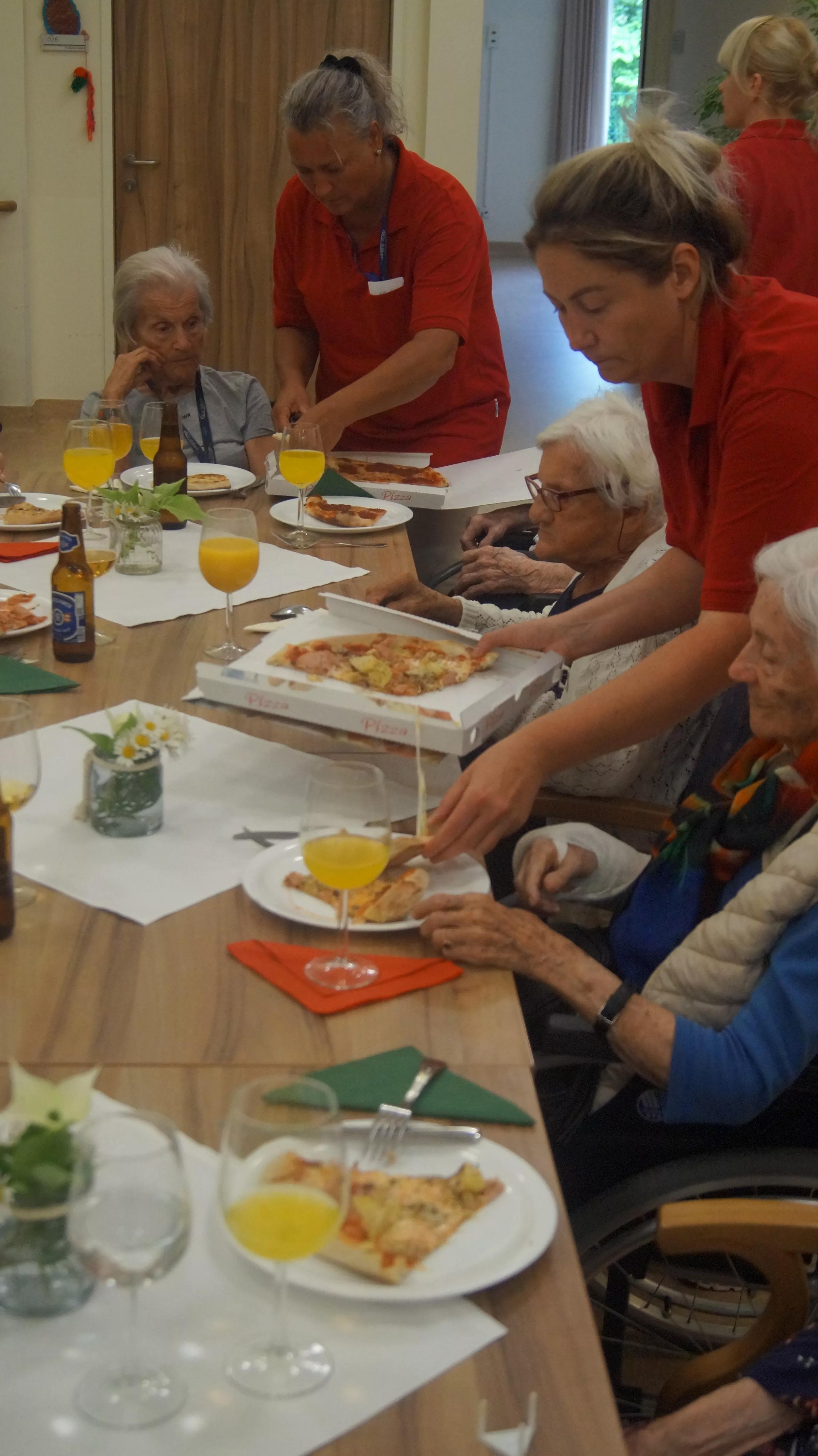 Trotz des regnerischen Wetters konnten sich unsere Bewohner am vergangenen Dienstag über einen kulinarischen Genuss der besonderen Art freuen. Der mobile Pizzawagen „Rotolino“ besuchte uns und bereitete vor Ort frisch verschiedene Pizzasorten zu. Die Auswahl war wie immer groß und für jeden Geschmack war etwas dabei. Im Hintergrund spielten italienische Klassiker und es wurde mit viel Appetit gegessen. Abgerundet wurde unser kulinarischer Ausflug durch ein leckeres Tiramisu.