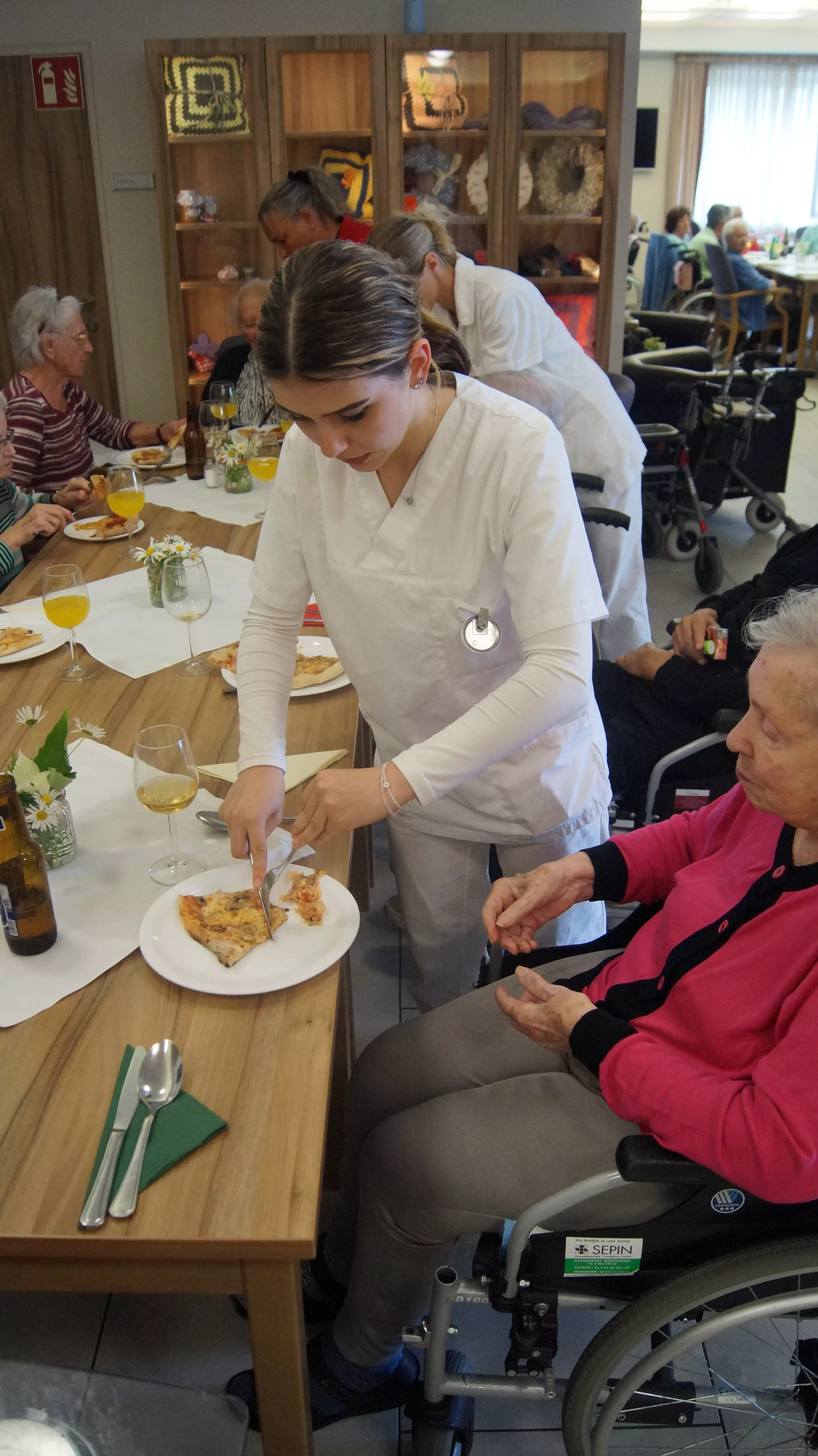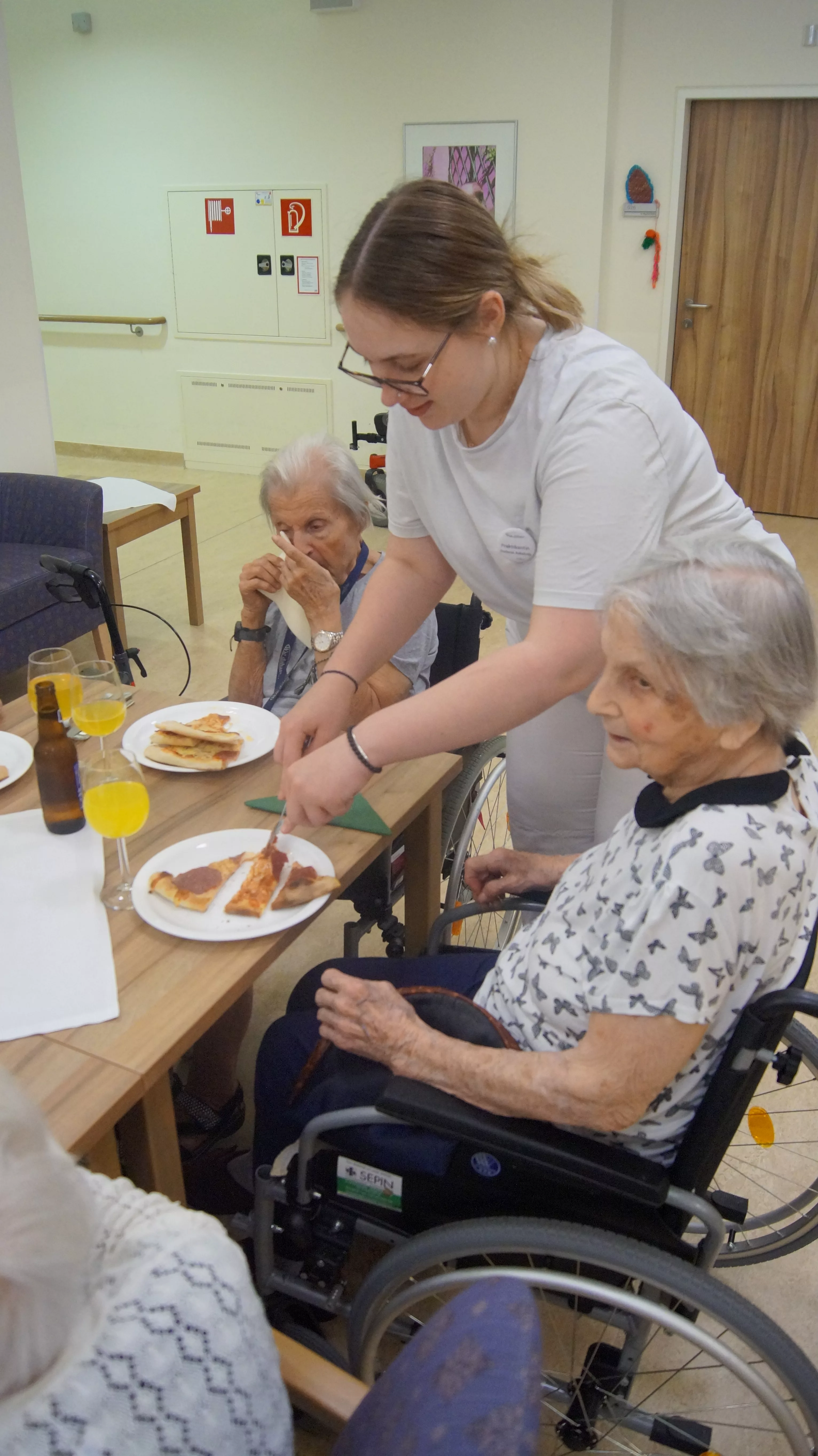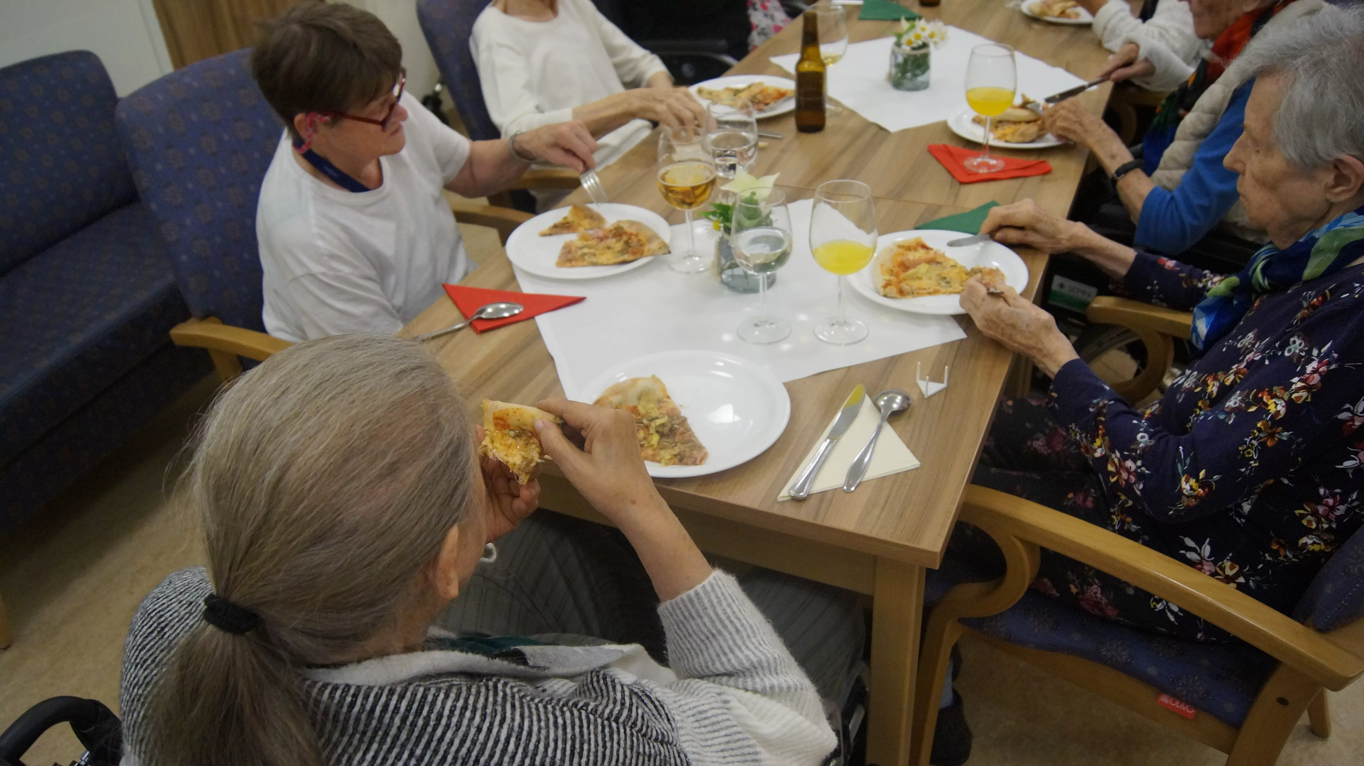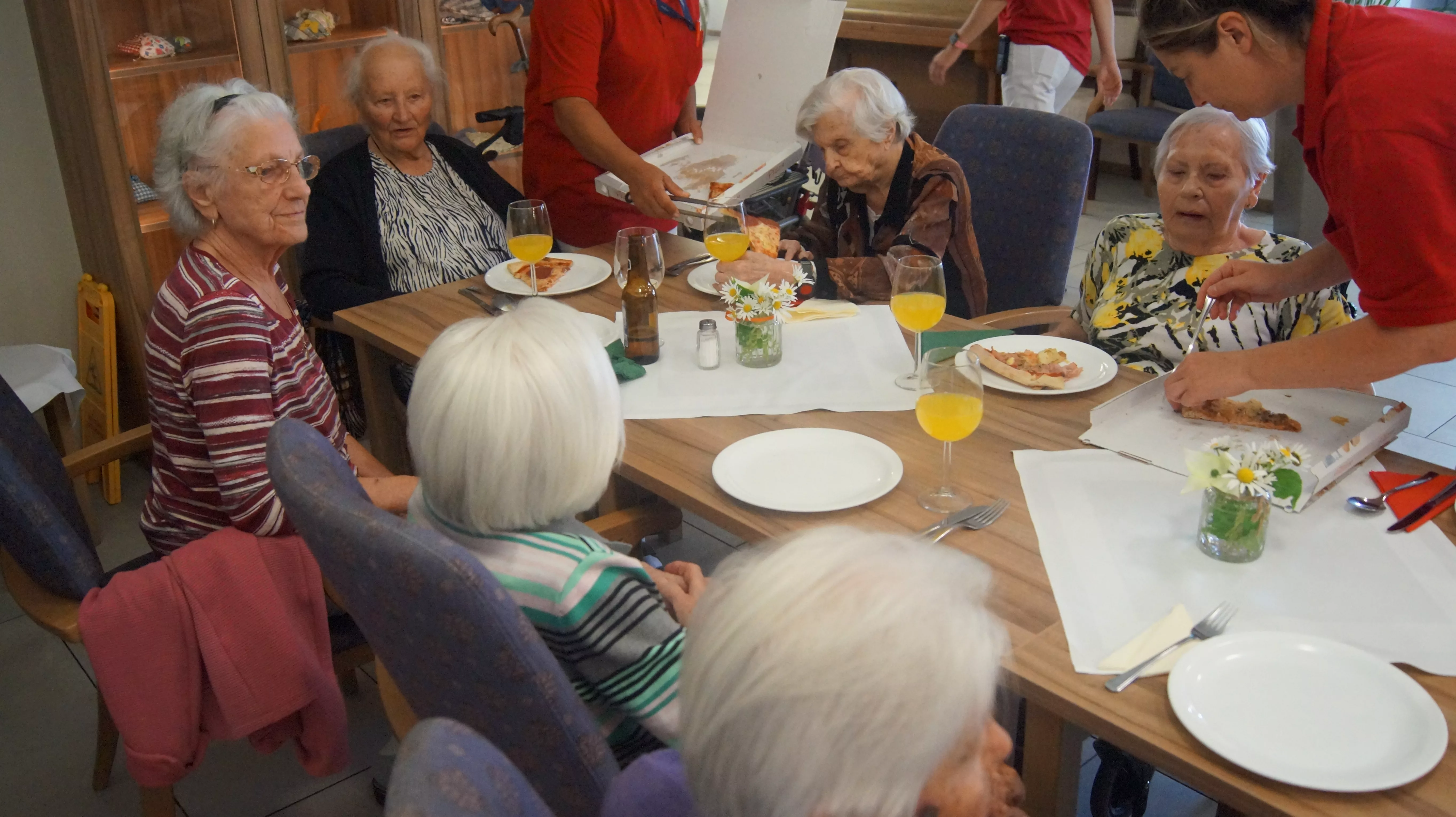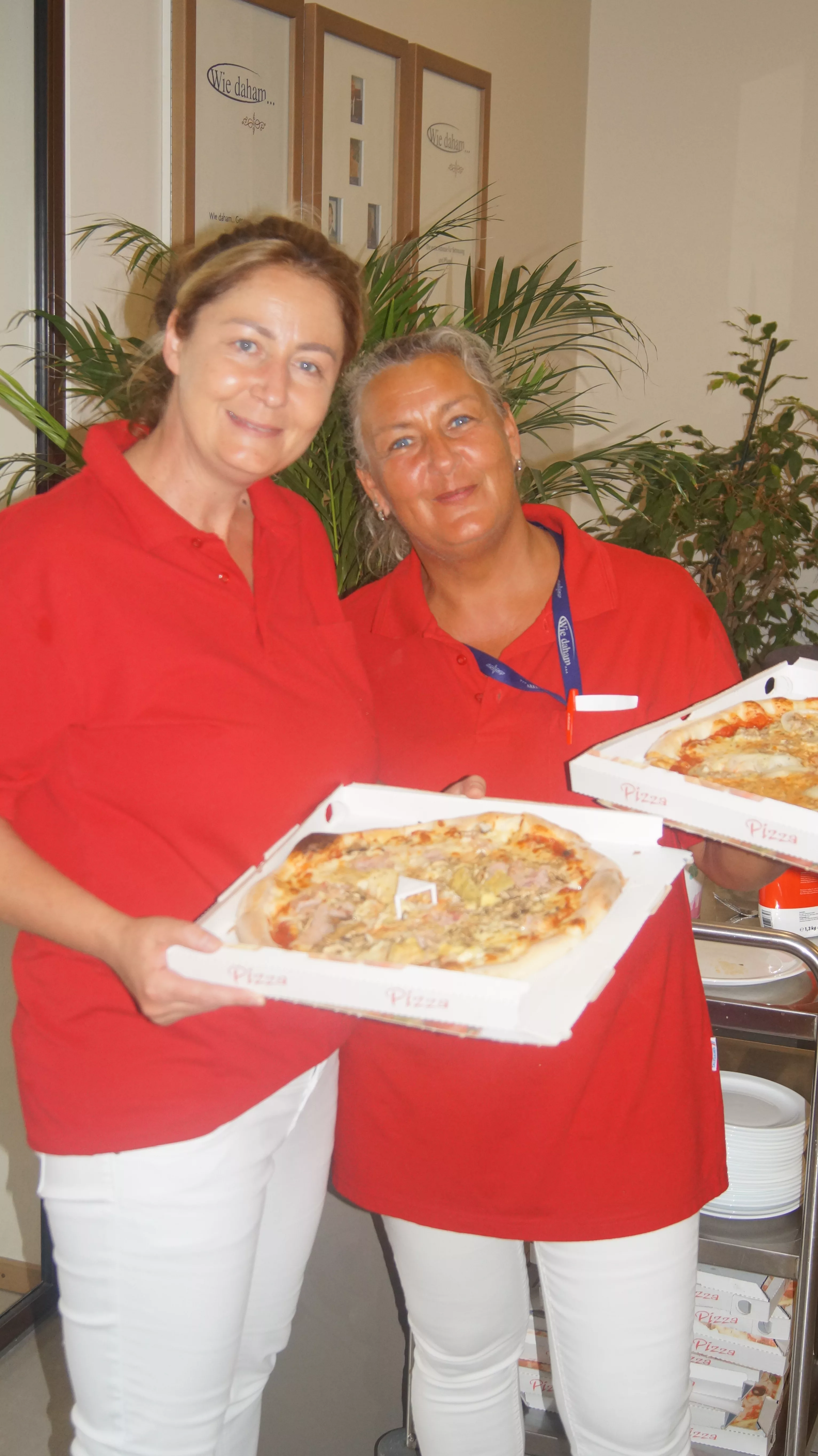 Trotz des regnerischen Wetters konnten sich unsere Bewohner am vergangenen Dienstag über einen kulinarischen Genuss der besonderen Art freuen. Der mobile Pizzawagen „Rotolino“ besuchte uns und bereitete vor Ort frisch verschiedene Pizzasorten zu. Die Auswahl war wie immer groß und für jeden Geschmack war etwas dabei. Im Hintergrund spielten italienische Klassiker und es wurde mit viel Appetit gegessen. Abgerundet wurde unser kulinarischer Ausflug durch ein leckeres Tiramisu.