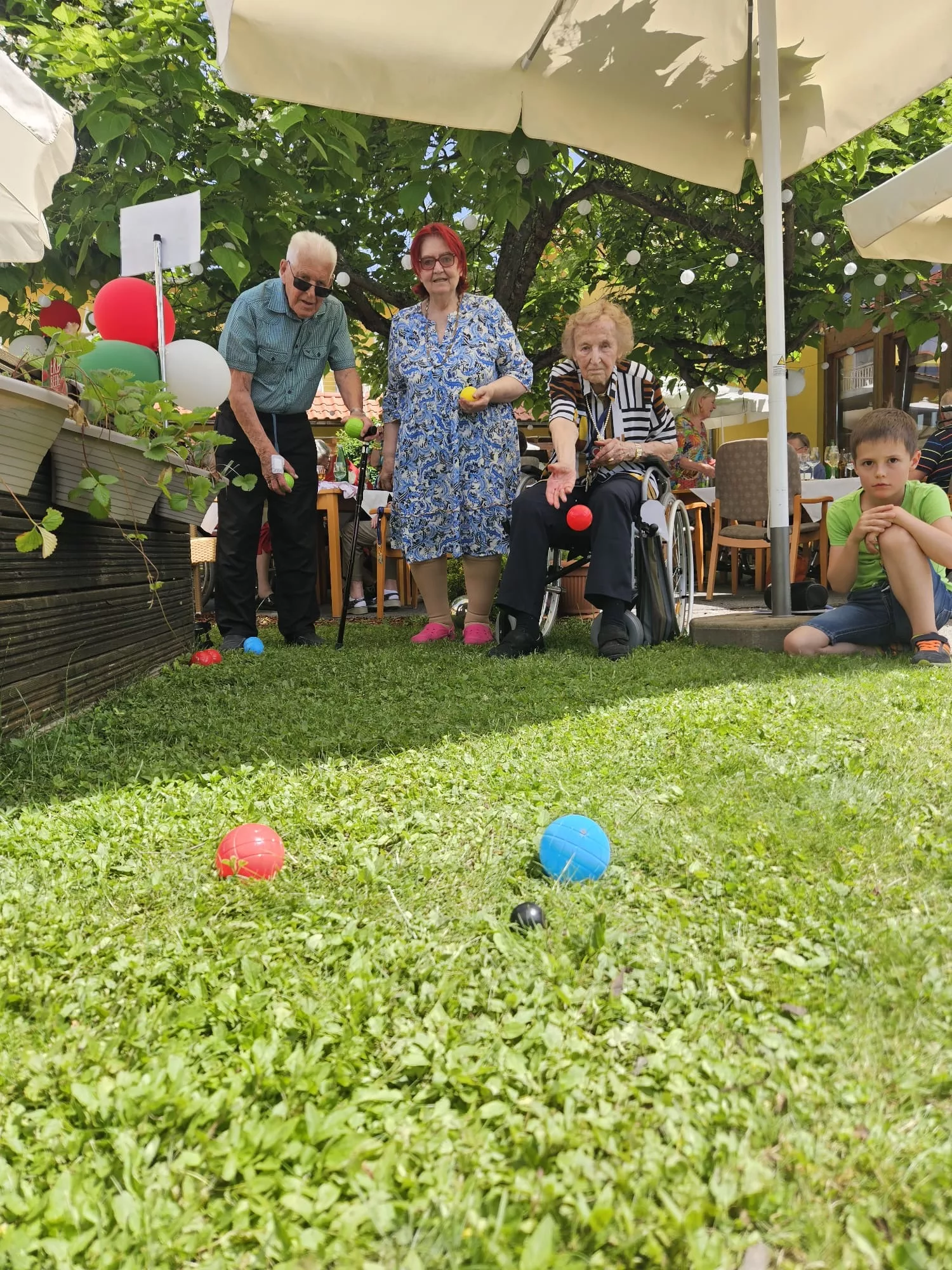 Höhepunkt der Feier war das Bocciaspielen, das den Ehrgeiz in manchen wieder erwecken ließ!