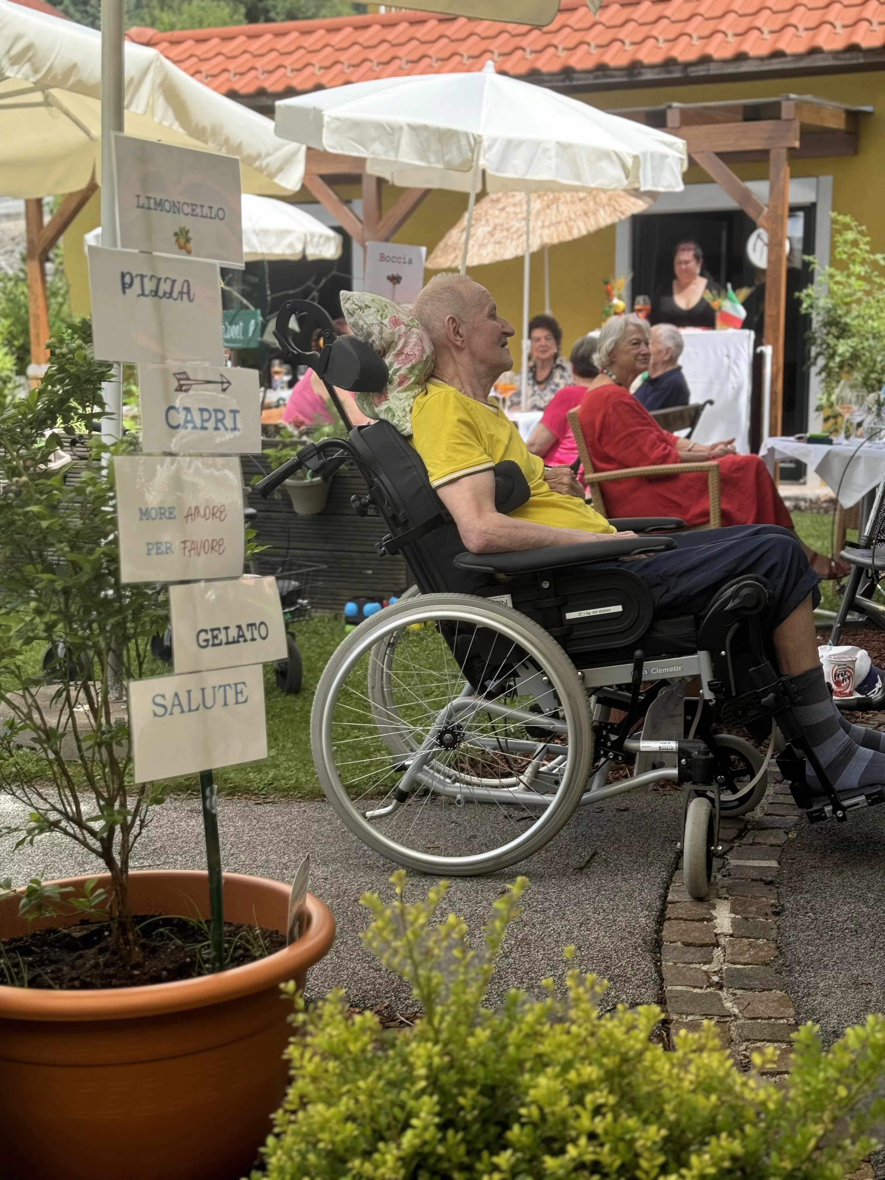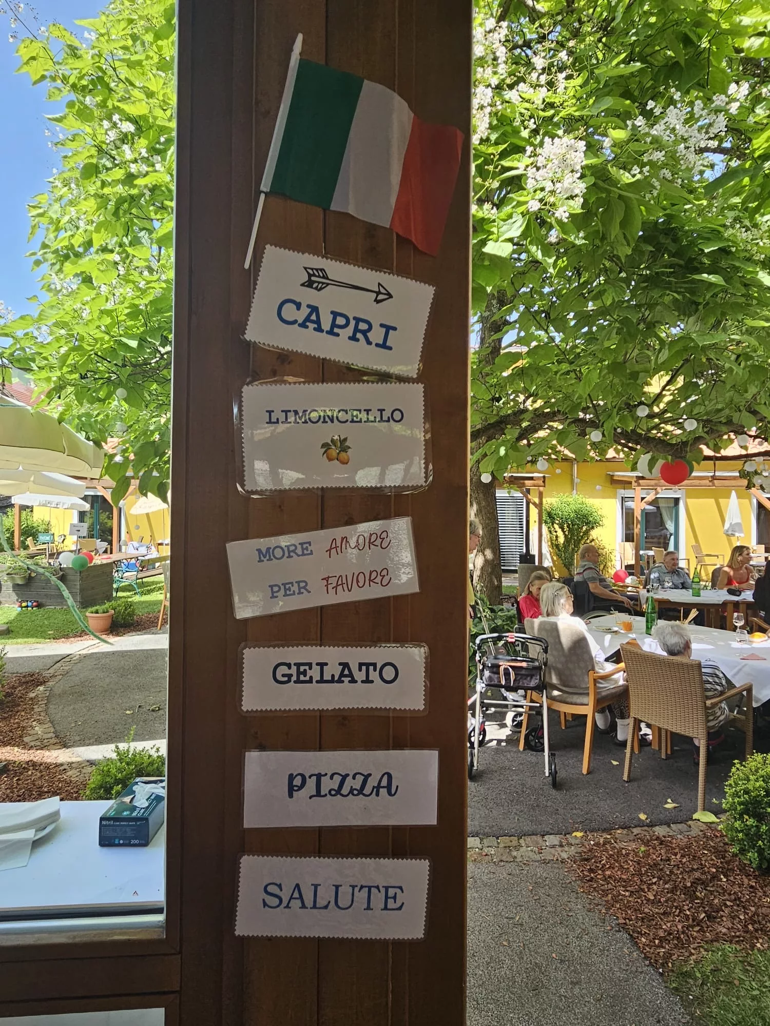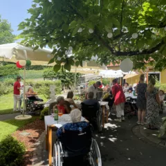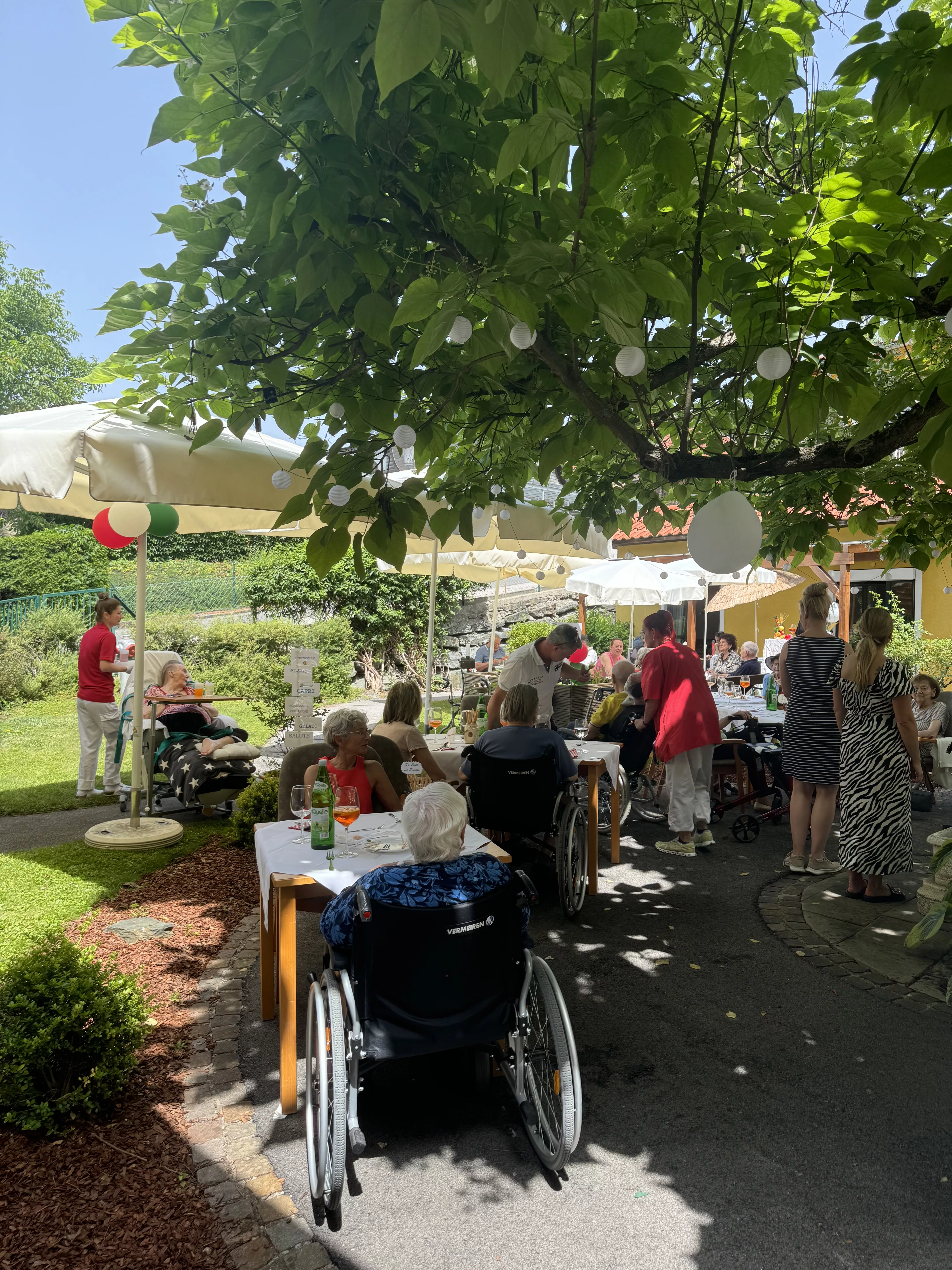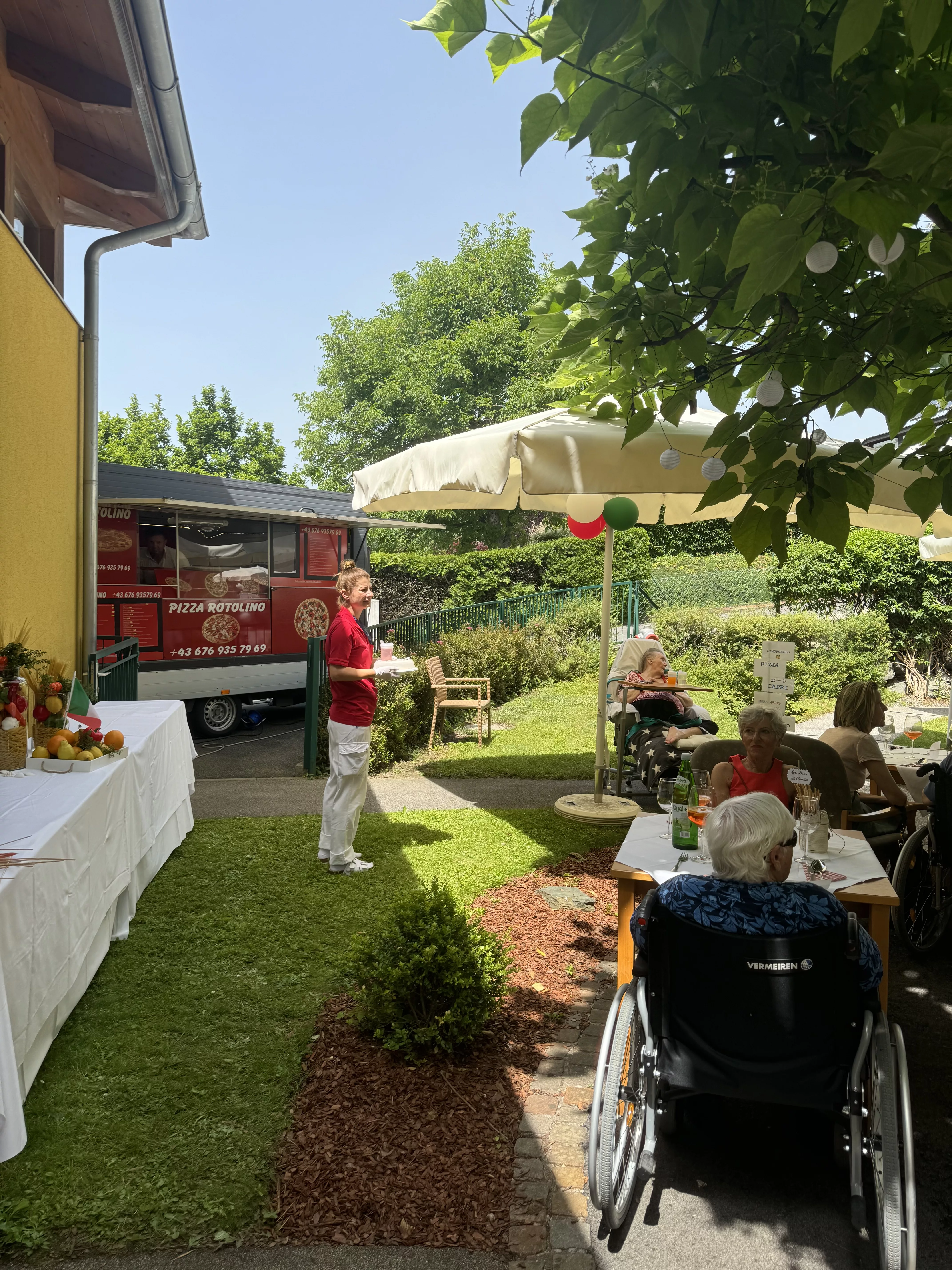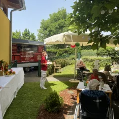 Vom „Primo Piatto“, Grissini mit Prosciutto crudo, über den „Secondo“, eine schmackhafte Pizza, die wieder unser beliebter mobiler Pizzadienst „Rotolino“ für alle zubereitete, bis hin zu vorzüglichen Dolci, Tiramisu und Profiterol in verschiedensten Ausführungen, die zum Teil von unseren fleißigen Fachsozialbetreuerinnen Karin und Katrin, aber auch von liebevollen Angehörigen mitgebracht wurden.