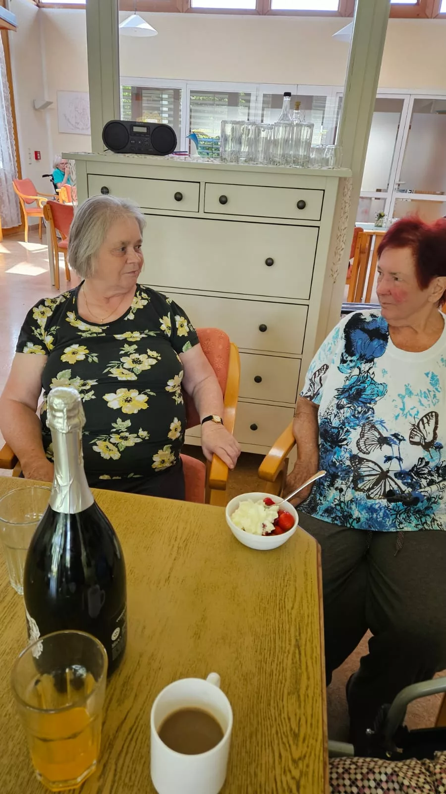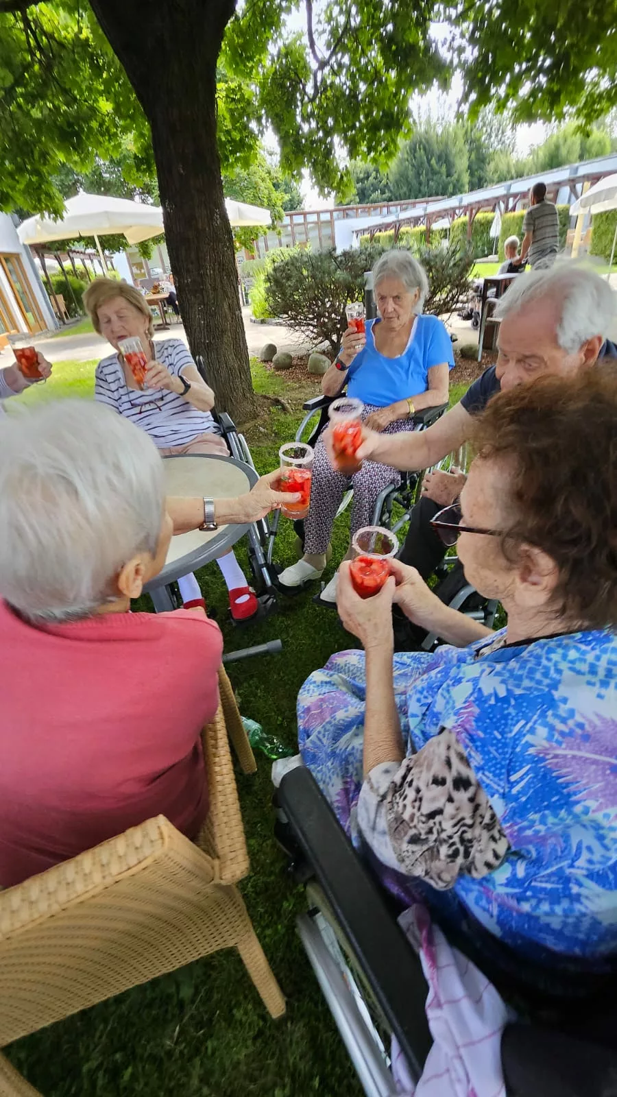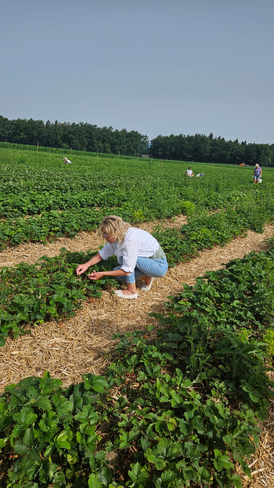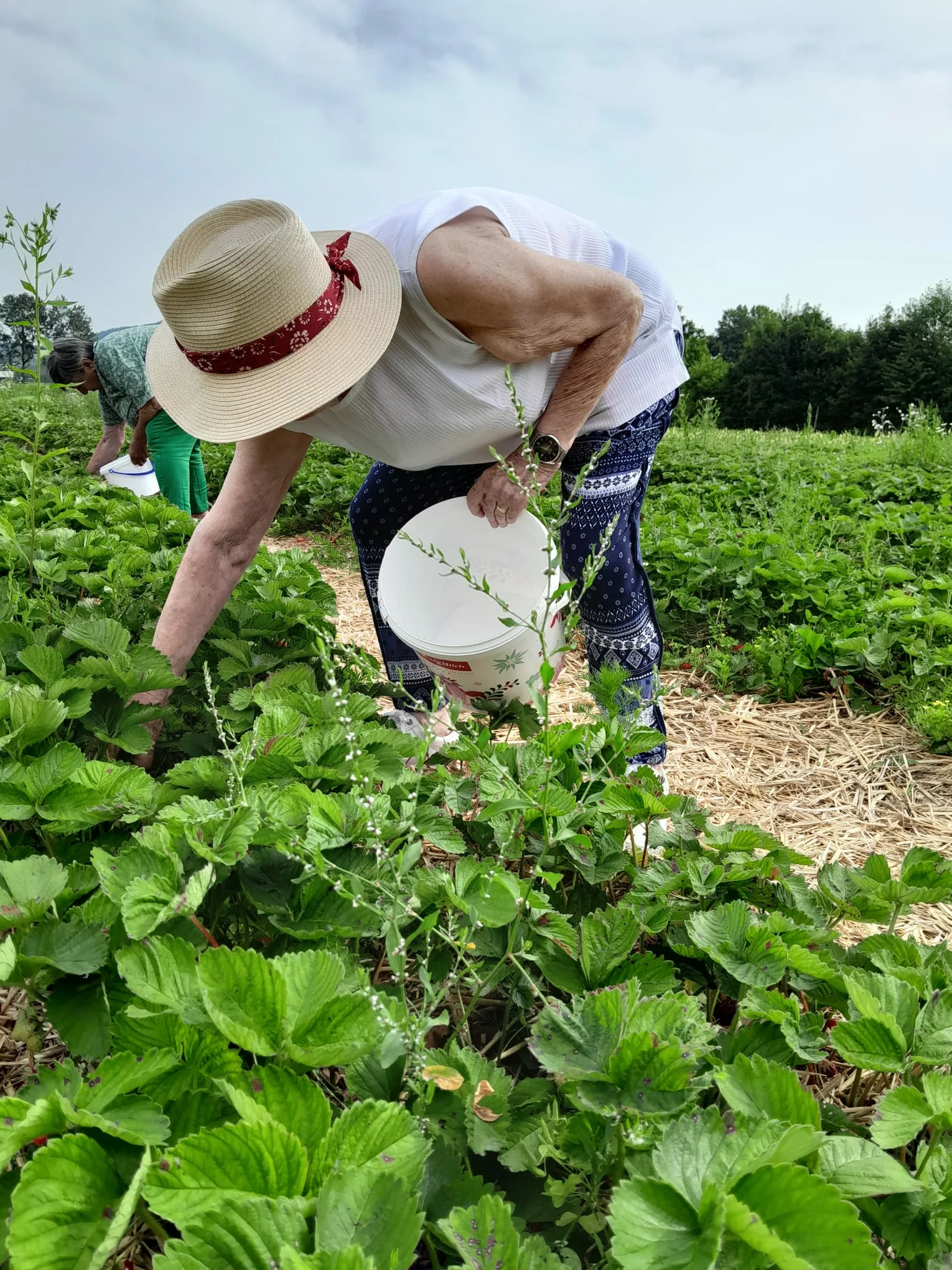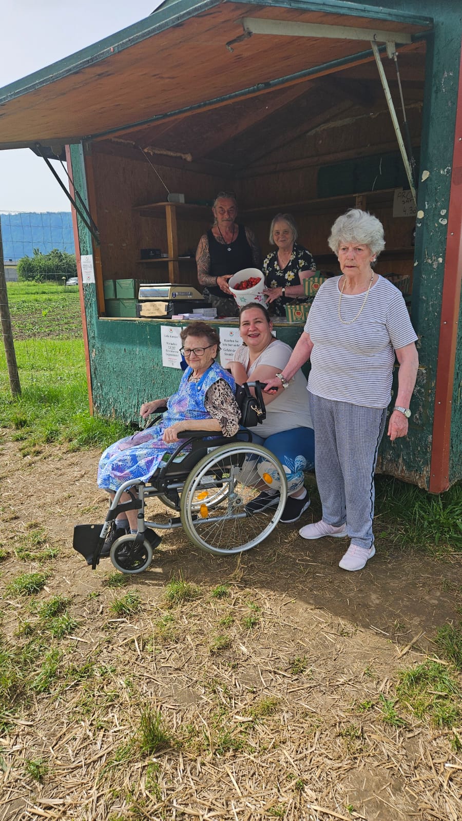Wir fuhren gemeinsam mit einigen BewohnerInnen ins Erdbeerland und pflückten fleißig die vollreifen Erdbeeren. Nach getaner Arbeit stärkten wir uns bei einem gemeinsamen Erfrischungsgetränk. Nach unserem gemeinsamen Ausflug wurden natürlich die Erdbeeren gemeinsam von allen BewohnerInnen vom gemütlichen Eck verarbeitet. Wir machten Erdbeermarmelade, Erdbeerlikör und Erdbeeren mit Schlag, die vorzüglich schmeckten, genossen wir bei unserem Gedächtnistraining, mit Erinnerungsarbeit sowie Wortfindungsübungen.