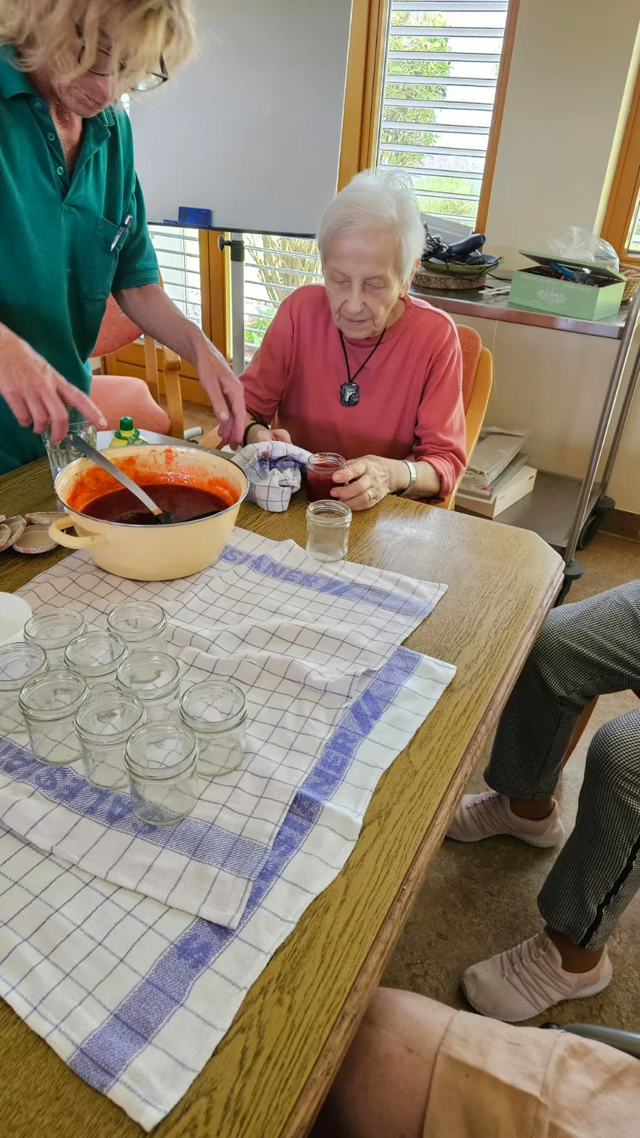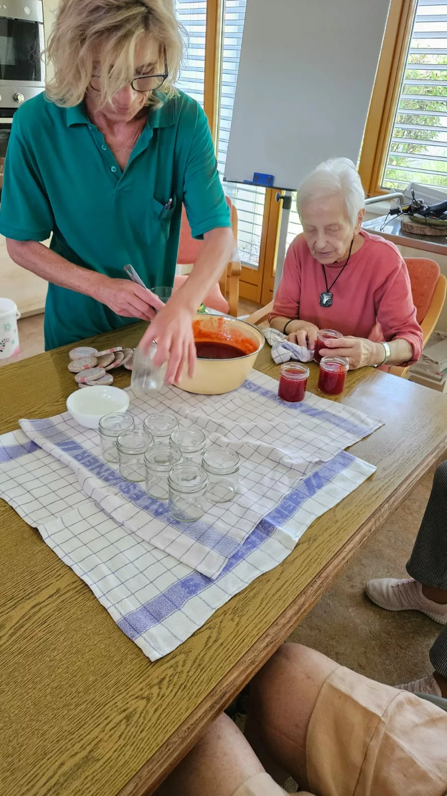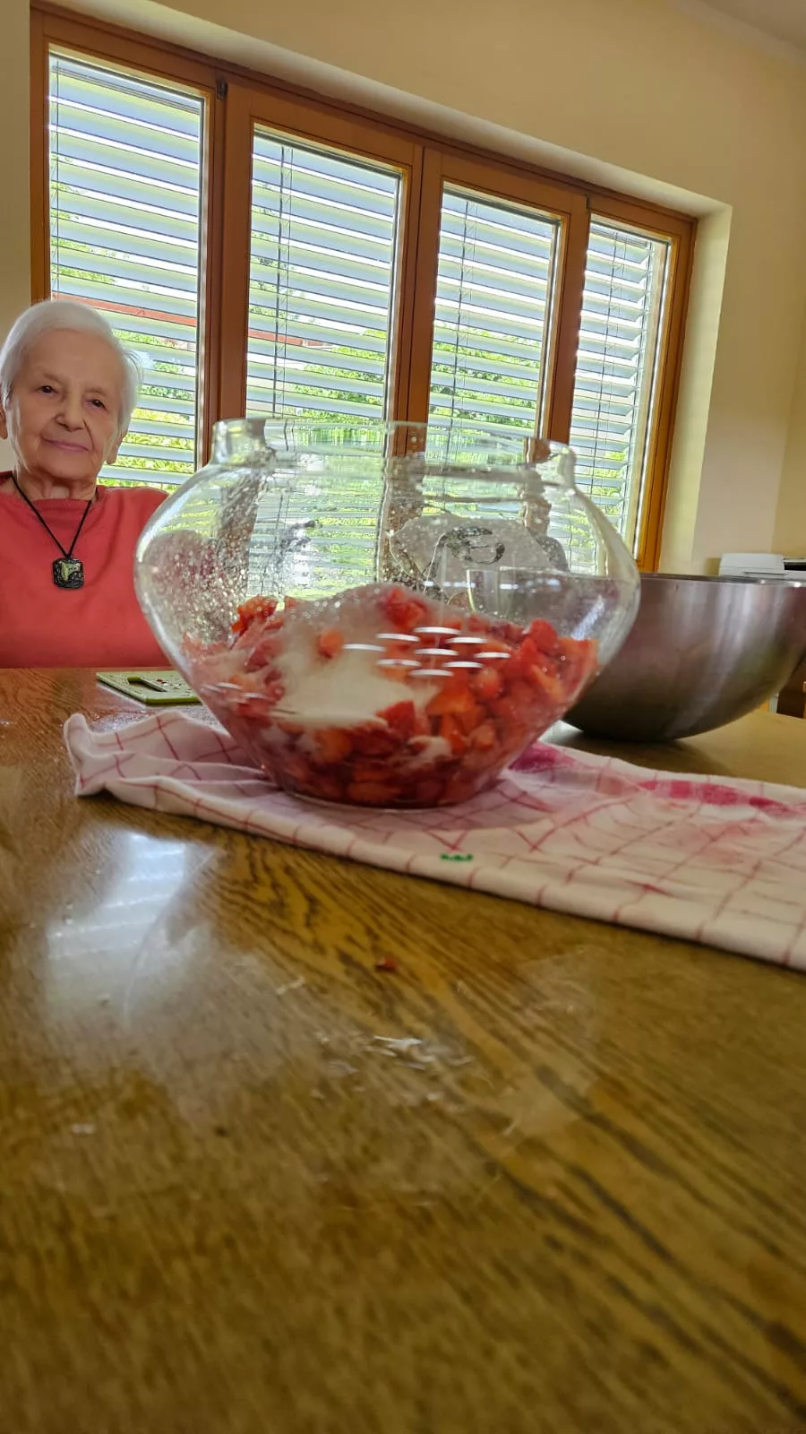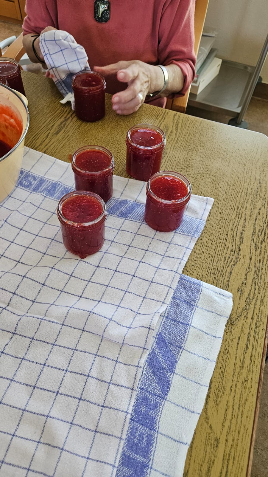 Wir fuhren gemeinsam mit einigen BewohnerInnen ins Erdbeerland und pflückten fleißig die vollreifen Erdbeeren. Nach getaner Arbeit stärkten wir uns bei einem gemeinsamen Erfrischungsgetränk. Nach unserem gemeinsamen Ausflug wurden natürlich die Erdbeeren gemeinsam von allen BewohnerInnen vom gemütlichen Eck verarbeitet. Wir machten Erdbeermarmelade, Erdbeerlikör und Erdbeeren mit Schlag, die vorzüglich schmeckten, genossen wir bei unserem Gedächtnistraining, mit Erinnerungsarbeit sowie Wortfindungsübungen.