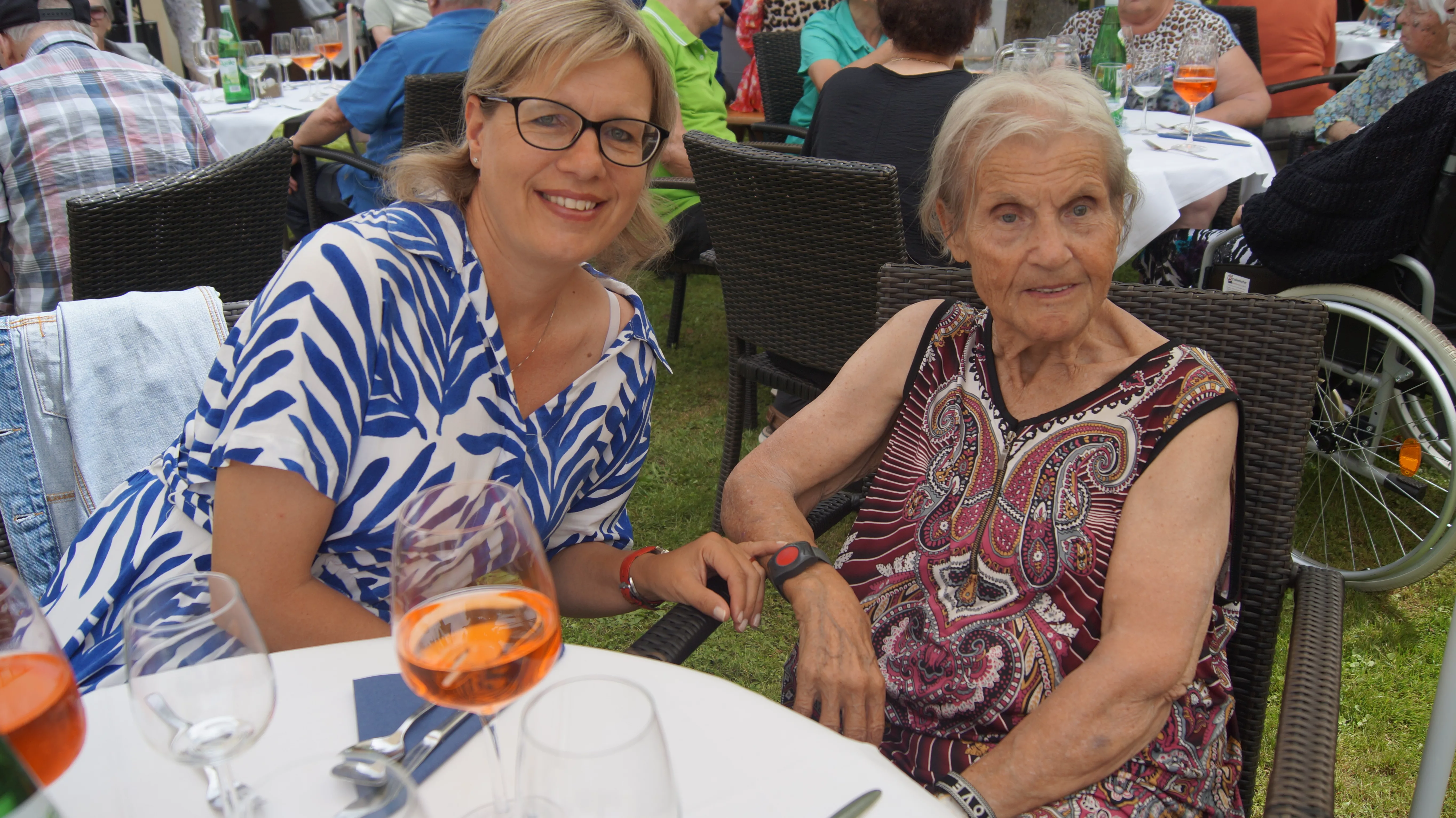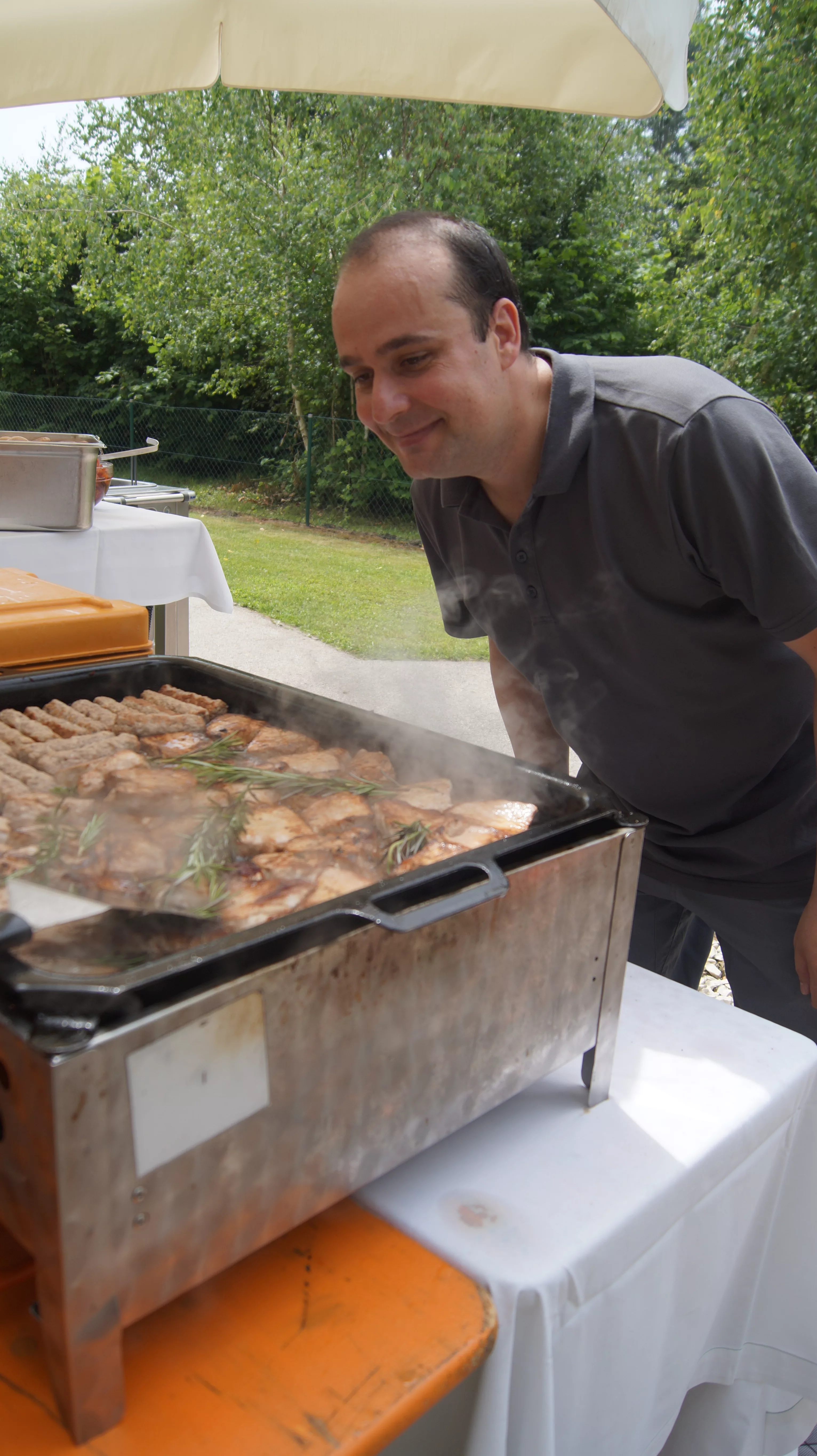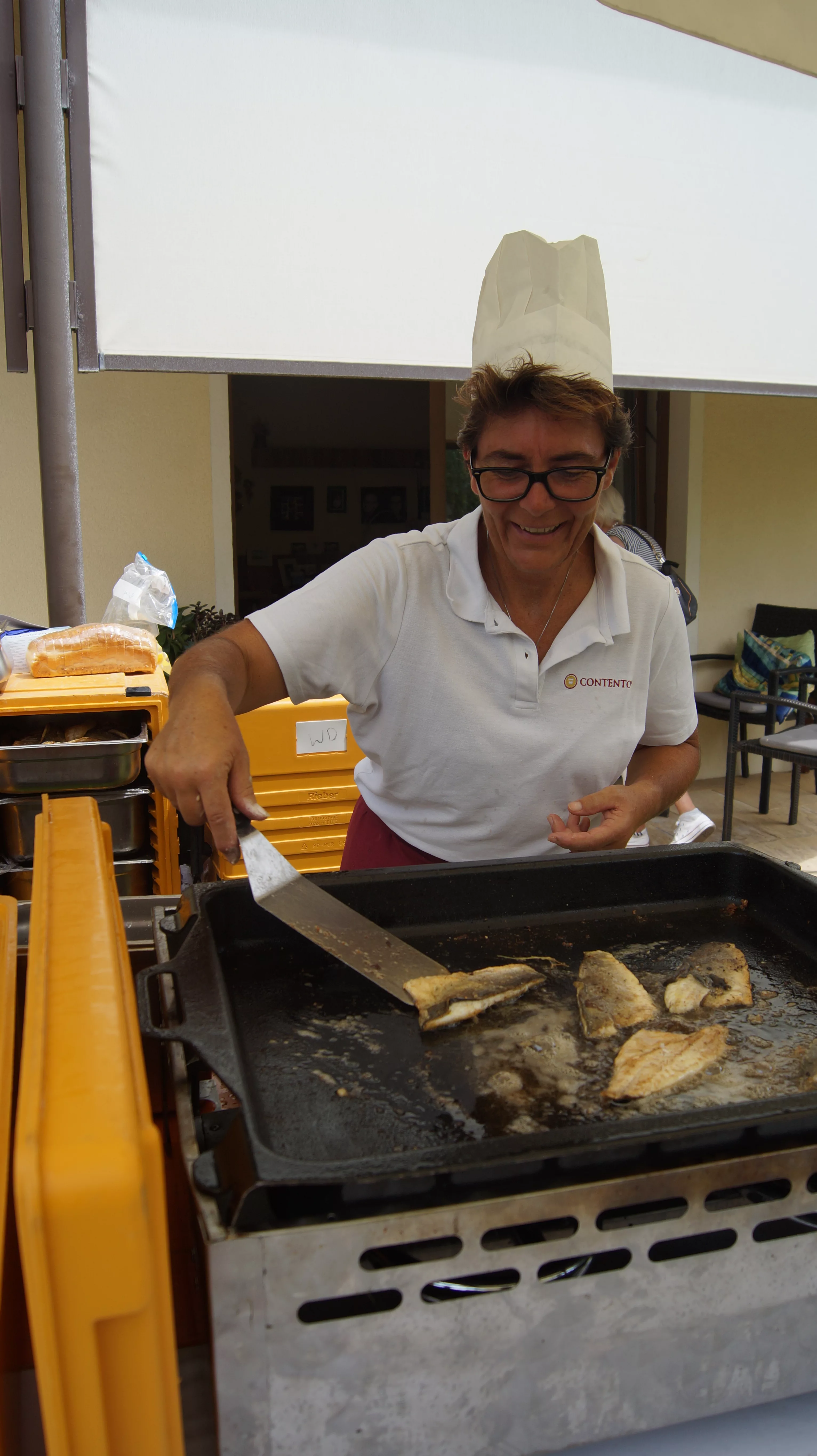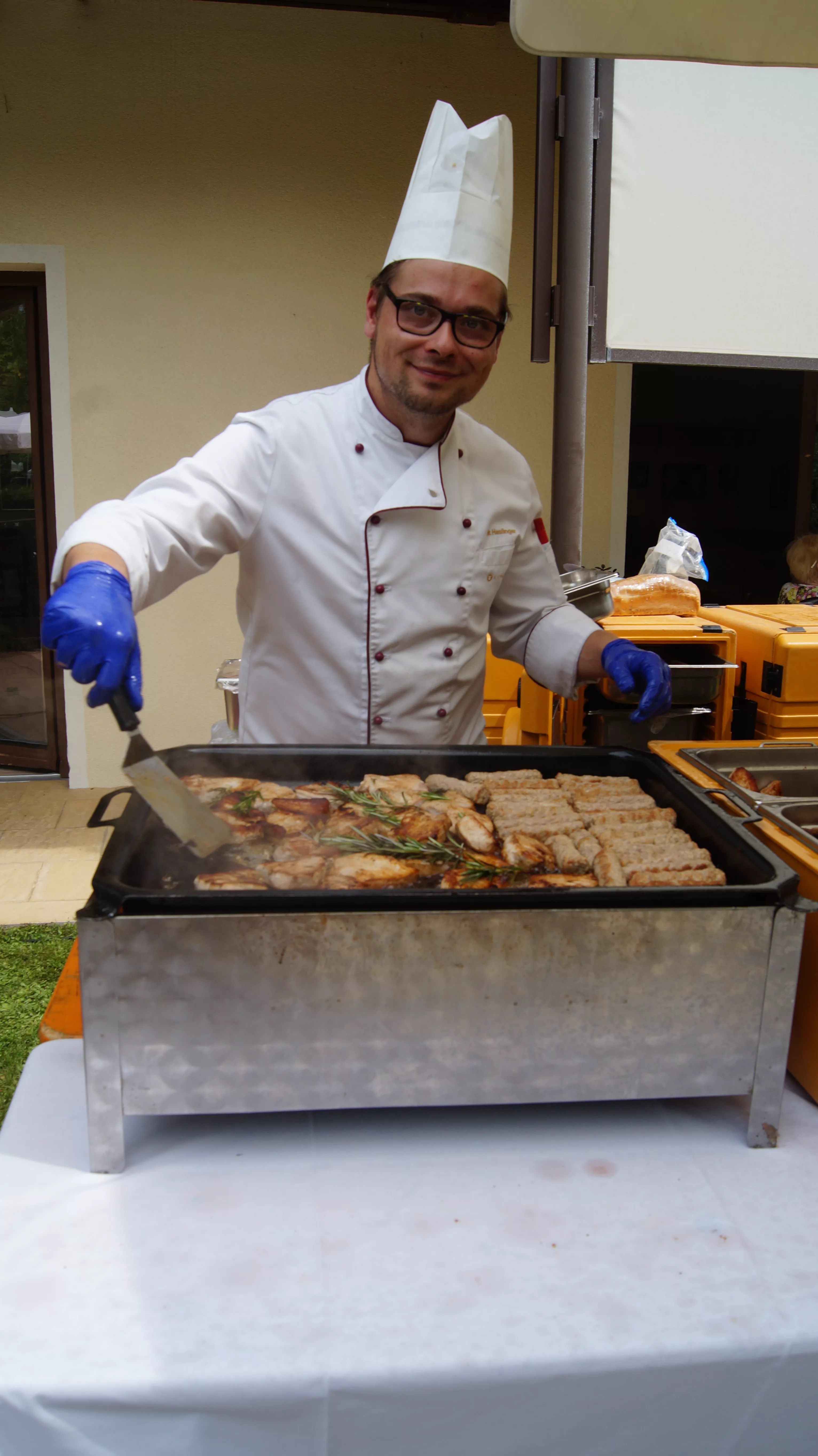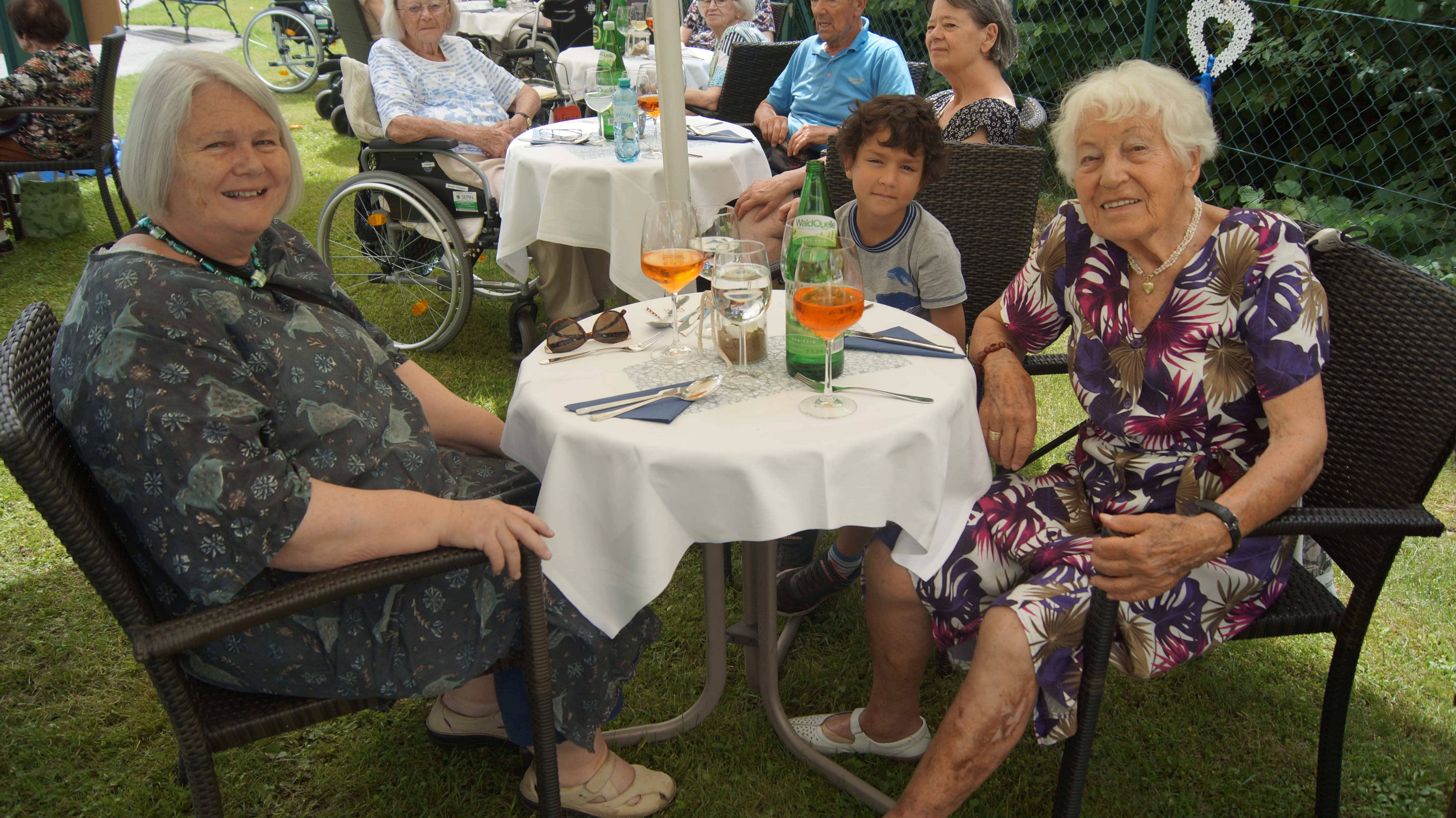 Eröffnet wurde das Spektakel mit Aperol Spritz als Aperitif, aber auch für die Kulinarik wurde gesorgt, da die Firma Contento für uns grillte. Es gab gegrillte Fleisch- und Fischspezialitäten mit einem ausgewogenen Mix aus Salaten und Gebäck als Beilage. Sowohl Bewohner*innen, Angehörige als auch Mitarbeiter*innen waren vom Essen begeistert, und es wurde kräftig Nachschlag geholt. Als Nachspeise wurden unsere Gäste mit Erdbeer-Tiramisu verwöhnt.