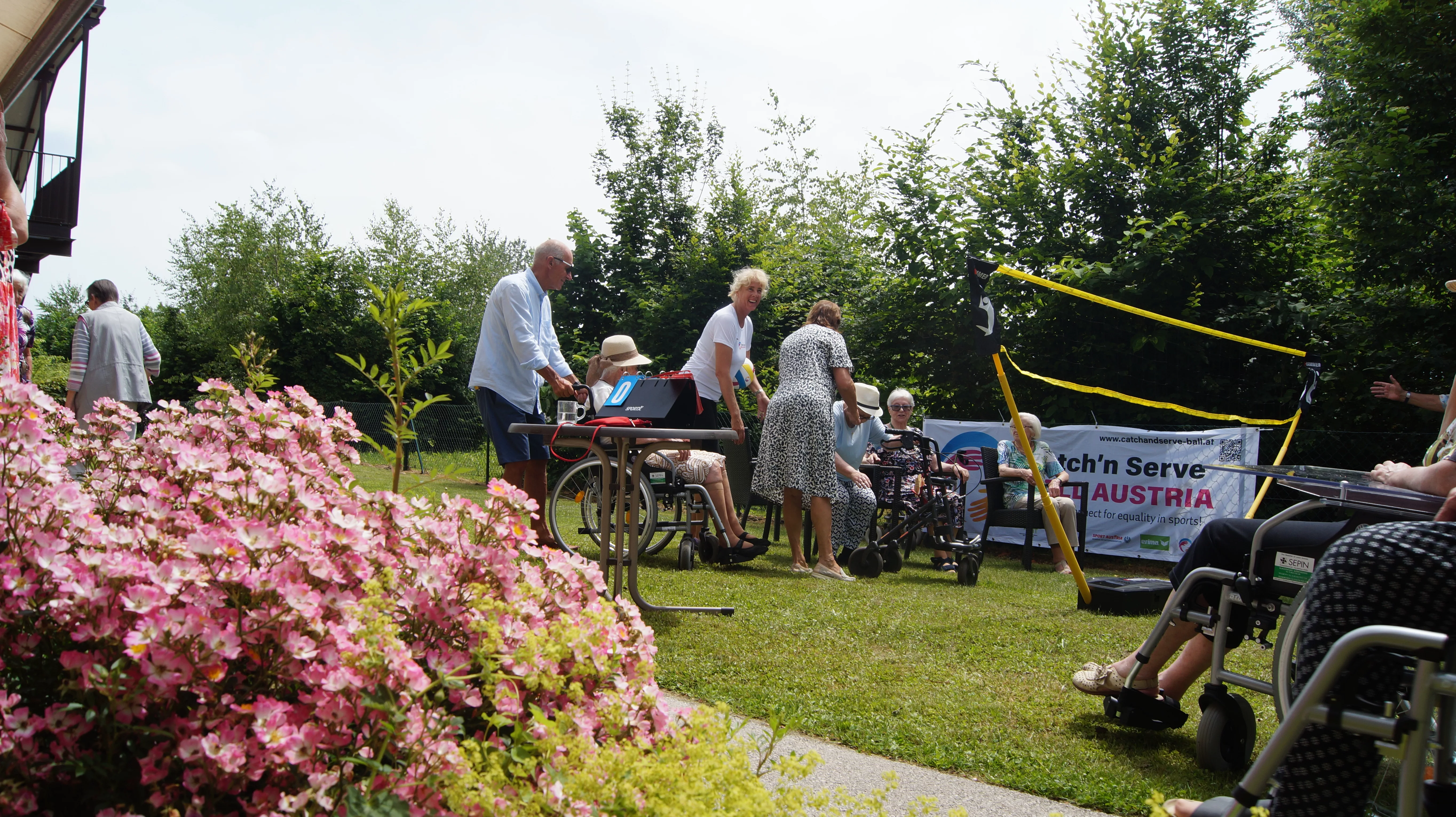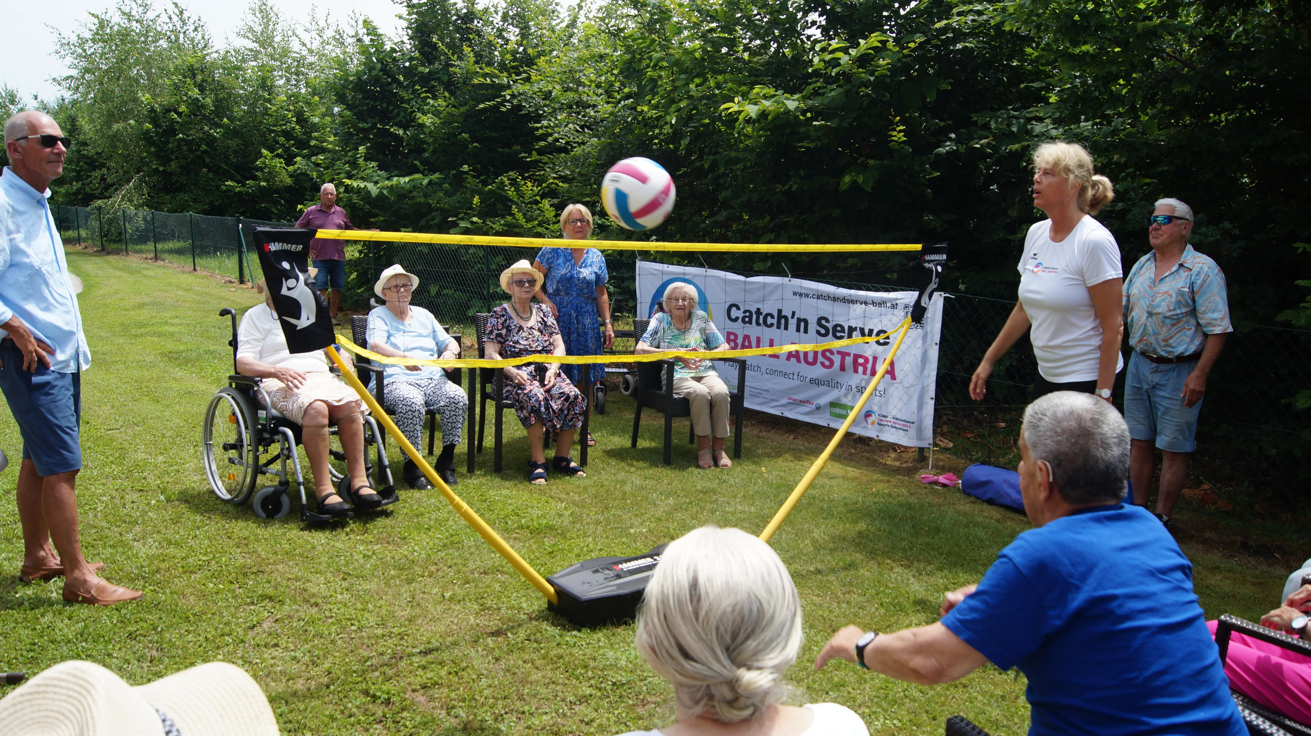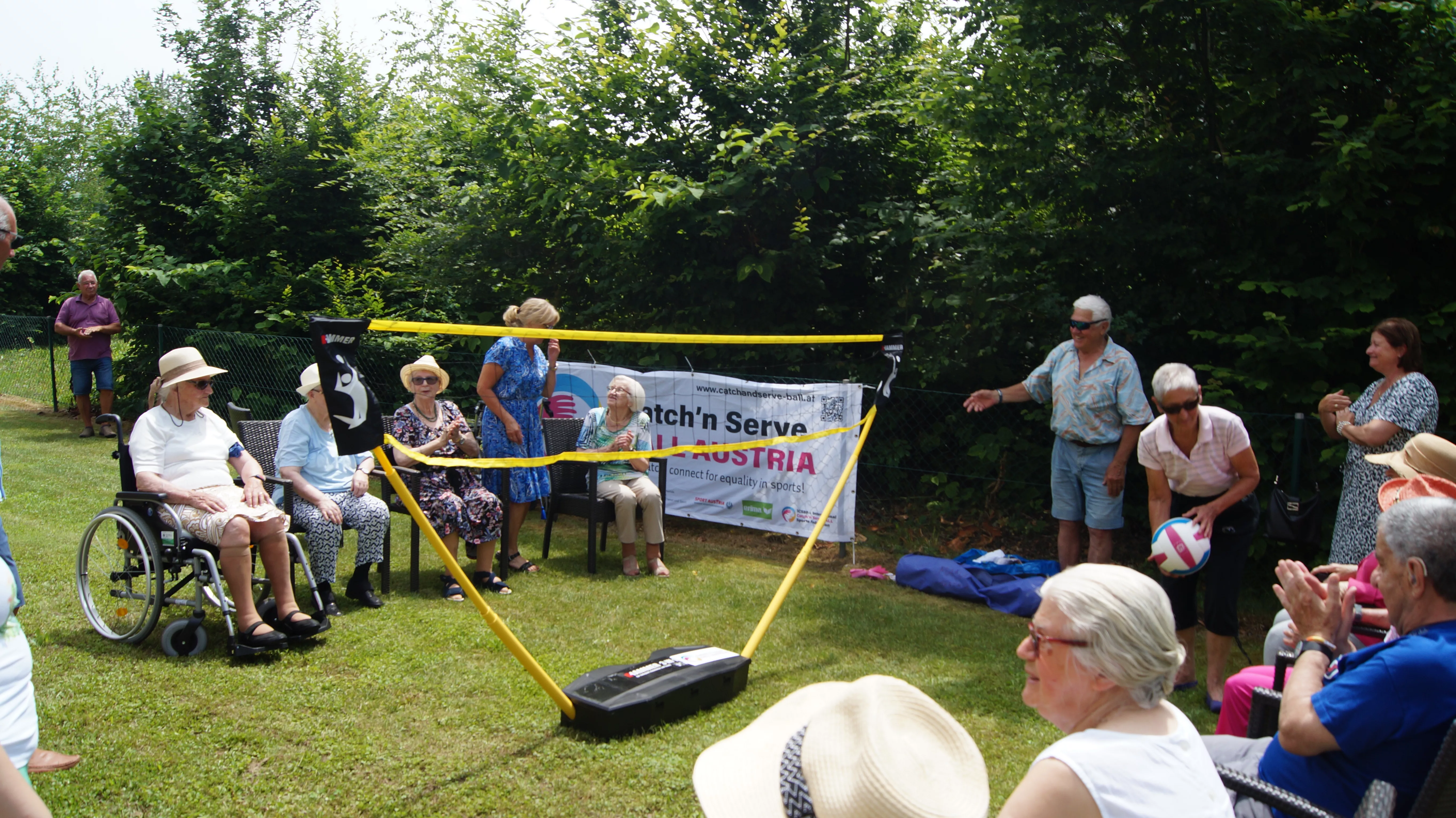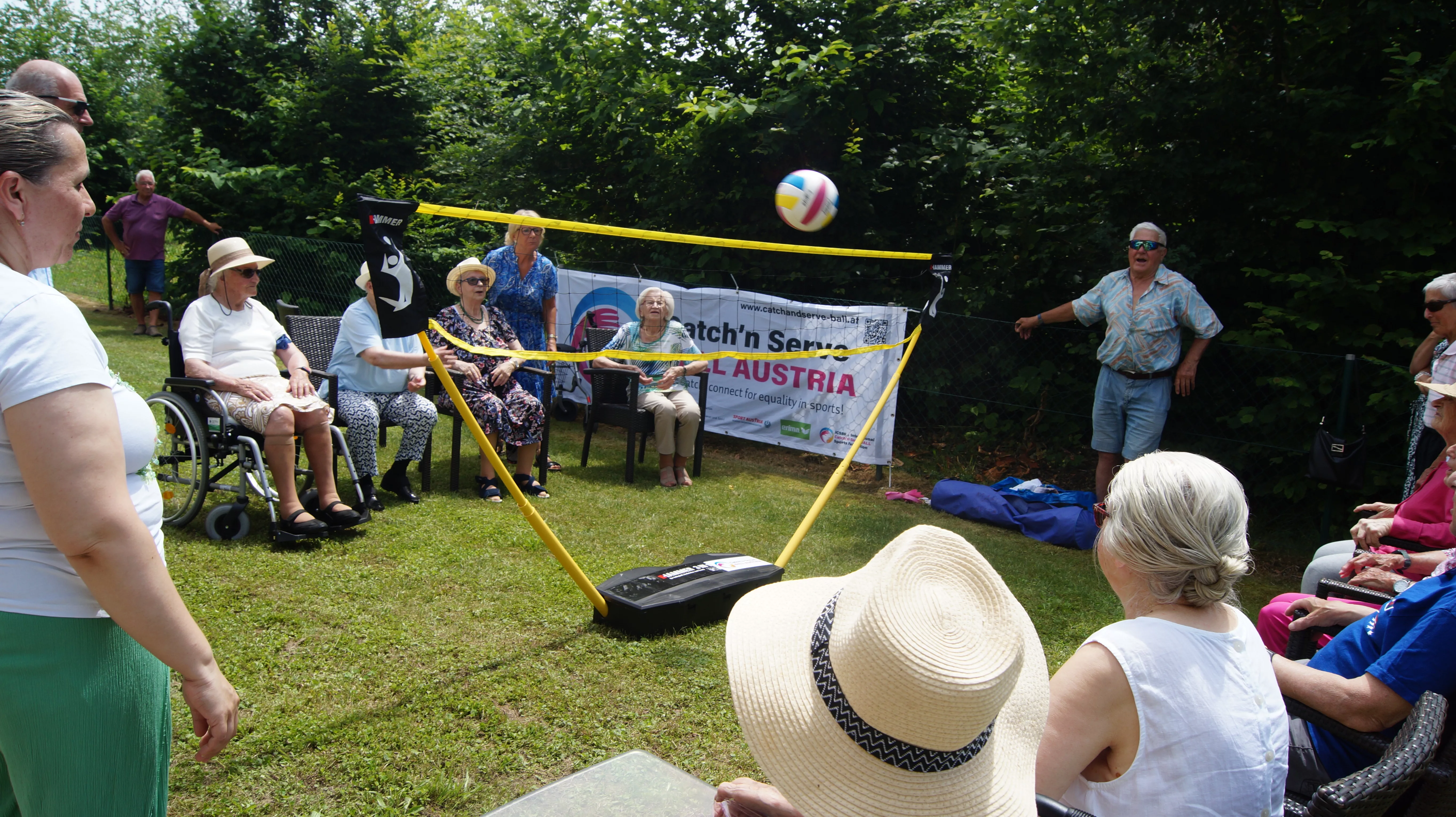Auch sportlich ließ unser Fest nicht zu wünschen übrig. Frau Elisabeth Speiser-Havel, die Generalsekretärin von Catch’n Serve Ball Austria, besuchte uns erneut und es wurde wieder eine Partie „Catch´n Serve Ball“ ausgetragen. Dieses Mal samt Siegerehrung und der Verleihung von Medaillen. Die Sporteinlage hat allen Teilnehmer*innen gefallen und auch die Angehörigen unserer Bewohner*innen konnten sich für eine kleine Partie begeistern.