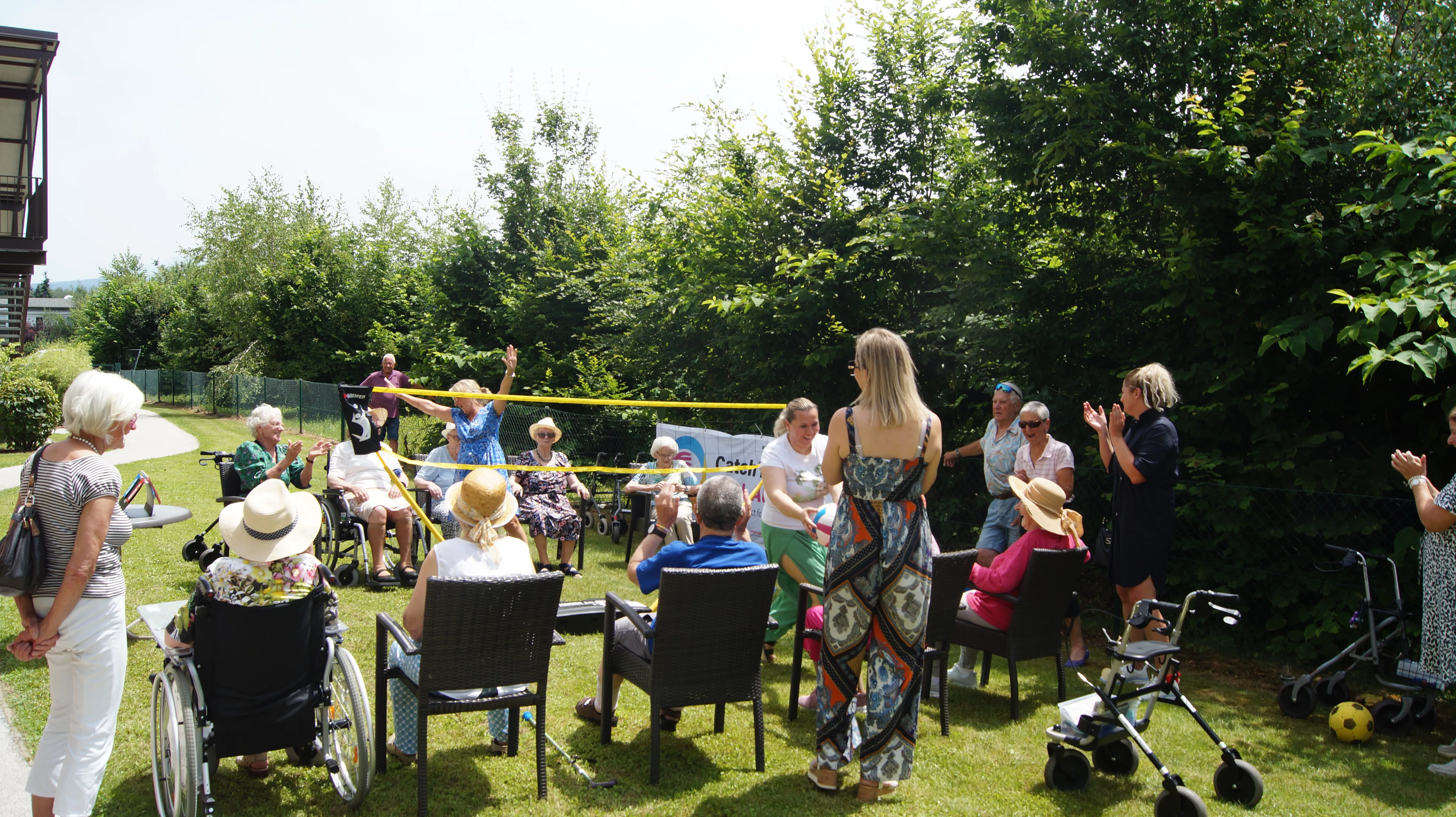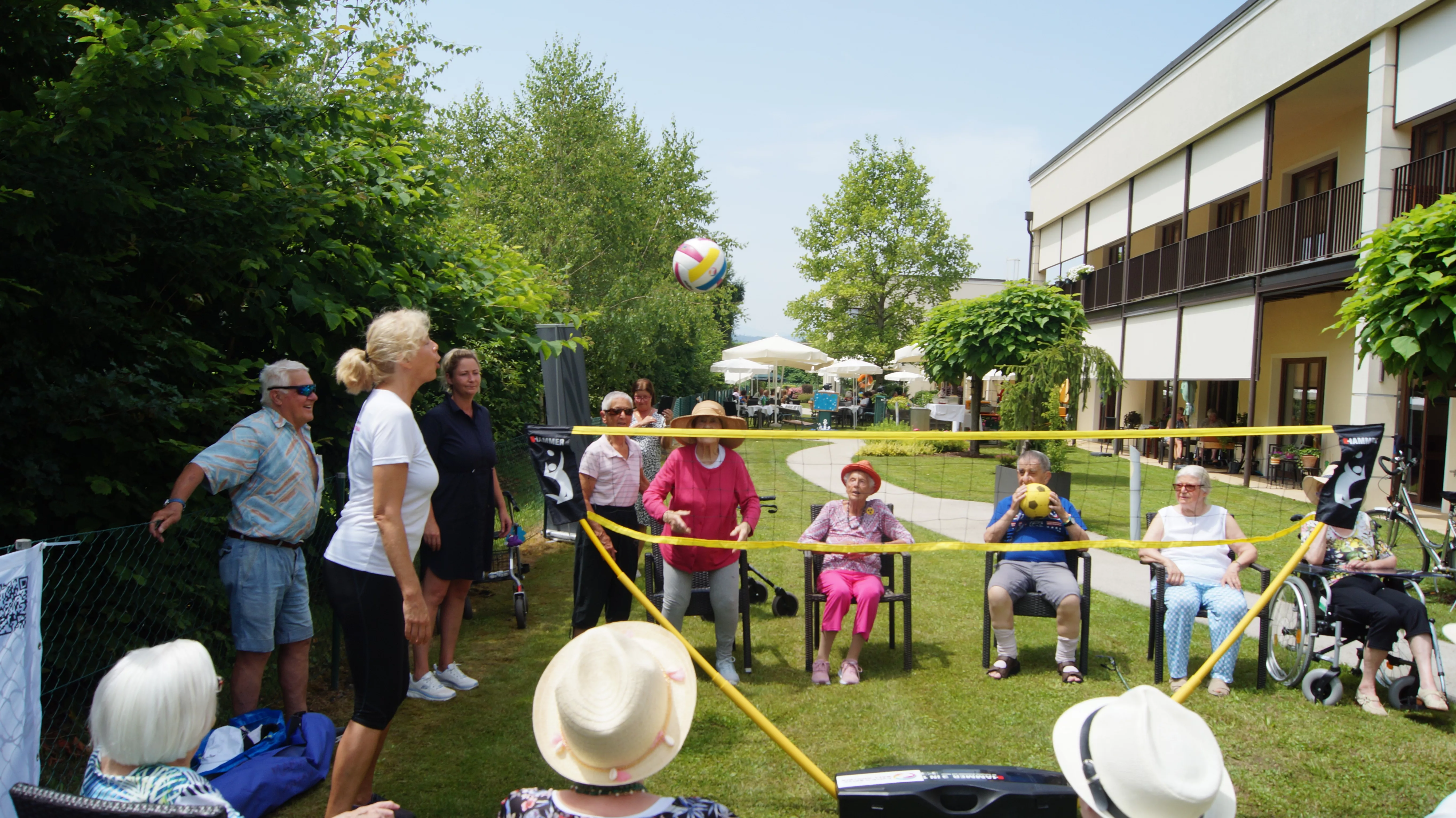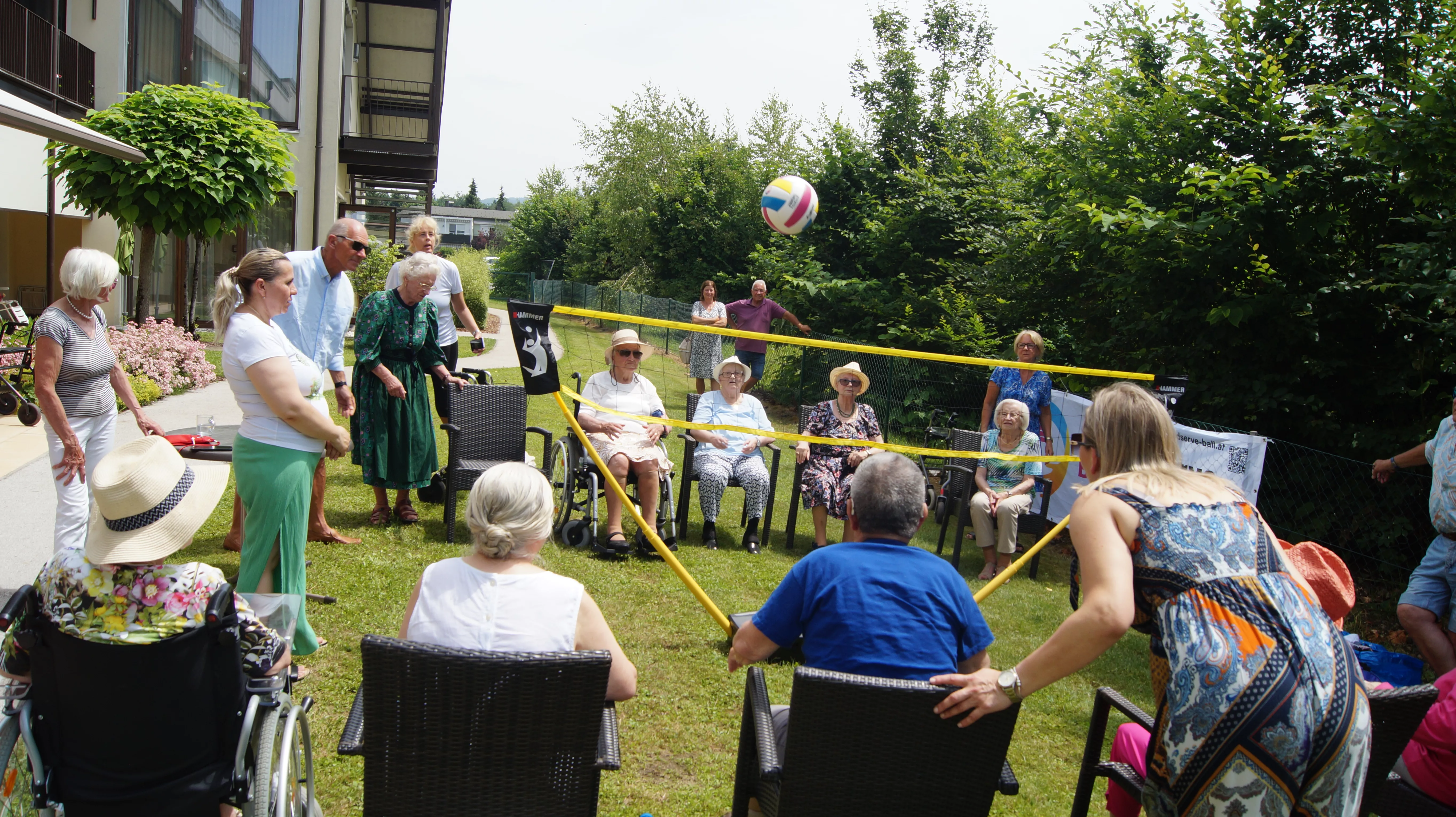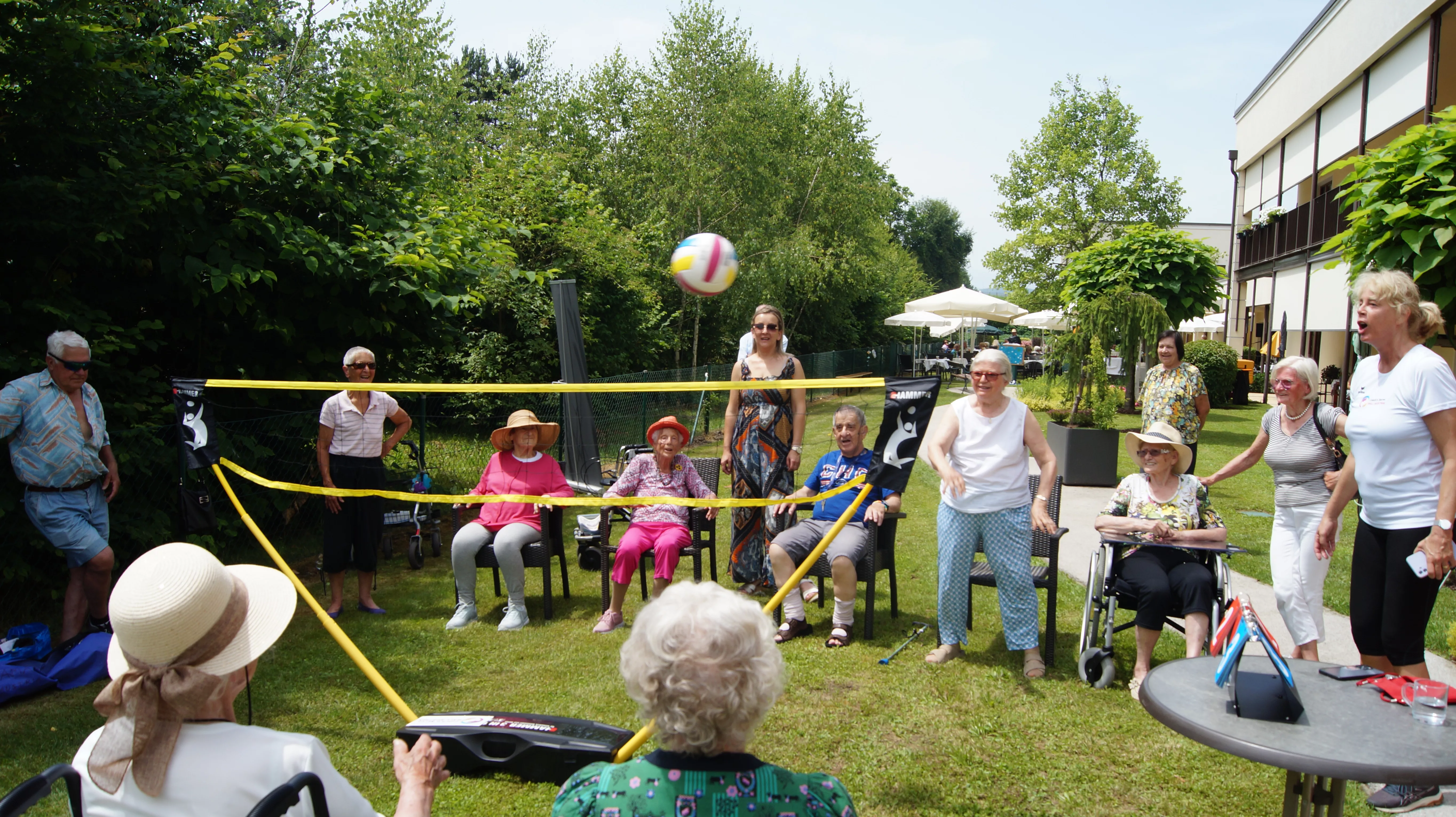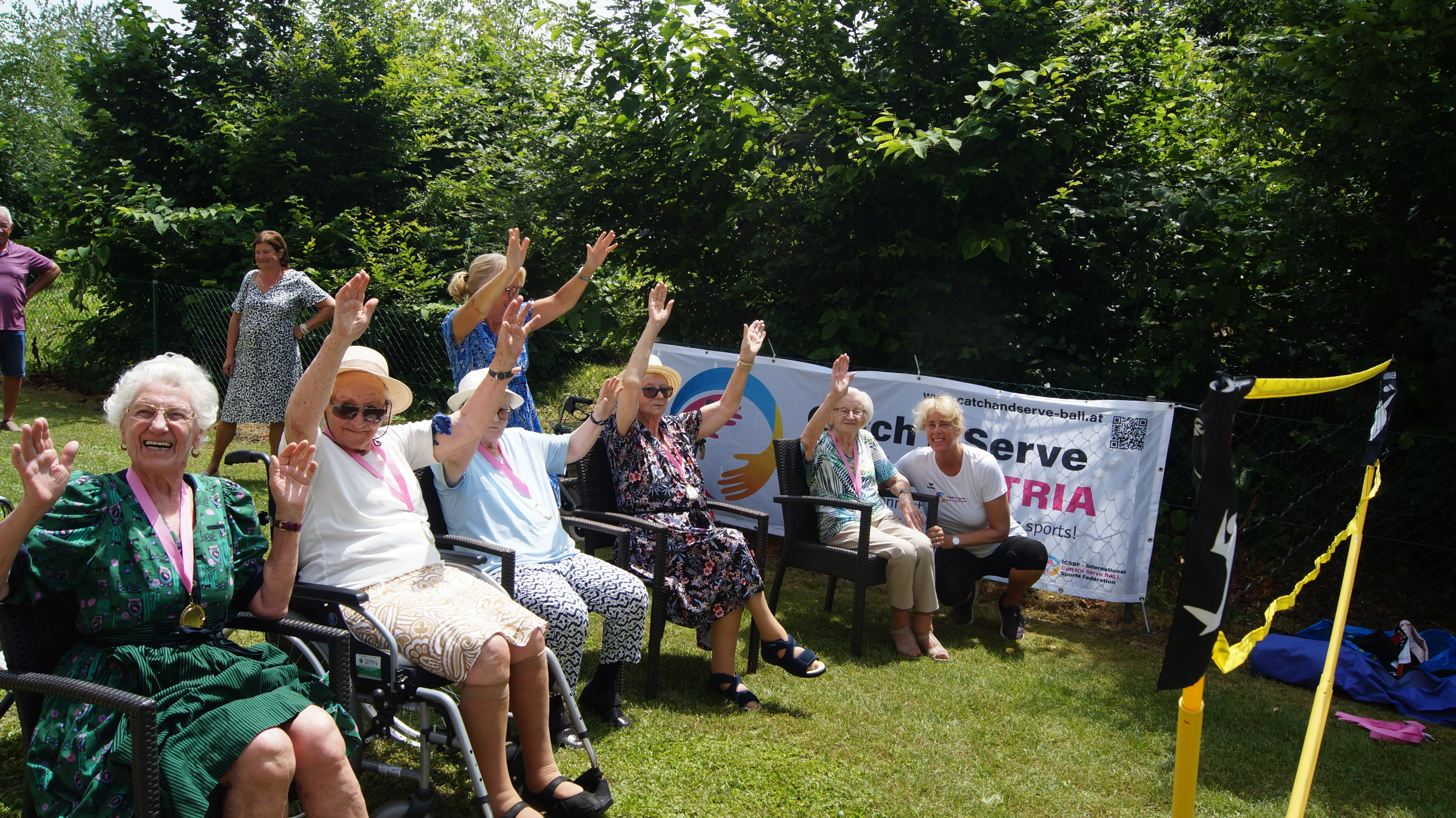 Auch sportlich ließ unser Fest nicht zu wünschen übrig. Frau Elisabeth Speiser-Havel, die Generalsekretärin von Catch’n Serve Ball Austria, besuchte uns erneut und es wurde wieder eine Partie „Catch´n Serve Ball“ ausgetragen. Dieses Mal samt Siegerehrung und der Verleihung von Medaillen. Die Sporteinlage hat allen Teilnehmer*innen gefallen und auch die Angehörigen unserer Bewohner*innen konnten sich für eine kleine Partie begeistern.