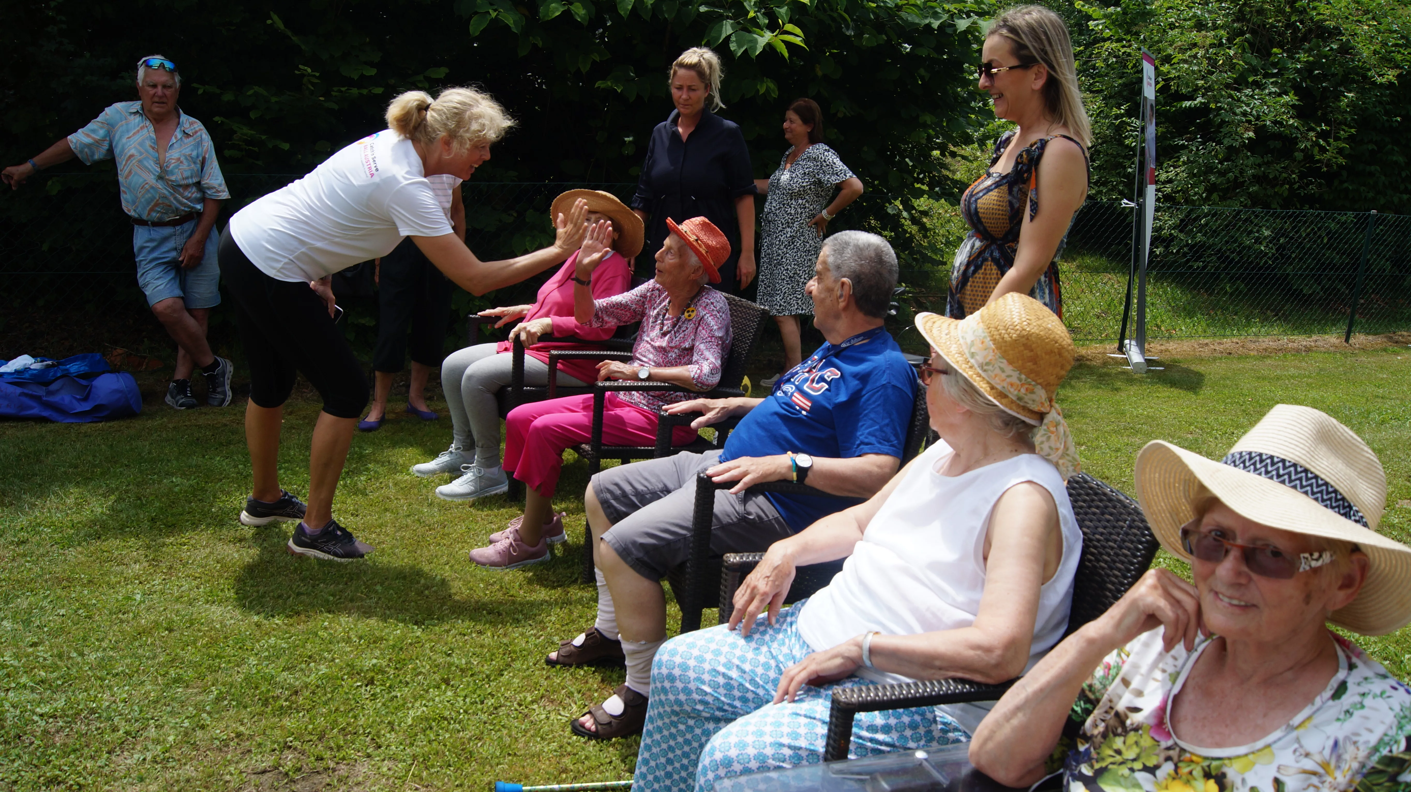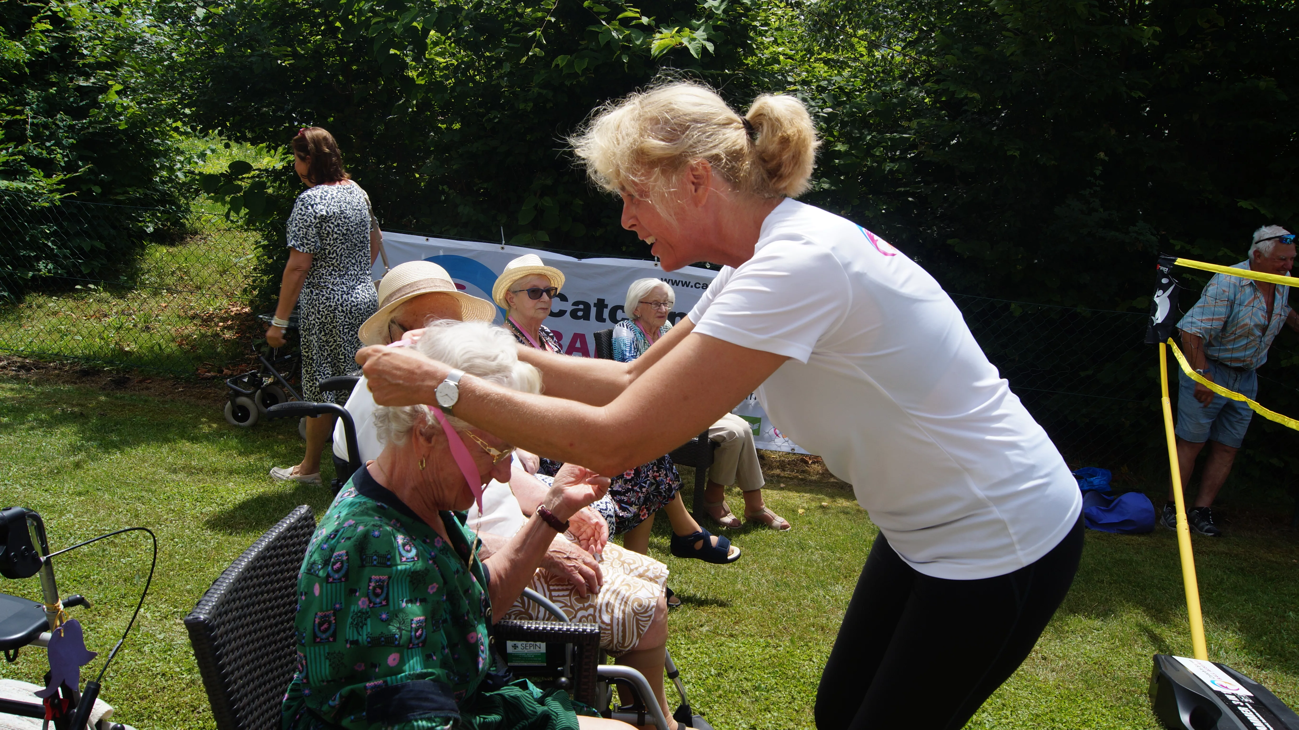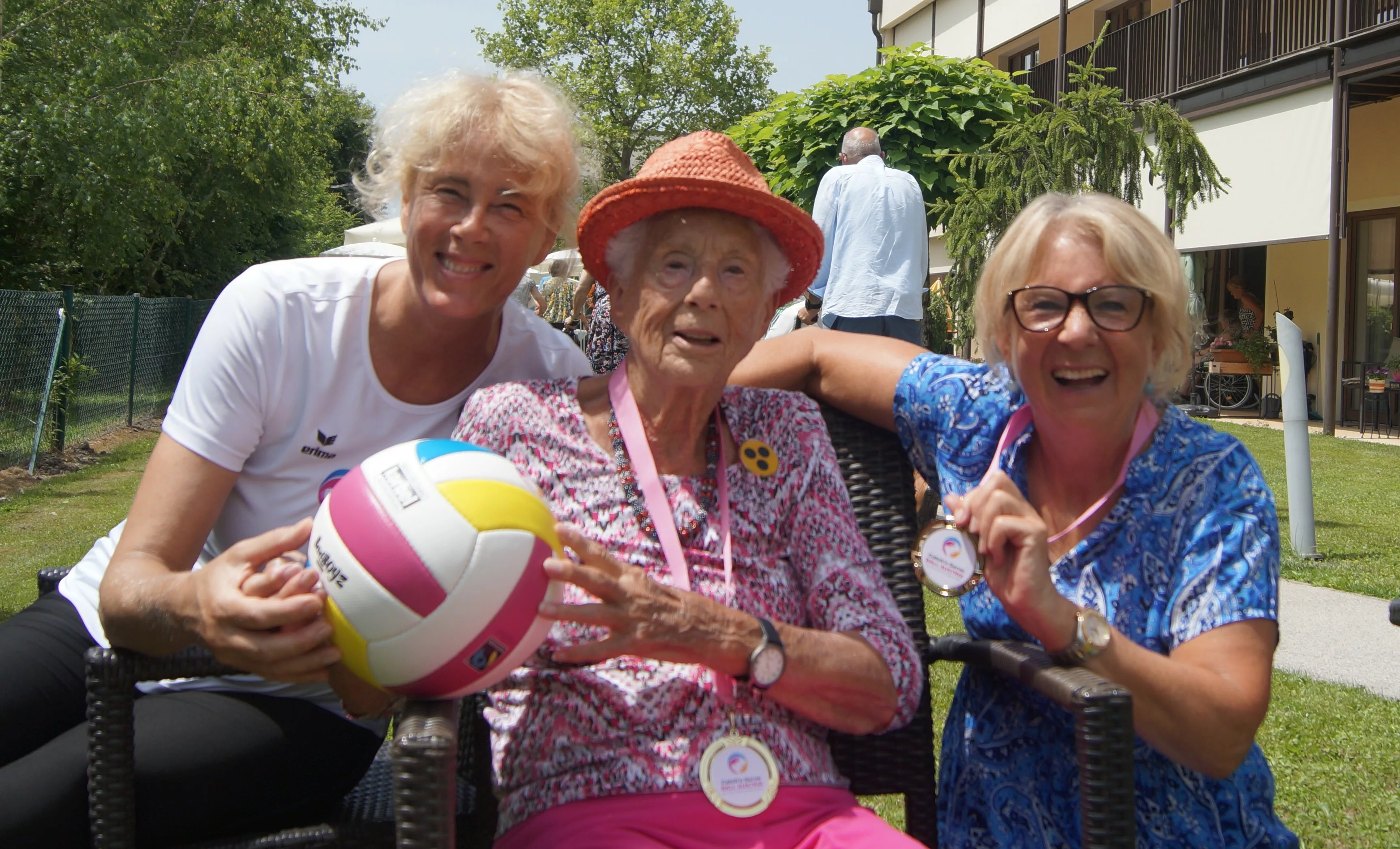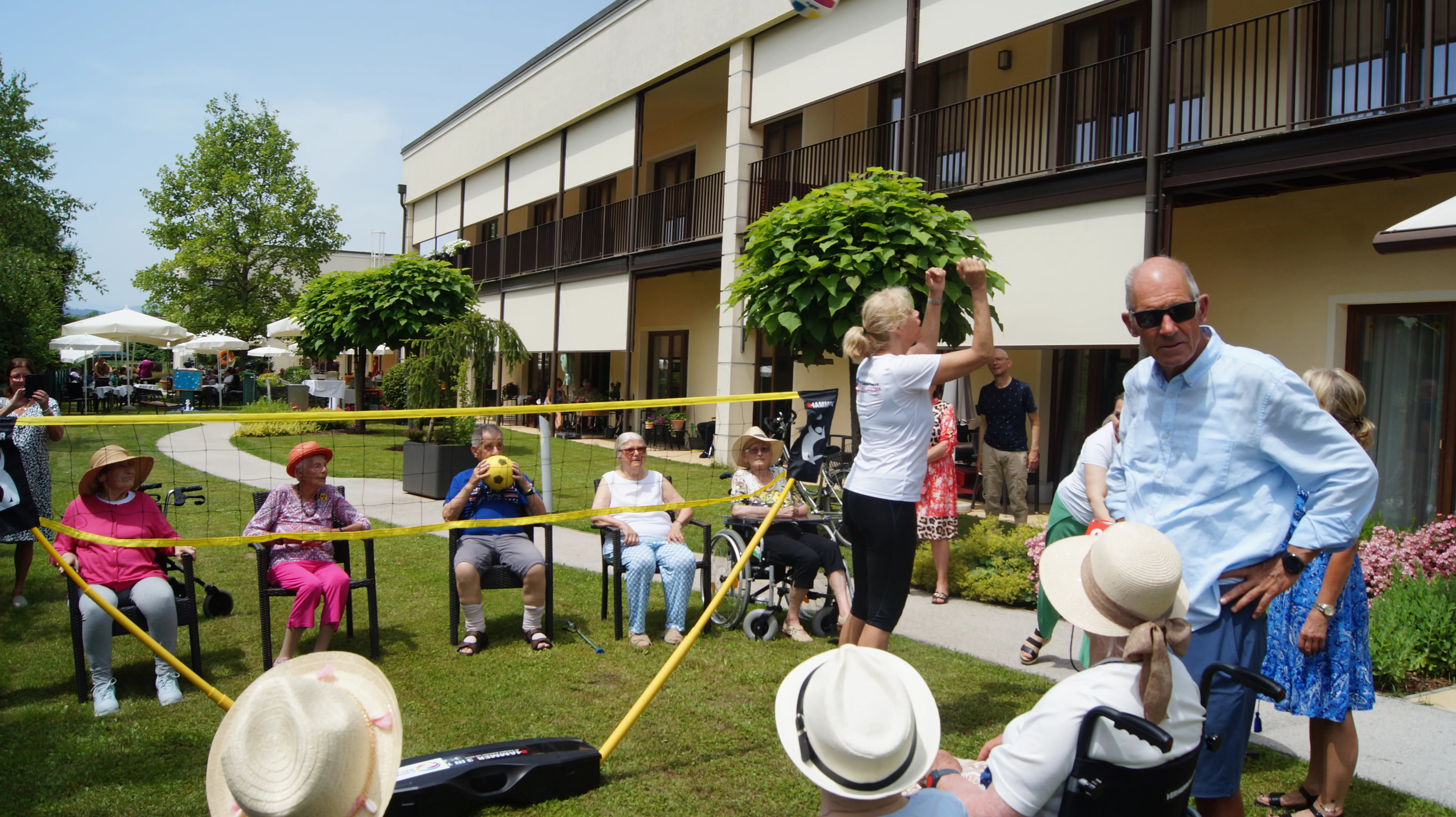 Auch sportlich ließ unser Fest nicht zu wünschen übrig. Frau Elisabeth Speiser-Havel, die Generalsekretärin von Catch’n Serve Ball Austria, besuchte uns erneut und es wurde wieder eine Partie „Catch´n Serve Ball“ ausgetragen. Dieses Mal samt Siegerehrung und der Verleihung von Medaillen. Die Sporteinlage hat allen Teilnehmer*innen gefallen und auch die Angehörigen unserer Bewohner*innen konnten sich für eine kleine Partie begeistern.