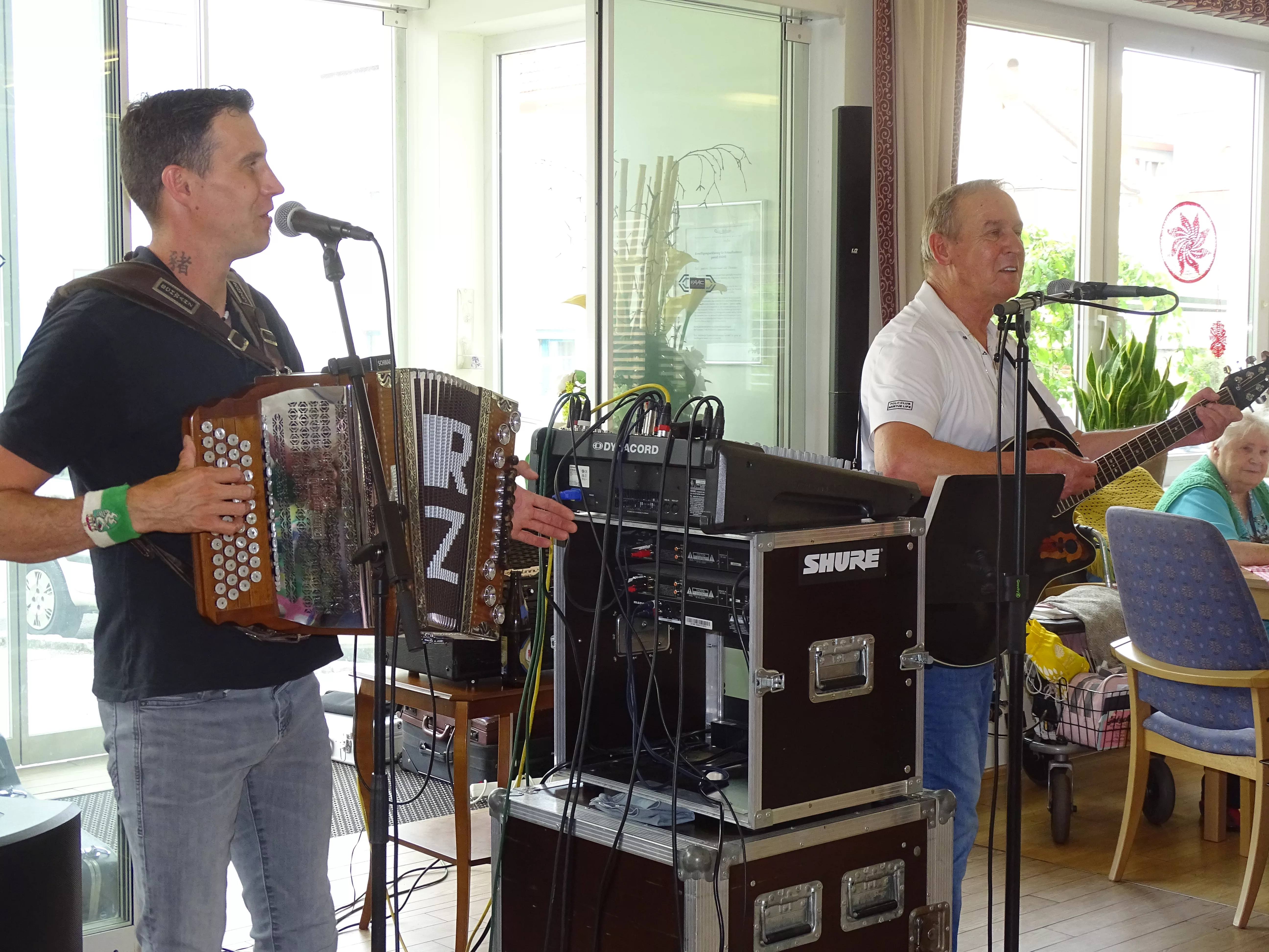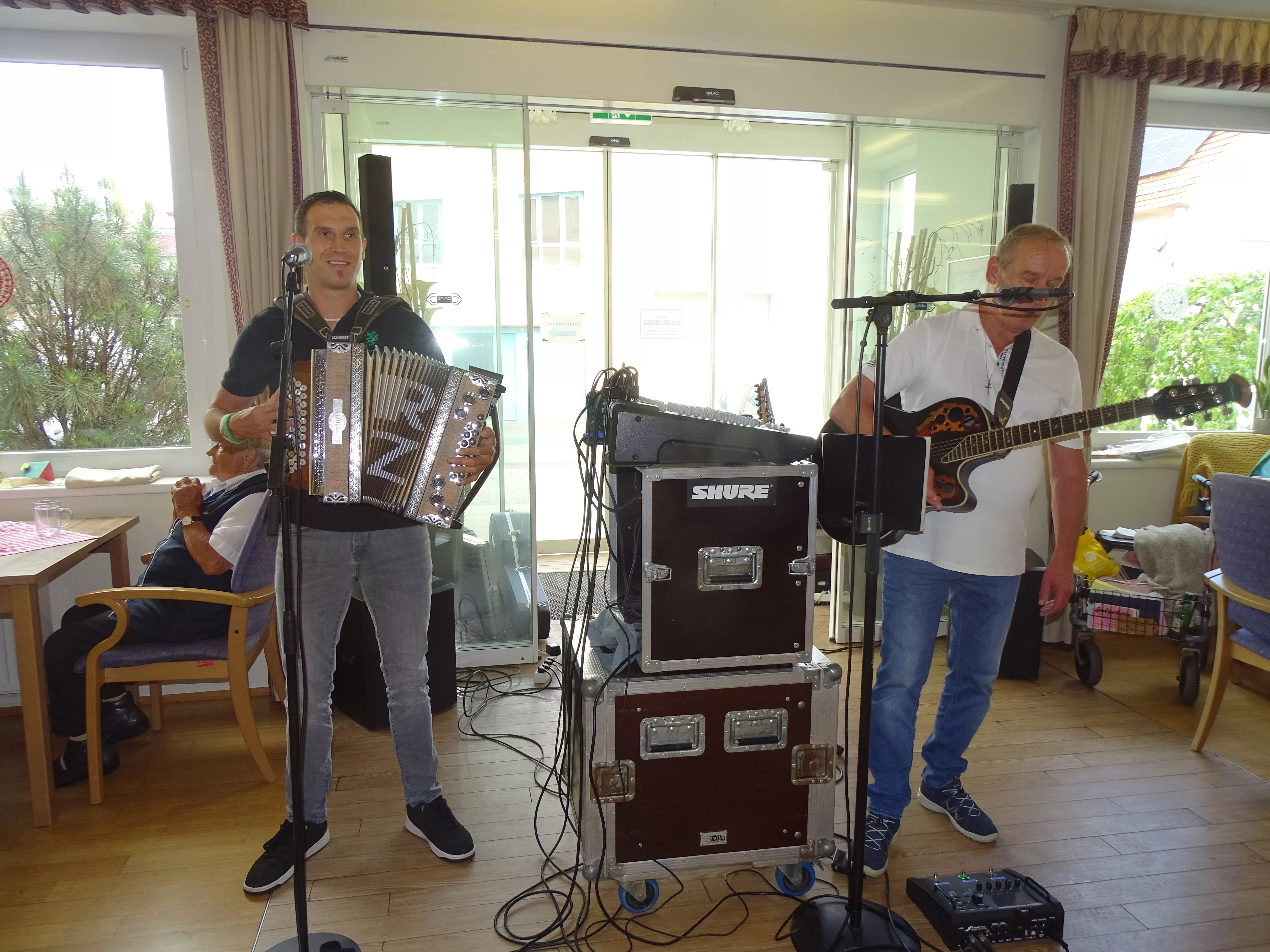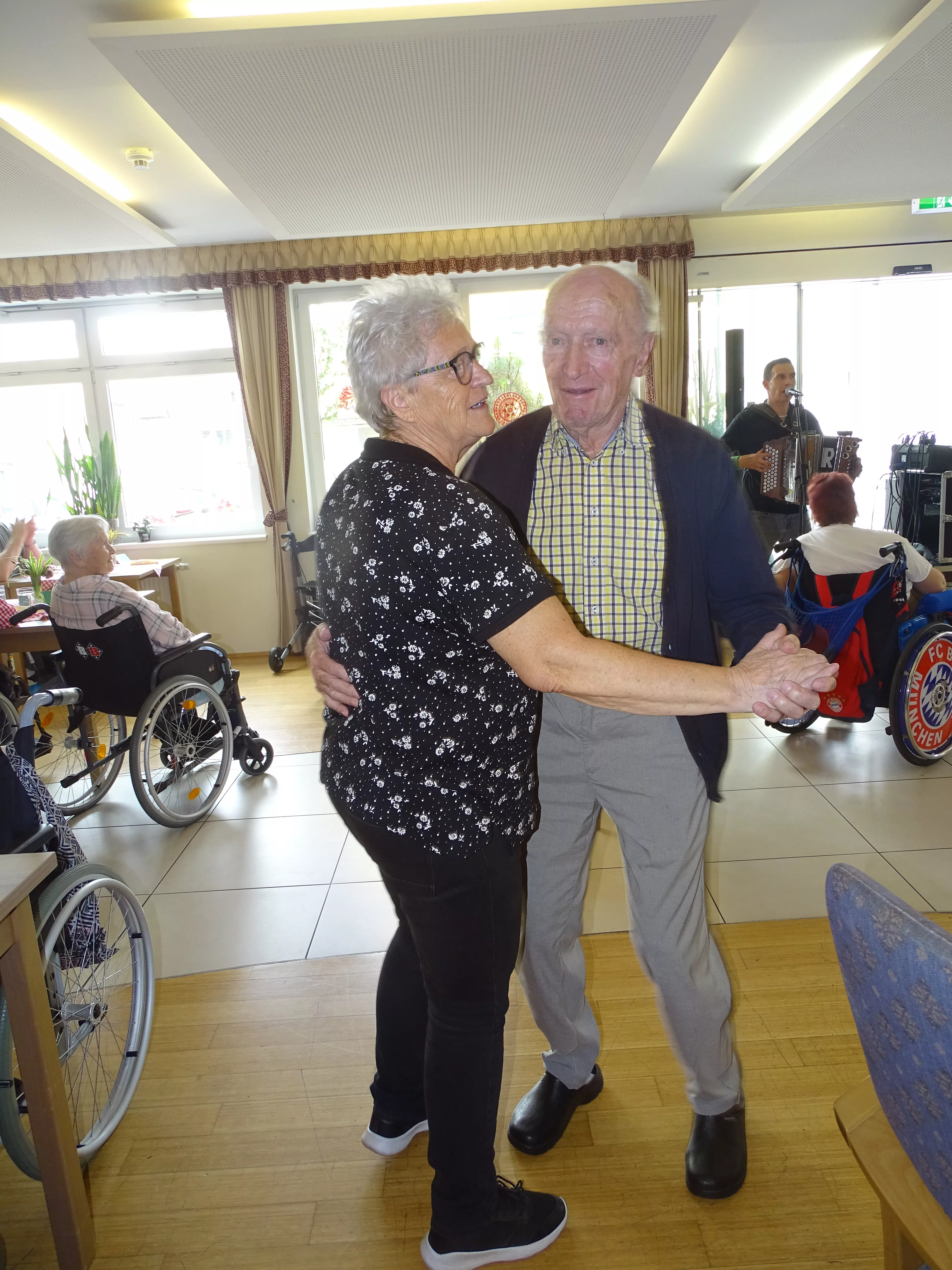 Trotz unbeständigem Wetter wurde im „Wie daham…“ Senioren-Stadthaus bei musikalischer Unterhaltung durch Otto und Roland Zanger das Grillfest gefeiert.