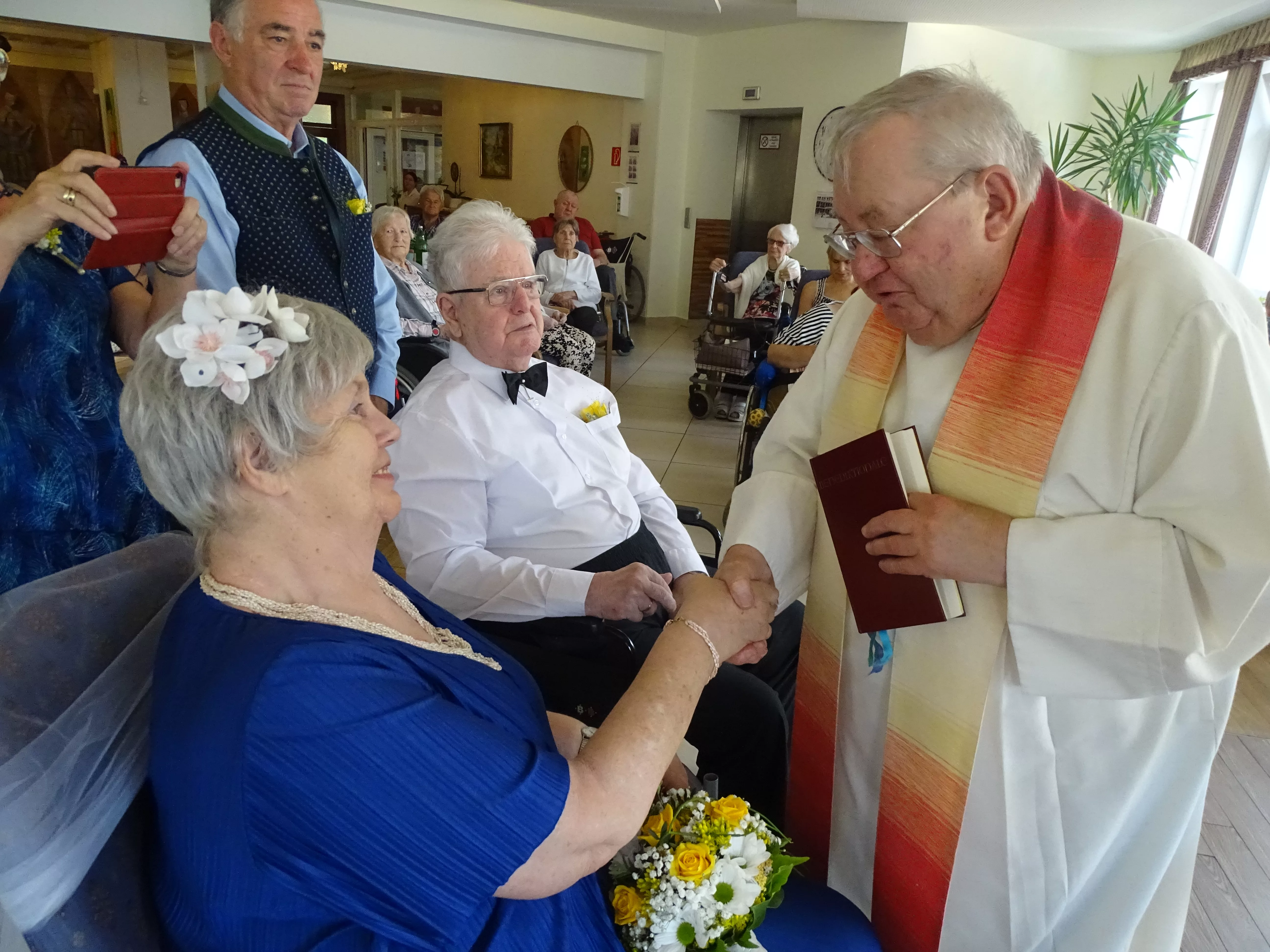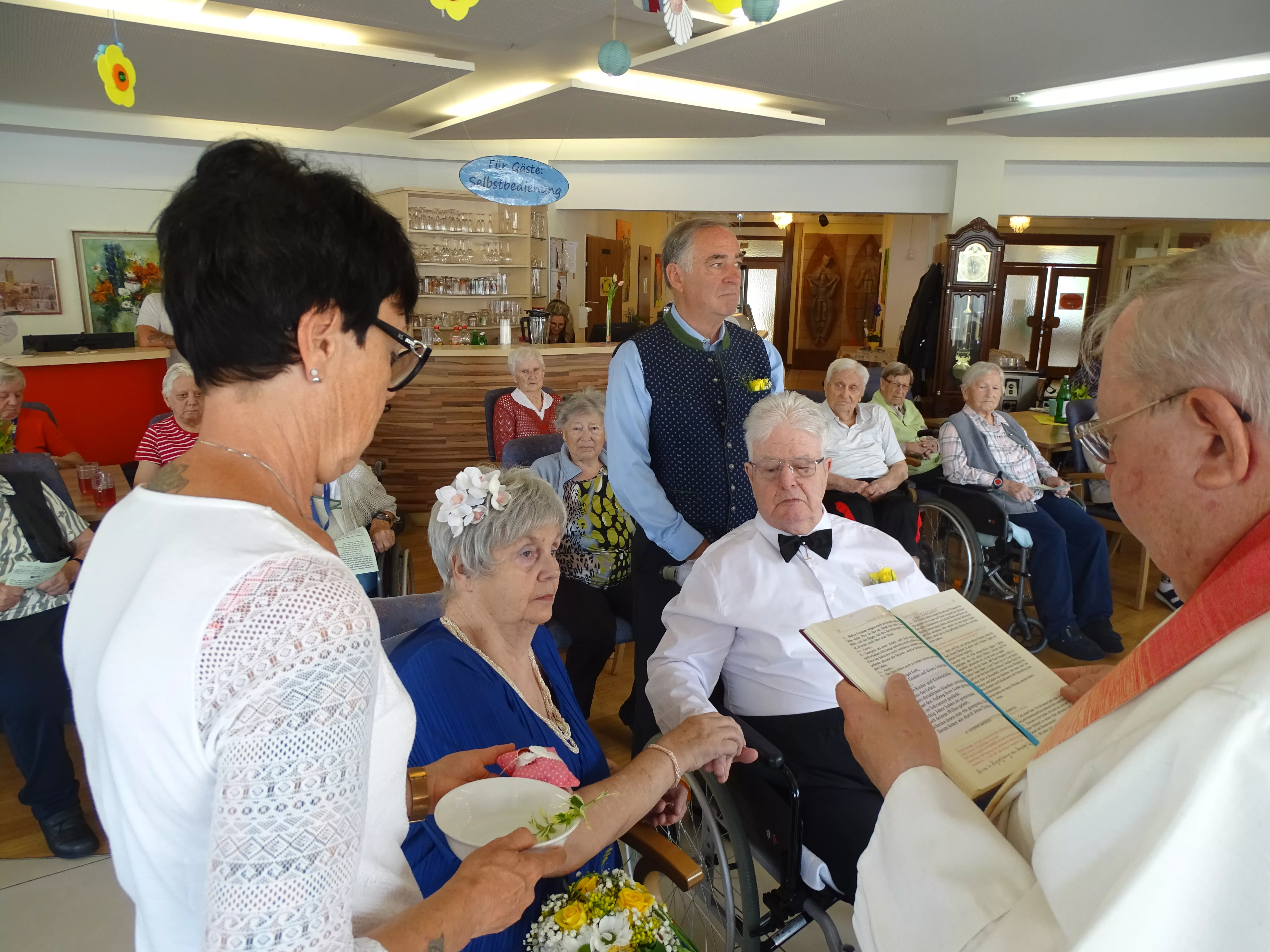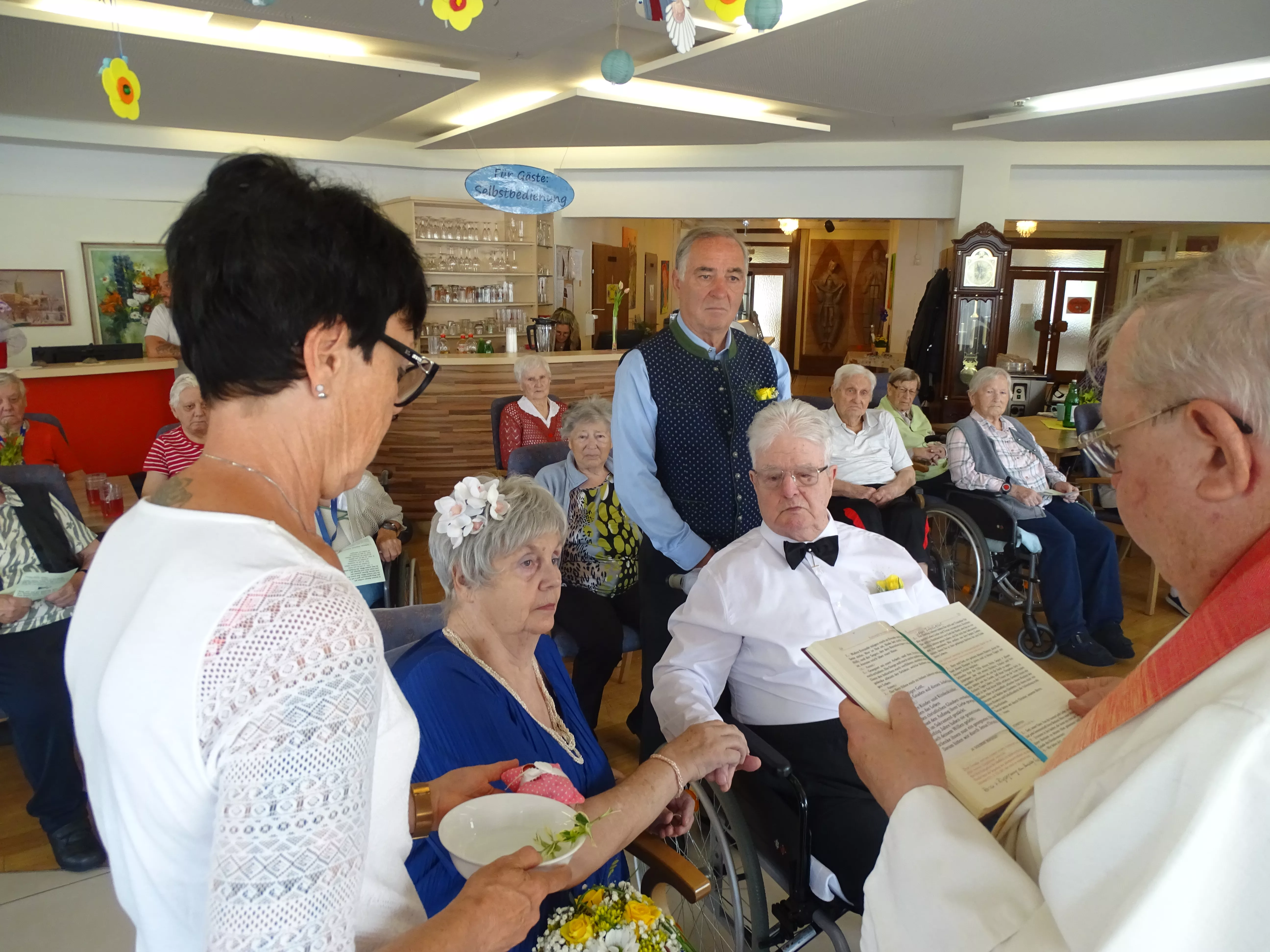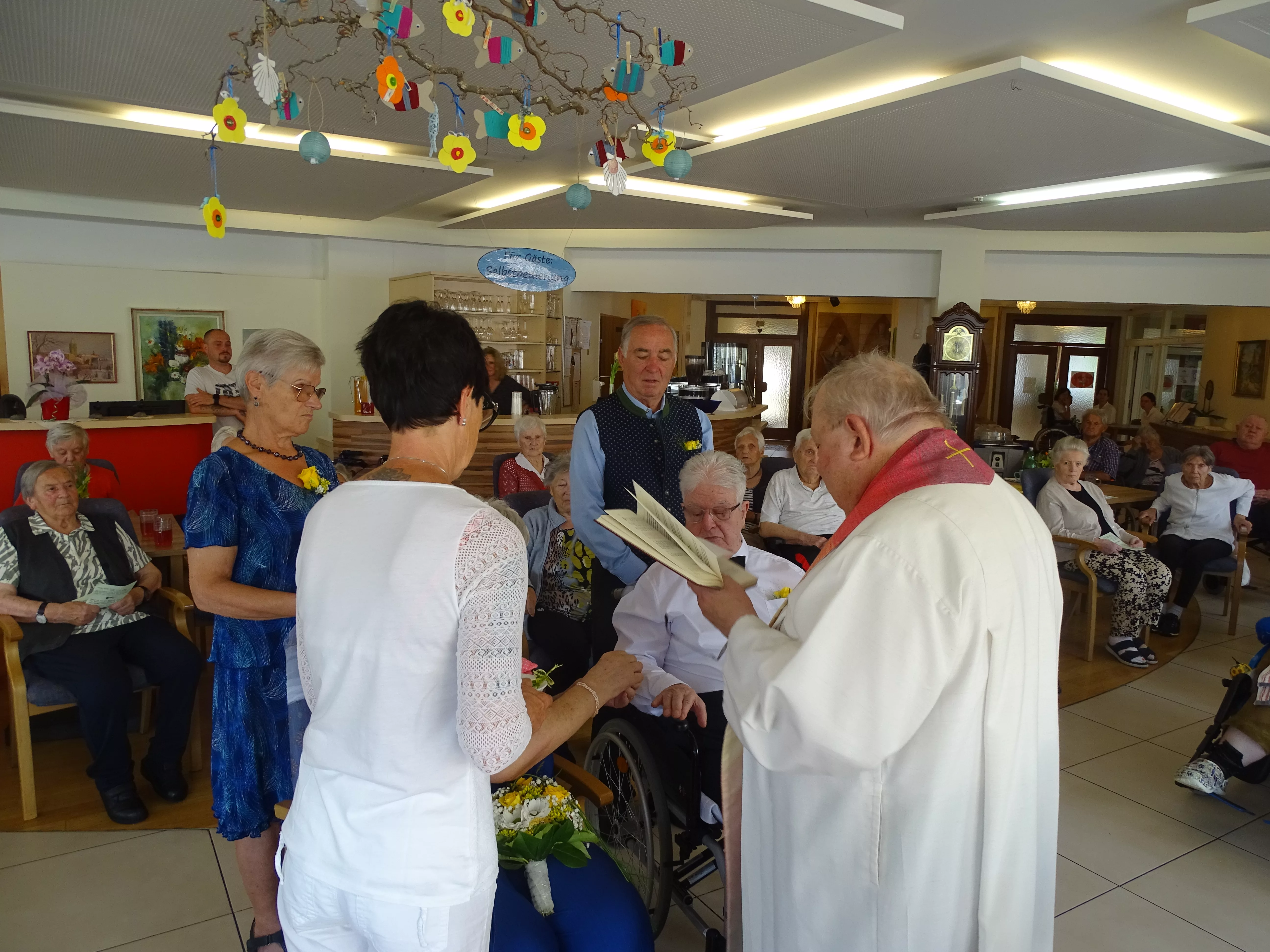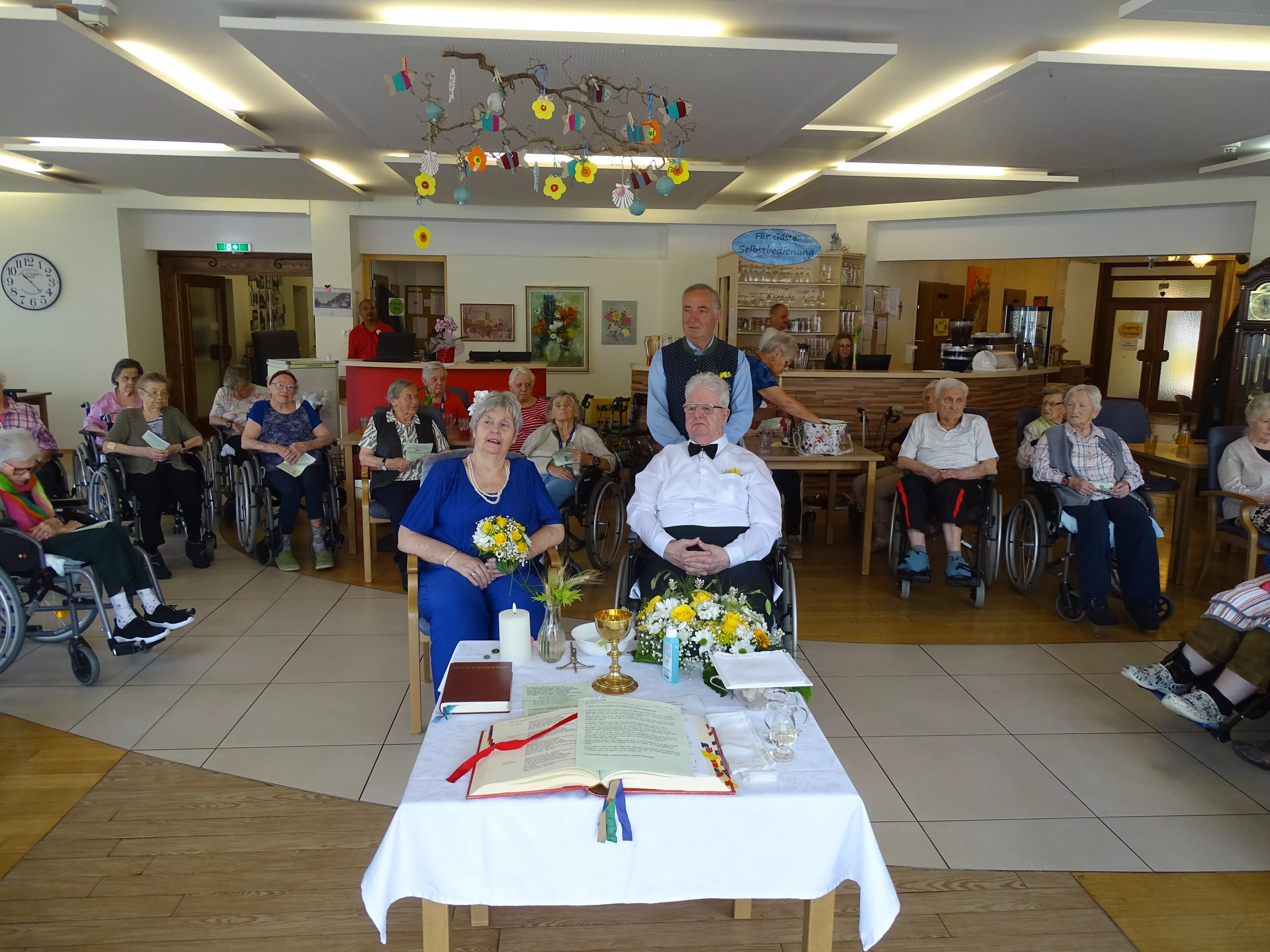50. Hochzeitstag Anlässlich des 50. Hochzeitstag von Fam. Schaflecher, Bewohner im „Wie daham…“ Senioren-Stadthaus Judenburg, fand im Rahmen der Hl. Messe eine Segnung und eine Auffrischung des Eheversprechens, durch Herrn Geistl. Rat Pfarrer Florian Zach, statt.