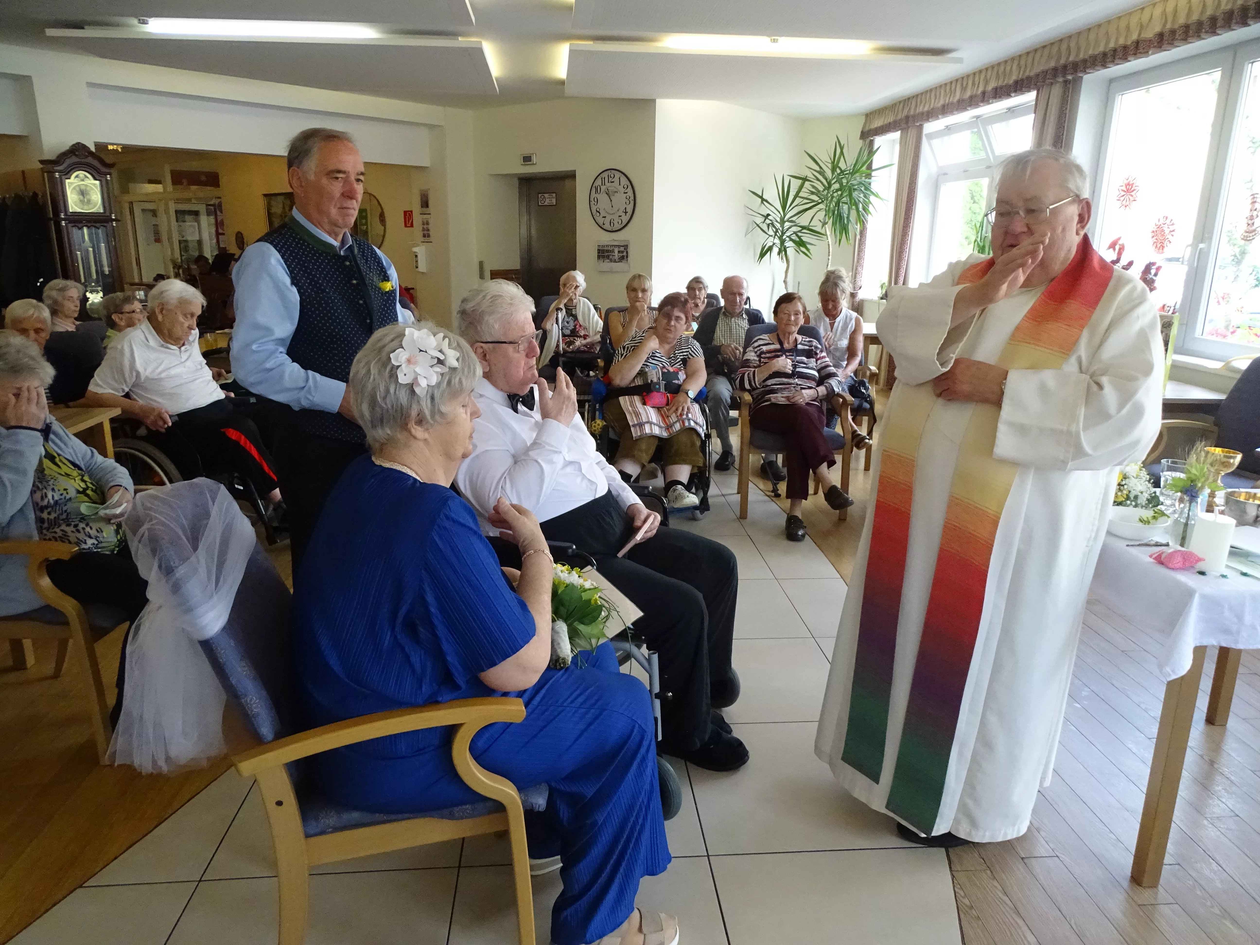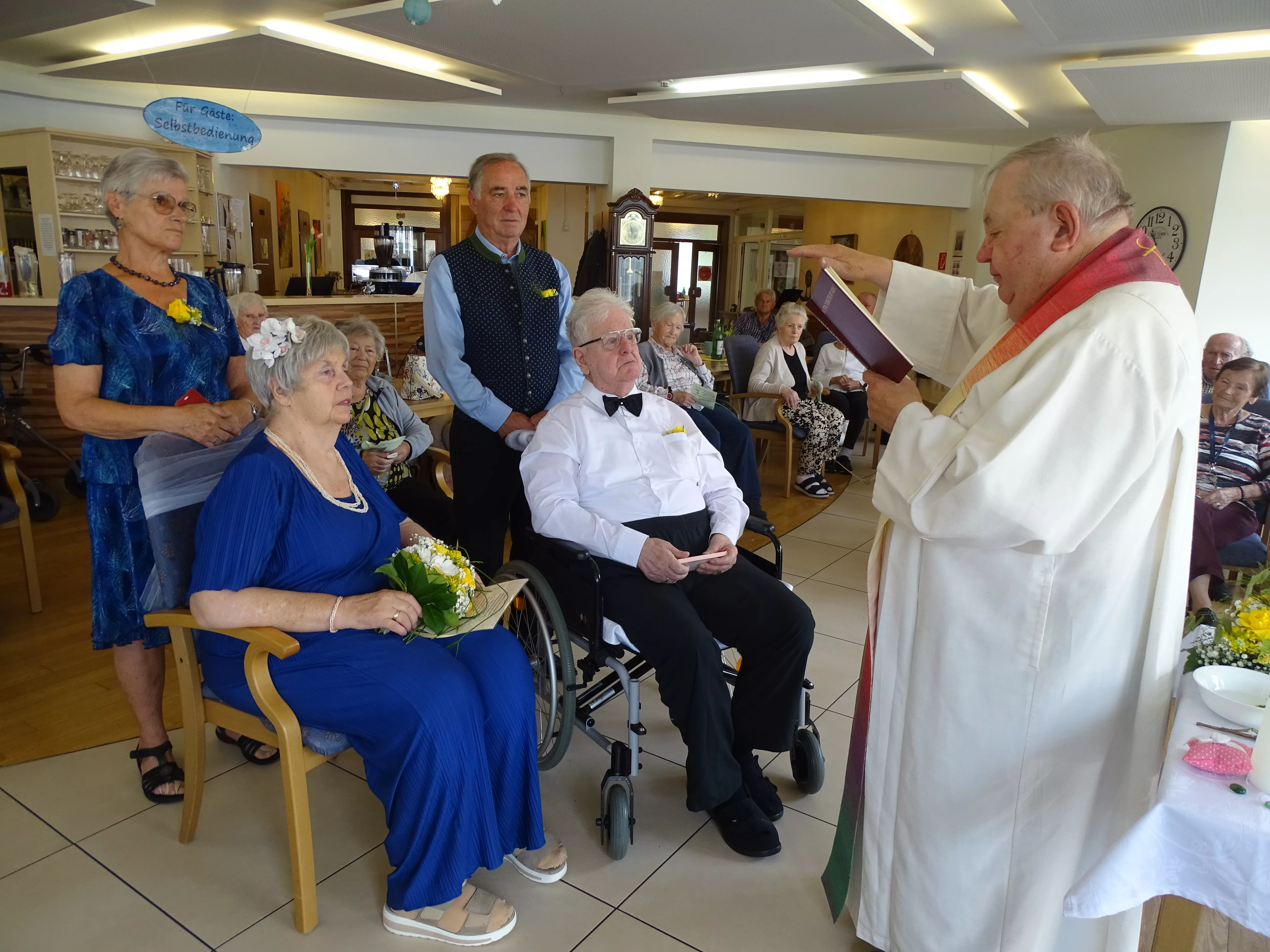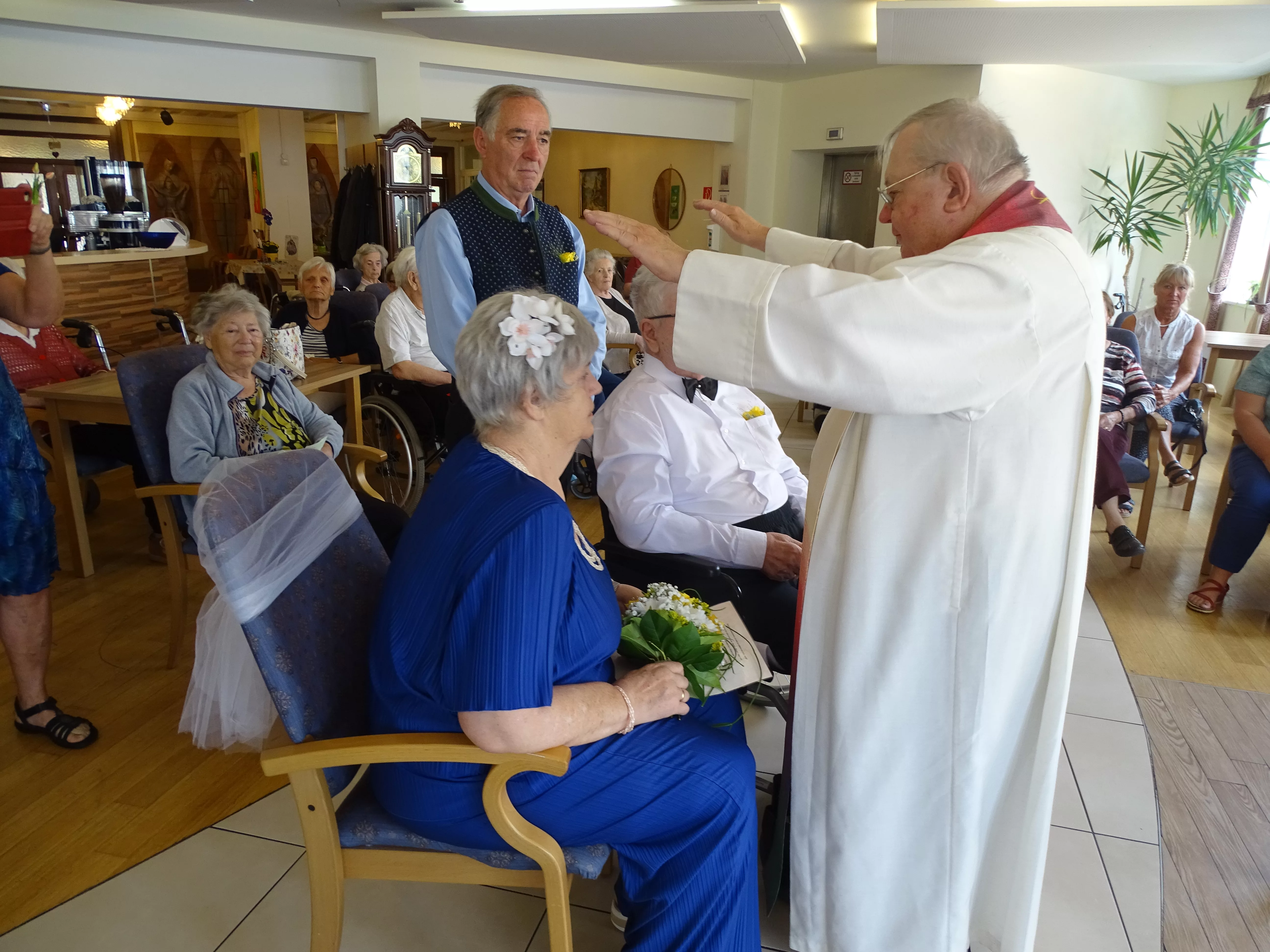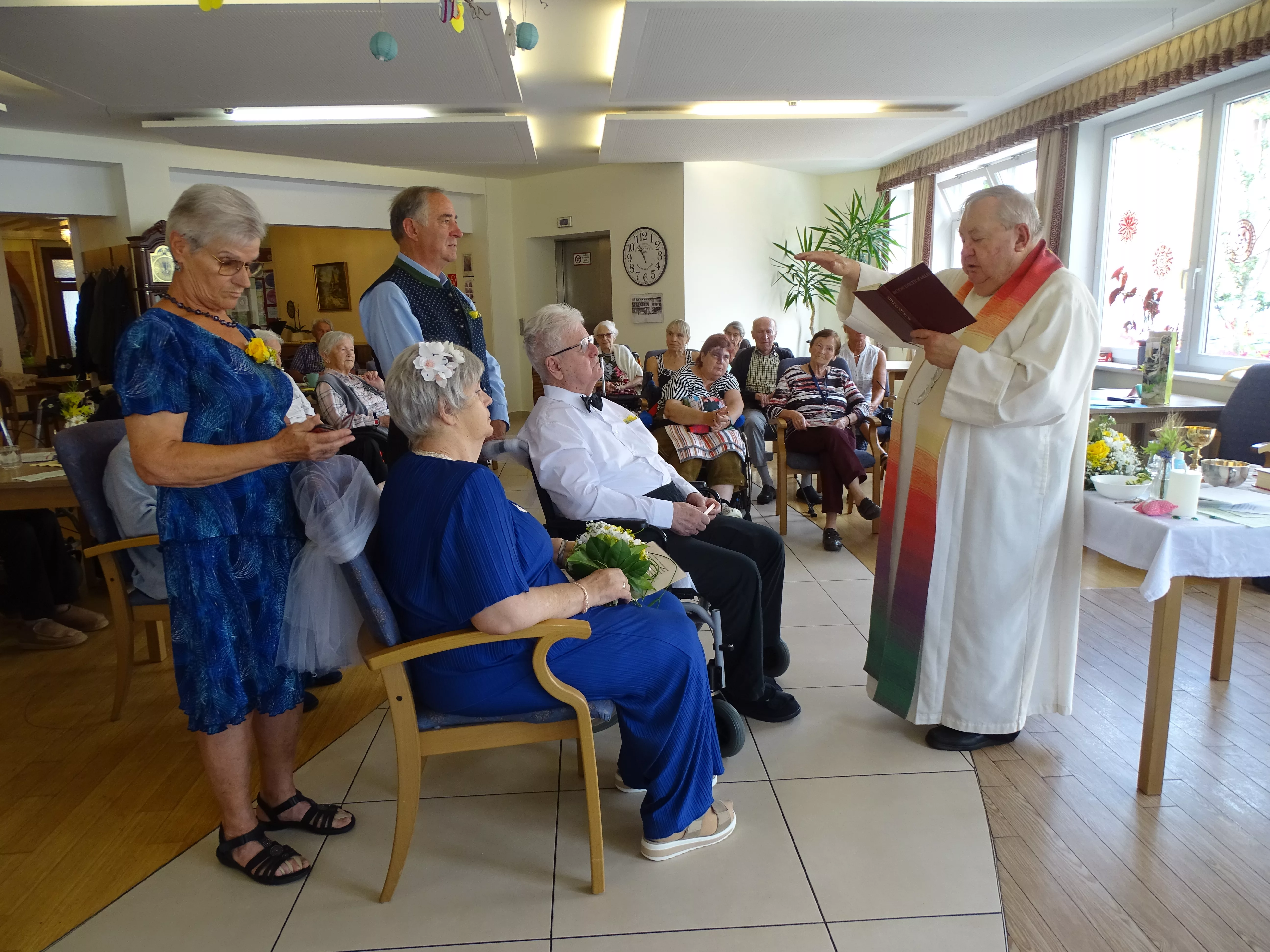 50. Hochzeitstag Anlässlich des 50. Hochzeitstag von Fam. Schaflecher, Bewohner im „Wie daham…“ Senioren-Stadthaus Judenburg, fand im Rahmen der Hl. Messe eine Segnung und eine Auffrischung des Eheversprechens, durch Herrn Geistl. Rat Pfarrer Florian Zach, statt.