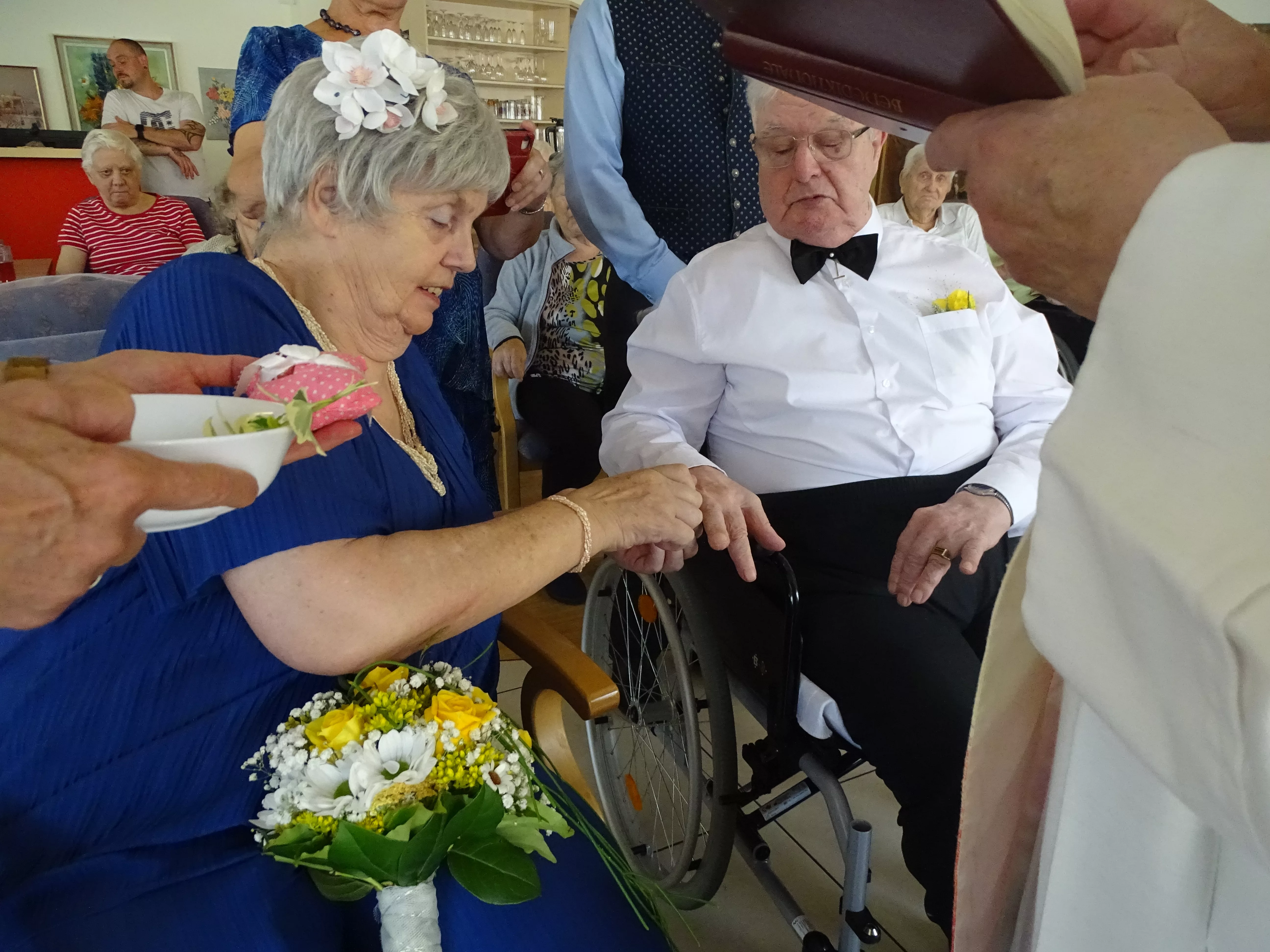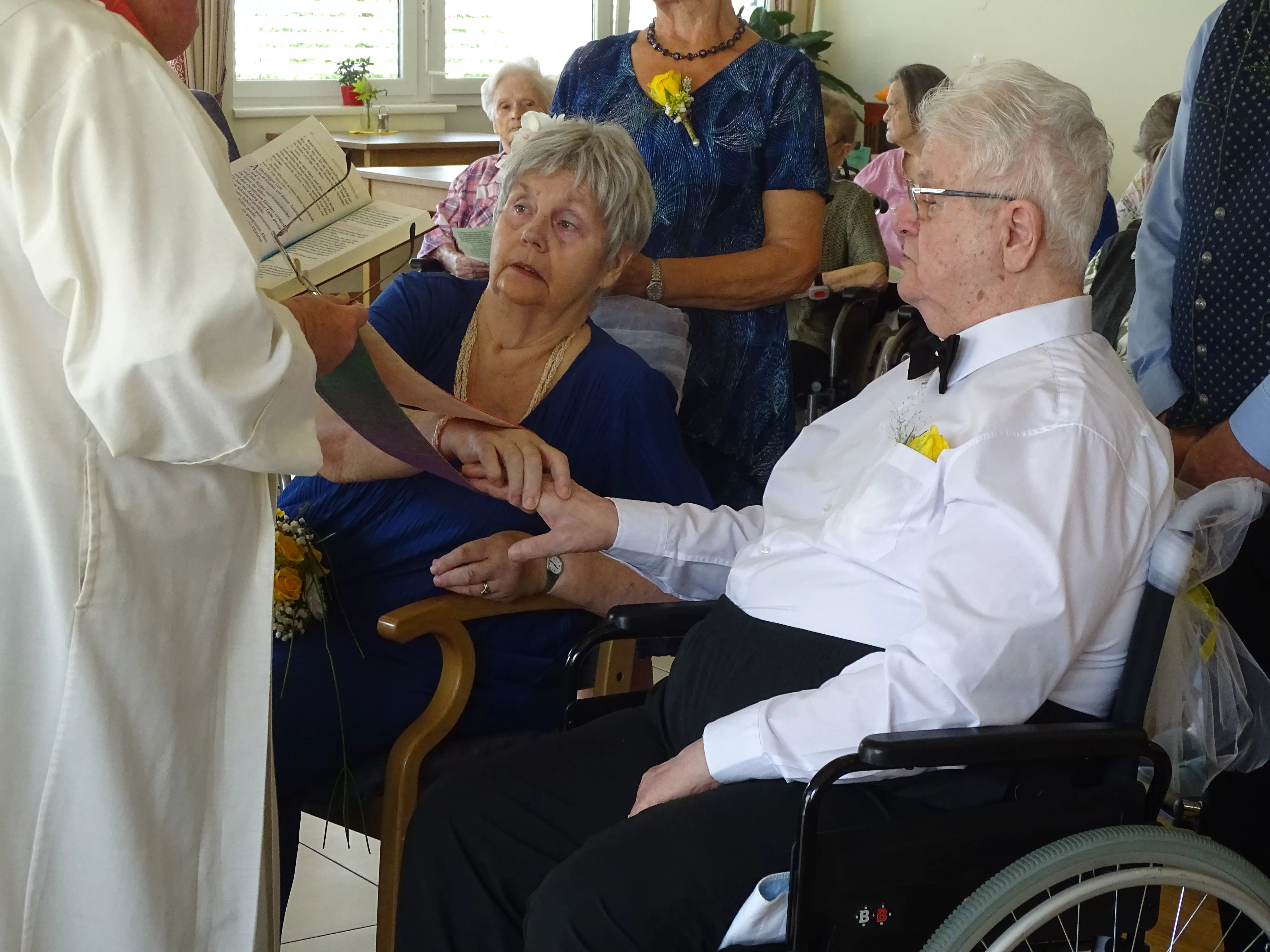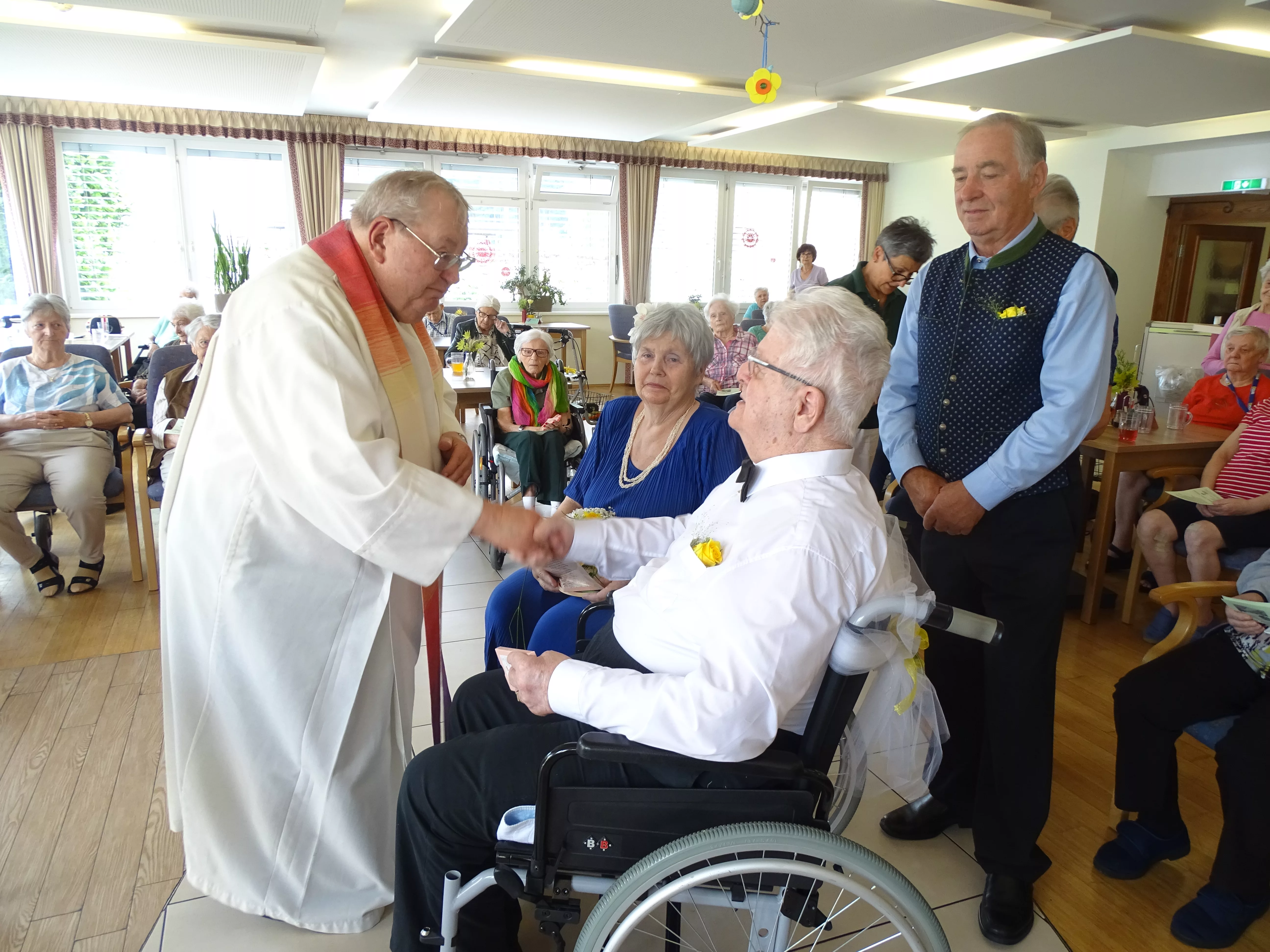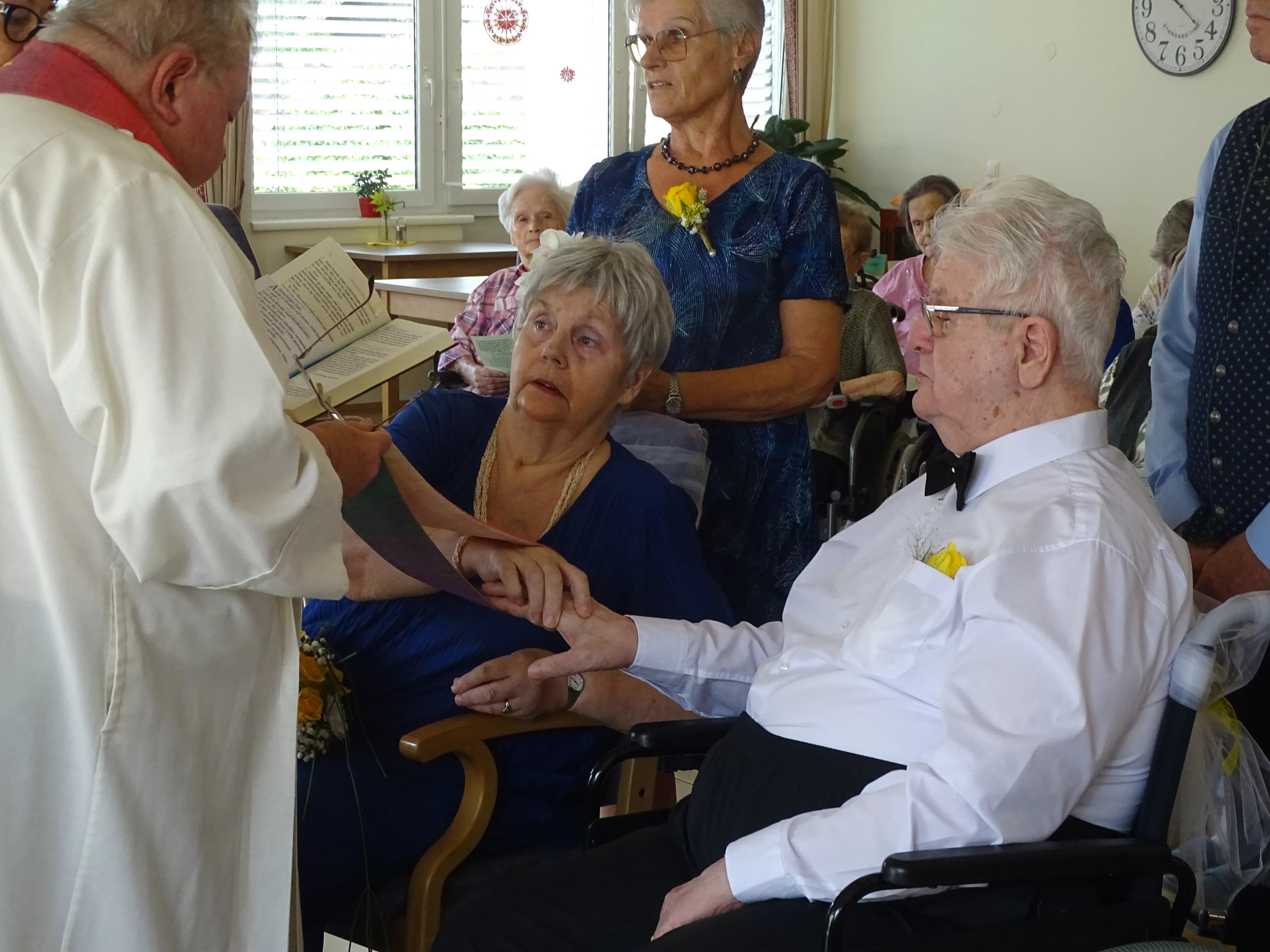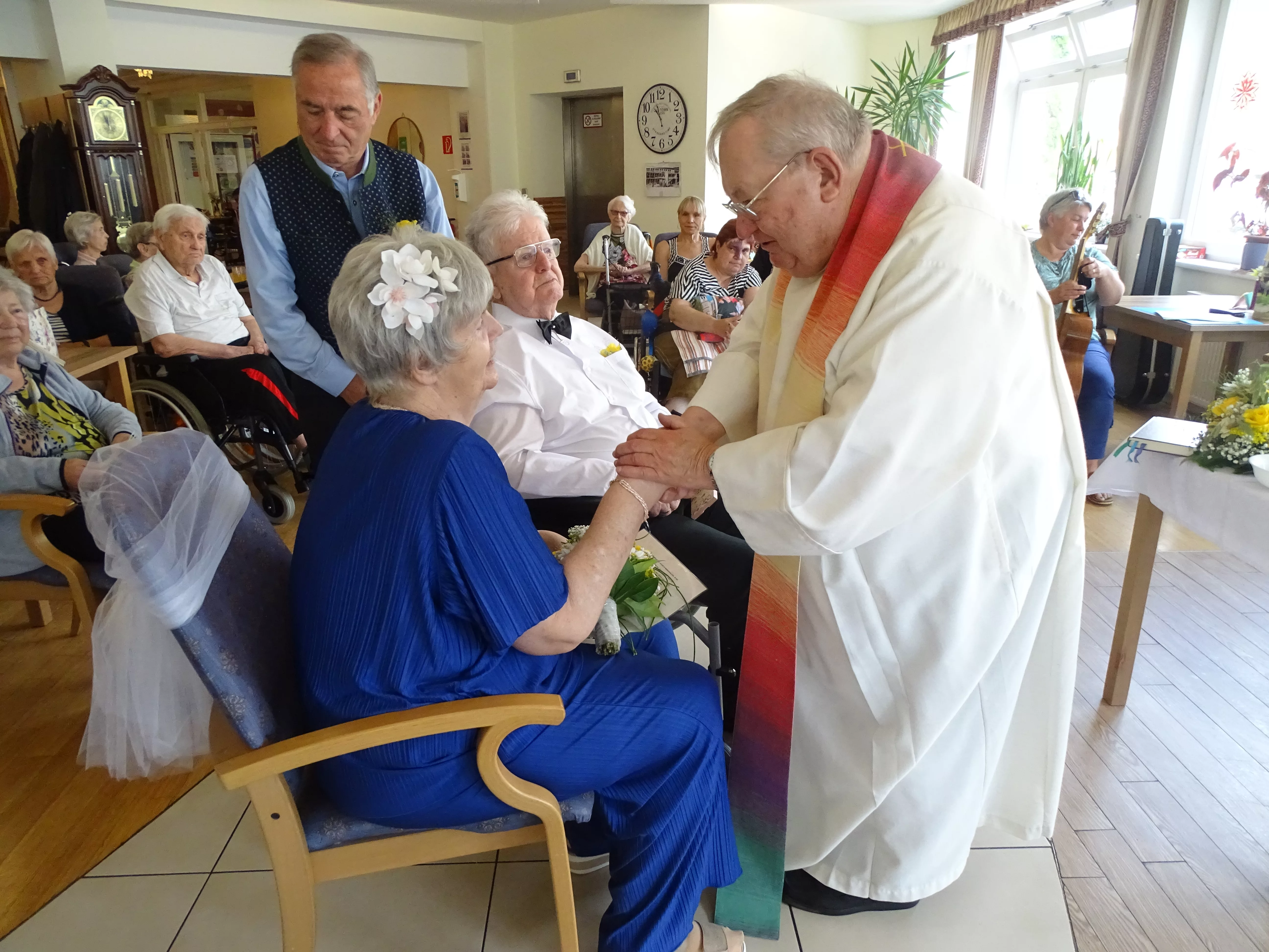 50. Hochzeitstag Anlässlich des 50. Hochzeitstag von Fam. Schaflecher, Bewohner im „Wie daham…“ Senioren-Stadthaus Judenburg, fand im Rahmen der Hl. Messe eine Segnung und eine Auffrischung des Eheversprechens, durch Herrn Geistl. Rat Pfarrer Florian Zach, statt.