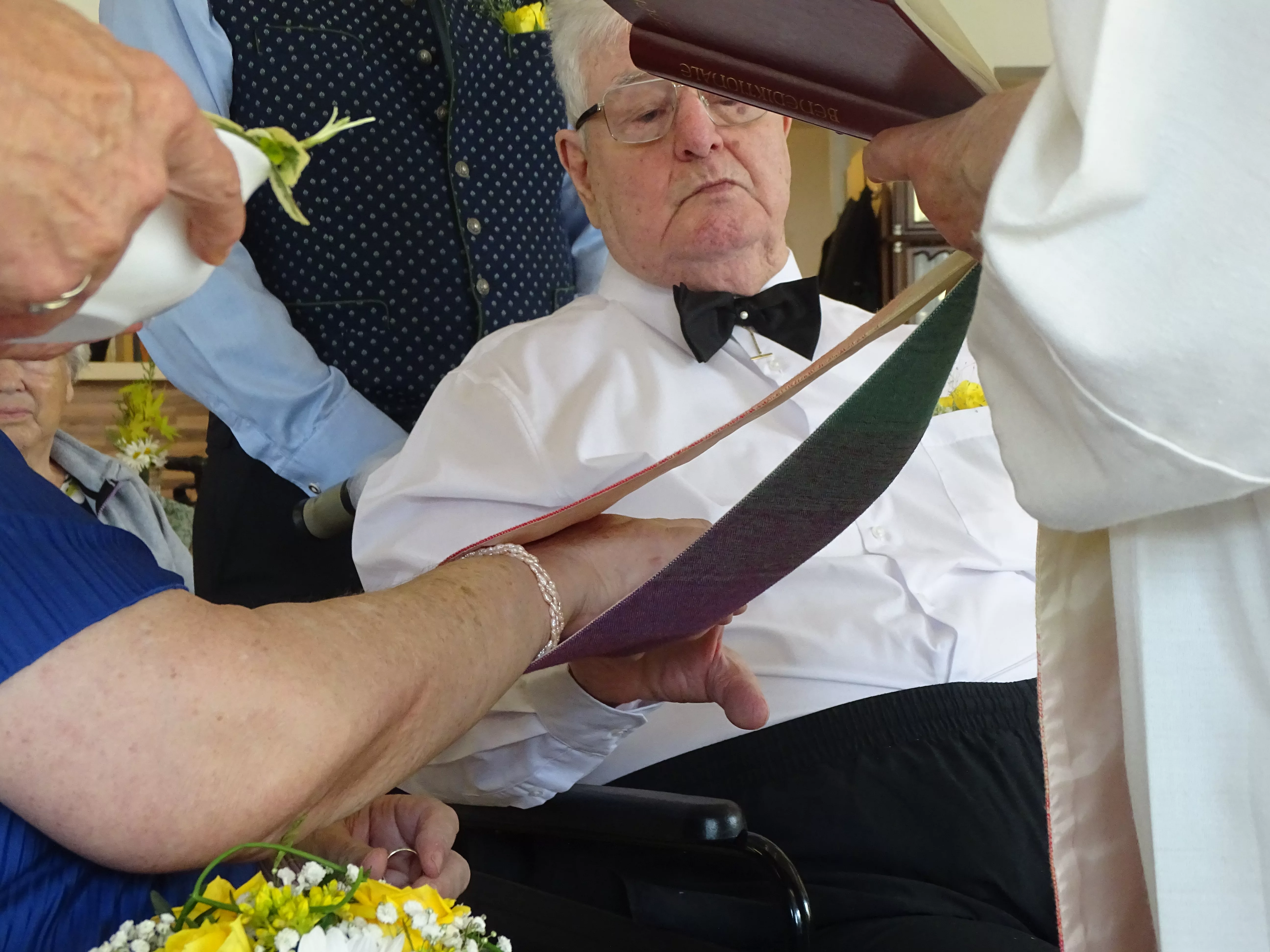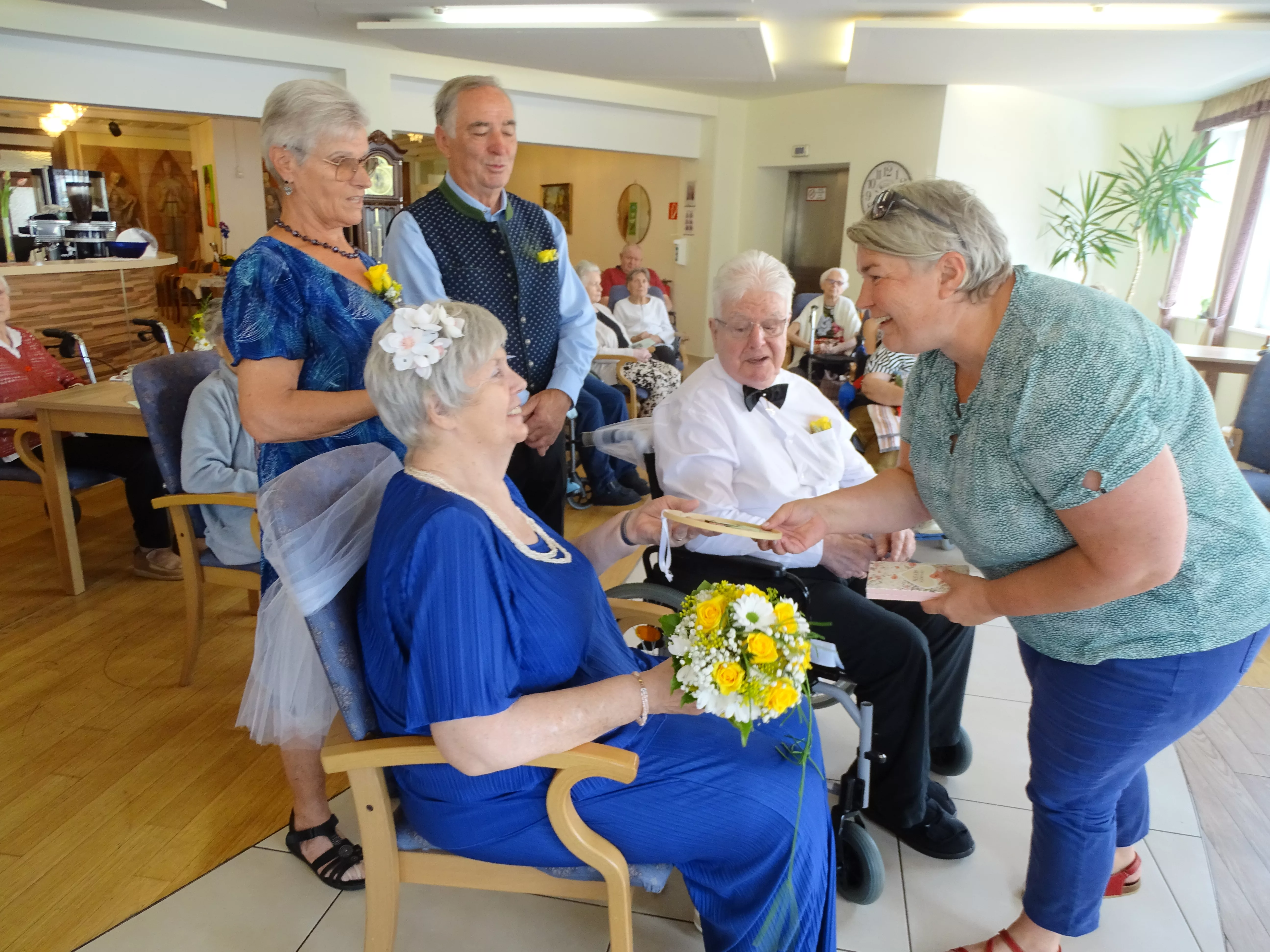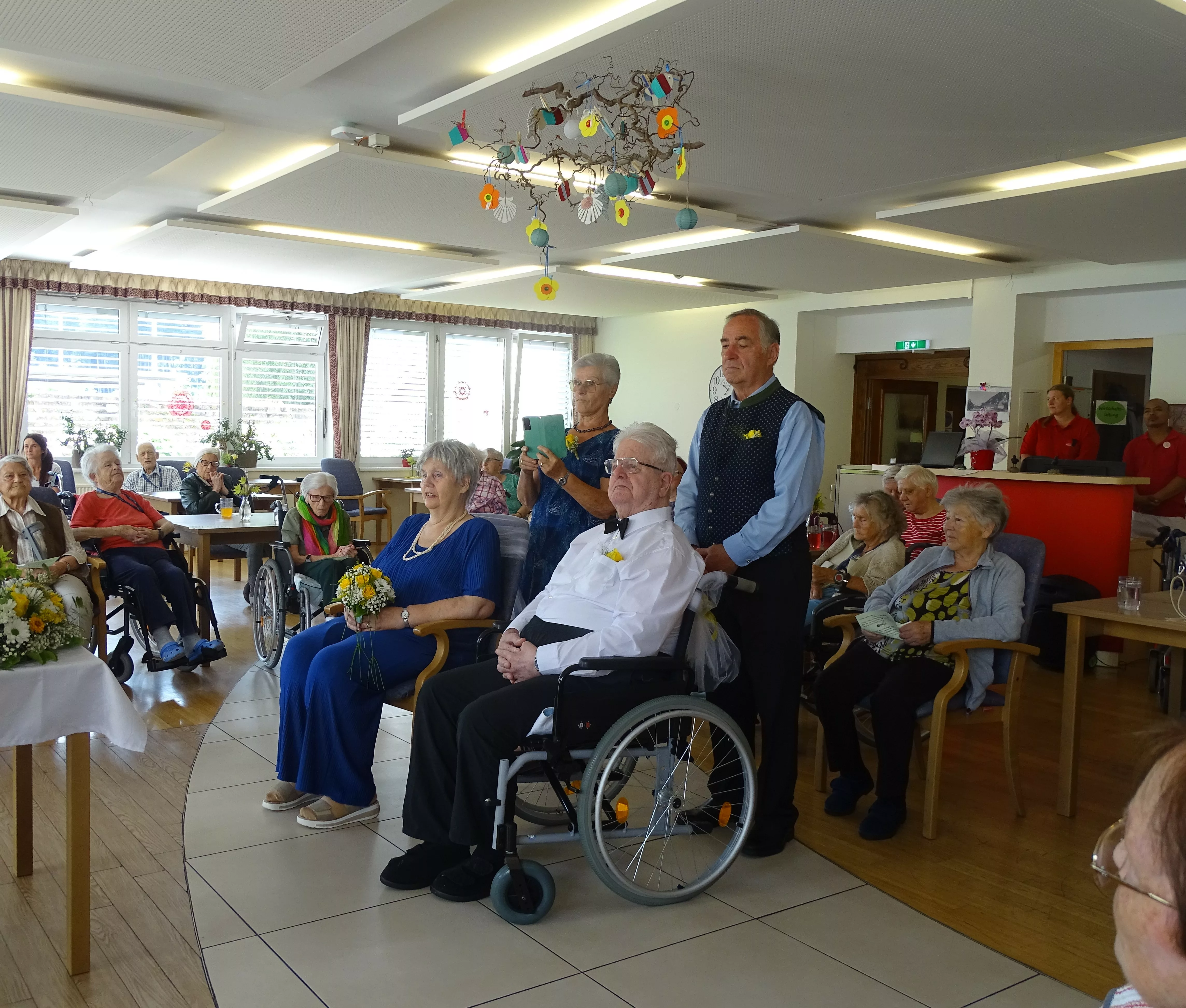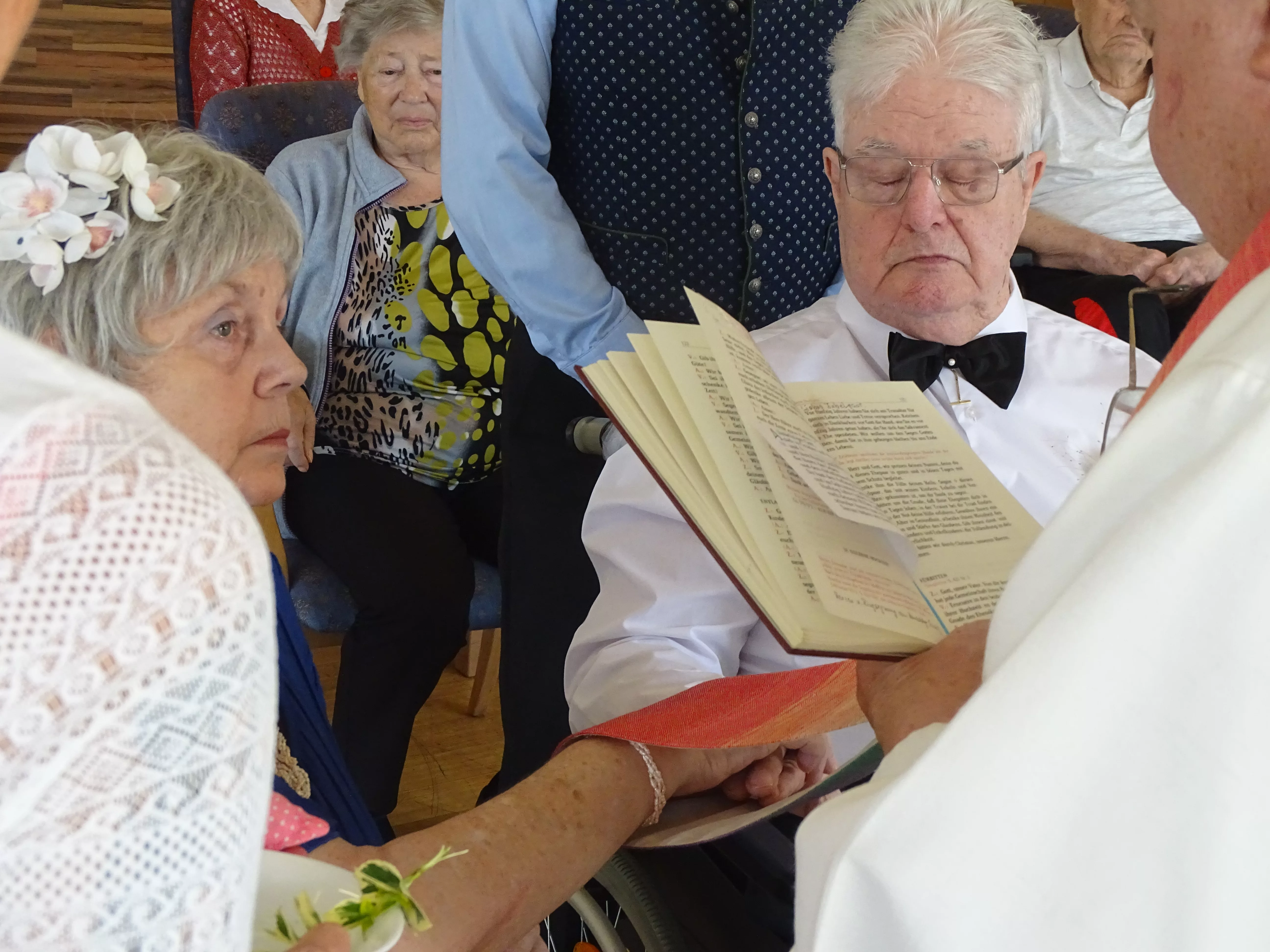 50. Hochzeitstag Anlässlich des 50. Hochzeitstag von Fam. Schaflecher, Bewohner im „Wie daham…“ Senioren-Stadthaus Judenburg, fand im Rahmen der Hl. Messe eine Segnung und eine Auffrischung des Eheversprechens, durch Herrn Geistl. Rat Pfarrer Florian Zach, statt.