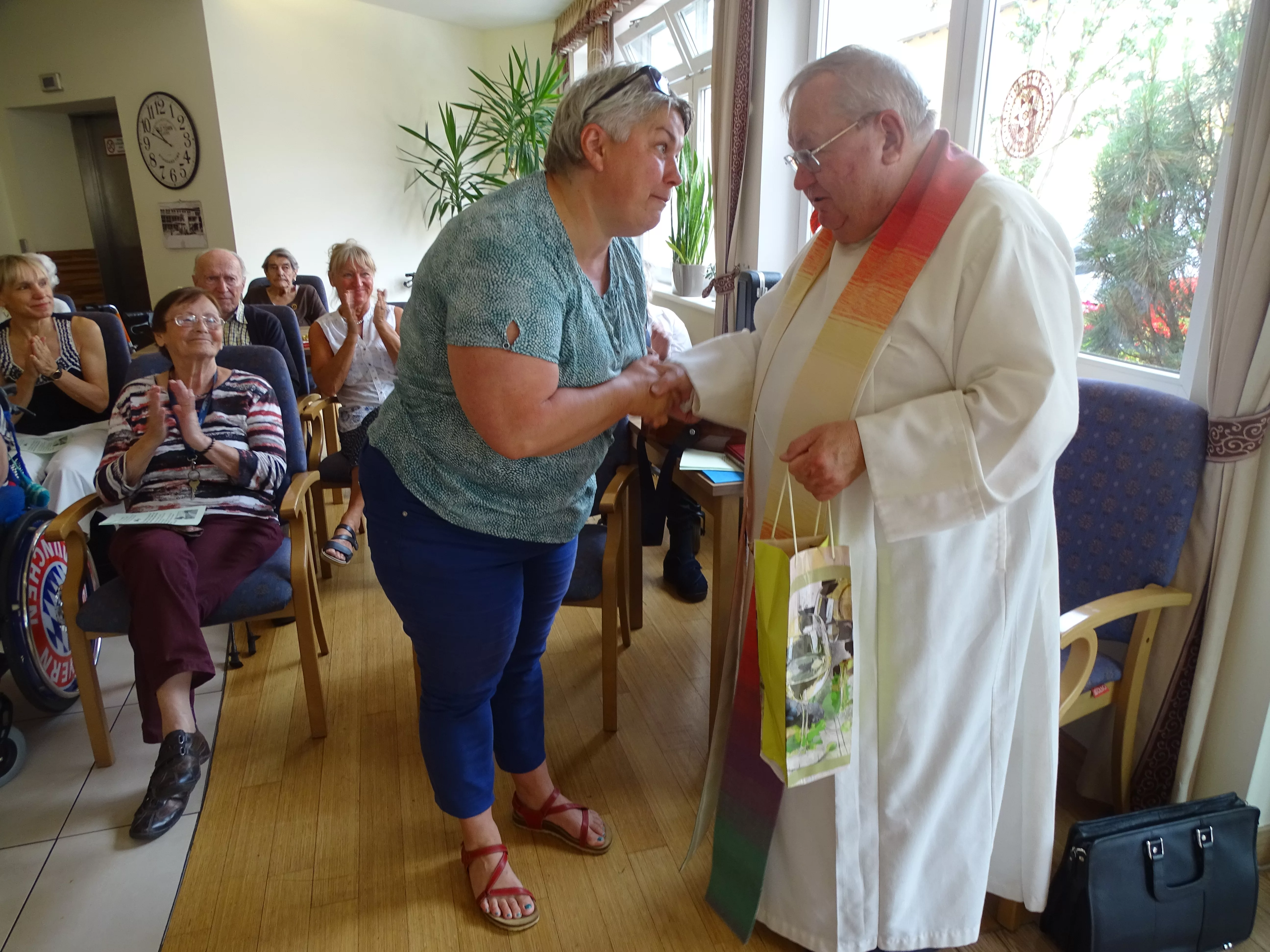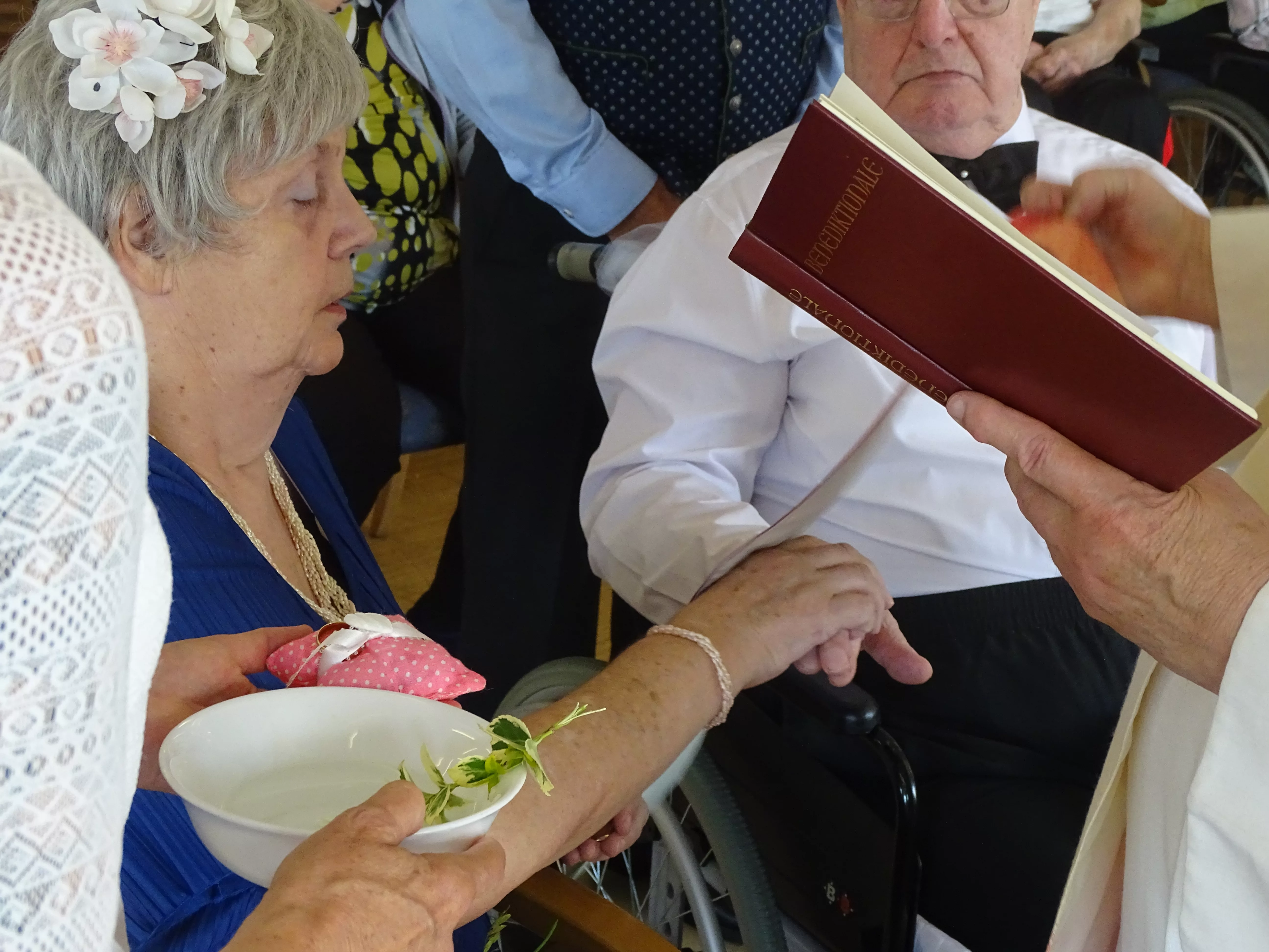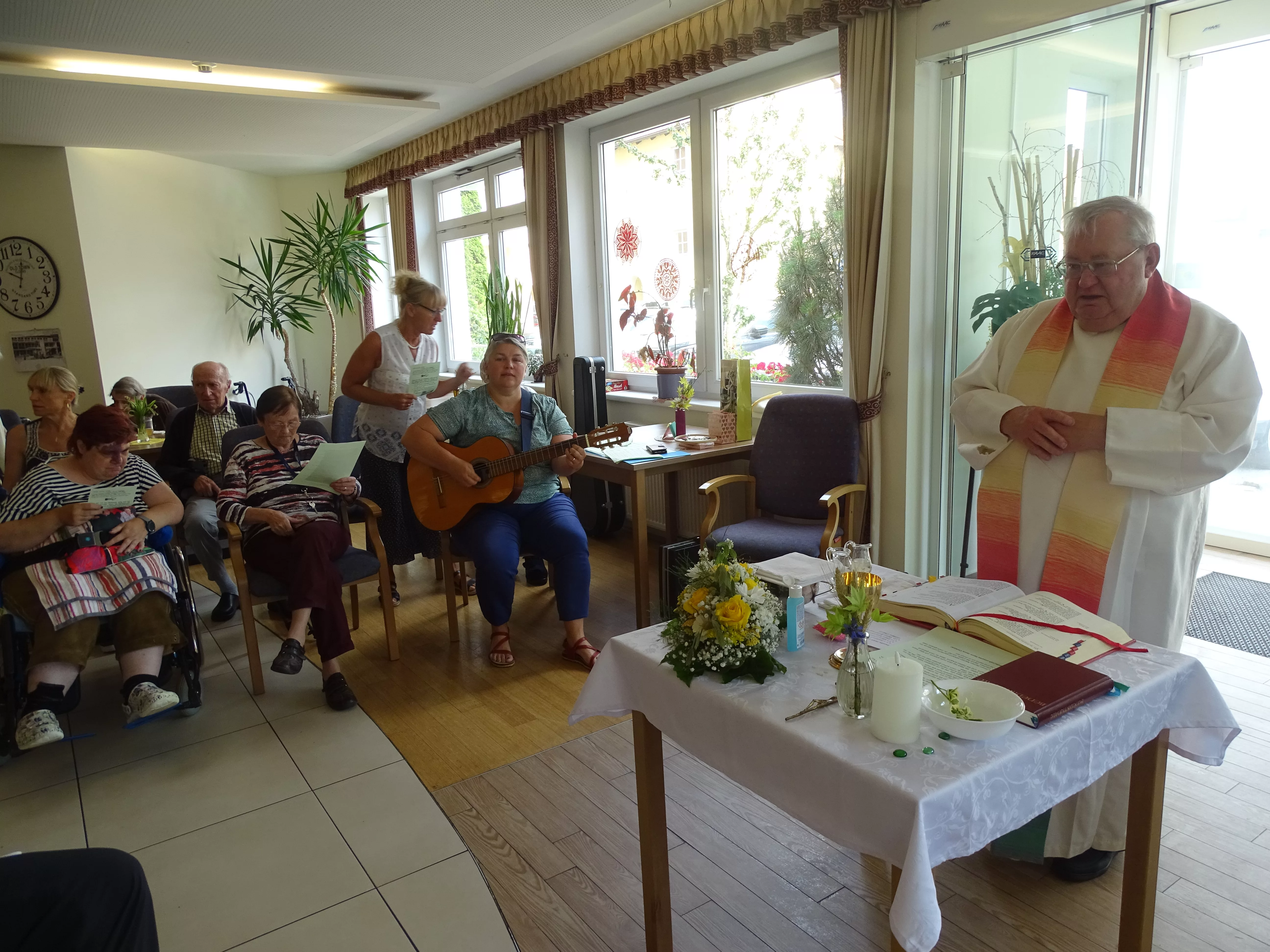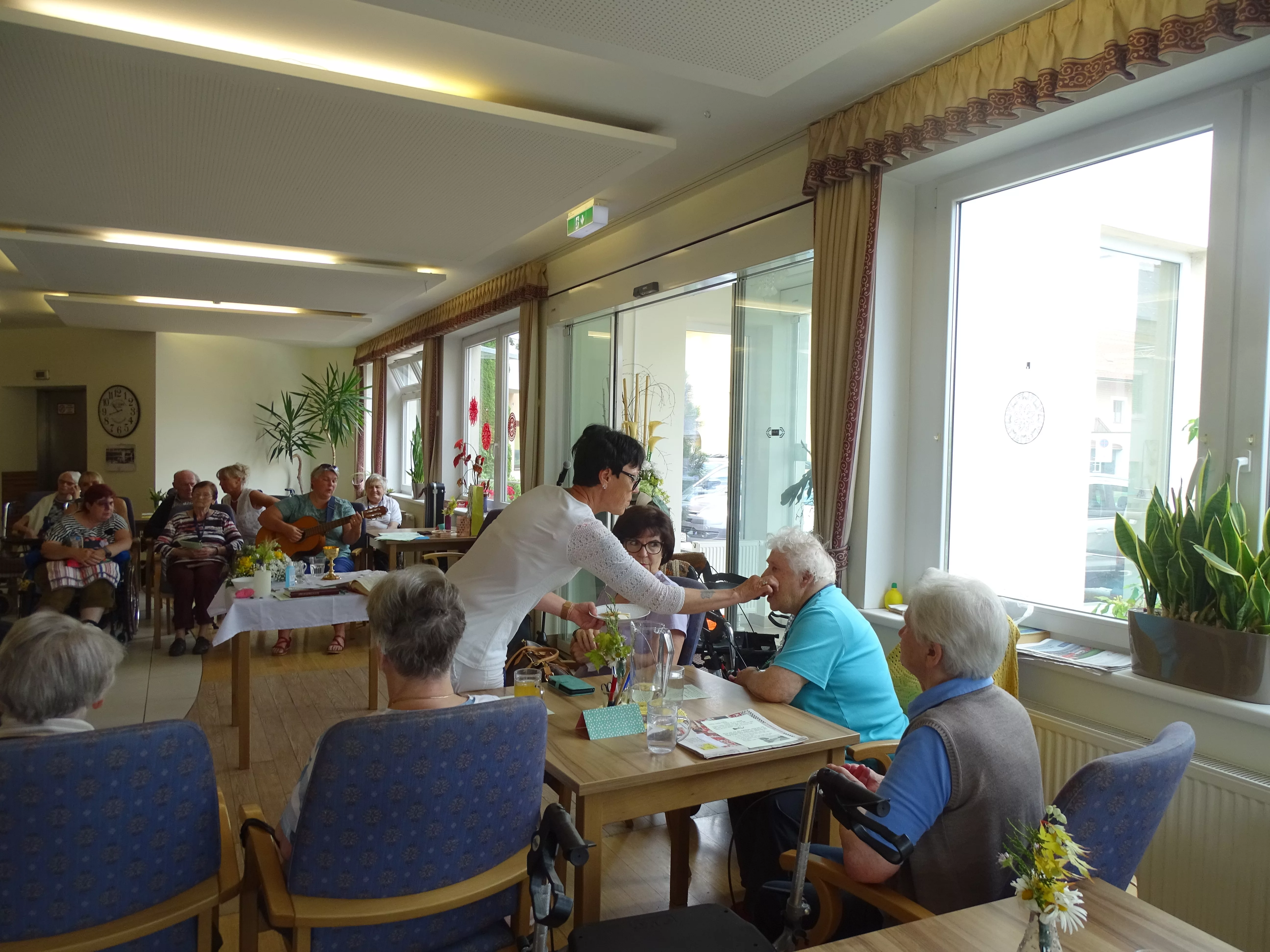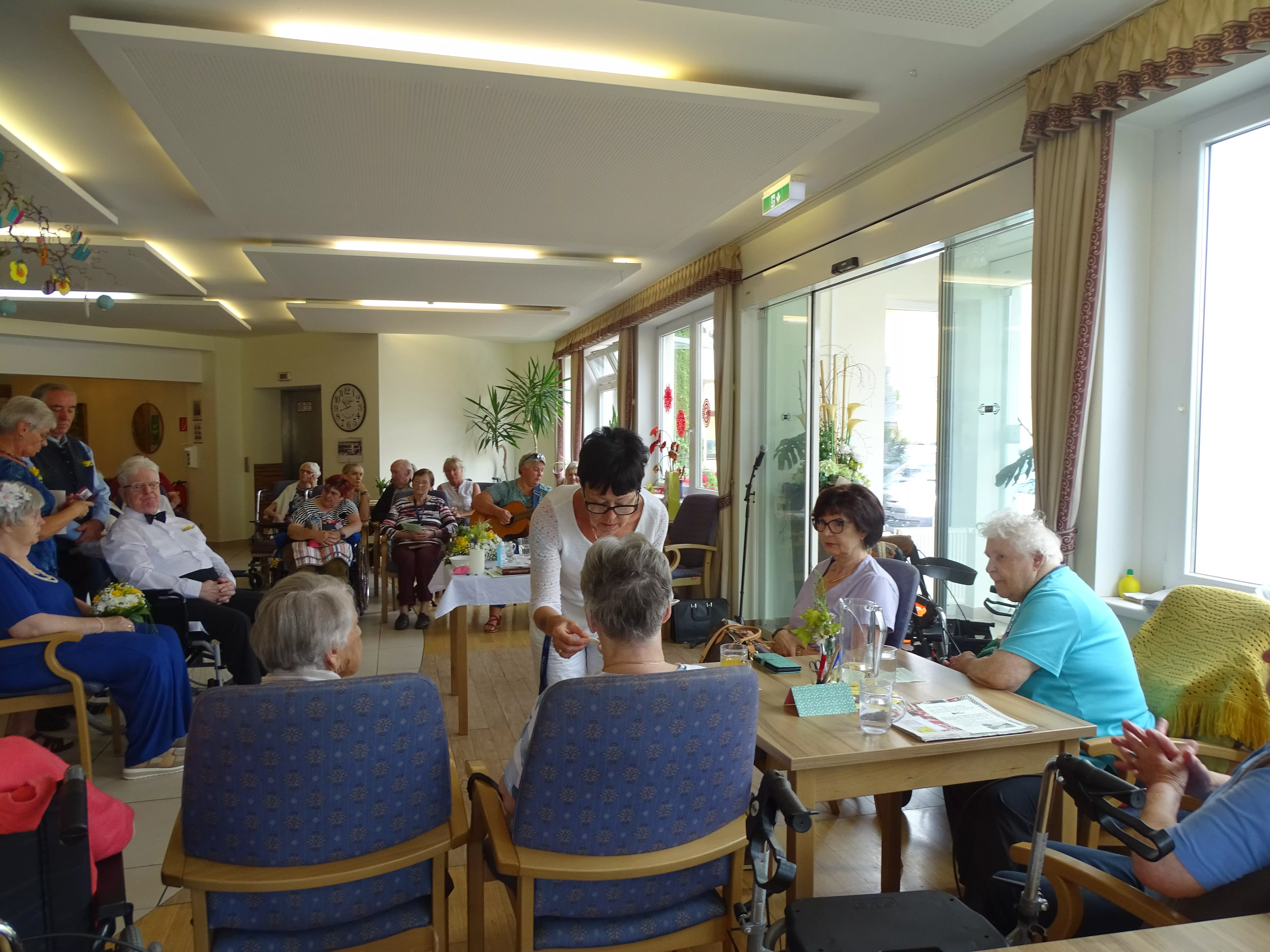 50. Hochzeitstag Anlässlich des 50. Hochzeitstag von Fam. Schaflecher, Bewohner im „Wie daham…“ Senioren-Stadthaus Judenburg, fand im Rahmen der Hl. Messe eine Segnung und eine Auffrischung des Eheversprechens, durch Herrn Geistl. Rat Pfarrer Florian Zach, statt.