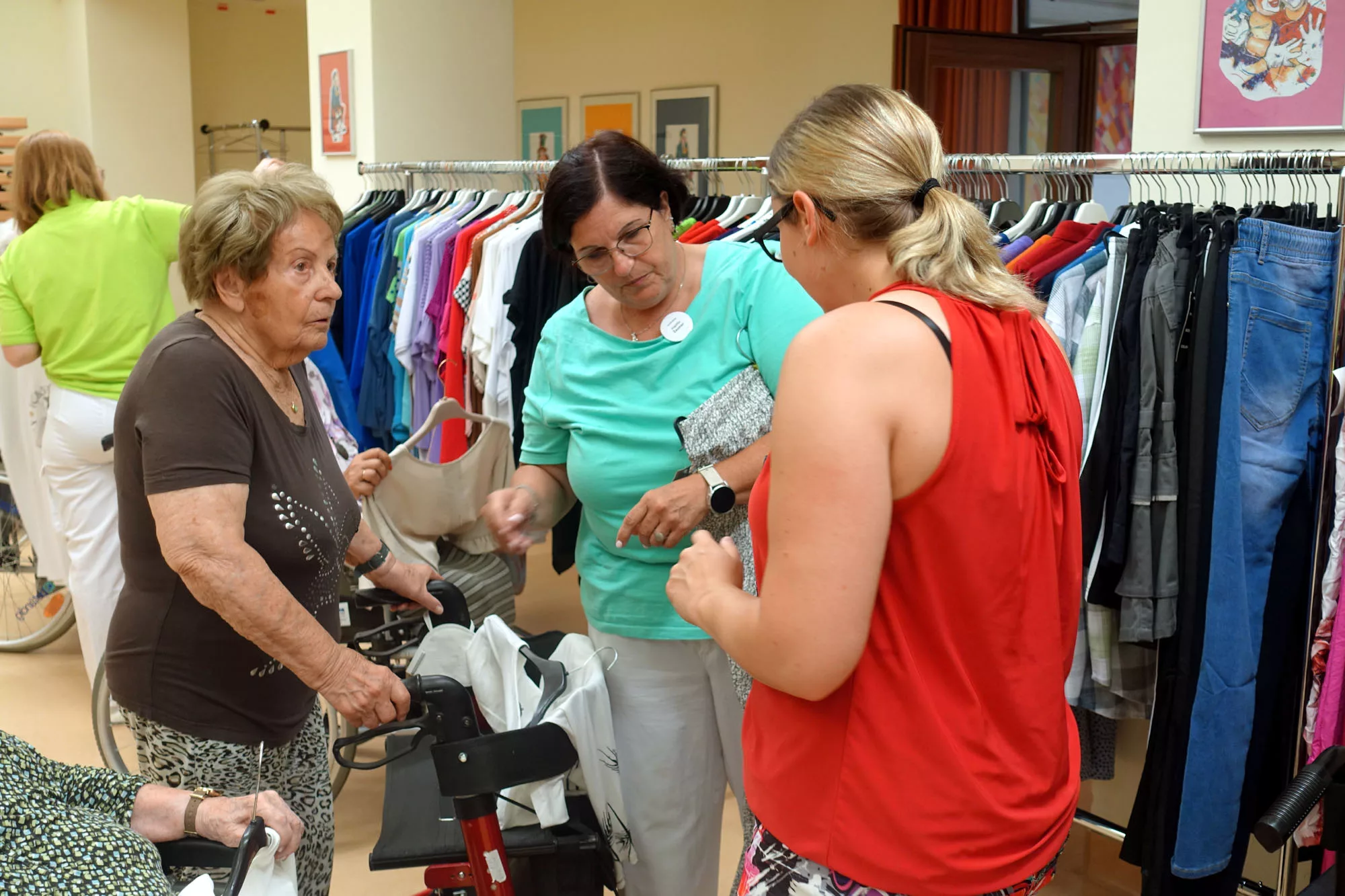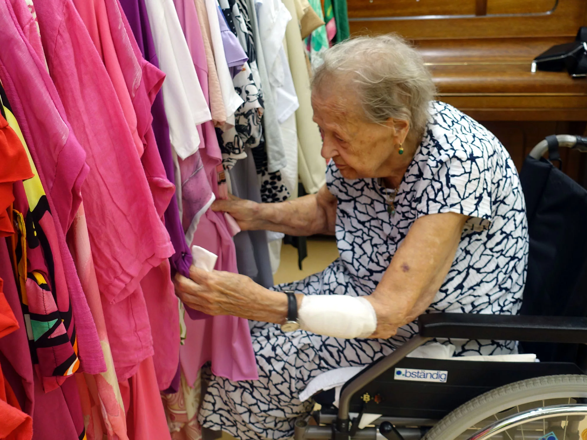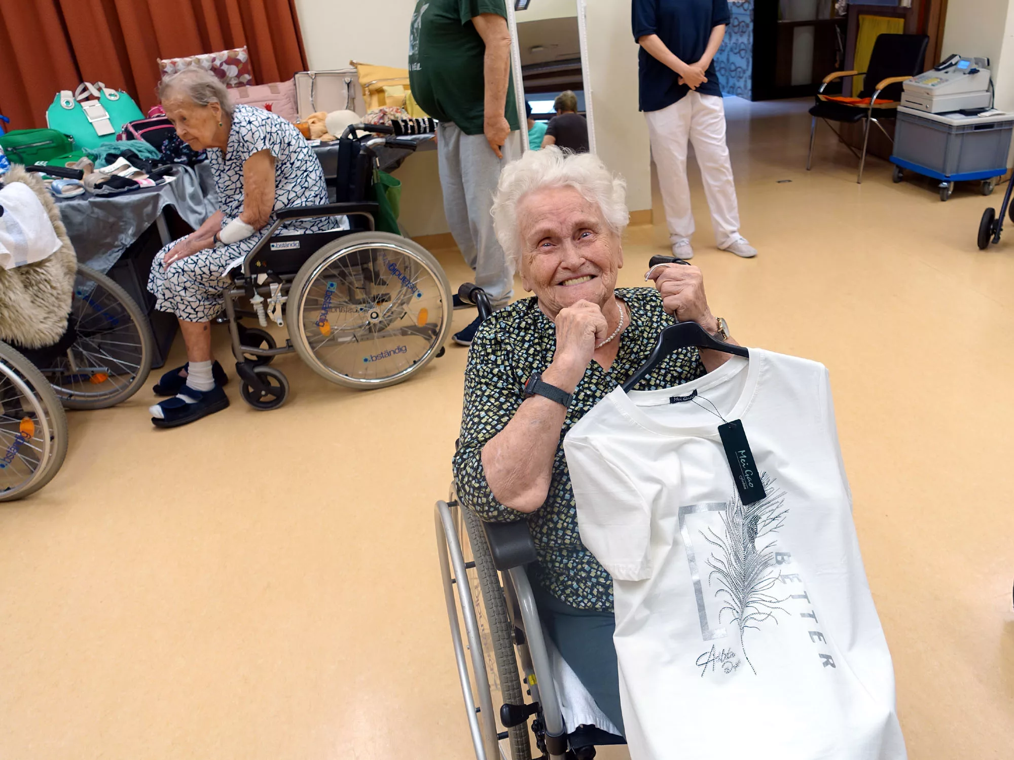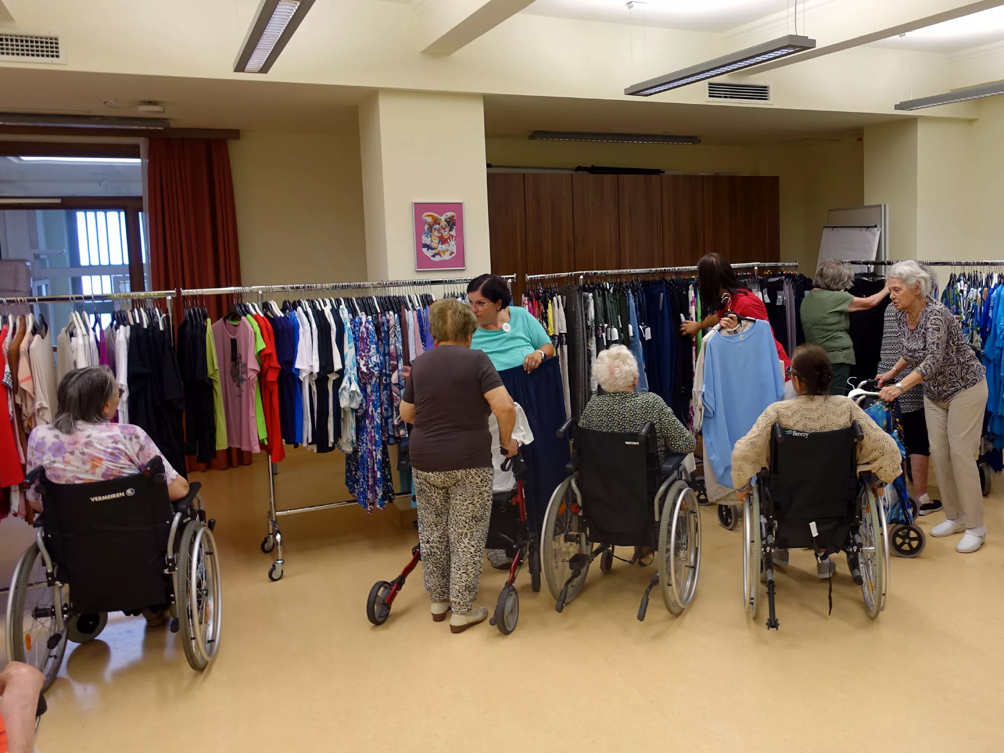 italienische Moden Die Bewohnerinnen im „Wie daham…“ Seniorenschlössl Brigittenau haben heute nach Herzenslust das Angebot an italienischen Moden gustiert und das eine oder andere Stück erworben.
