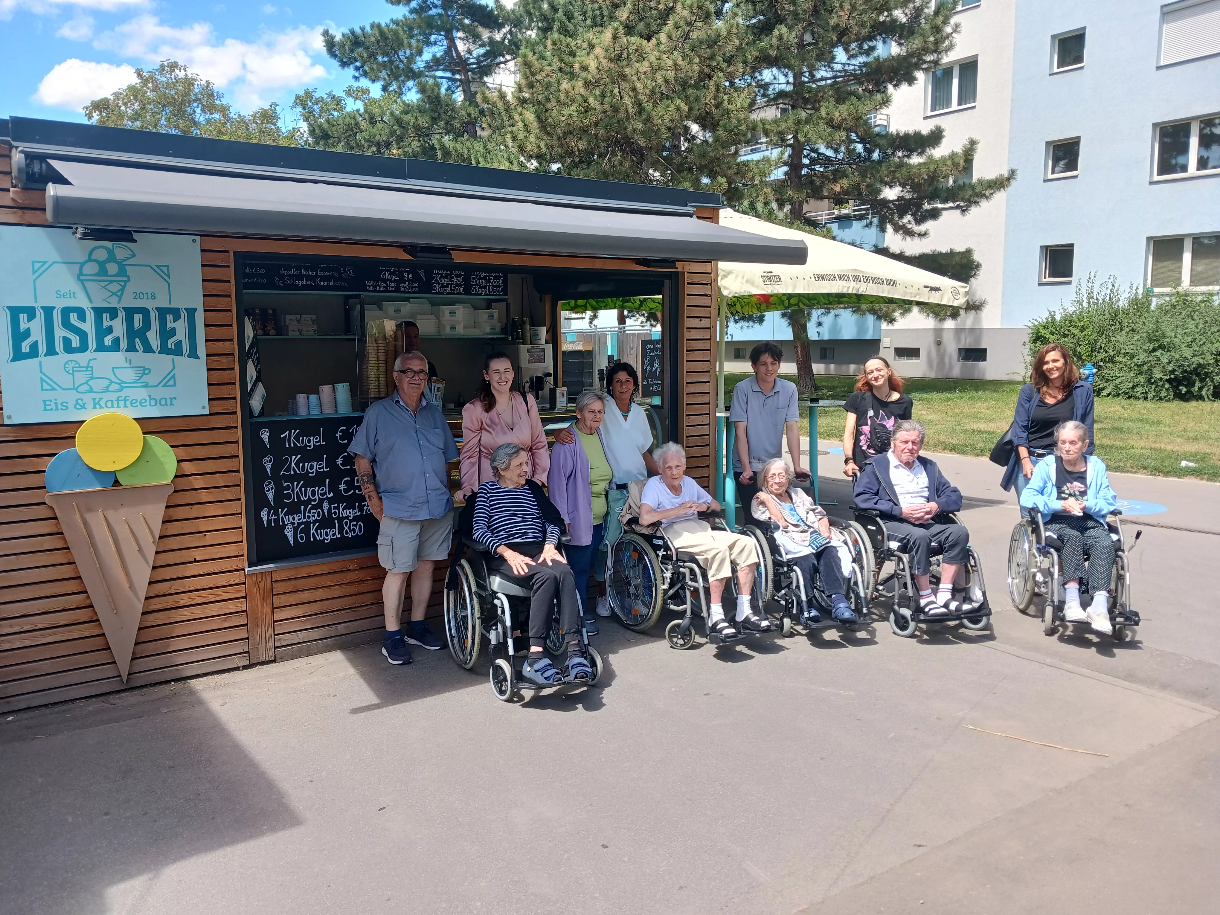 Bei dem heißen Wetter haben wir uns doch alle ein Eis verdient, daher ging es kurzerhand mit einer kleinen Gruppe unserer Bewohner und Bewohnerinnen Richtung Eissalon.