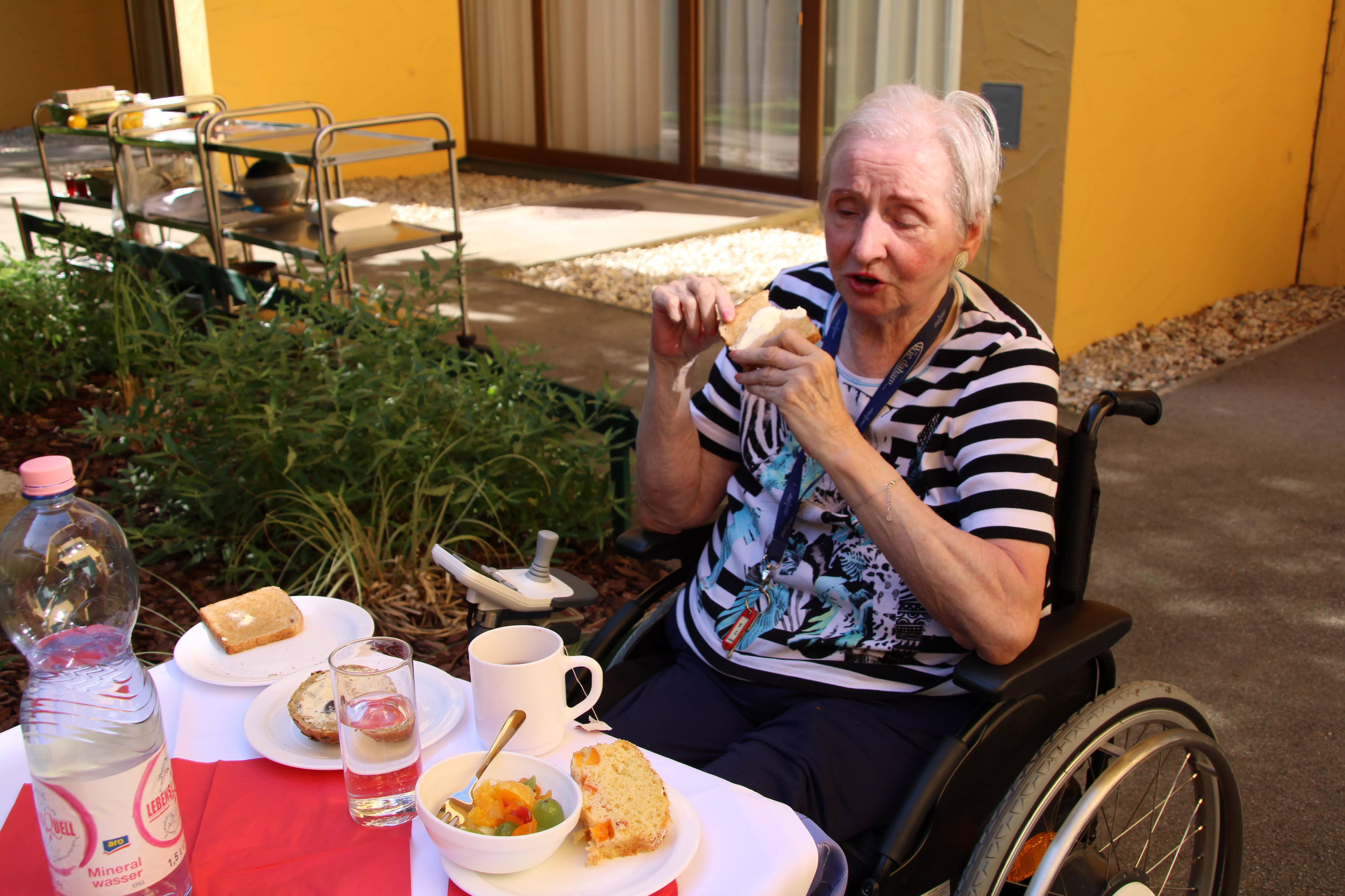 Vitalfrühstück Bei bestem Wetter fand auch dieses Jahr wieder unser Vitalfrühstück statt. Von der Vorbereitung bis zum Verzehr haben viele Bewohner teilgenommen.