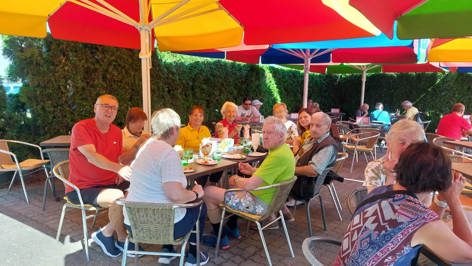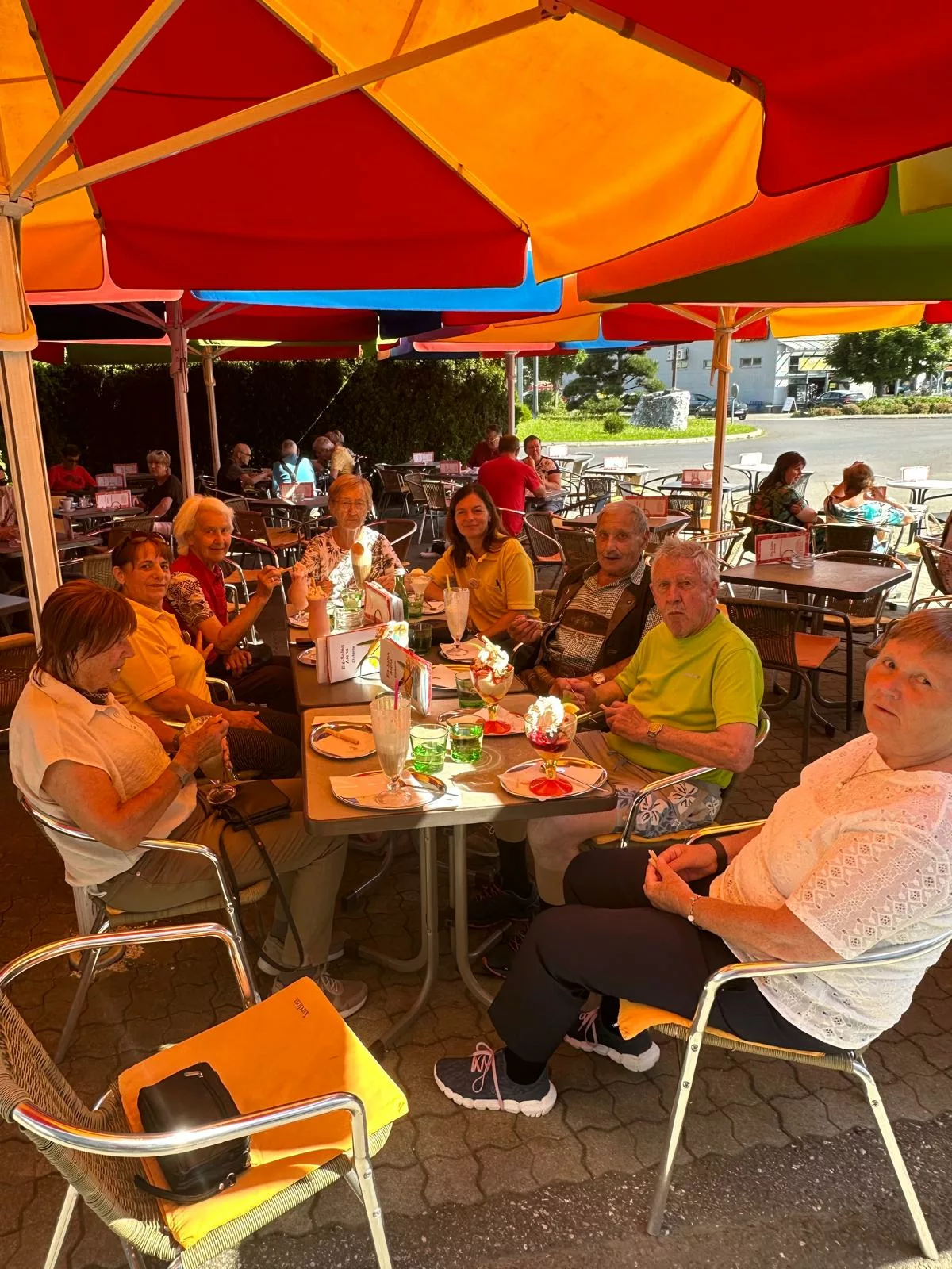 An einem wunderschönen Dienstag im Juli fuhren wir mit unseren Tagegästen in die Arena Fohnsdorf. Wir bummelten durch die Arena und unser Höhepunkt war ein fröhliches Zusammensitzen im Eissalon. Wir alle genossen den Sonnenschein und das herrliche Eis!