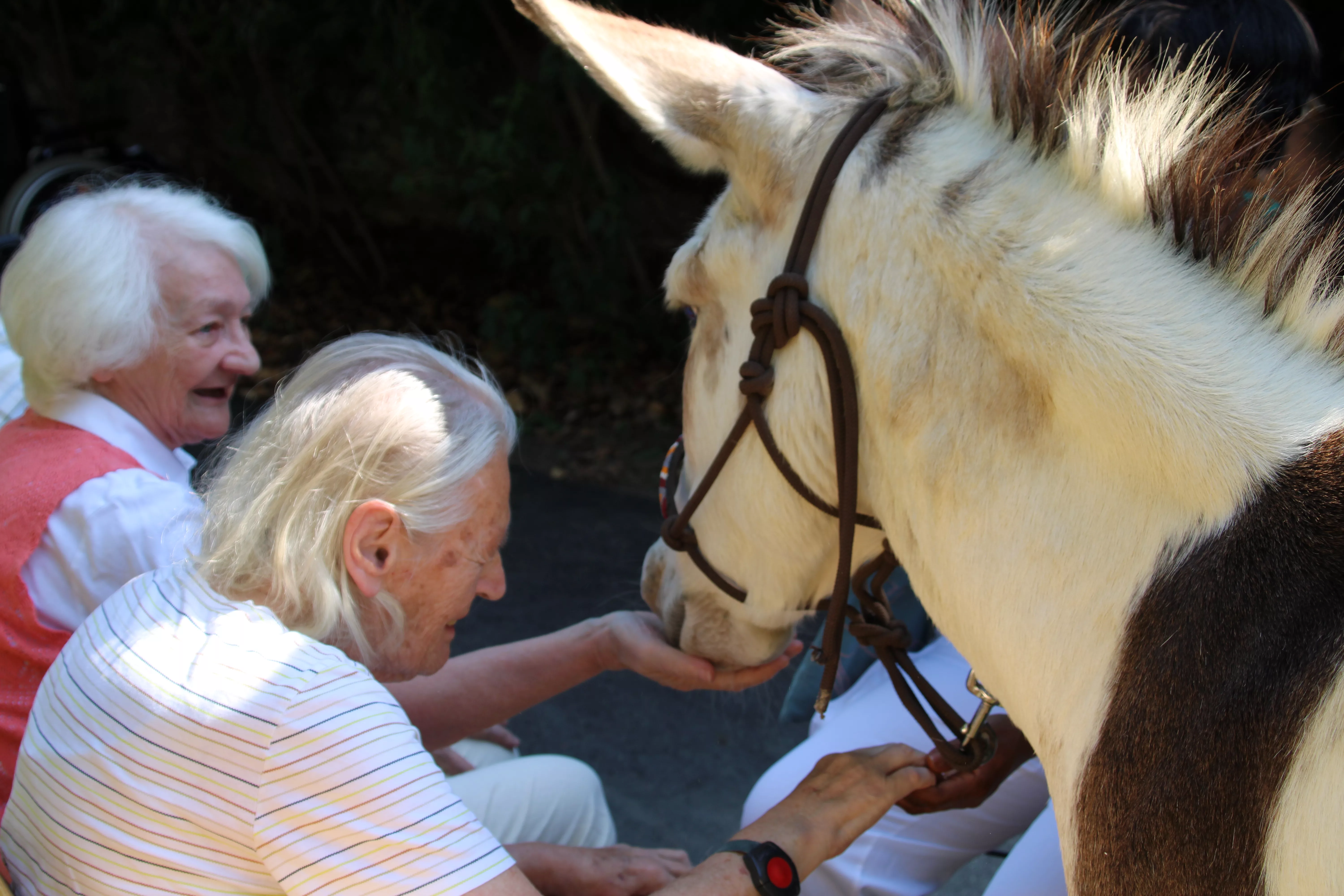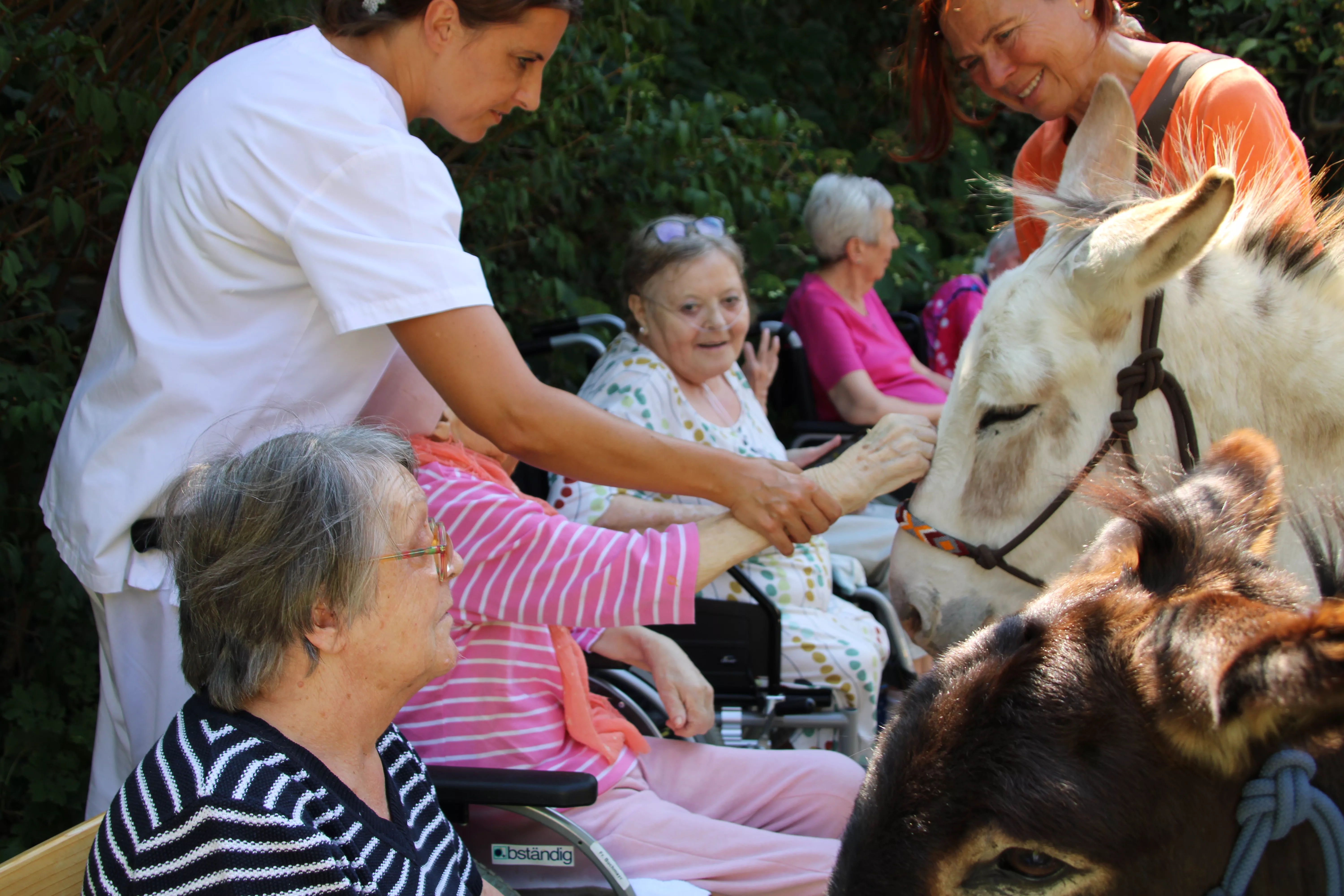 Esel zu Besuch Unsere beiden tierischen Freunde Aron und Karel haben uns wieder im Garten besucht und bereiteten unseren Bewohnern eine Riesenfreude.