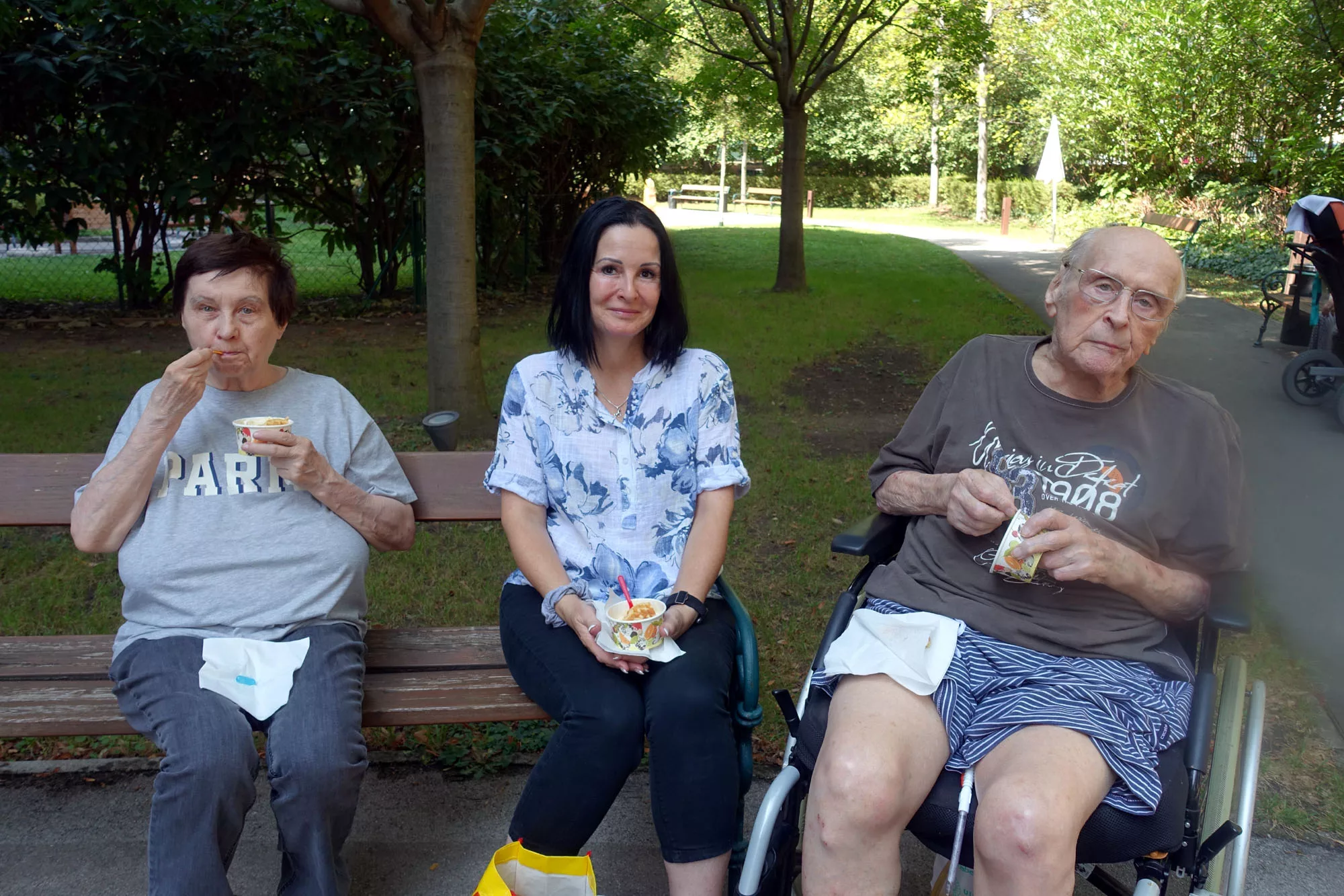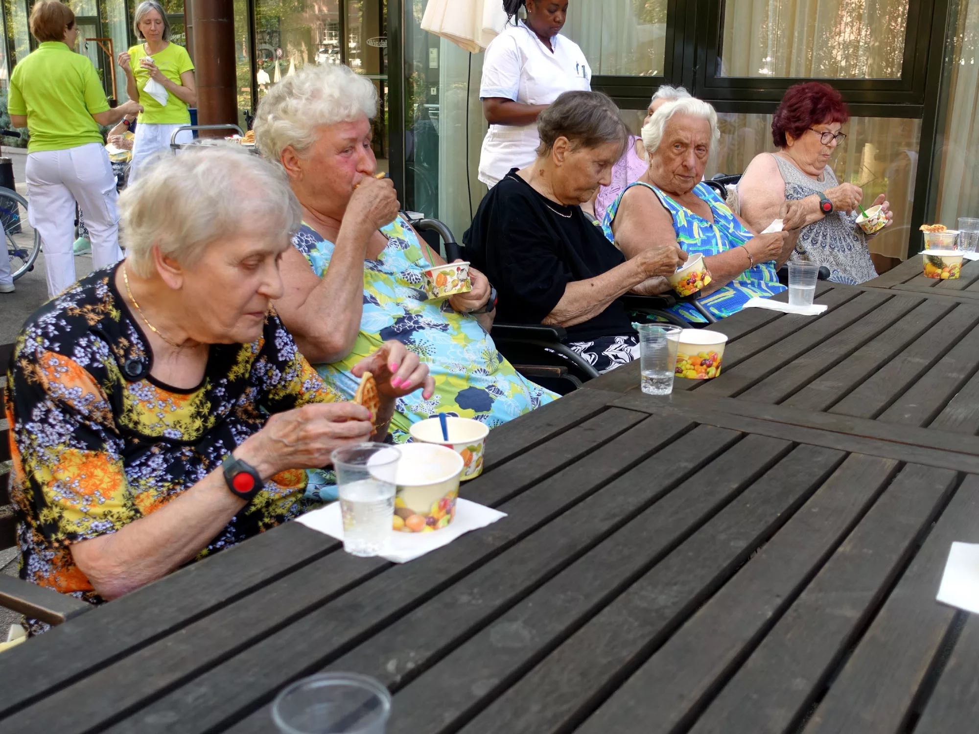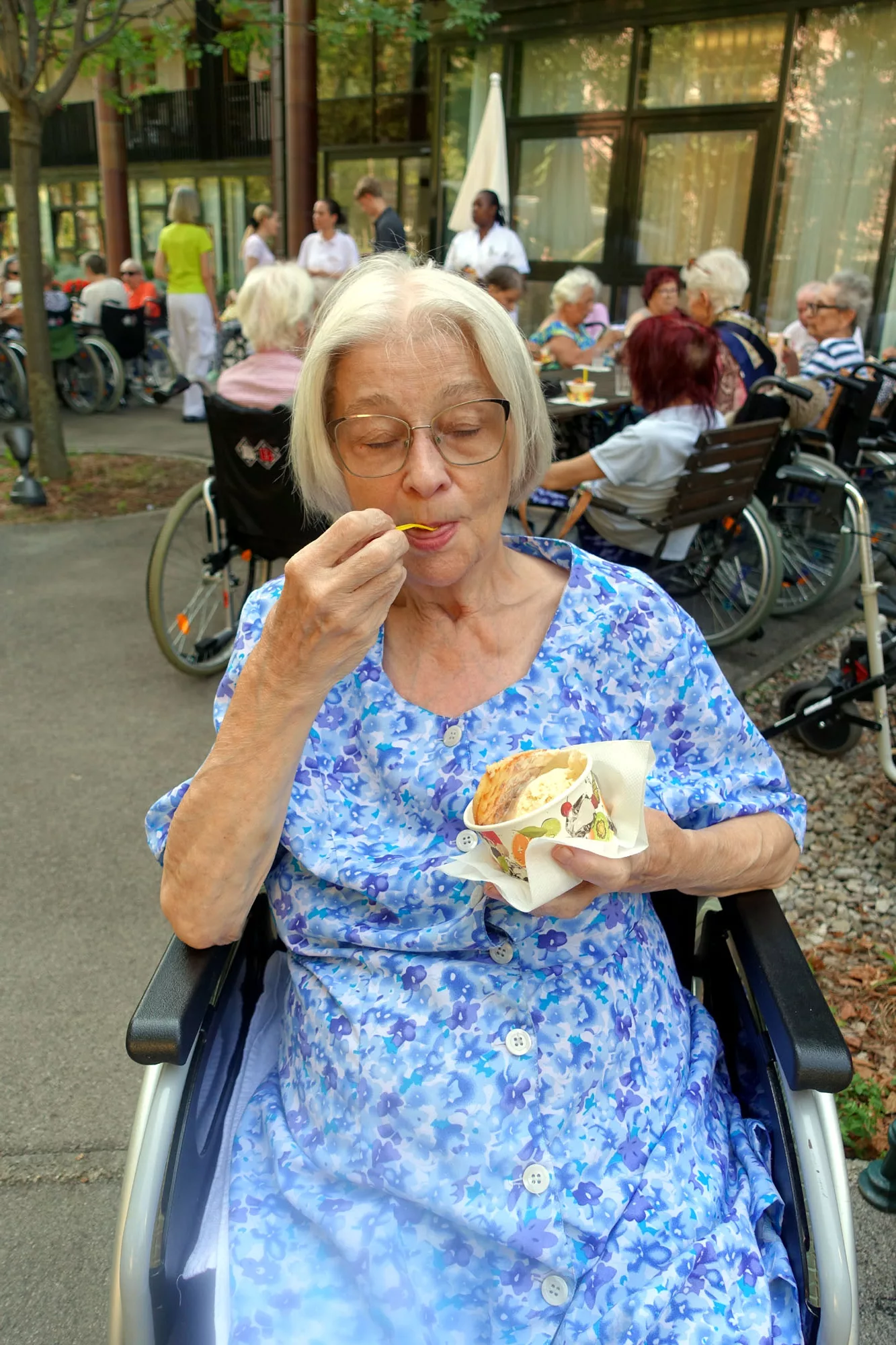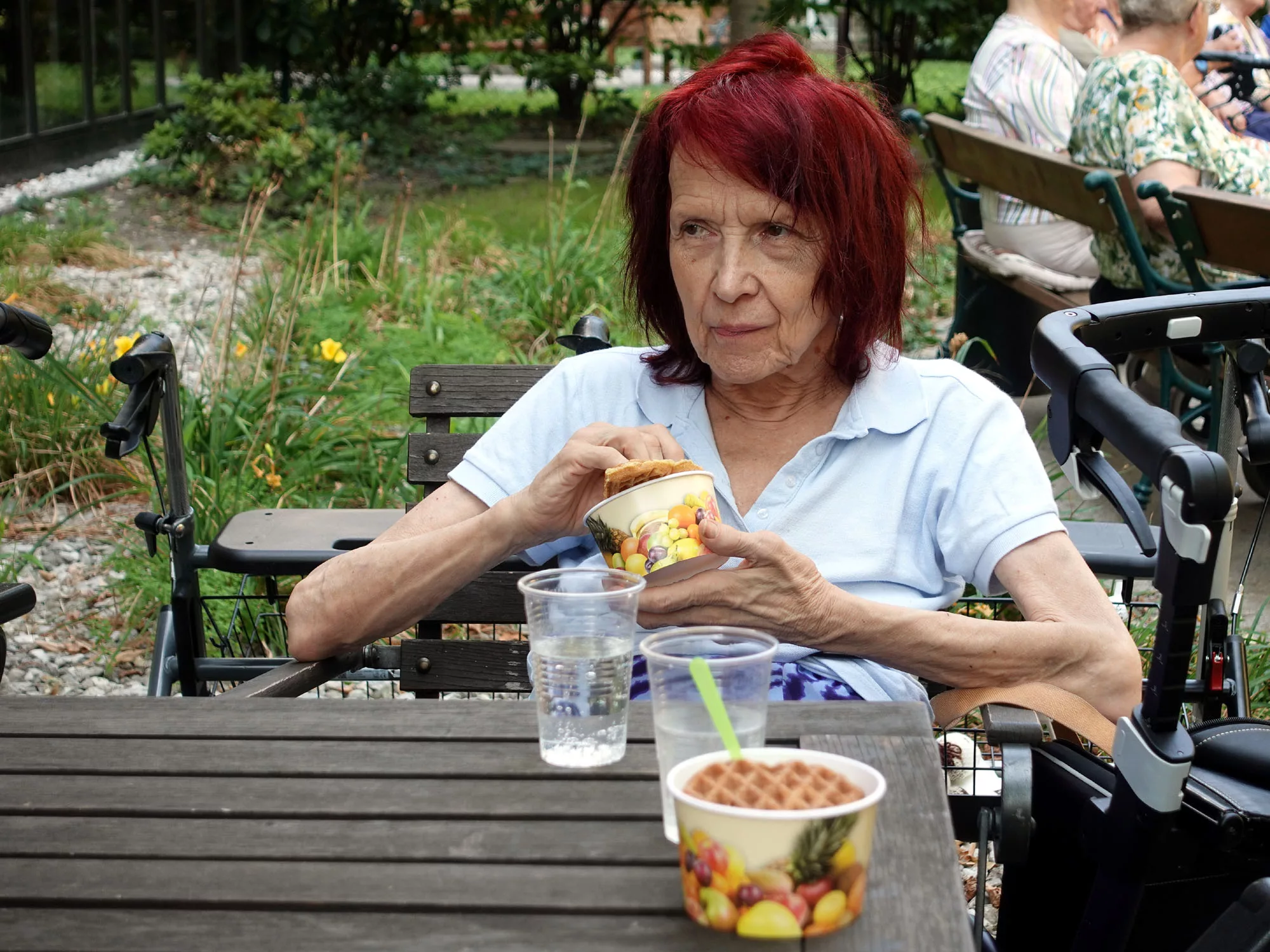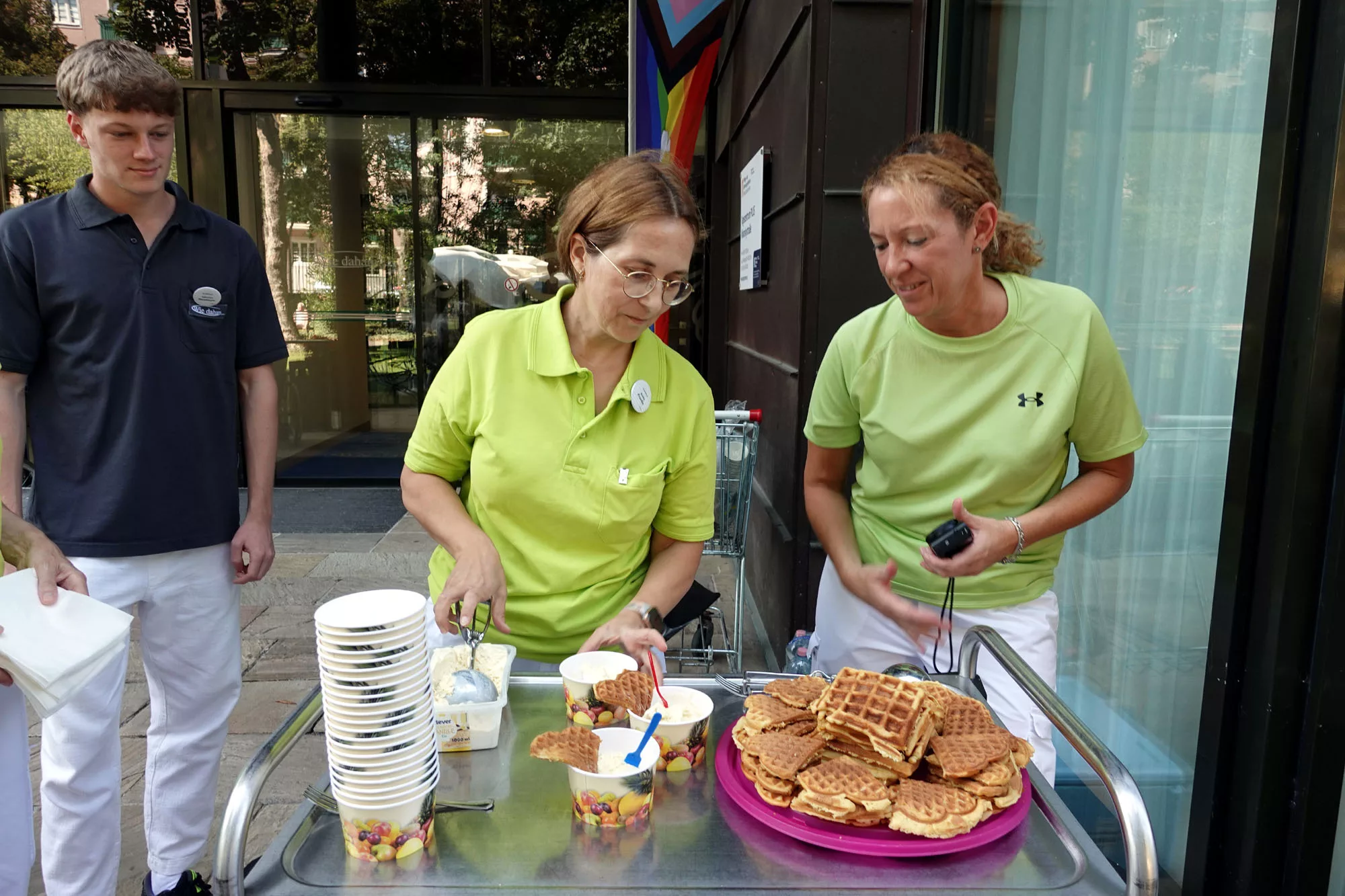 frisch zubereitete Waffeln mit Eis Heute verwöhnte das Animationsteam die Bewohner mit frisch zubereiteten Waffeln mit Eis. Keine Frage, dass es allen gut gemundet hat.