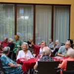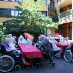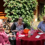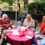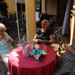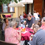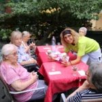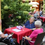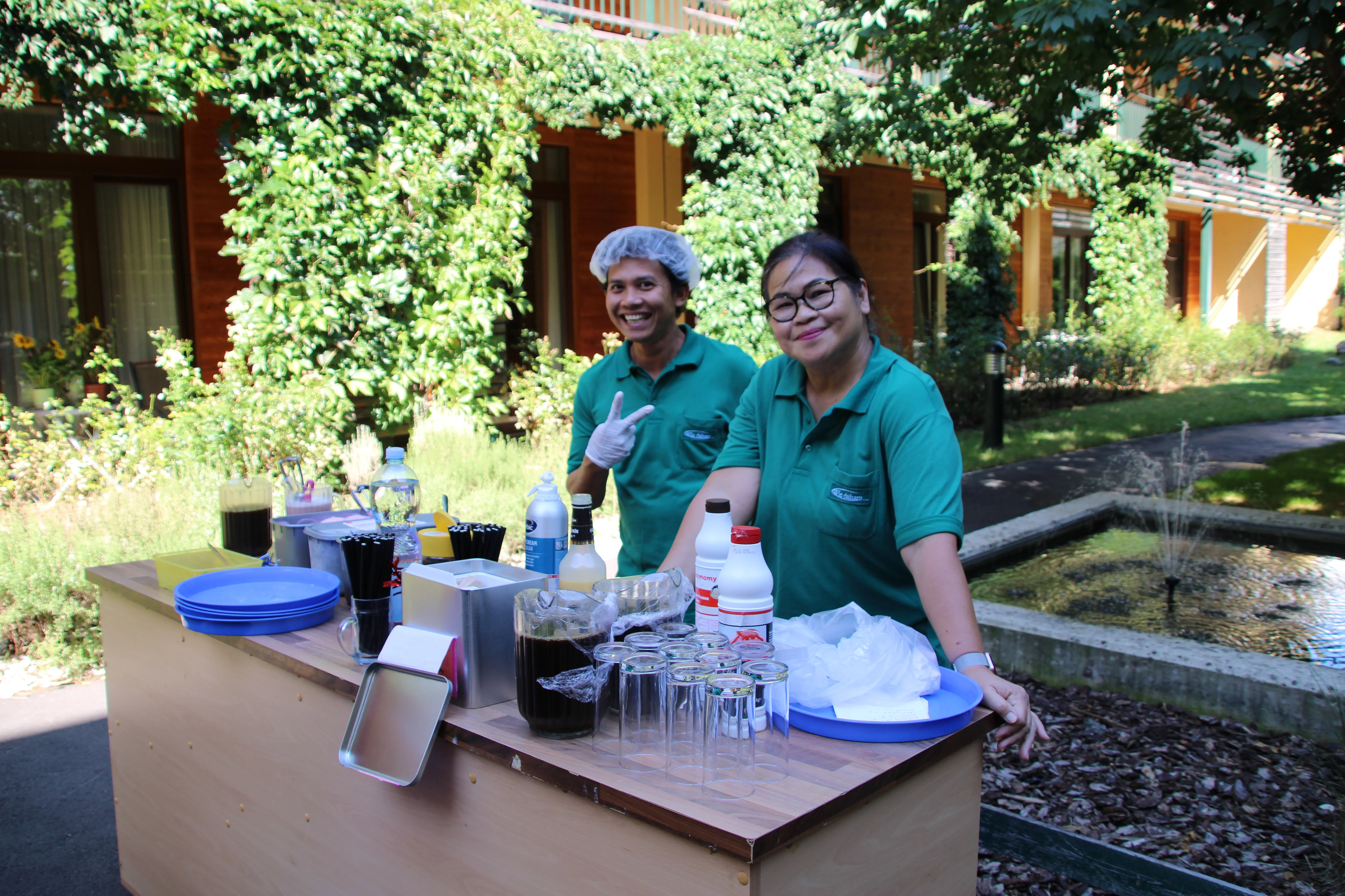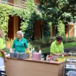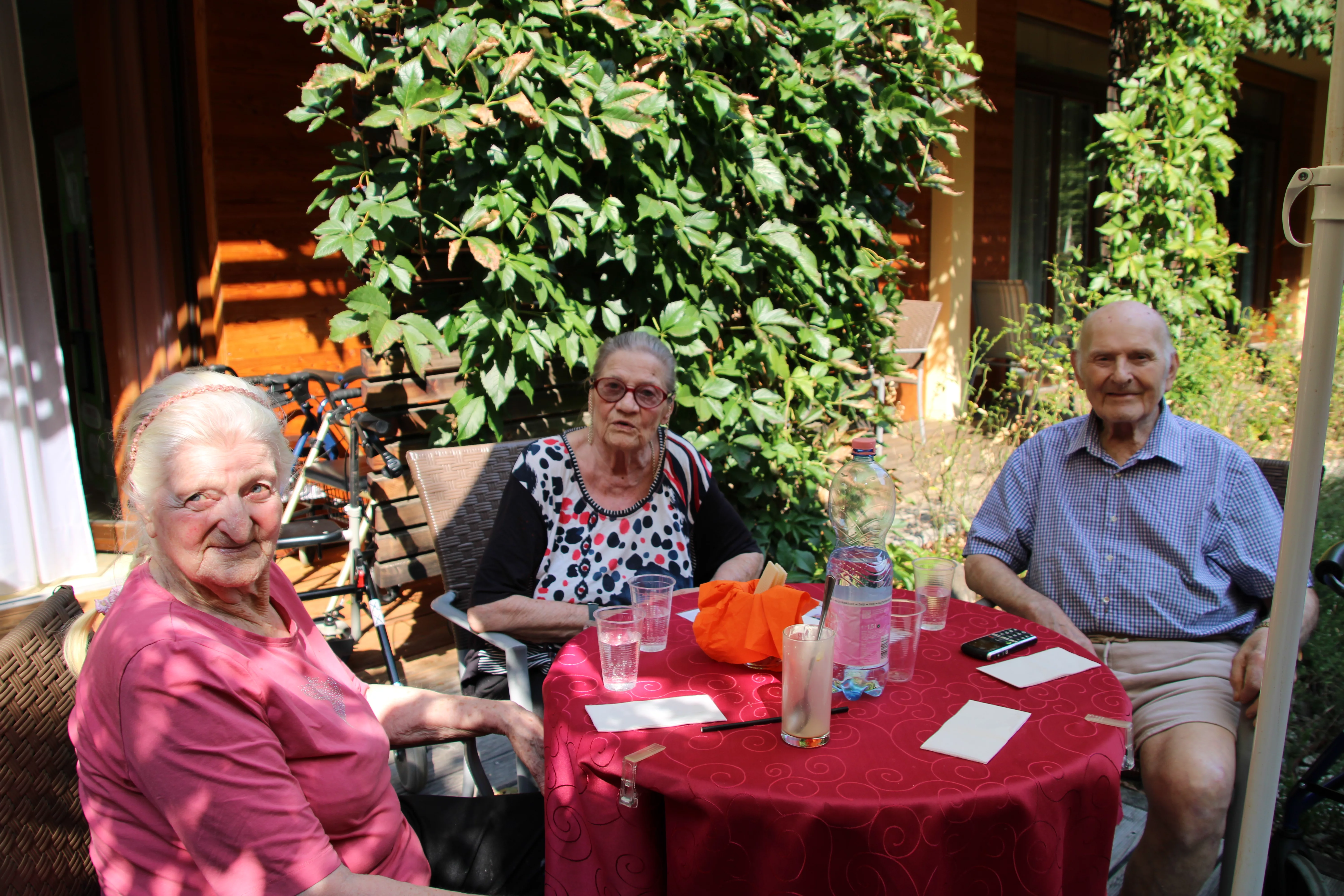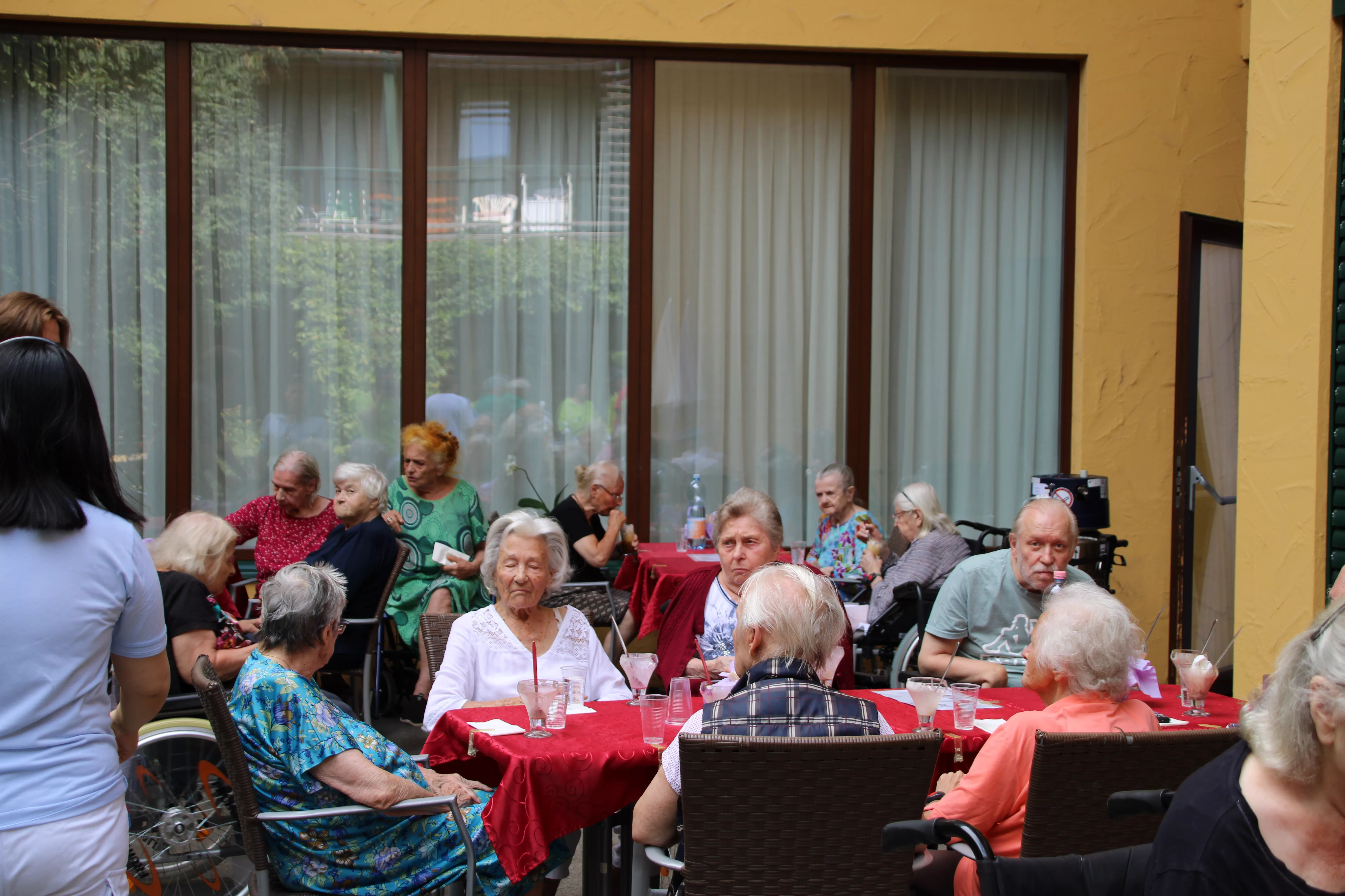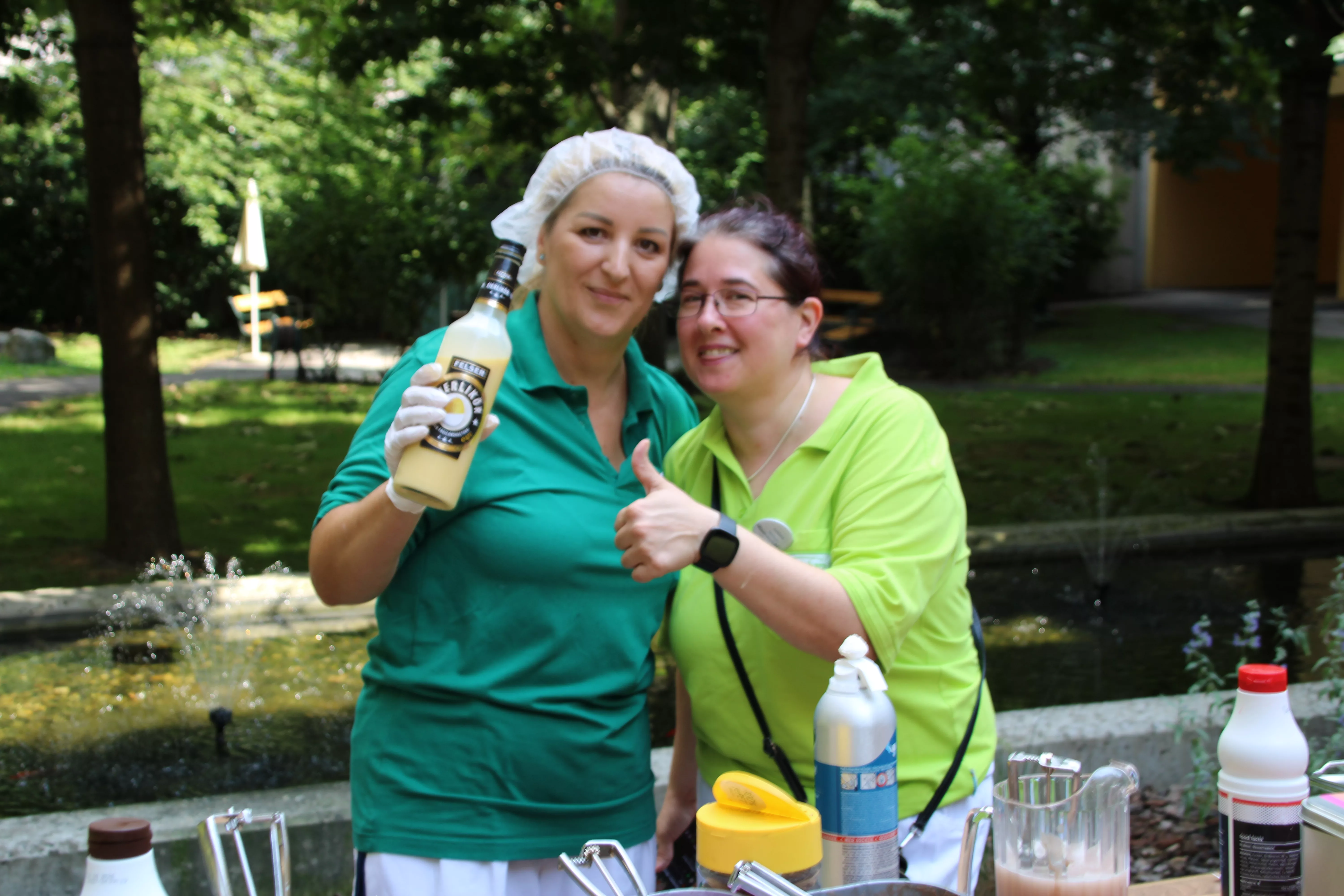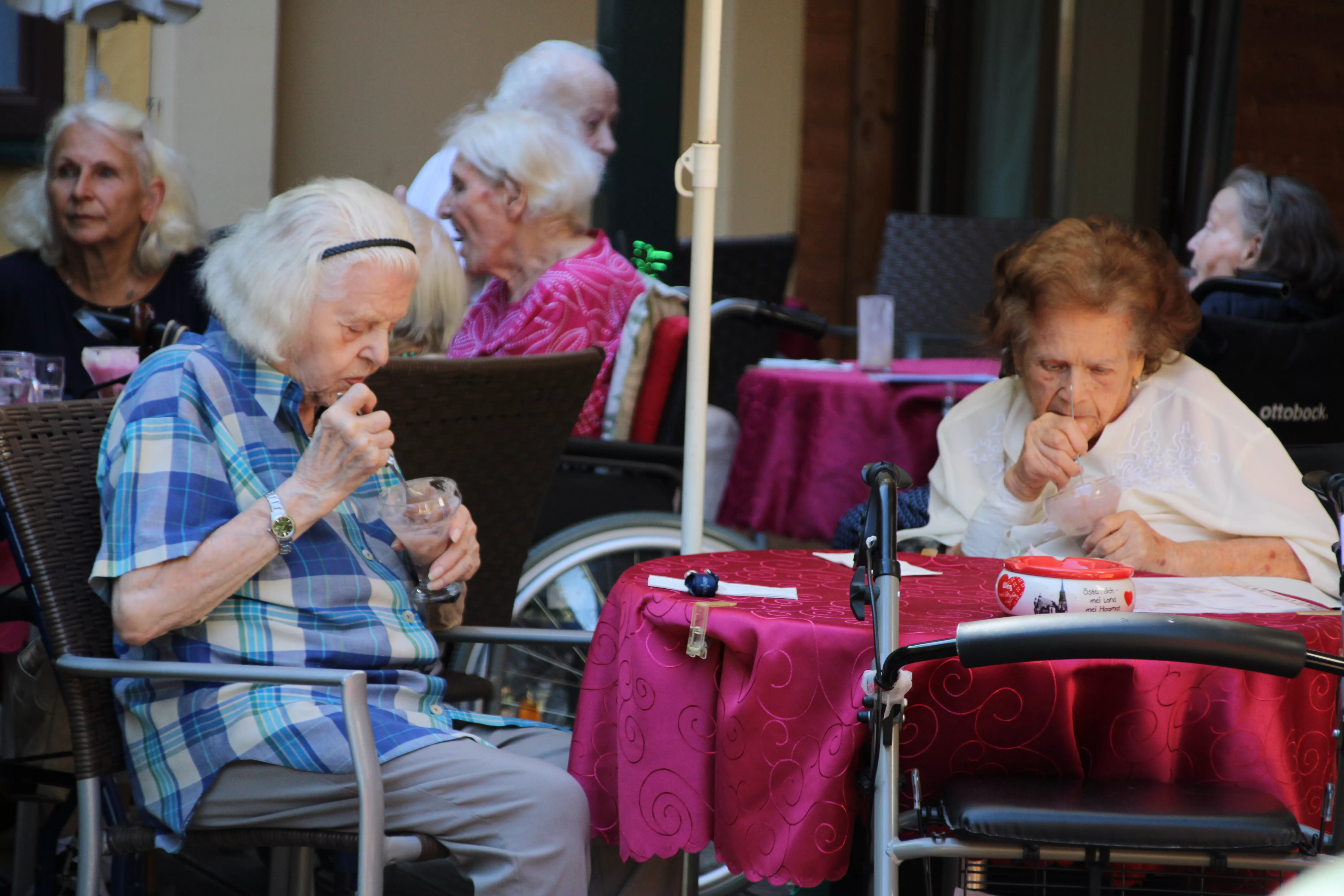Eisparty im Garten Das schöne Sommerwetter trug zur guten Stimmung bei. BewohnerInnen treffen sich aus allen Stockwerken bei einem guten Eisbecher.
