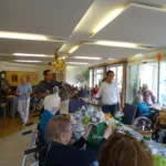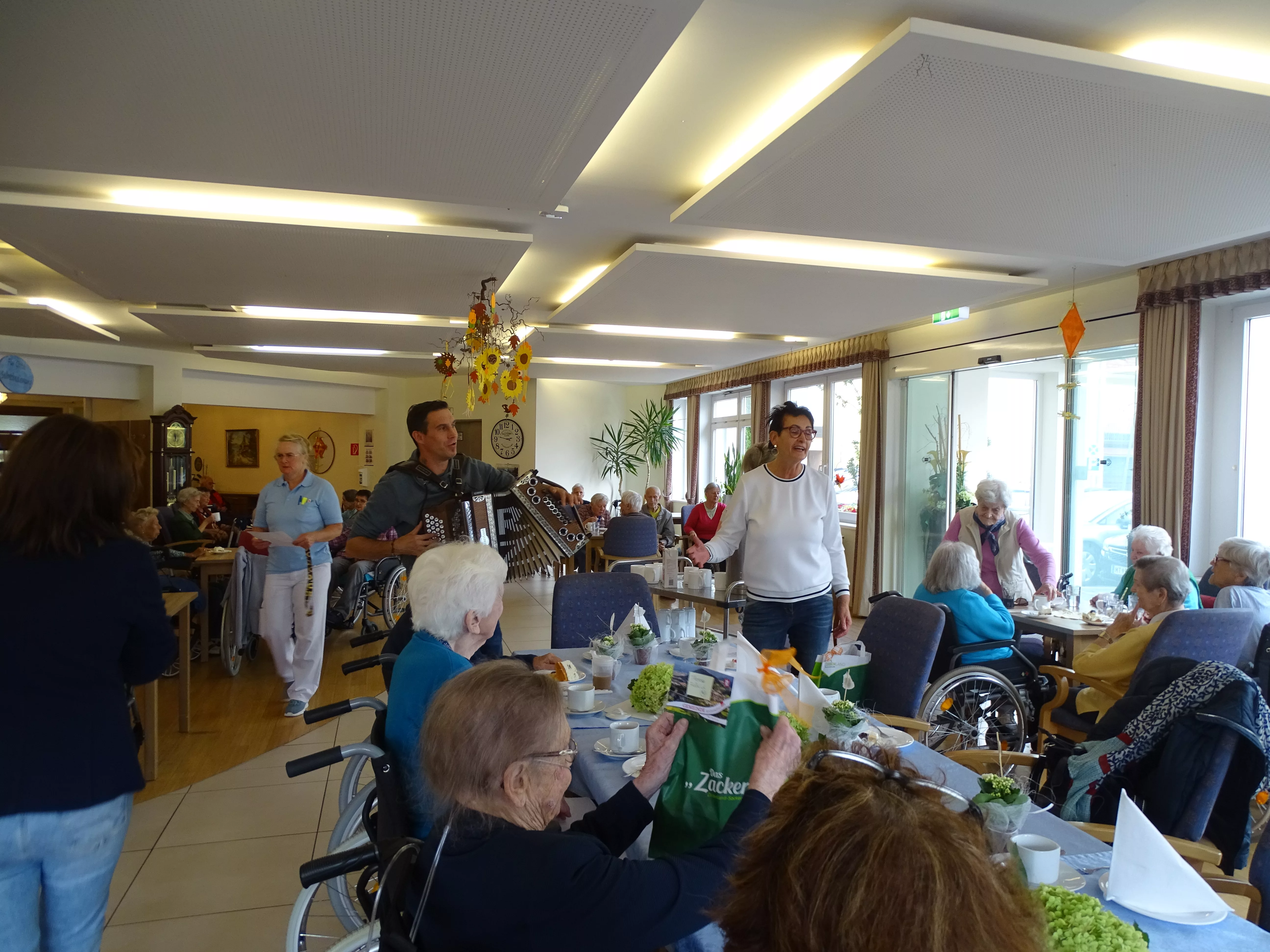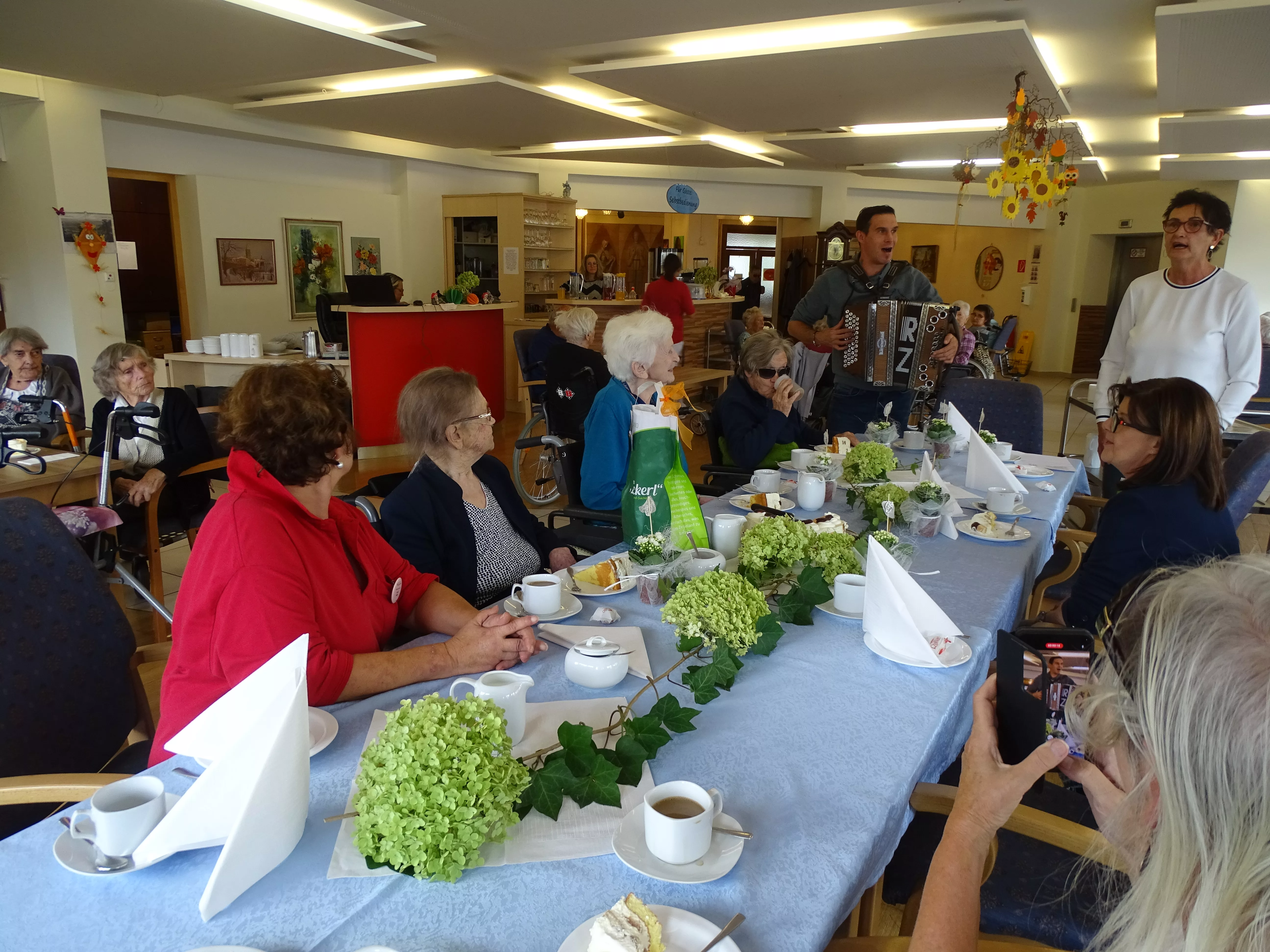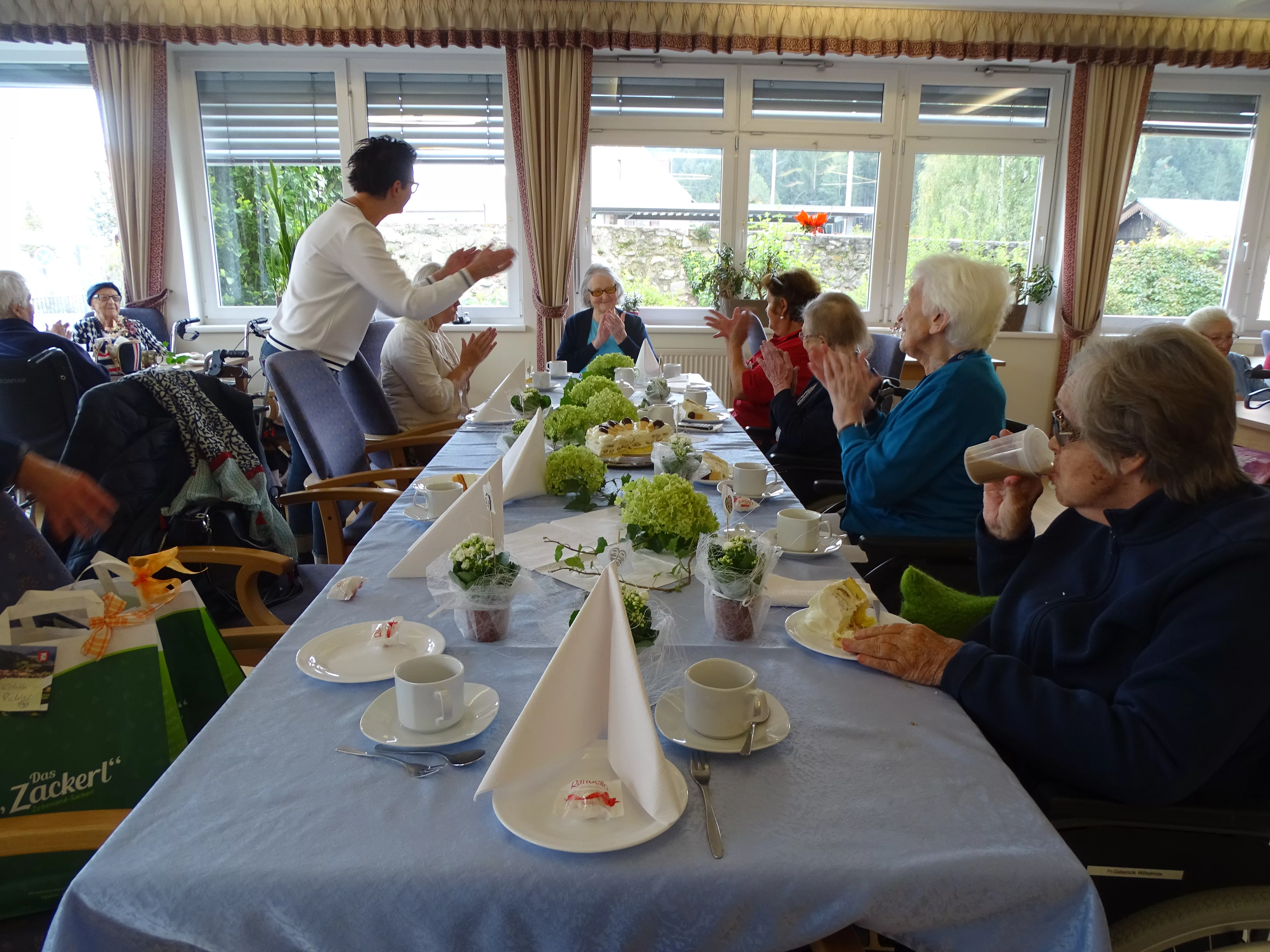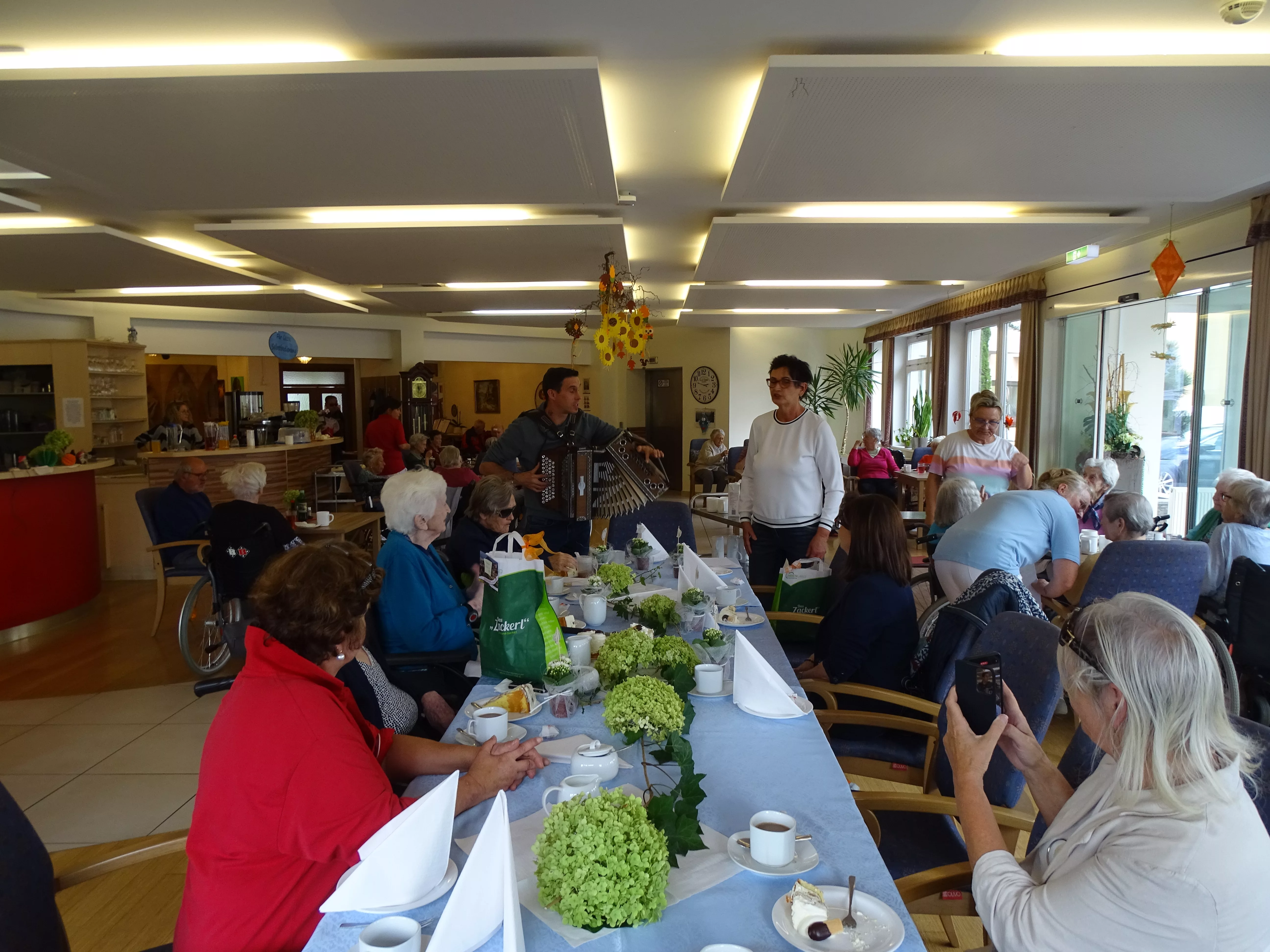 Hurra! Die Septembergeborenen wurden bei köstlicher Torte und schmackhaftem Kaffee gefeiert. Musikalische Umrandung gab es von Hr. Zanger Roland auf der Harmonika. Sozialreferendarin Frau Susann Lew als Special Guest ließ sich die Feierlichkeit und das fröhliche Beisammensein nicht entgehn.