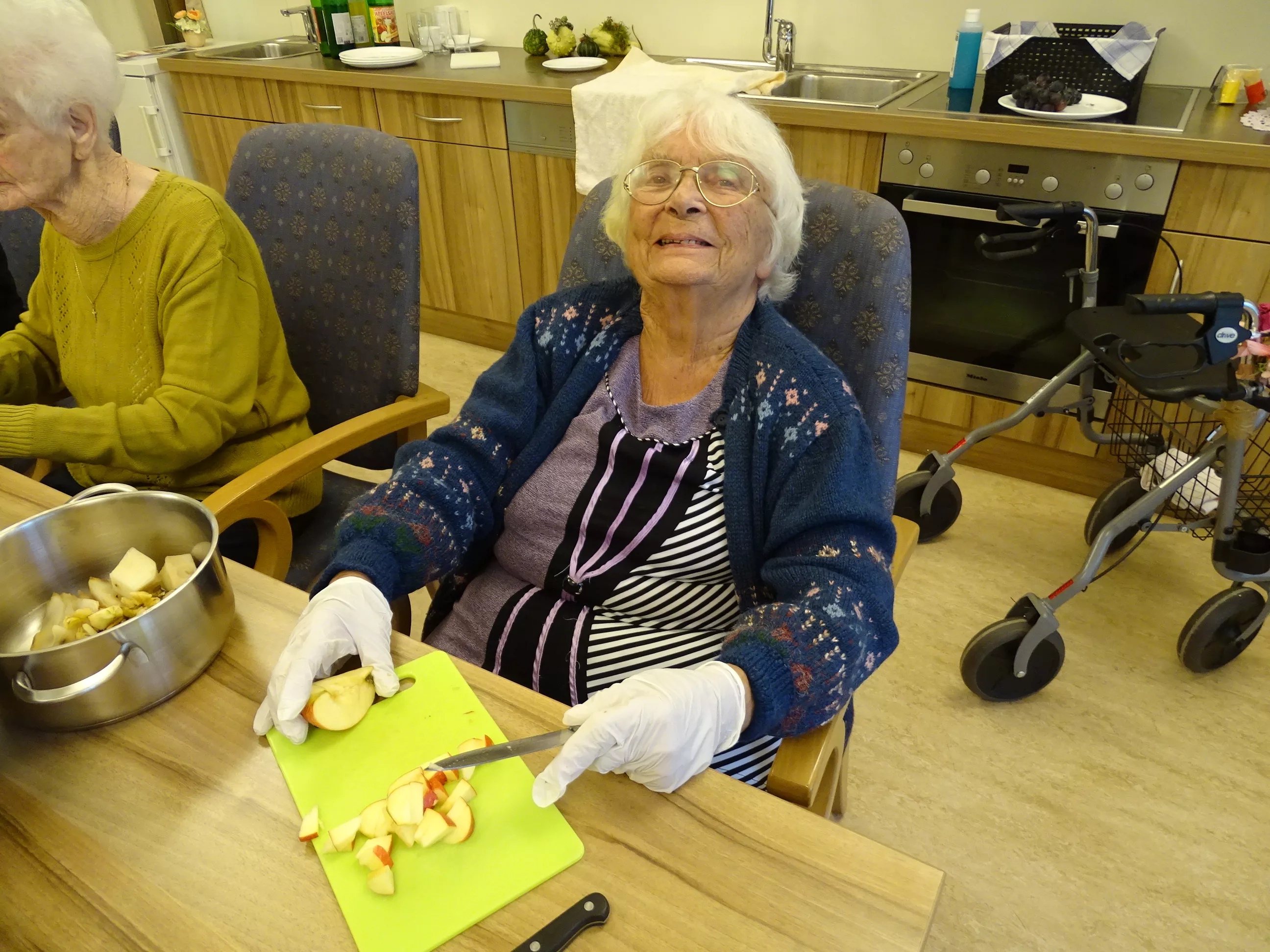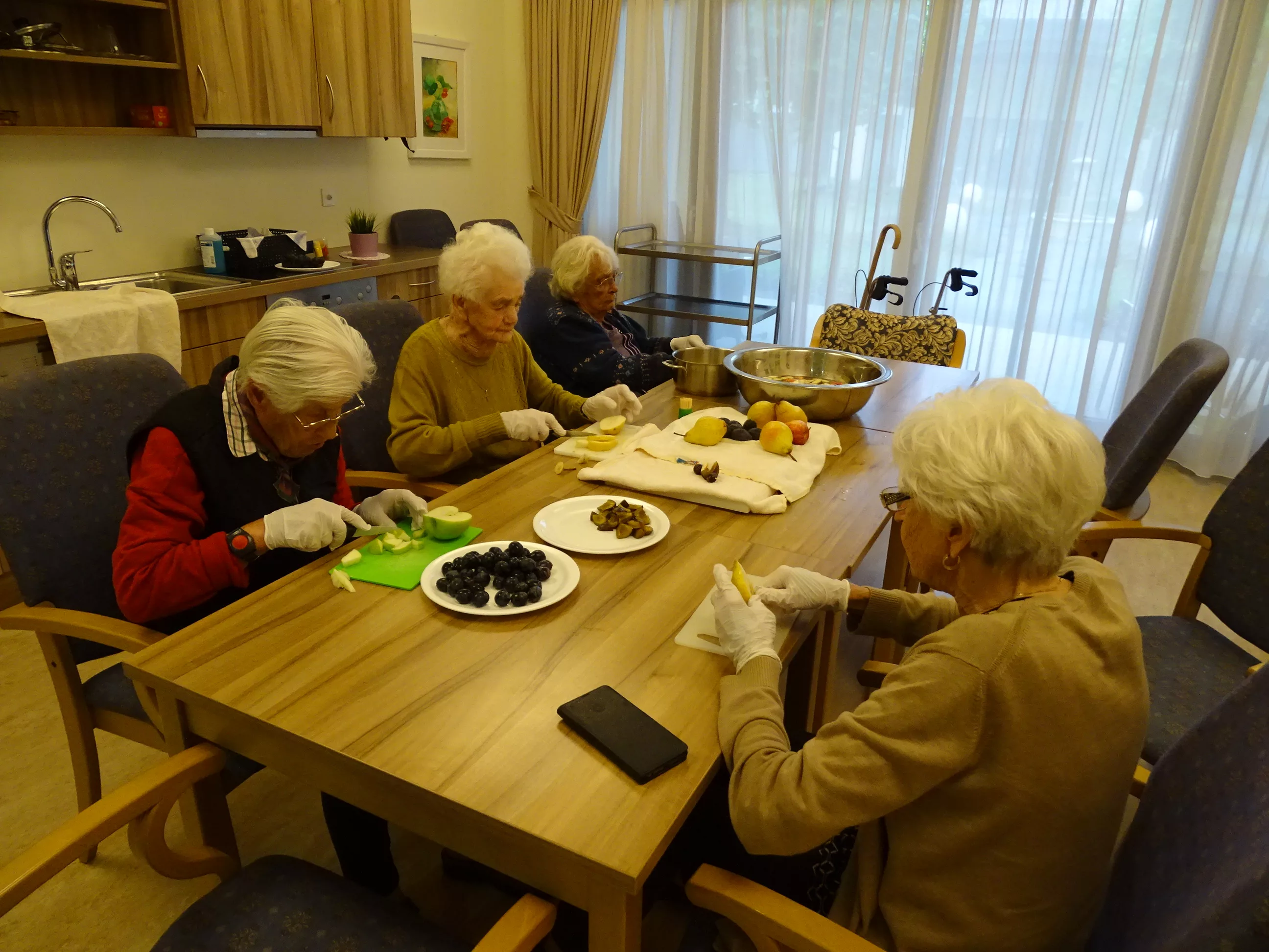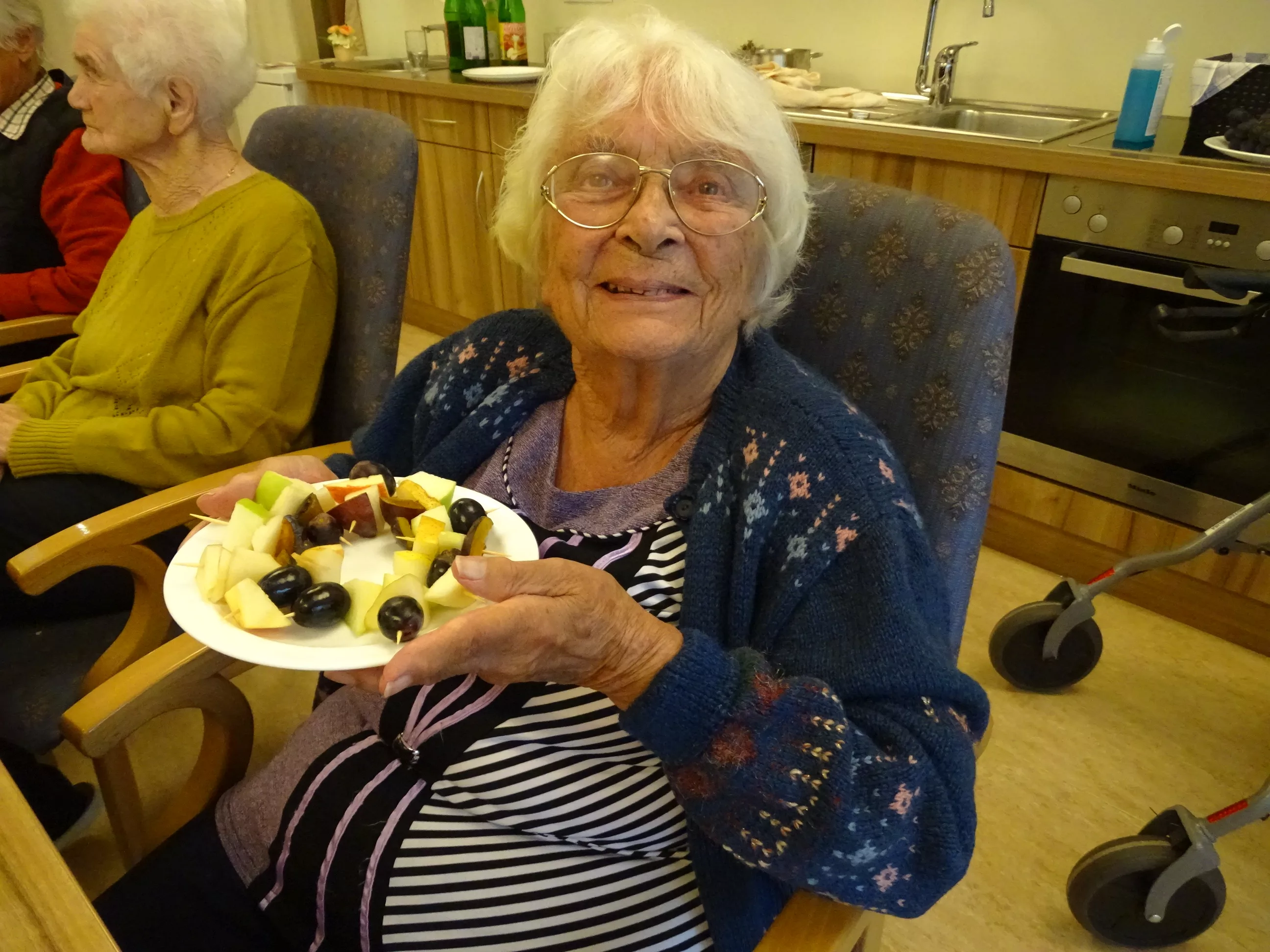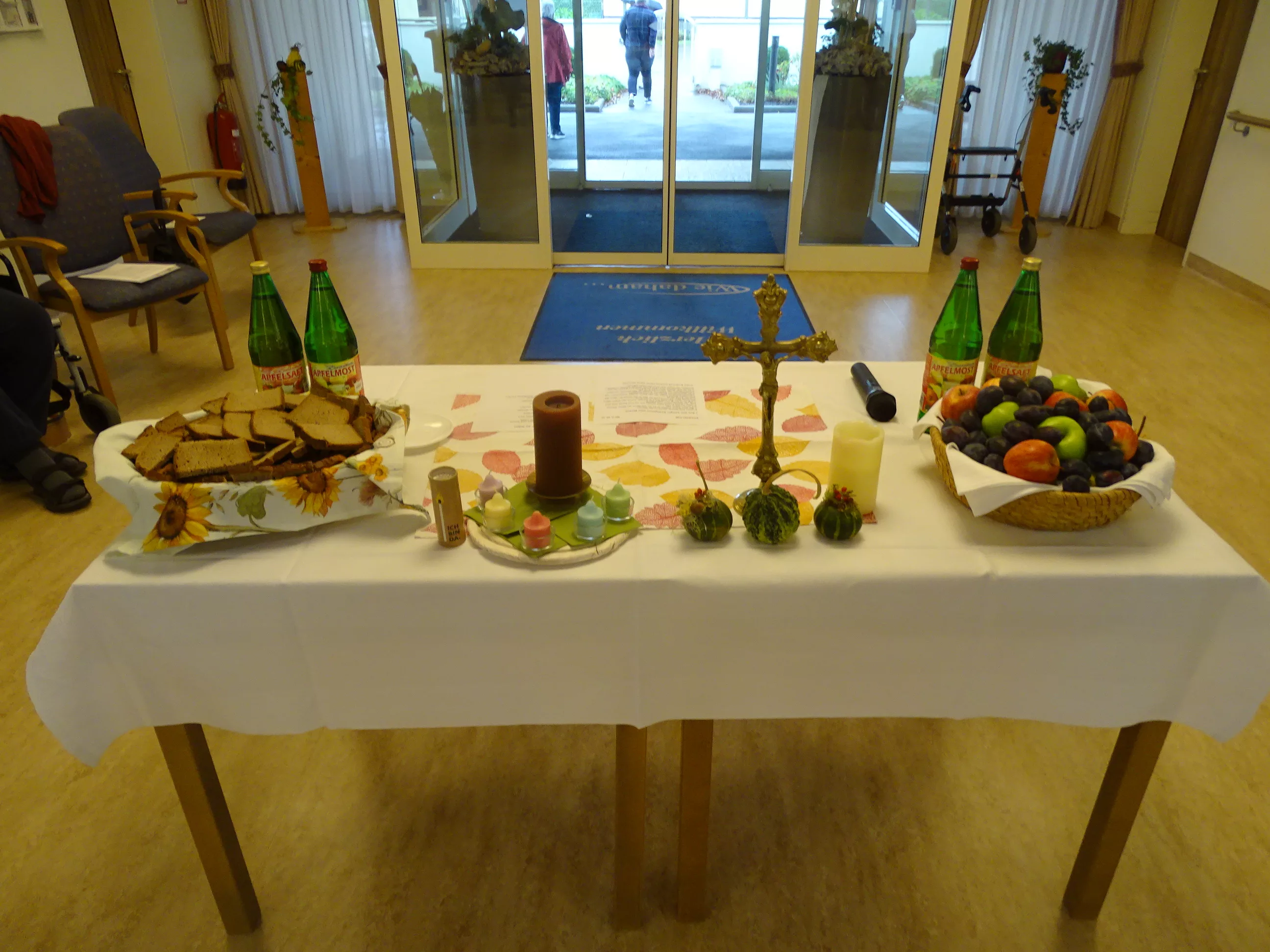 Nach der Speisensegnung bekamen wir alle ein Stück Brot , am Nachmittag bereiteten wir Obstspieße mit unseren BewohnerInnen vor, welche wir mit dem gesegnetem Most und Apfelsaft und gemütlichen Beisammensein genossen.