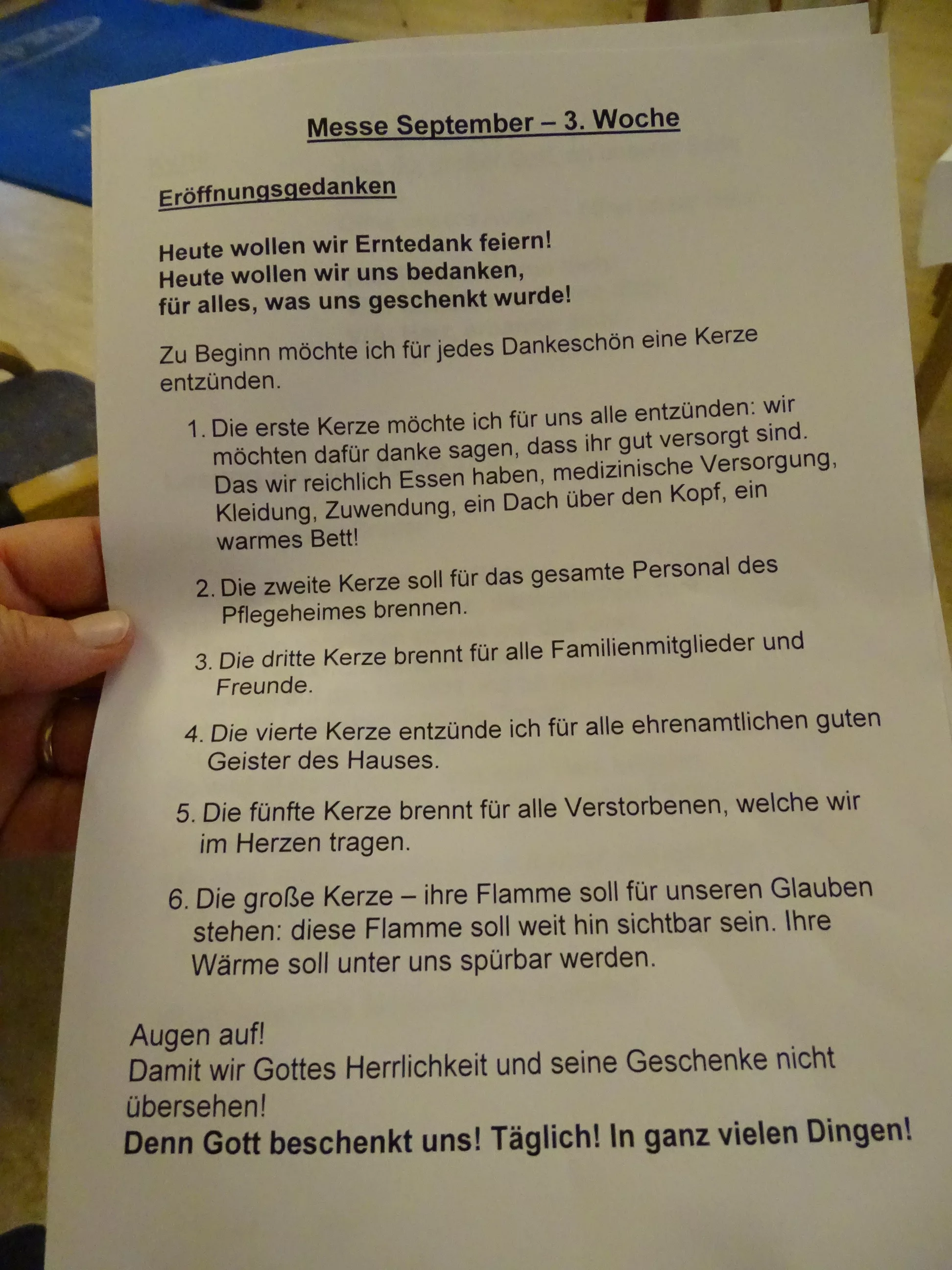 Am 27. September 2024 fand im Generationenpark Zeltweg ein feierliches Erntedankfest statt. Gestaltet wurde das Fest von unserer Pflegeheimseelsorgerin Michaela Horn-Perner, ihrem ehrenamtlichen Team und von unseren MitarbeiterInnen.