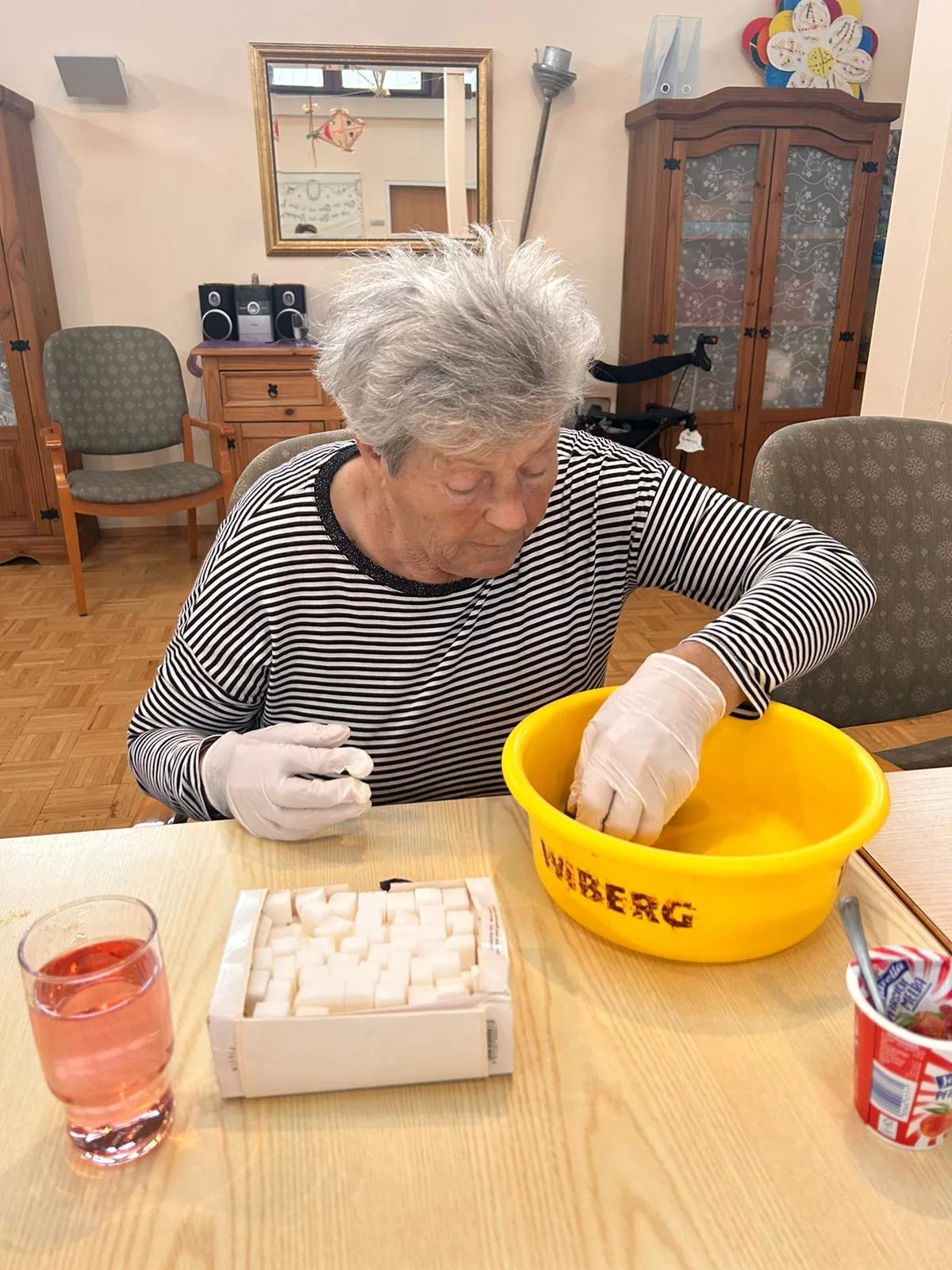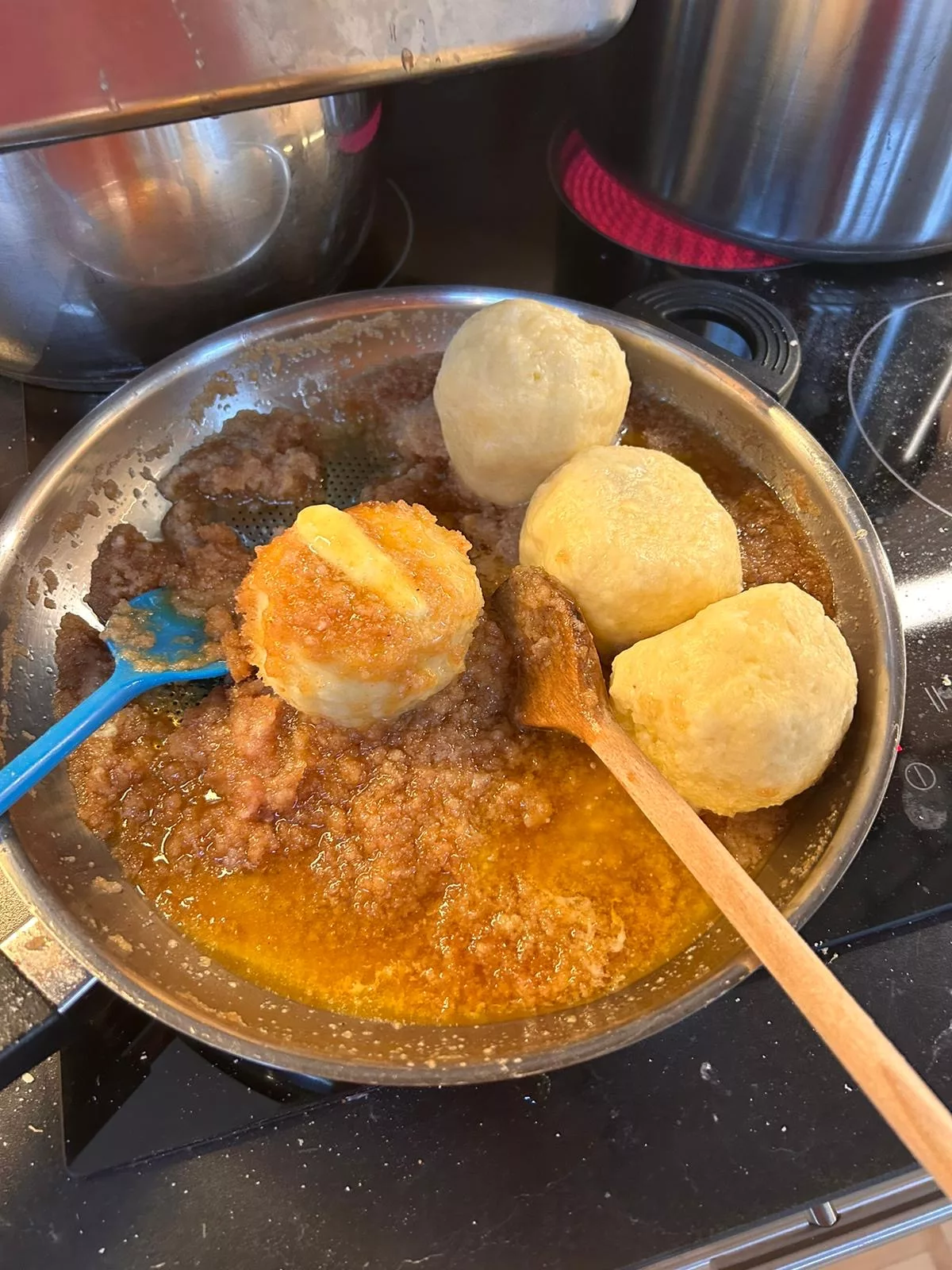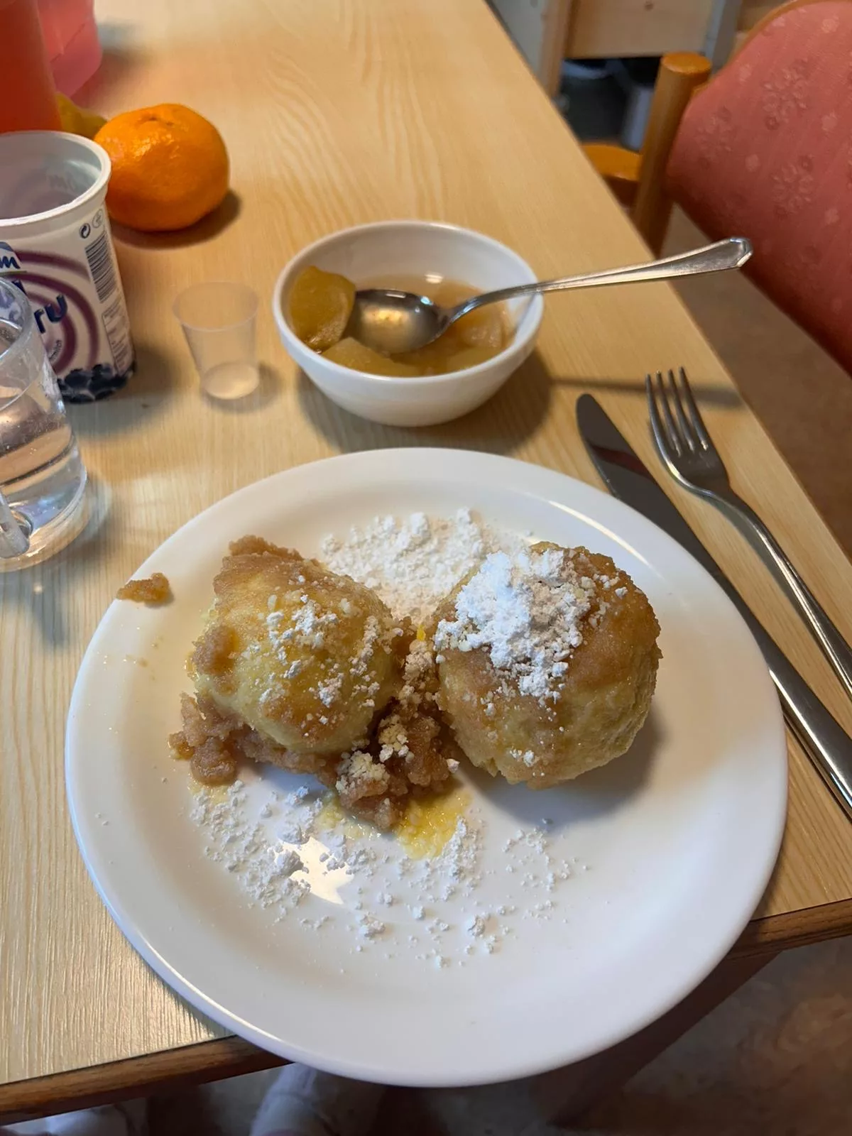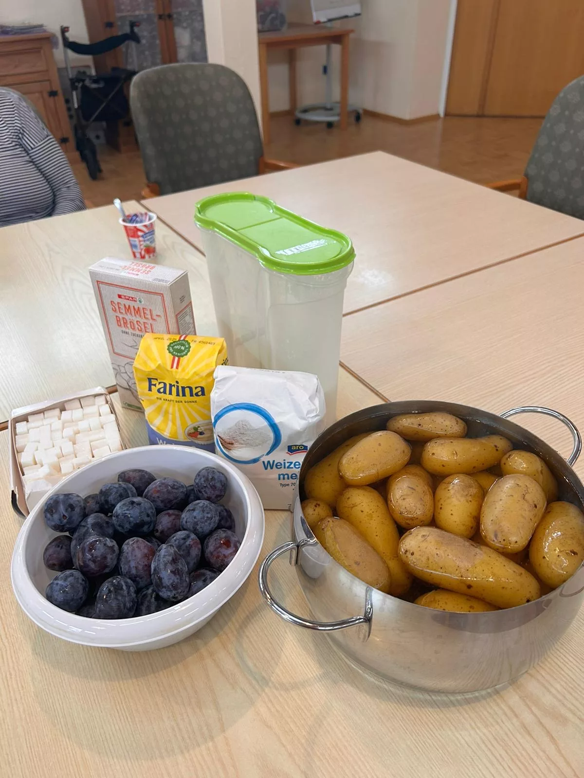Auf der Station Haus Sonnenblume wurden heute Zwetschkenknödel mit Apfelkompott zubereitet.