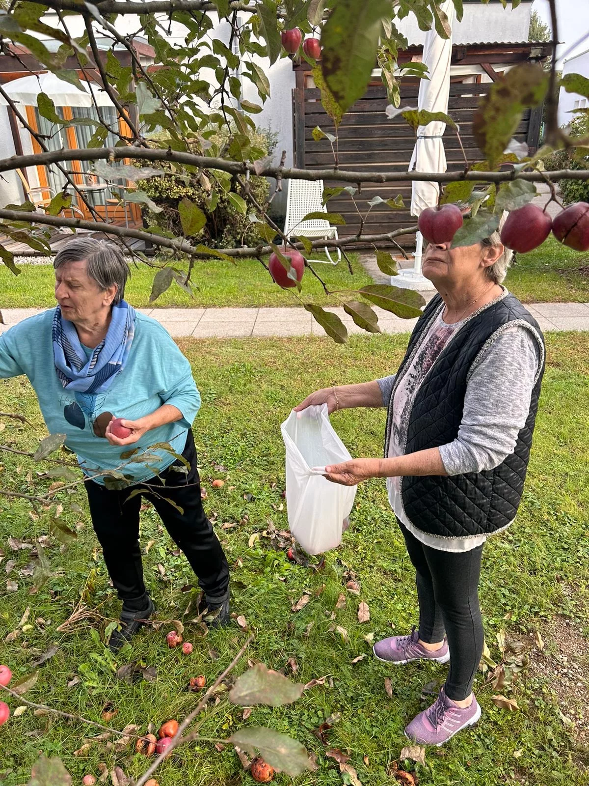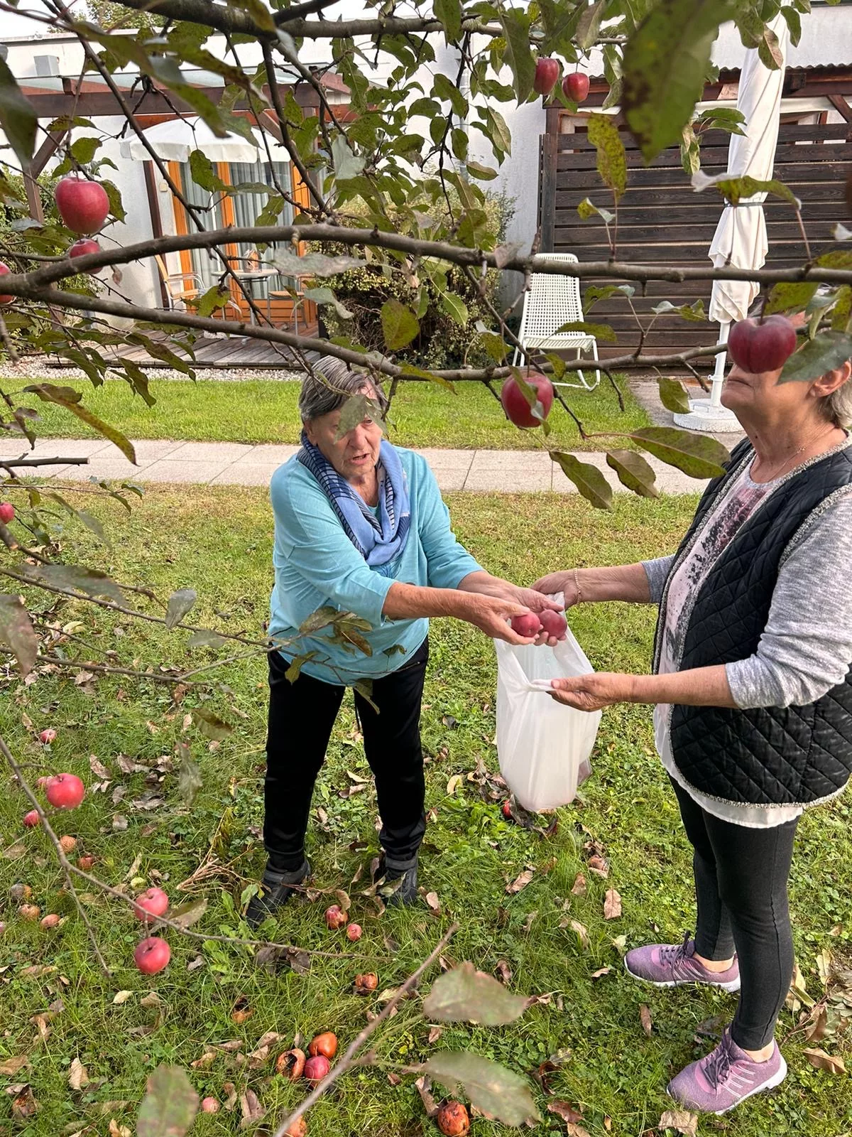 Die Äpfel für das Kompott pflückte unsere Jasmin mit den Bewohnern in unserem Garten.