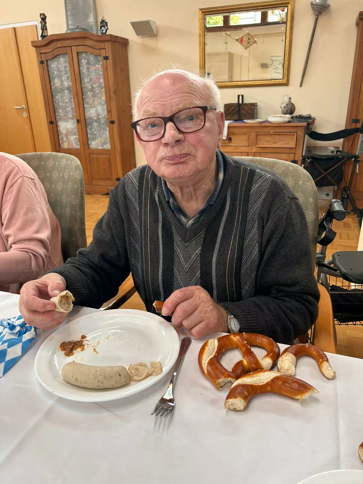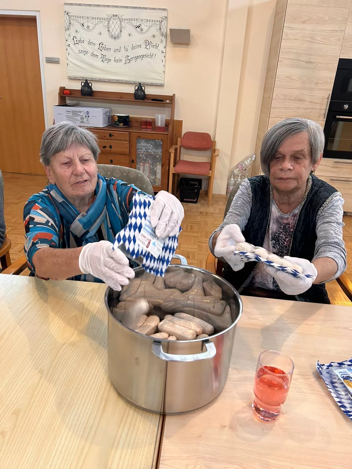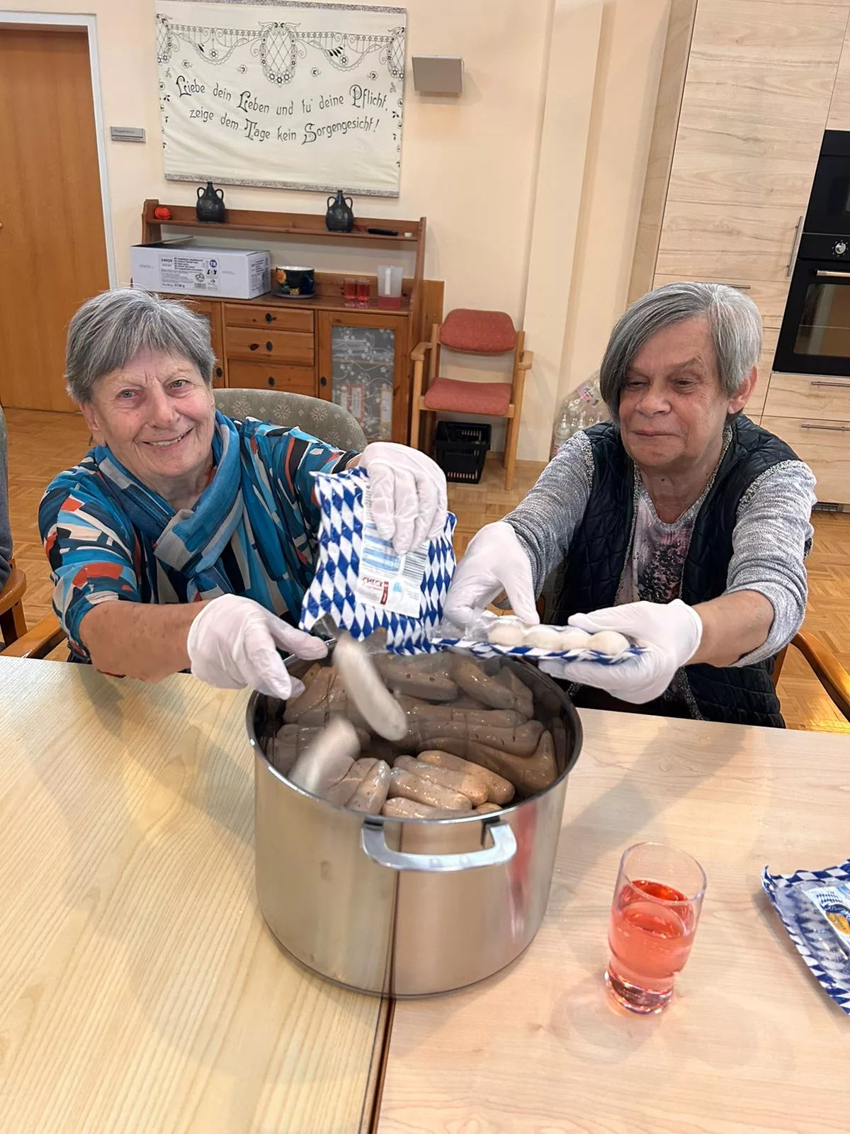 Etliche Bewohner hatten noch nie Weißwurst gegessen, es hat Ihnen sehr gut geschmeckt! Der süße Senf passte auch sehr gut zur Weißwurst.