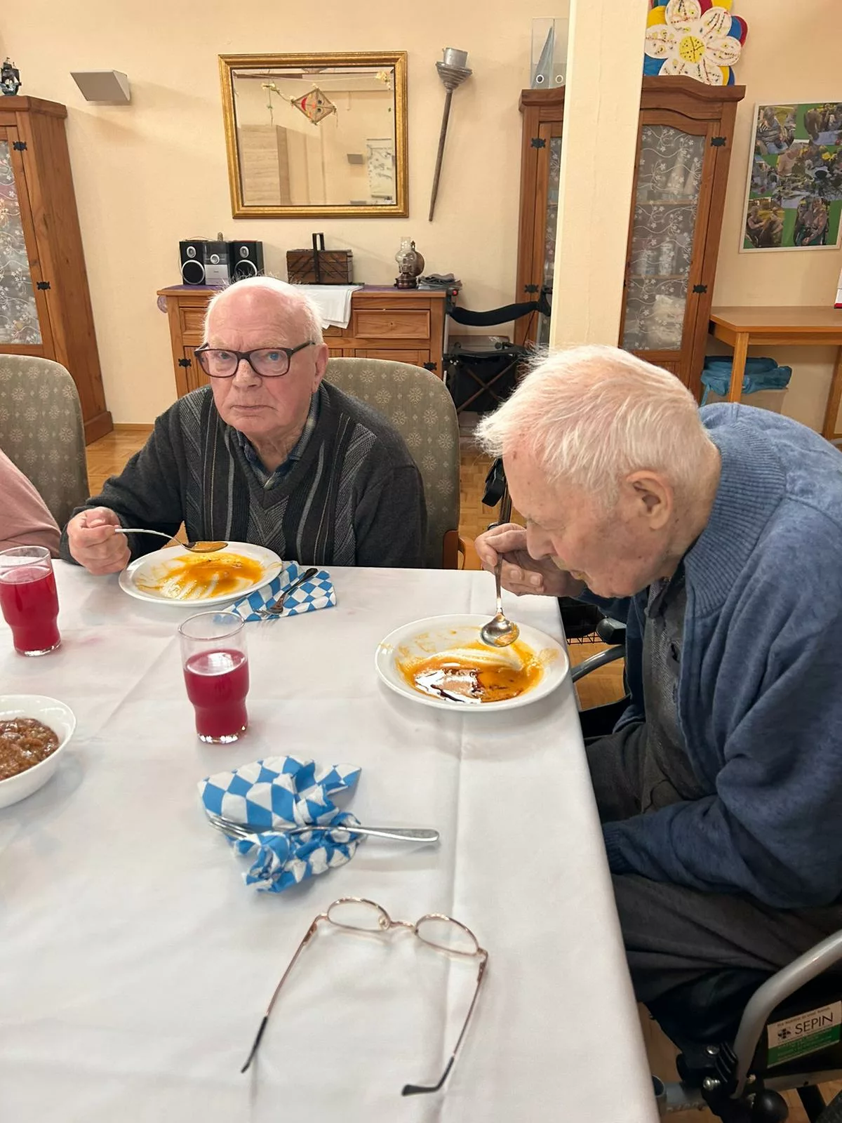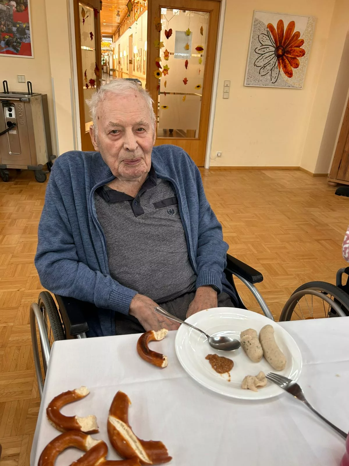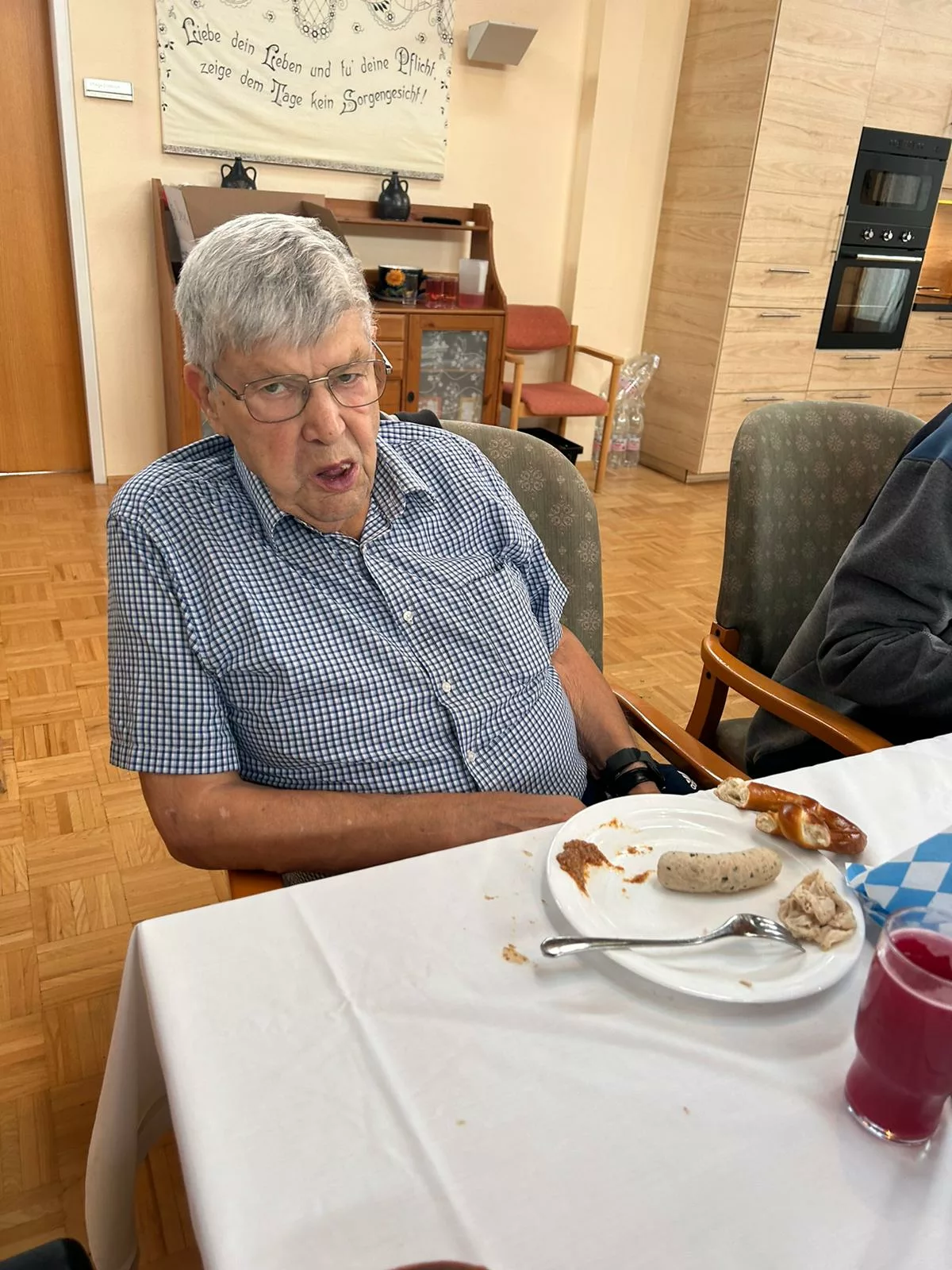 Etliche Bewohner hatten noch nie Weißwurst gegessen, es hat Ihnen sehr gut geschmeckt! Der süße Senf passte auch sehr gut zur Weißwurst.