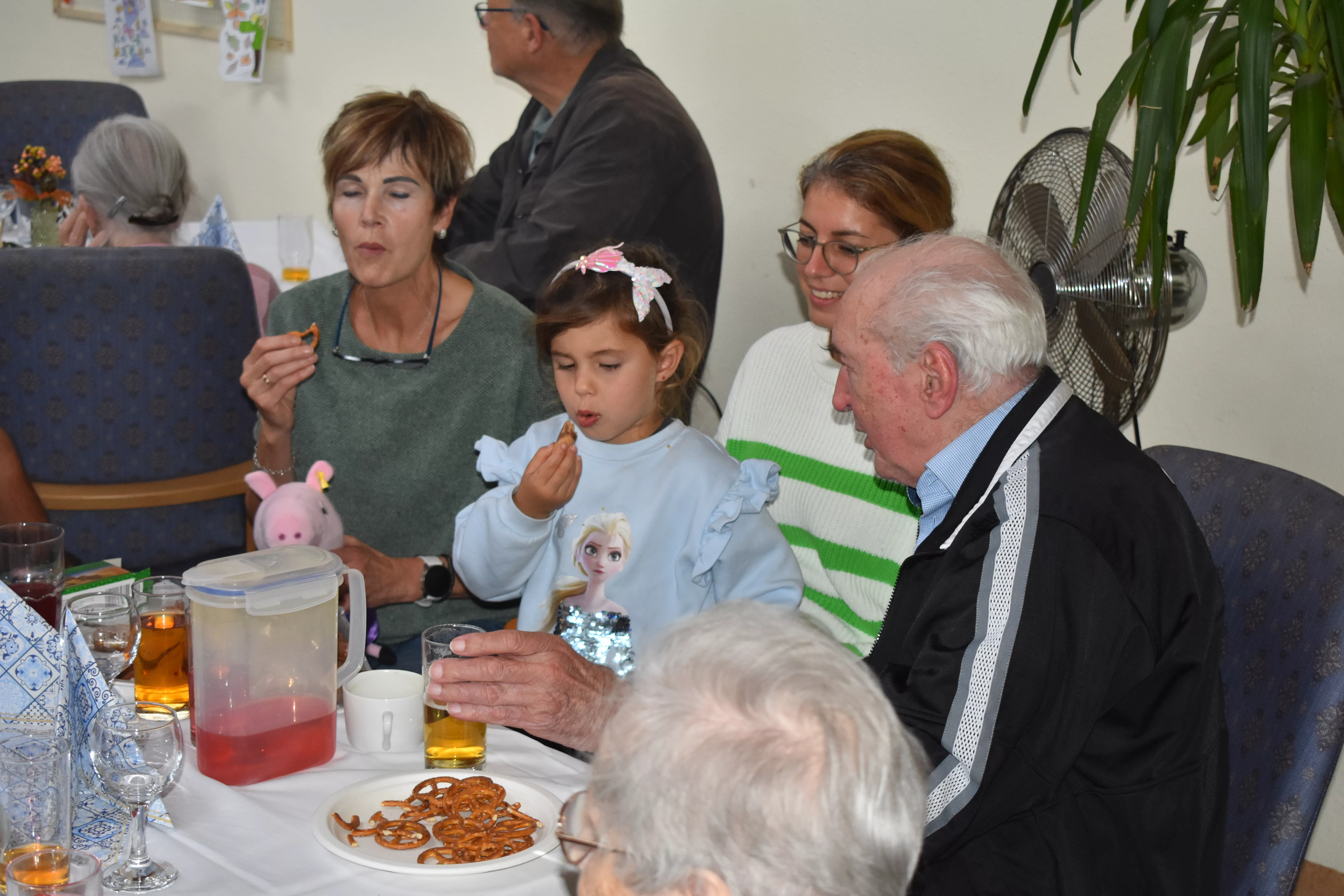 Ein Oktoberfest – ohne Bier – nicht auszudenken. Und damit der Durst noch größer wurde, sind frische, knusprige Salzbrezel aufgetischt worden. Gemeinsam haben wir dann auf ein Prosit der Gemütlichkeit angestoßen.