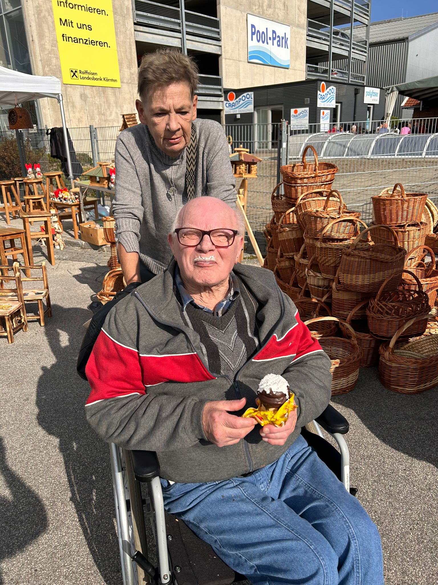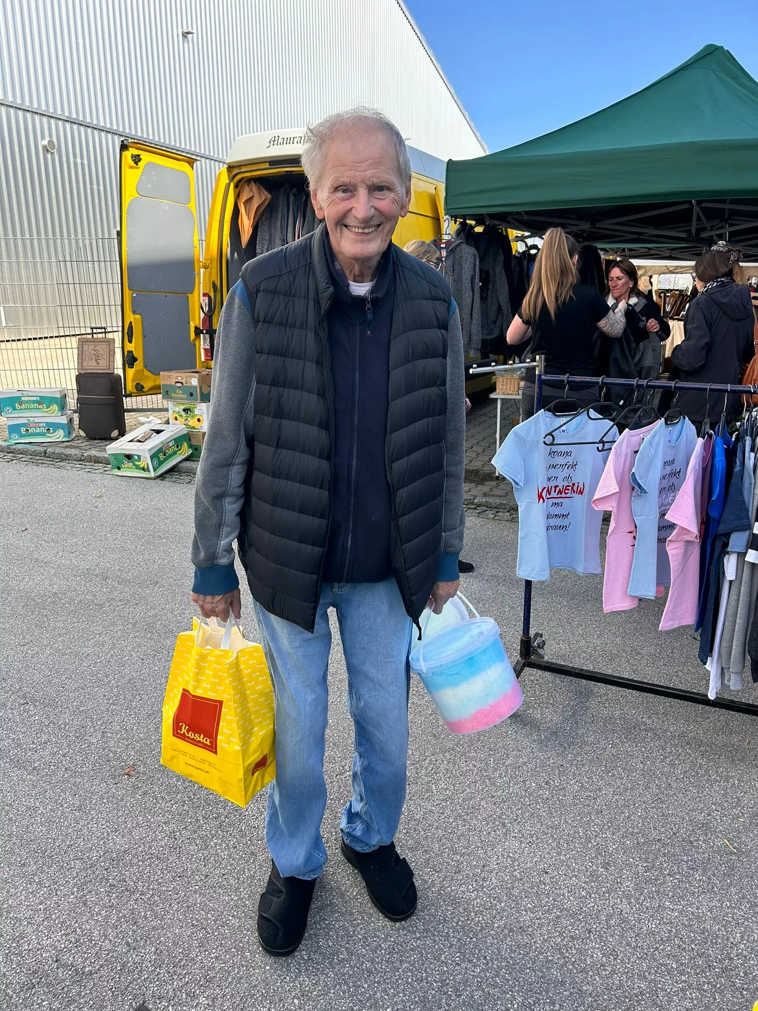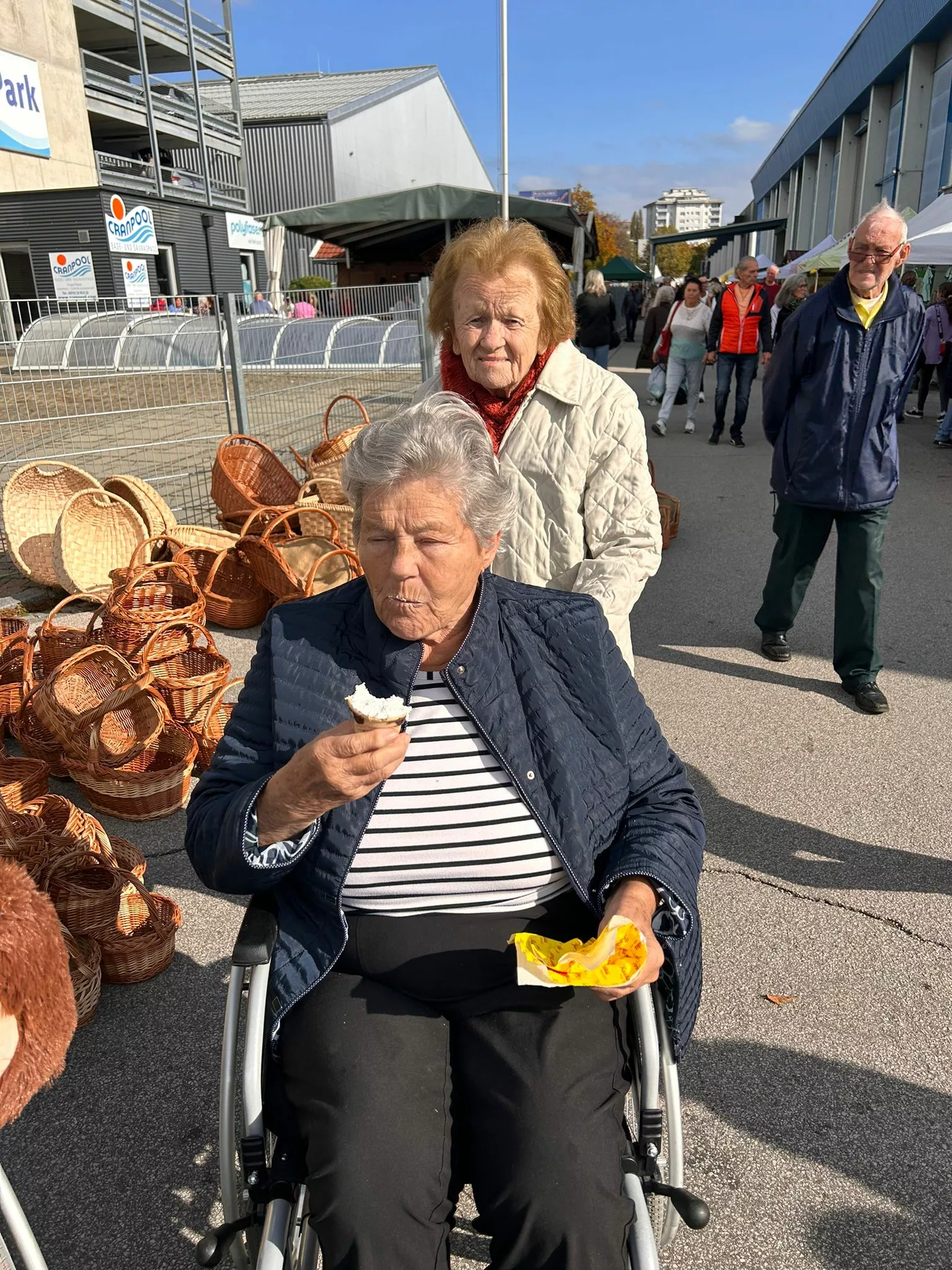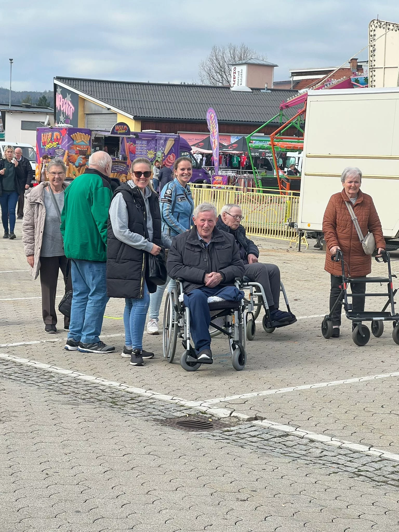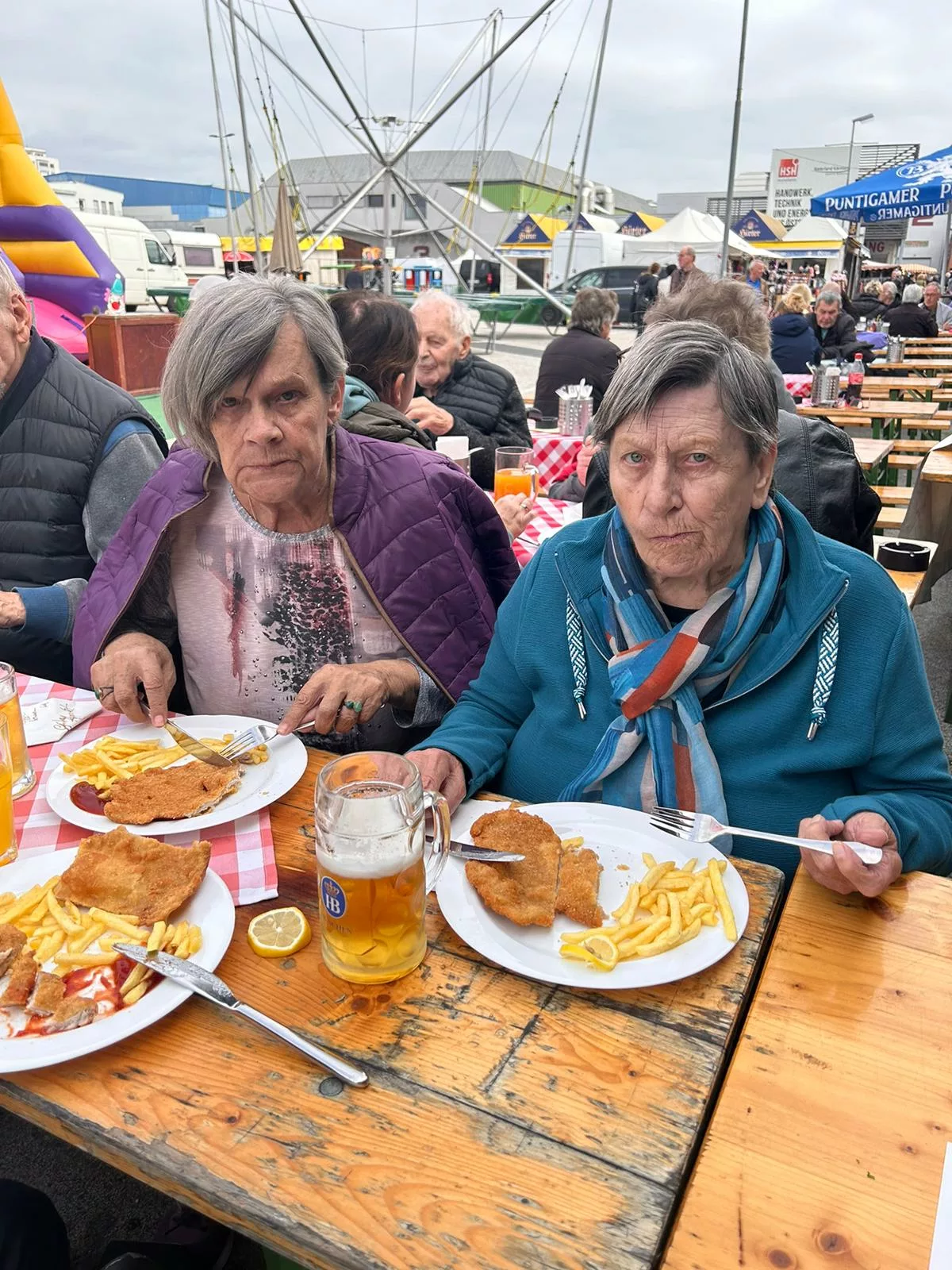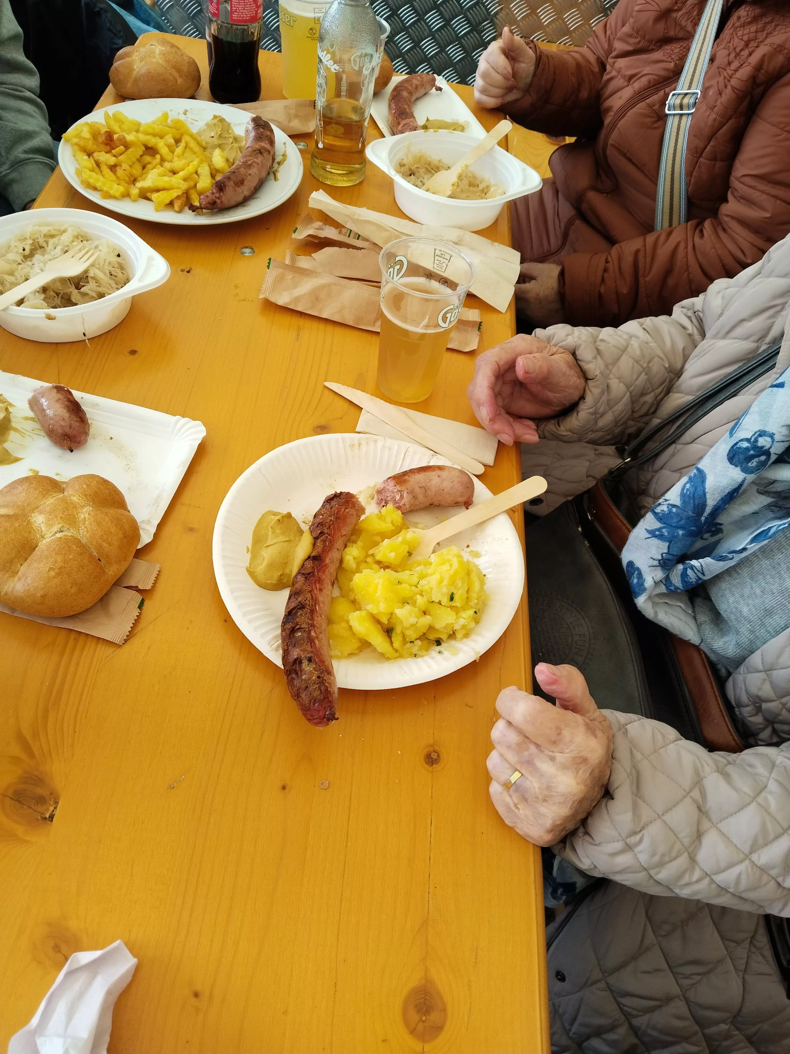 Mittagessen gingen wir zum Jammer am Messegelände und der Großteil freute sich auf ein frisches Wiener mit Pommes. Nach der Stärkung erkundeten wir den Markt genauer. Eine Runde Enten ziehen für alle durfte auch nicht fehlen. Wir gewannen einen riesigen Stofftier-Affen. Frau Ogris und Herr Samitz passten abwechselnd darauf auf.