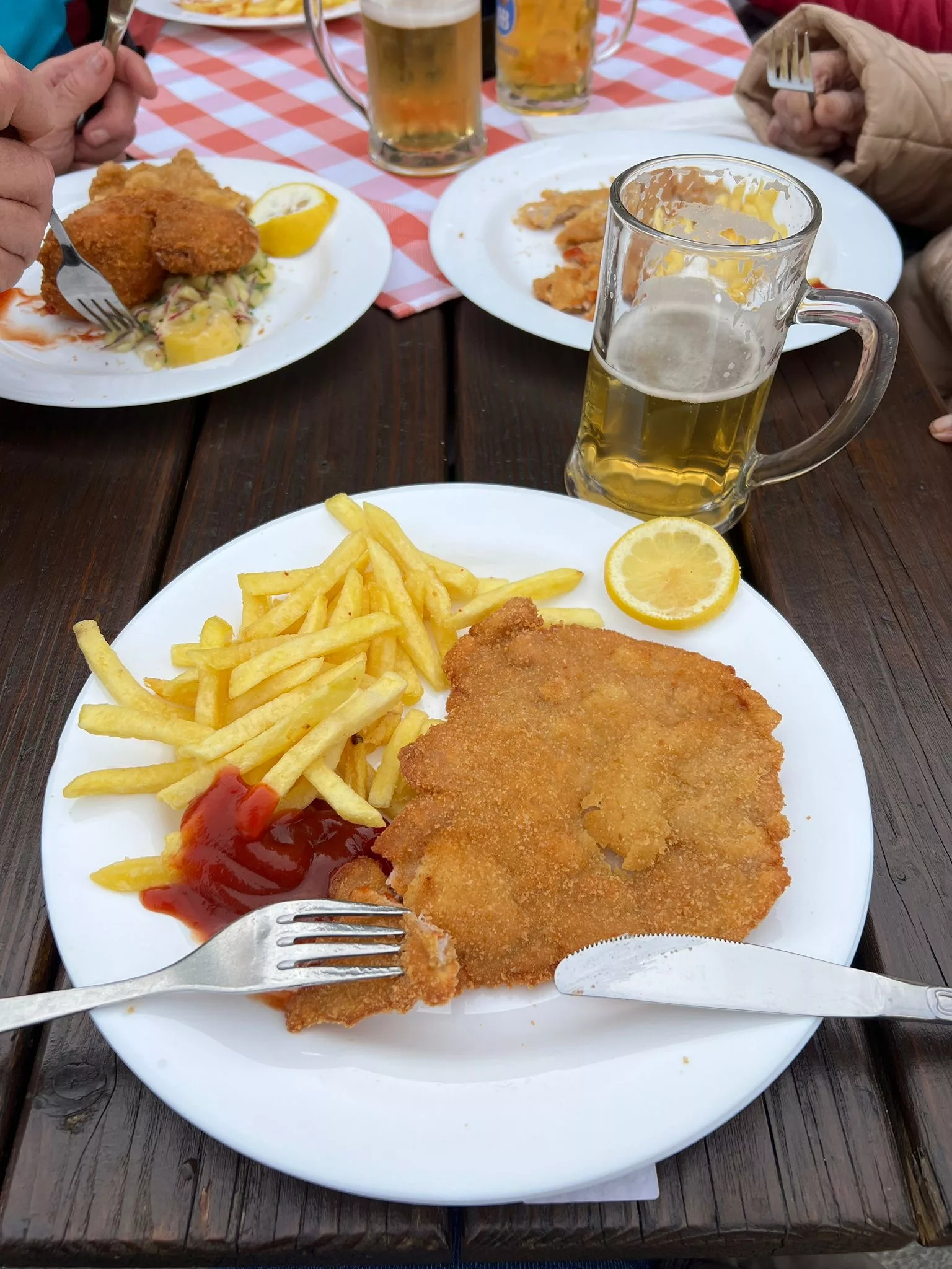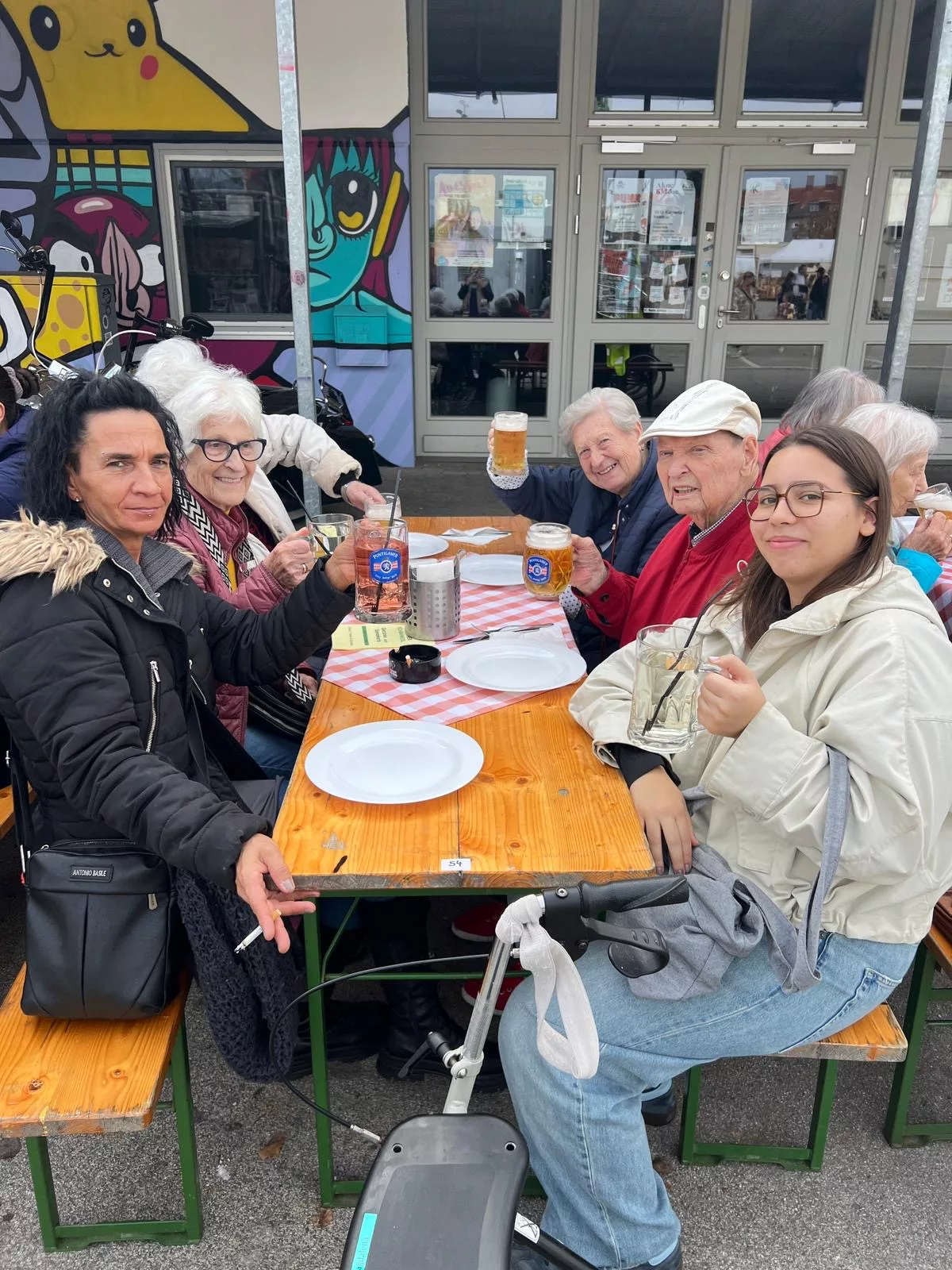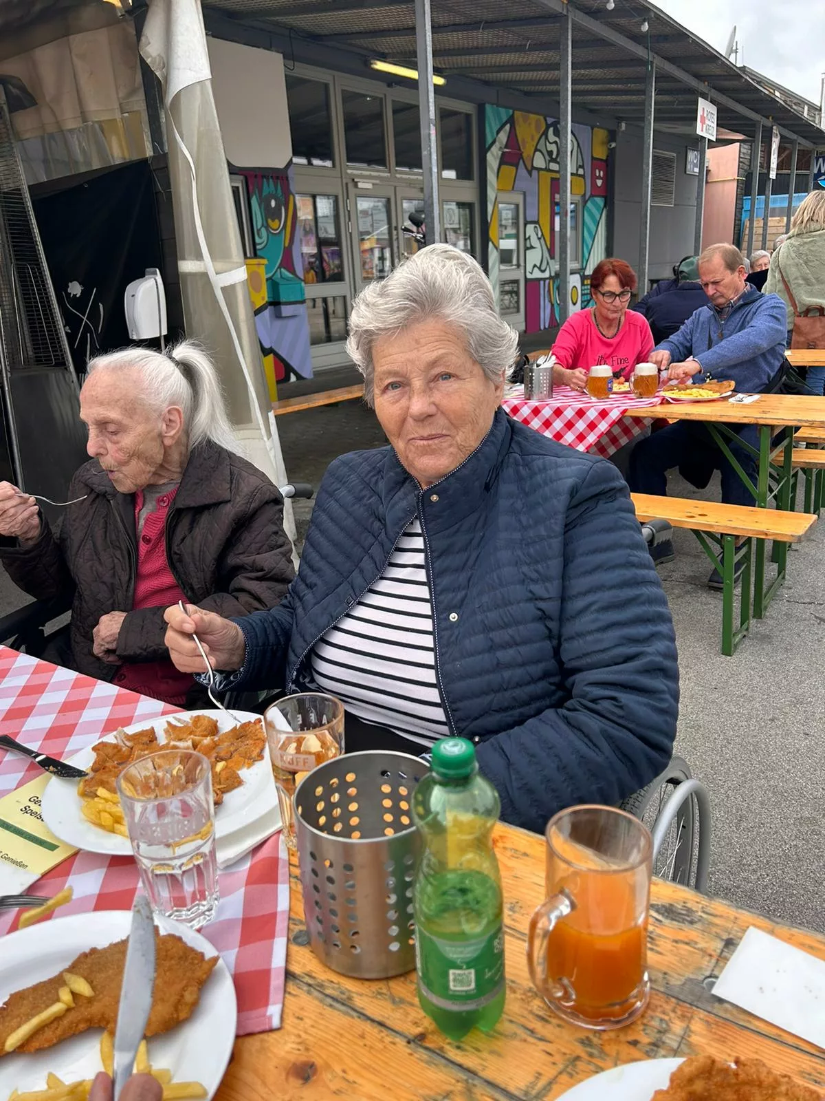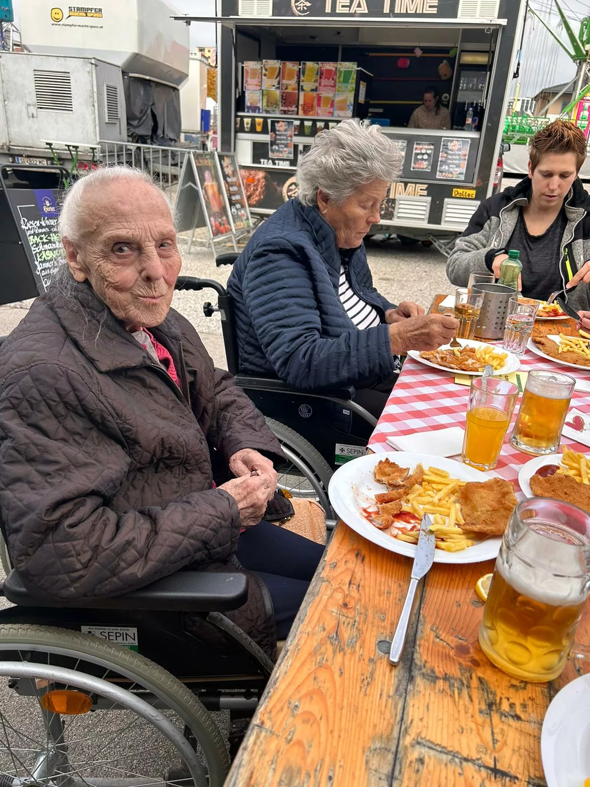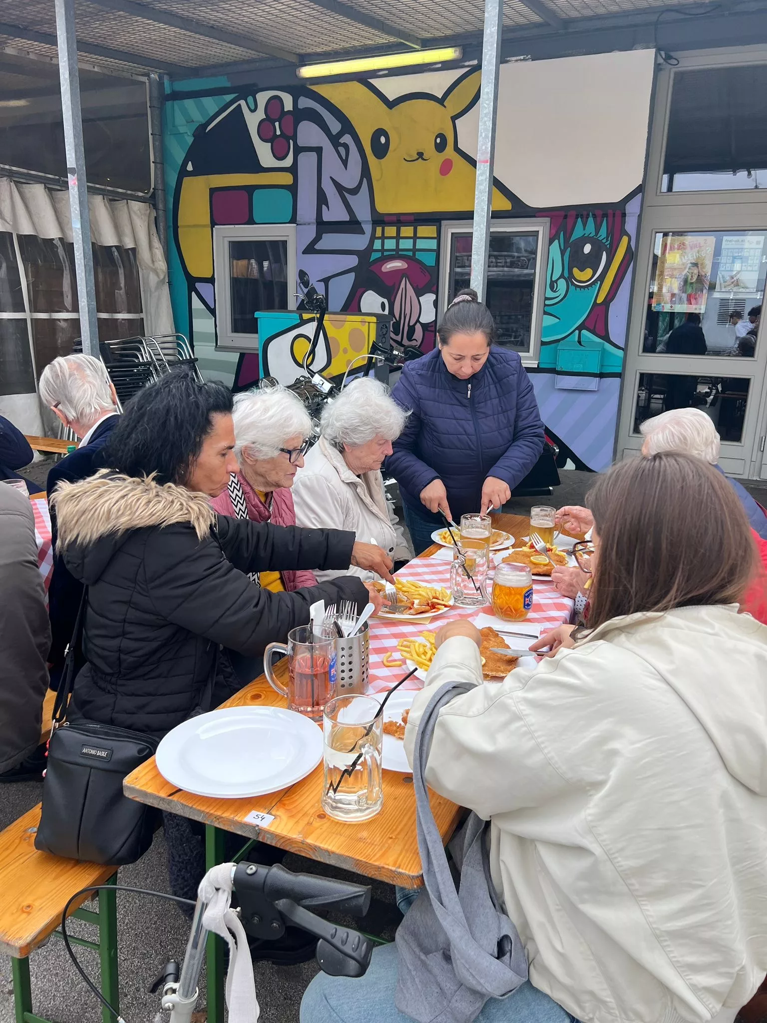 Mittagessen gingen wir zum Jammer am Messegelände und der Großteil freute sich auf ein frisches Wiener mit Pommes. Nach der Stärkung erkundeten wir den Markt genauer. Eine Runde Enten ziehen für alle durfte auch nicht fehlen. Wir gewannen einen riesigen Stofftier-Affen. Frau Ogris und Herr Samitz passten abwechselnd darauf auf.