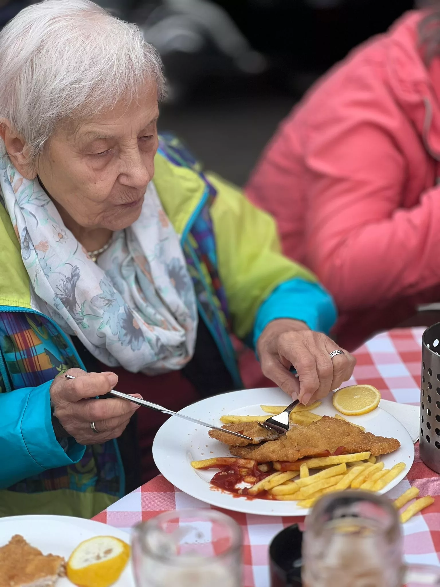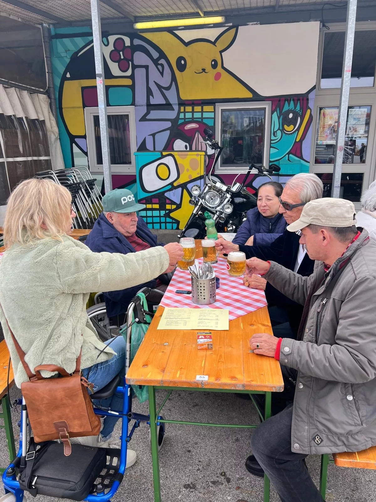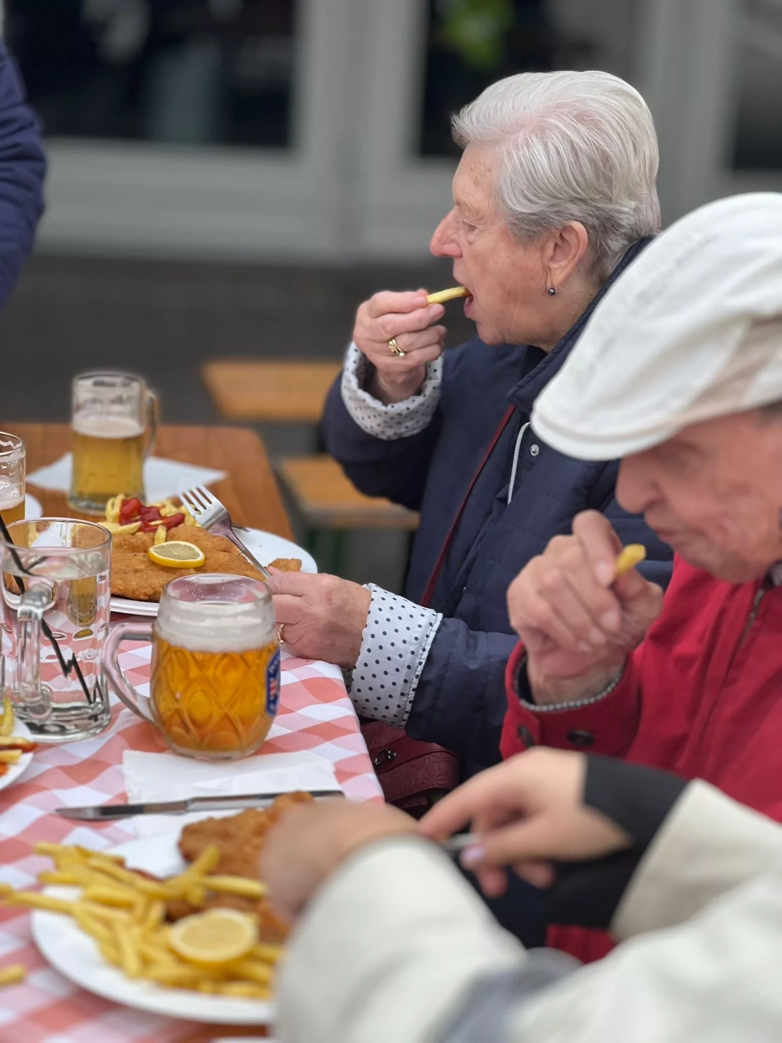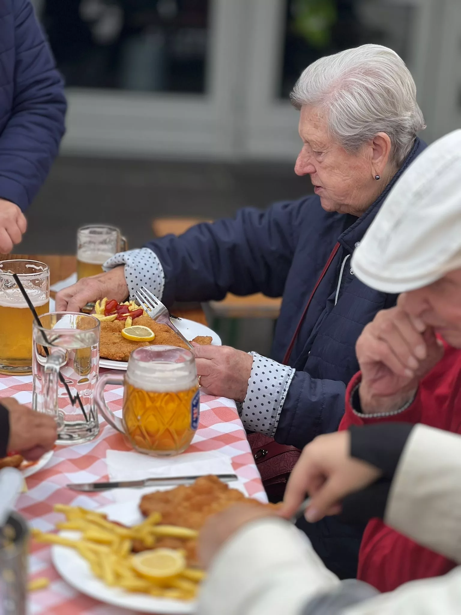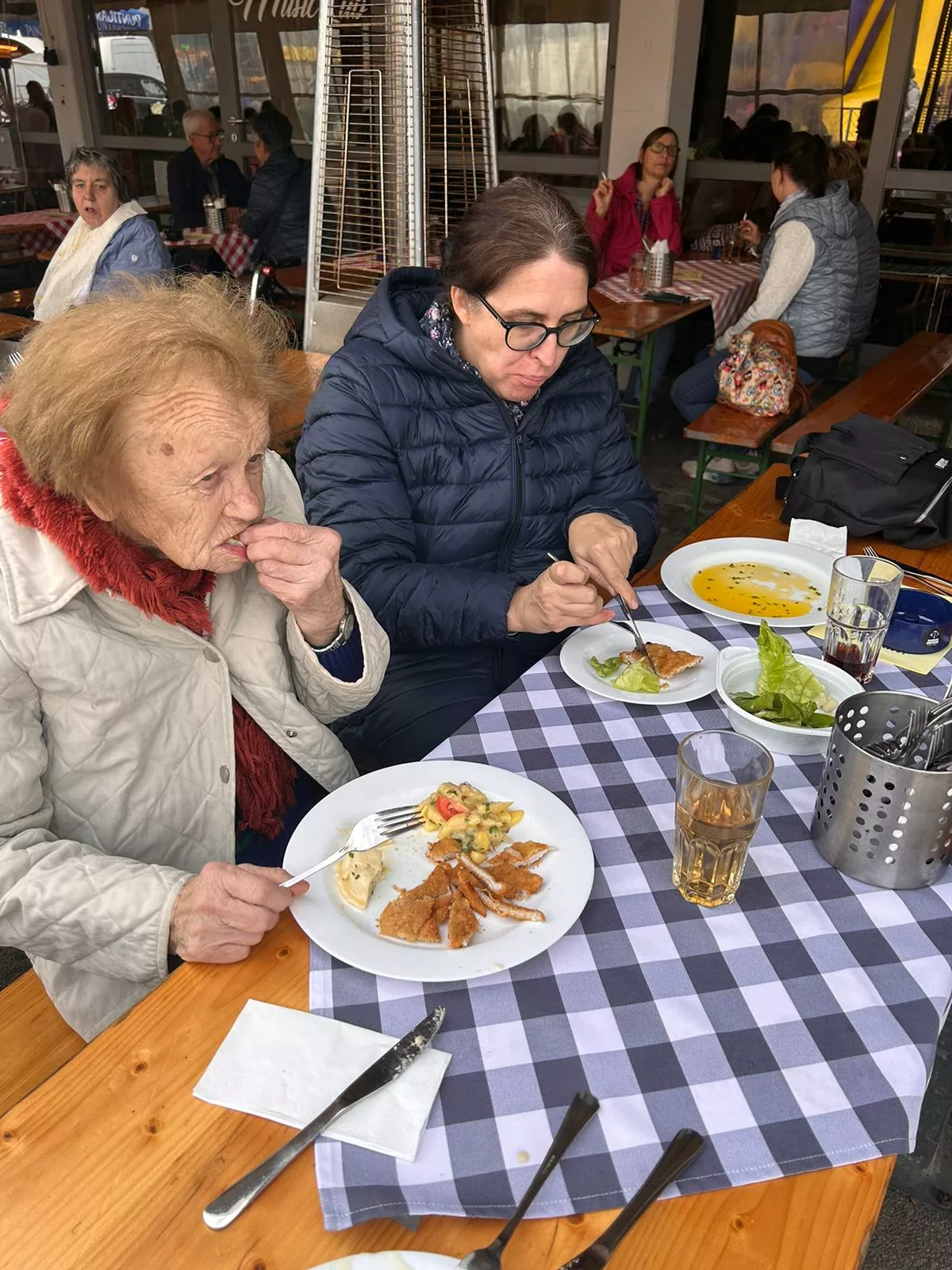 Mittagessen gingen wir zum Jammer am Messegelände und der Großteil freute sich auf ein frisches Wiener mit Pommes. Nach der Stärkung erkundeten wir den Markt genauer. Eine Runde Enten ziehen für alle durfte auch nicht fehlen. Wir gewannen einen riesigen Stofftier-Affen. Frau Ogris und Herr Samitz passten abwechselnd darauf auf.